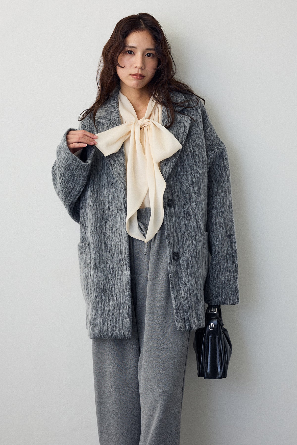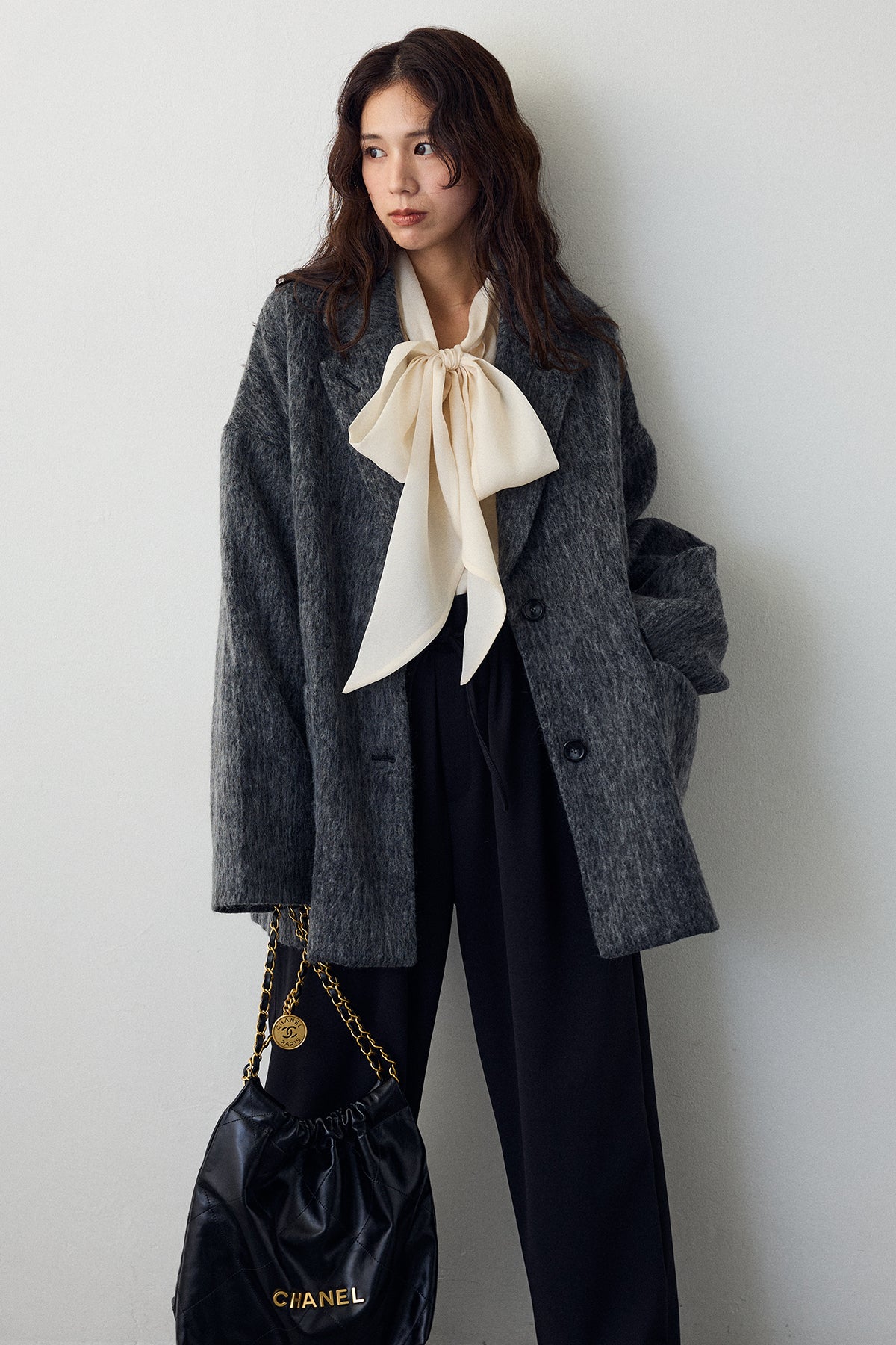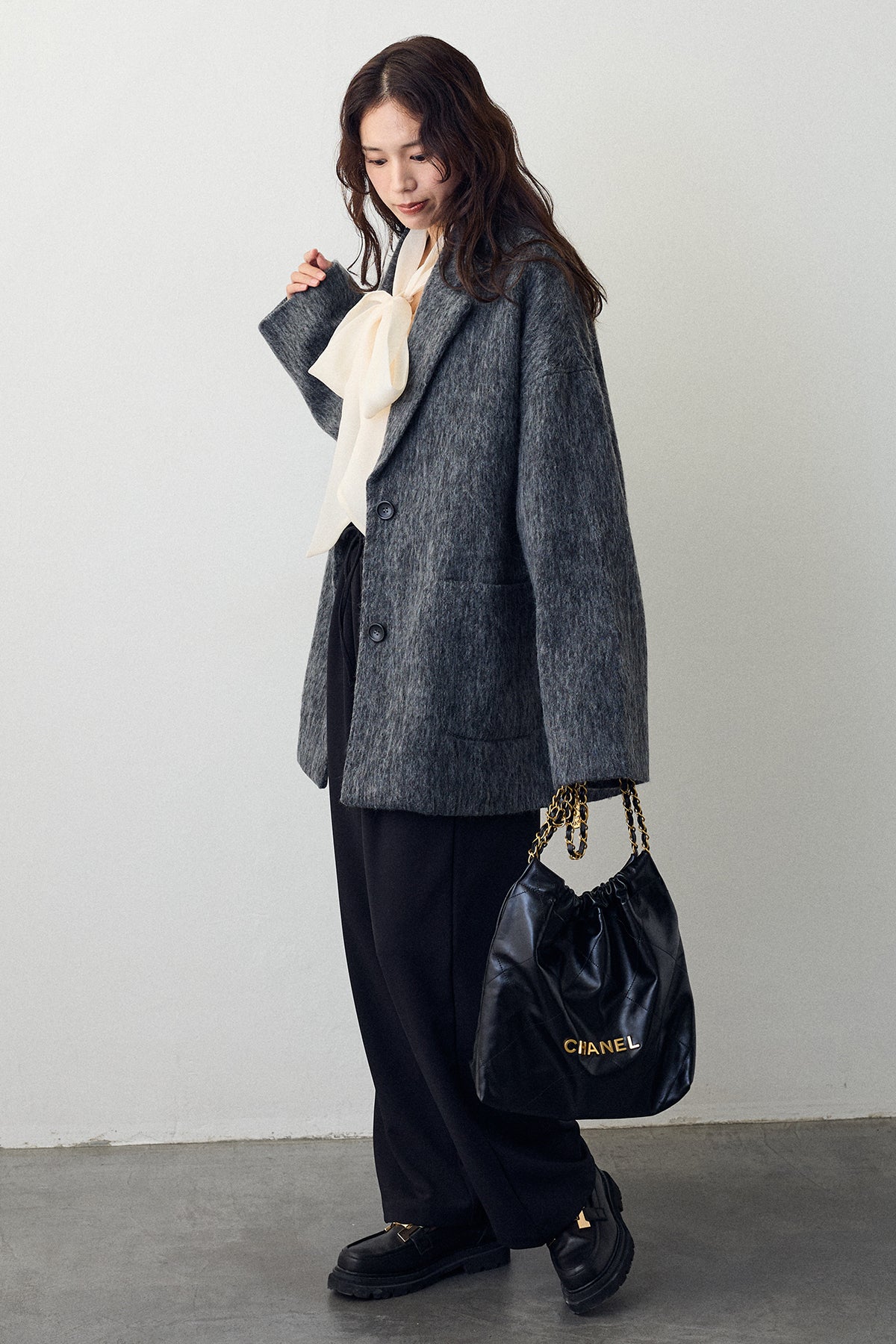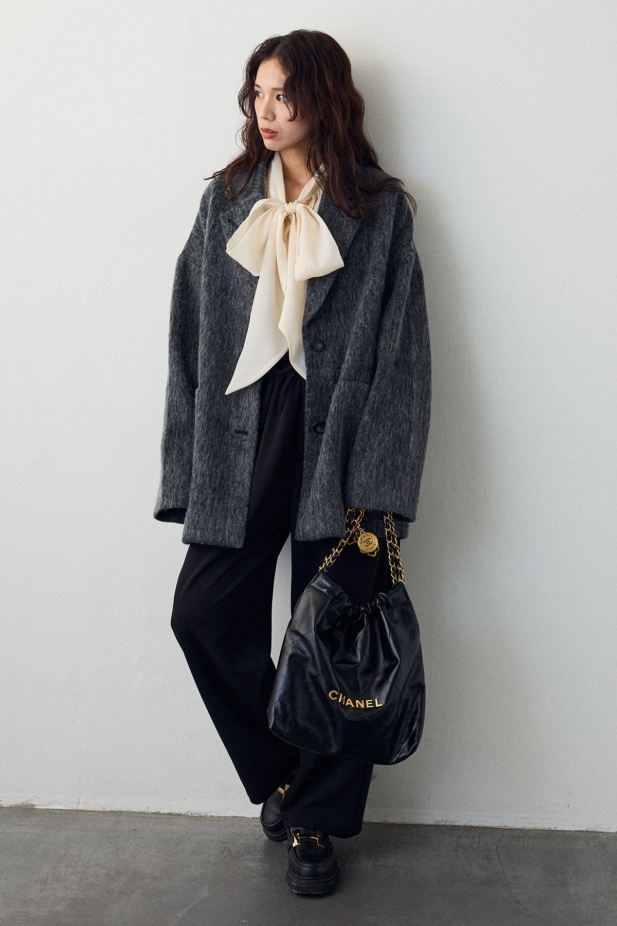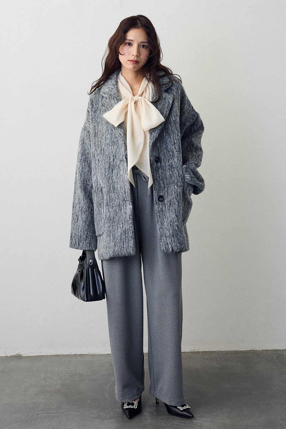 [予約/SET]前後2wayリボンシアーブラウス+シャギーミドル丈コート+2タック美シルエットパンツ(3set)