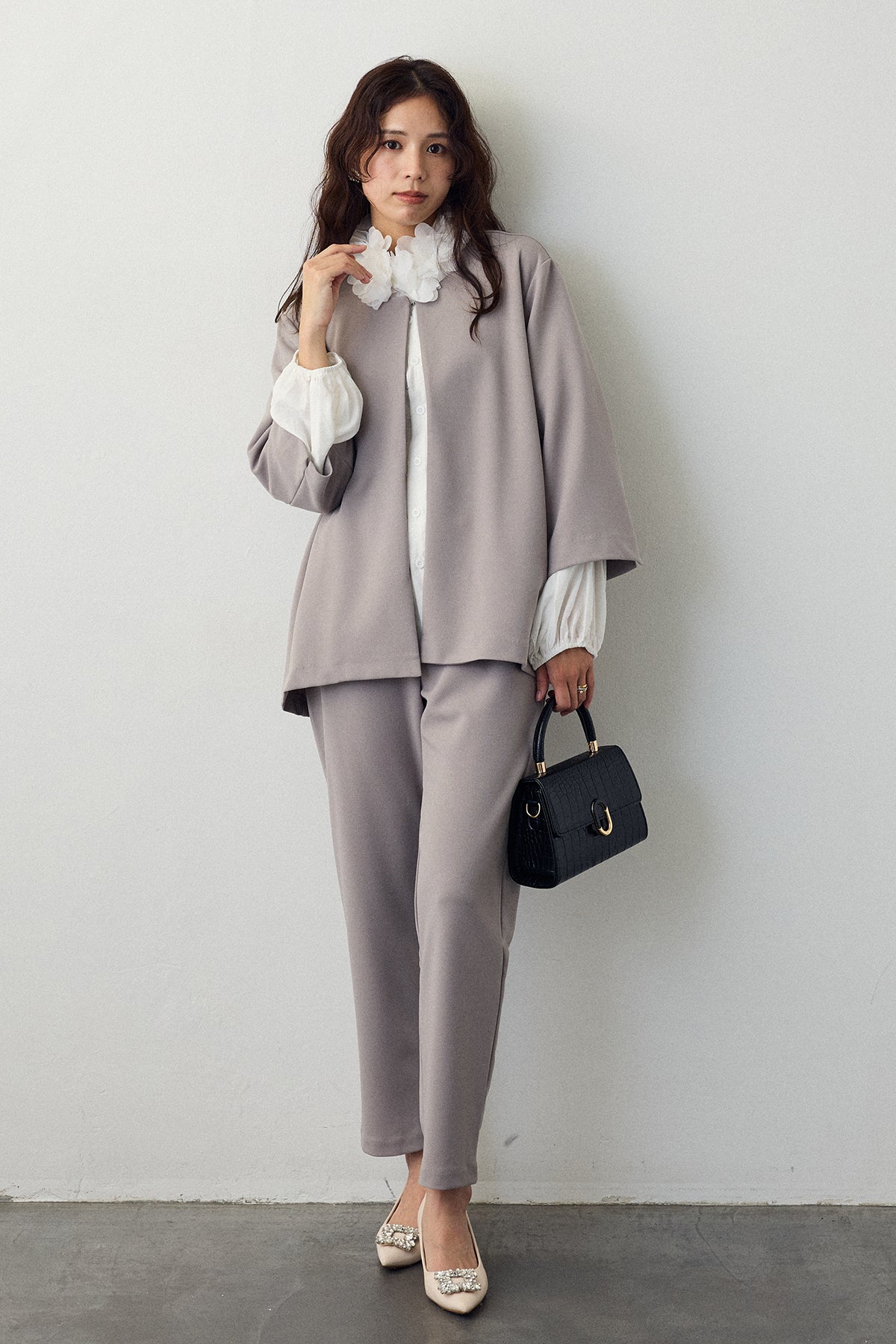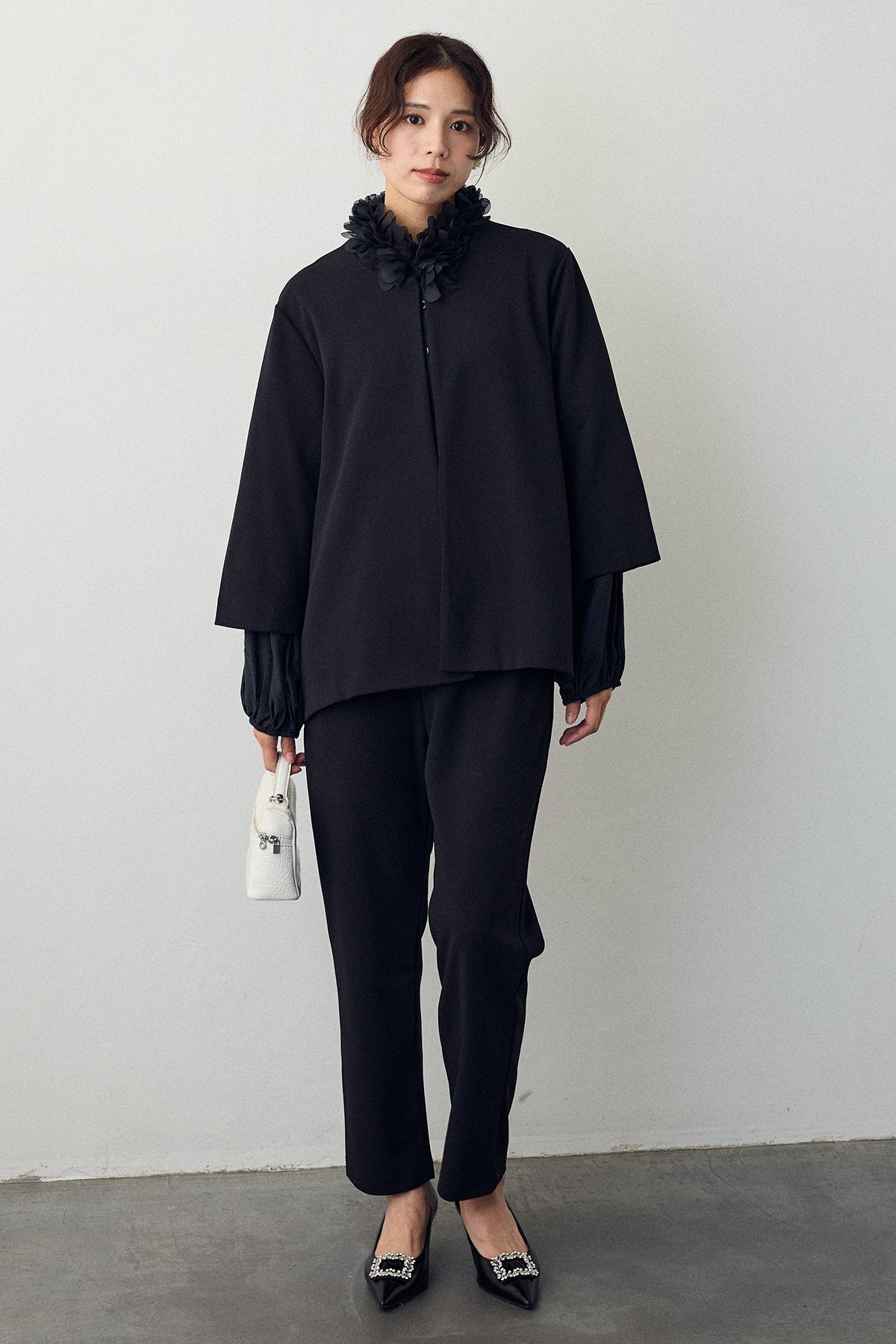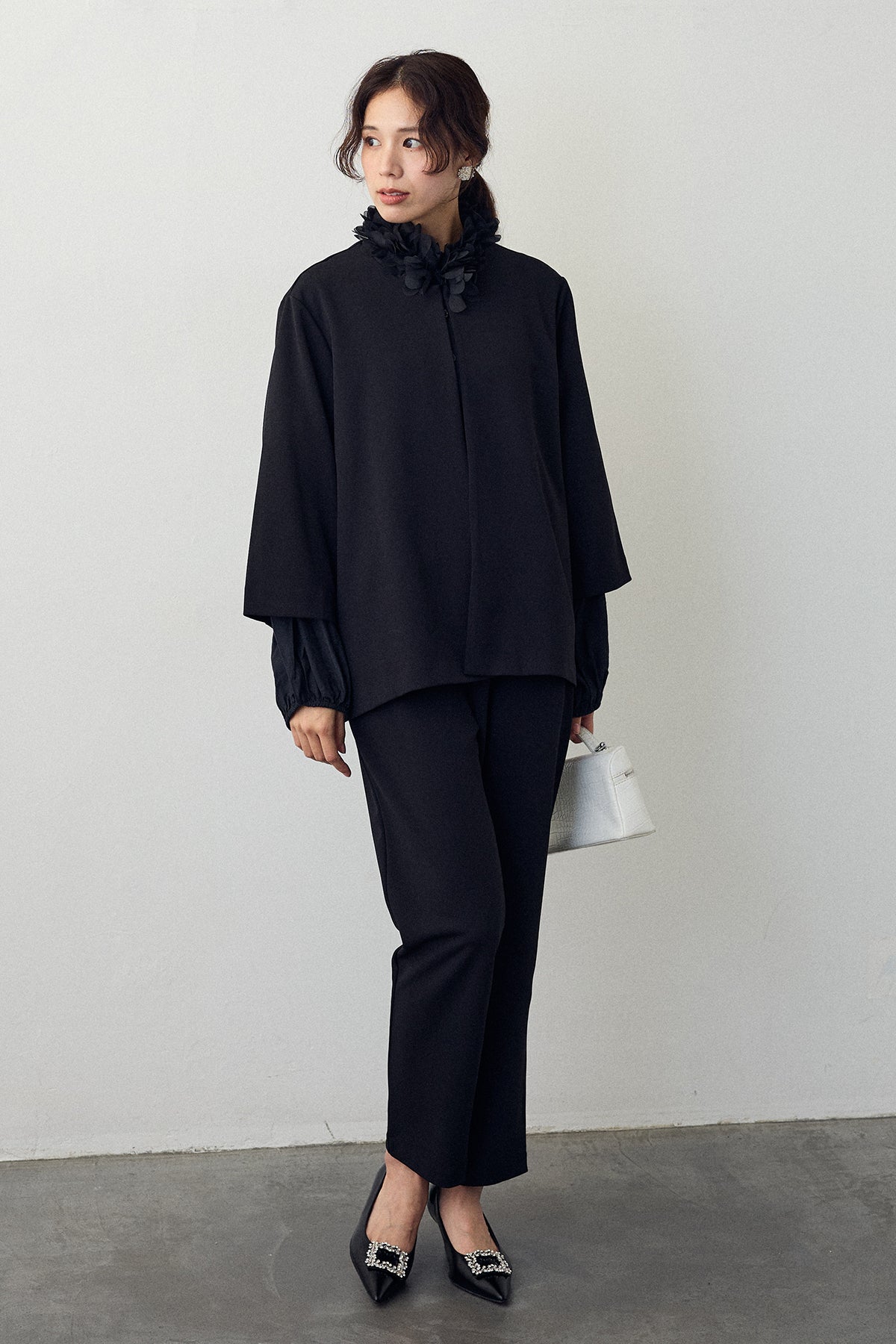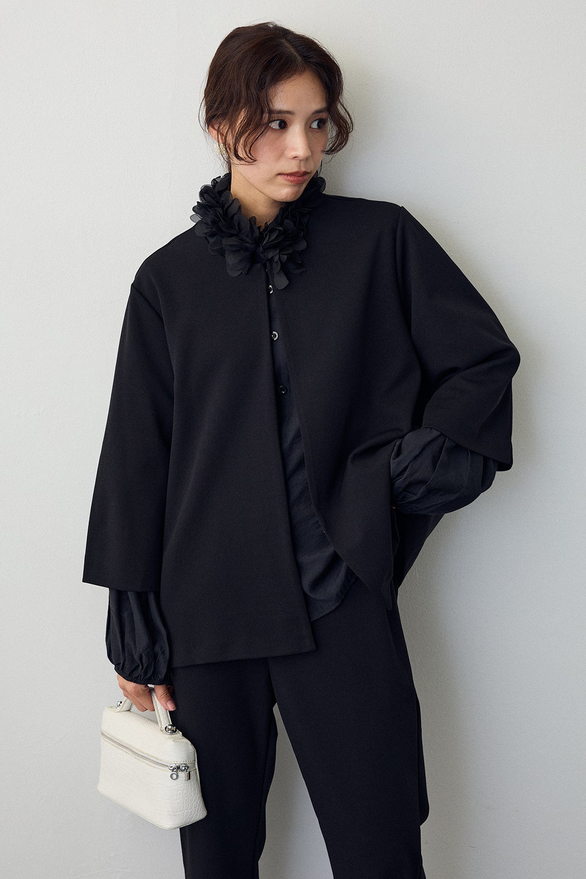 [予約/SET]フラワーフリルネックブラウス+ノーカラージョーゼットセットアップ(2set)