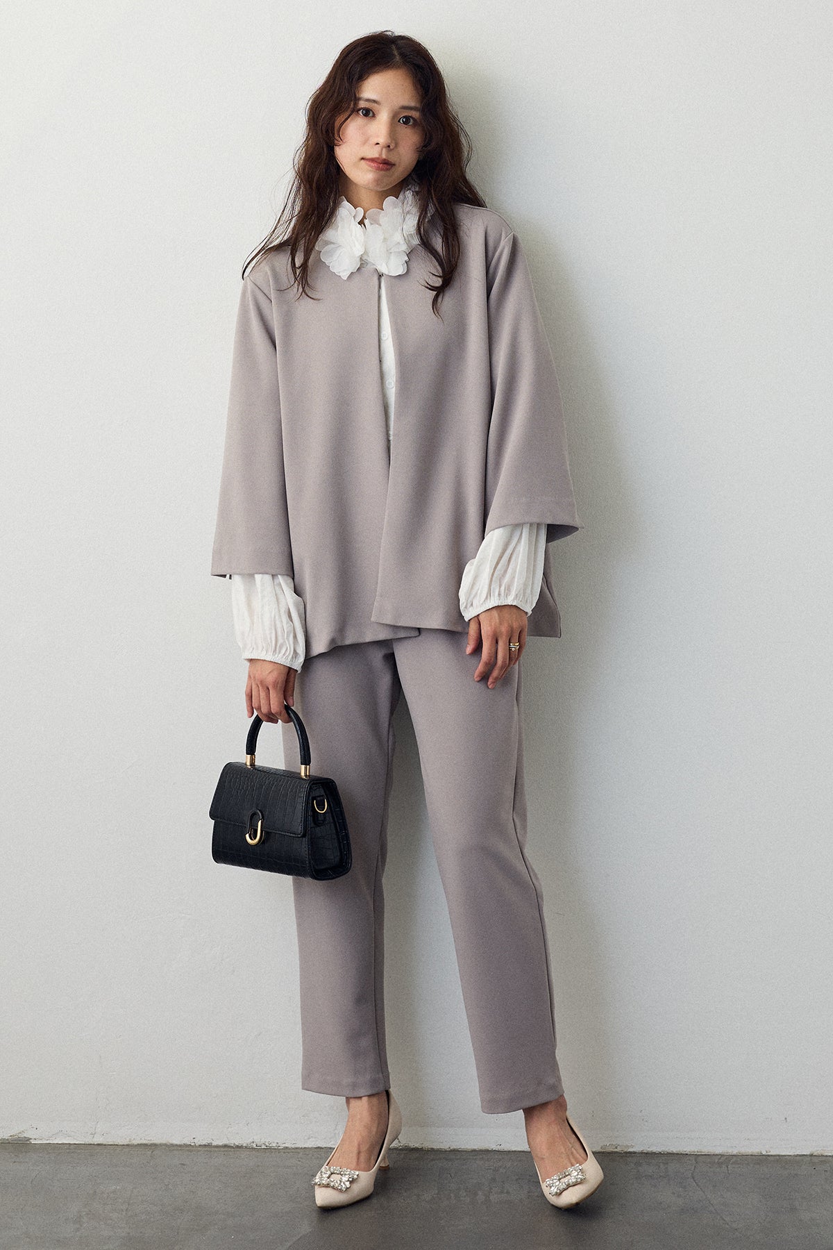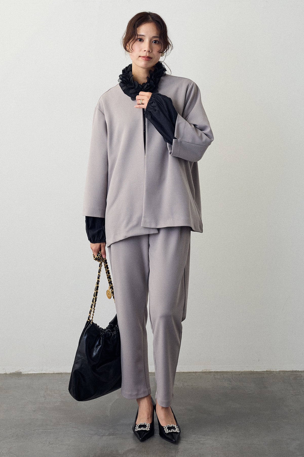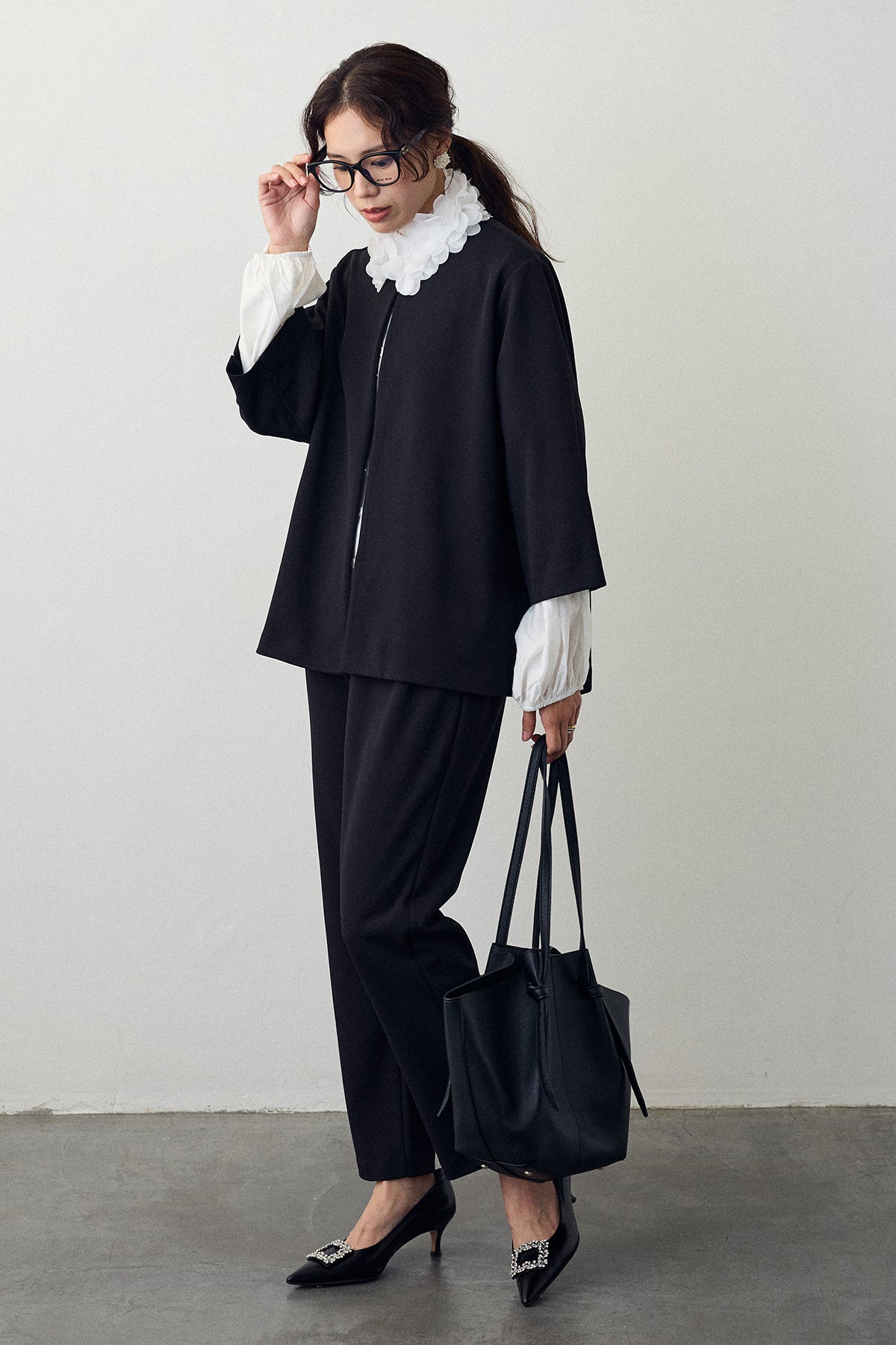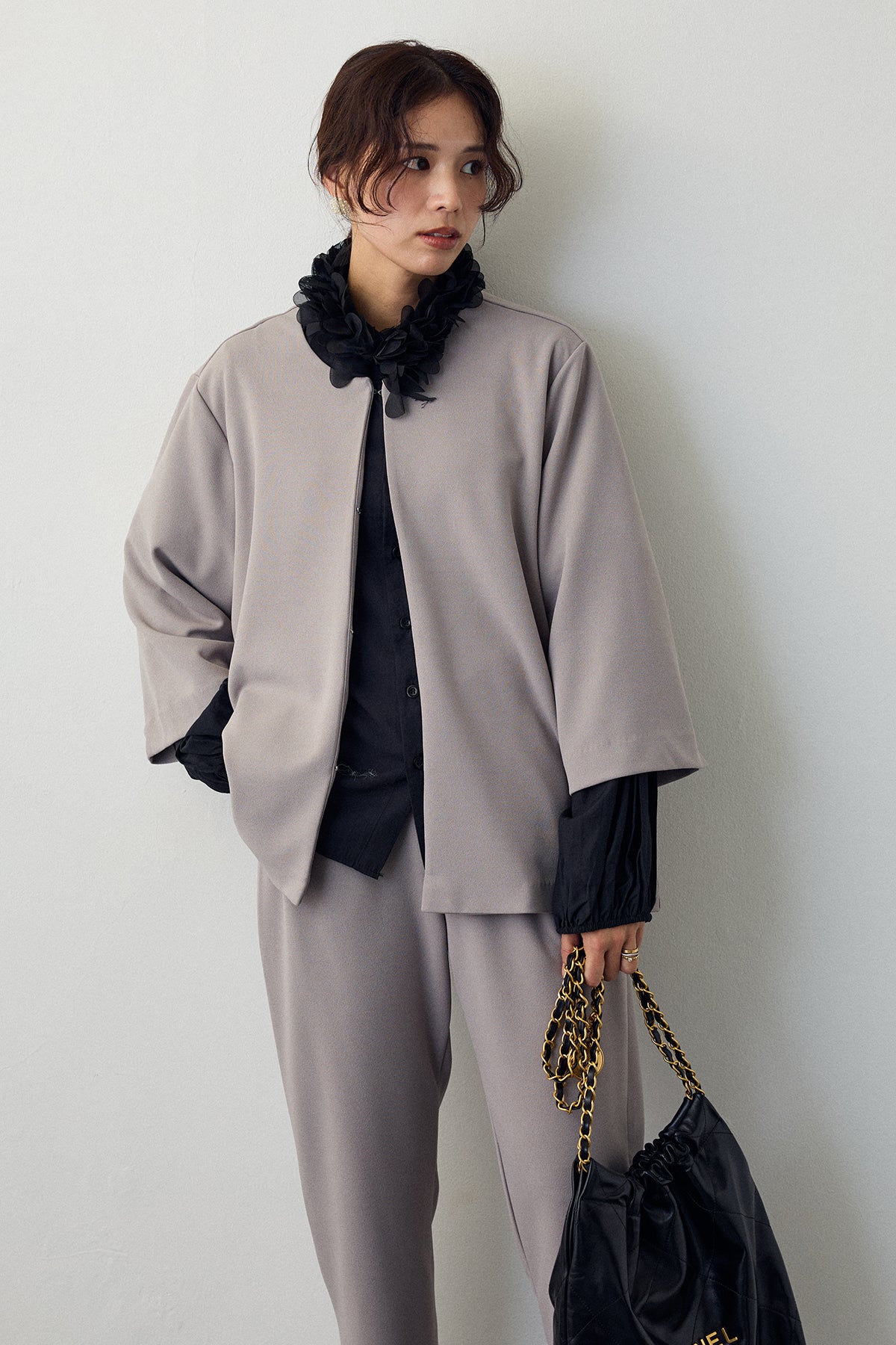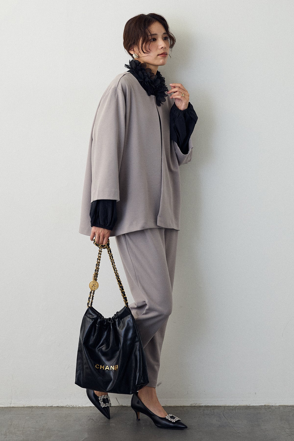 [予約/SET]フラワーフリルネックブラウス+ノーカラージョーゼットセットアップ(2set)