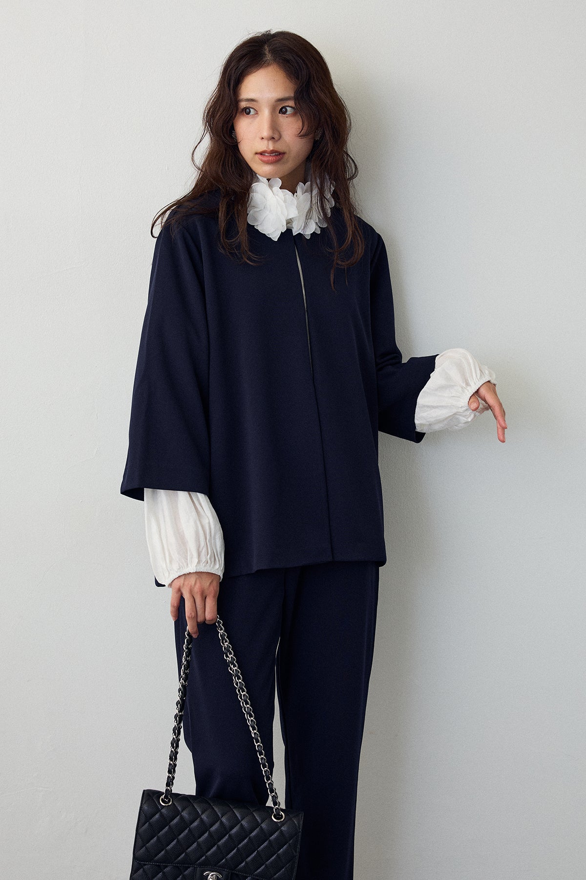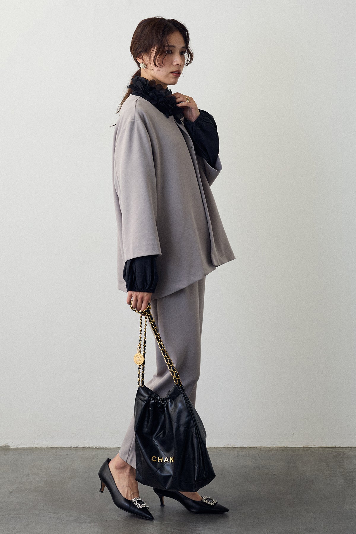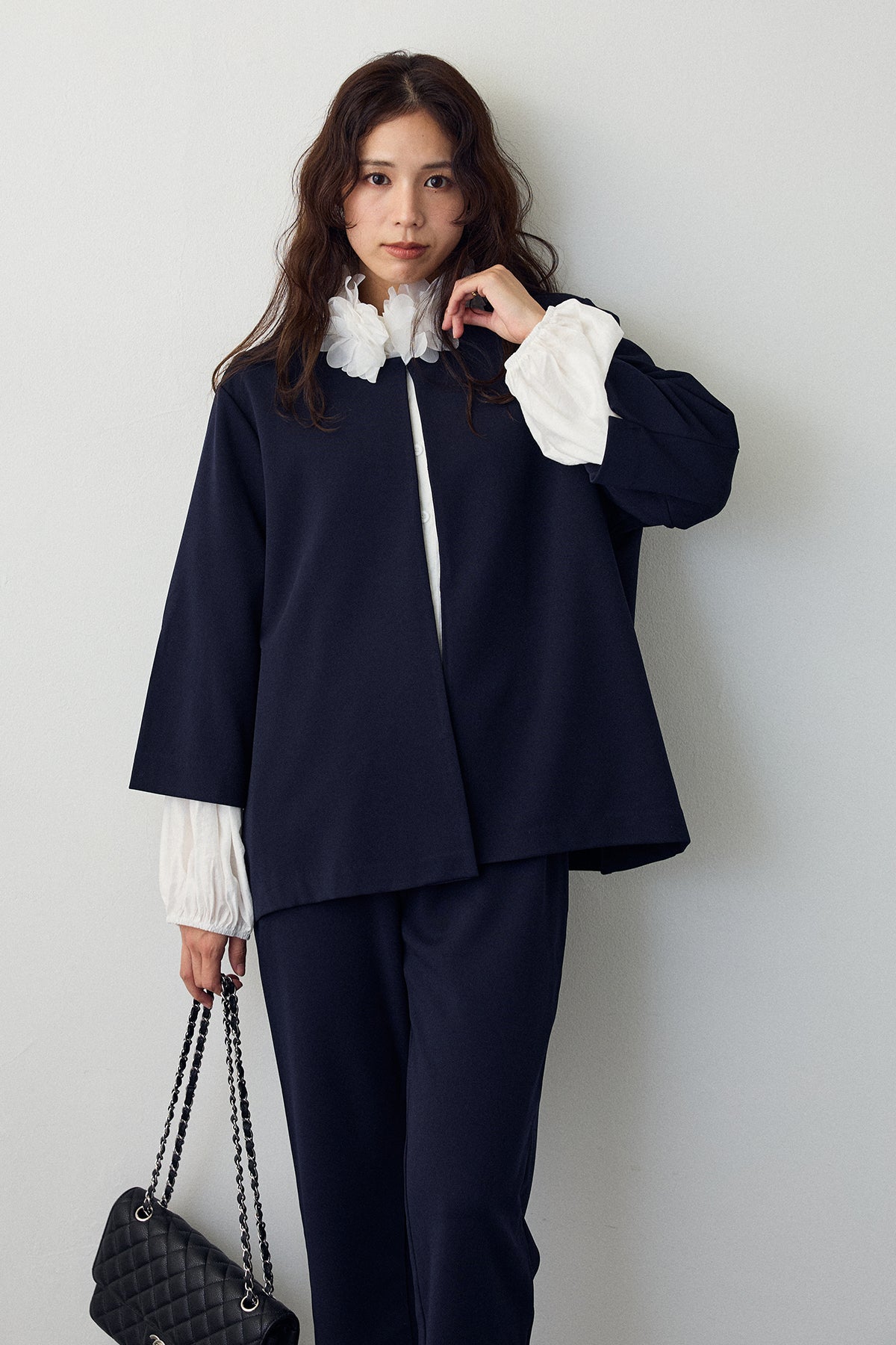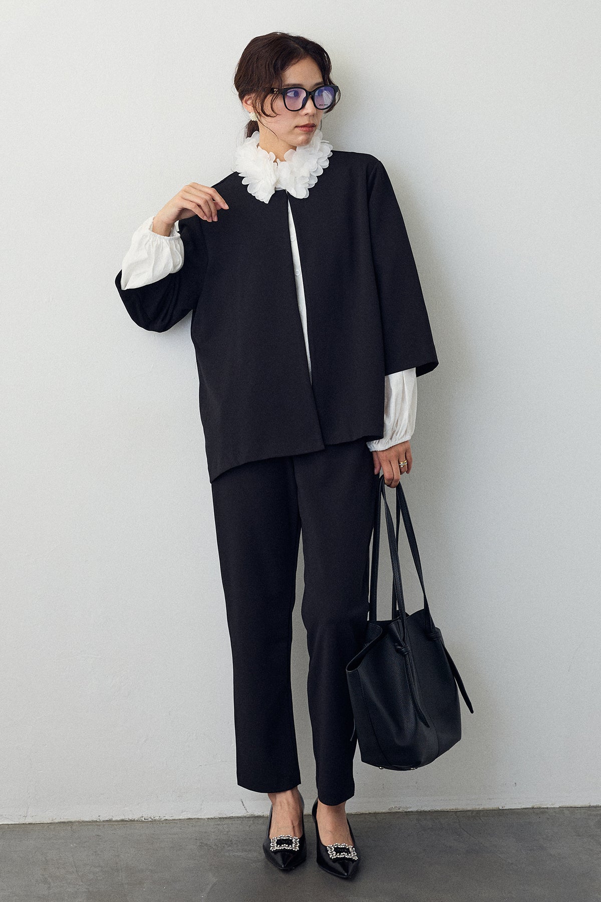 [予約/SET]フラワーフリルネックブラウス+ノーカラージョーゼットセットアップ(2set)