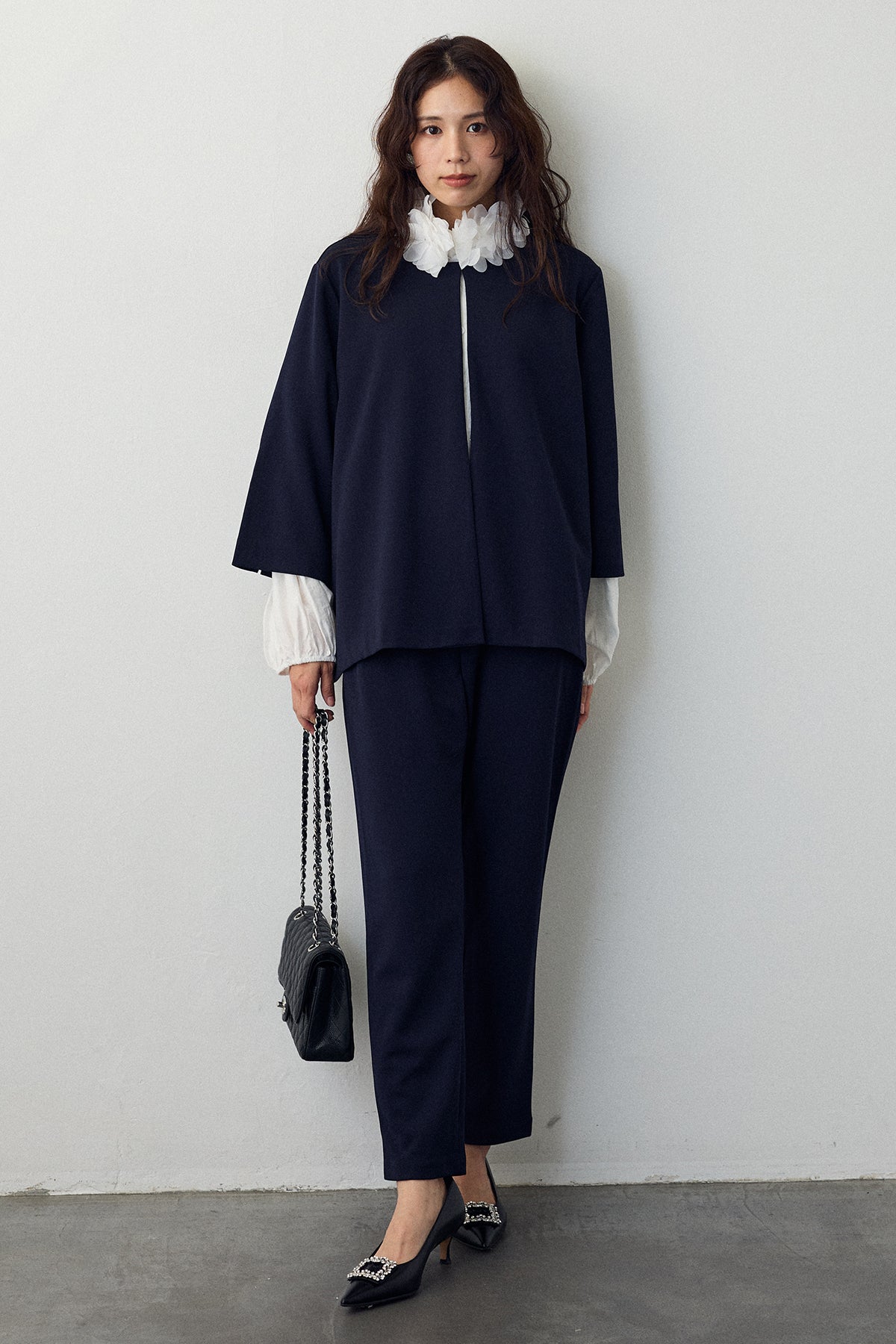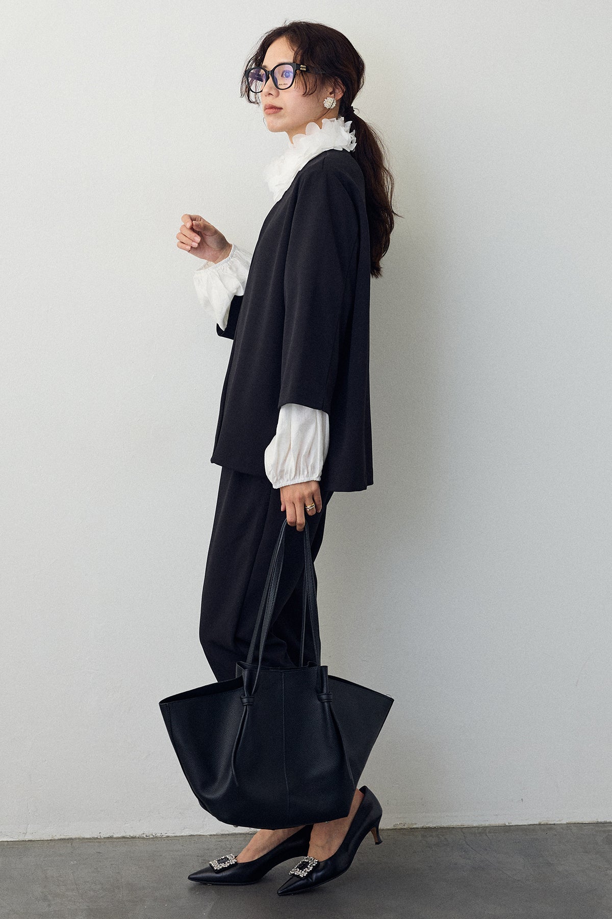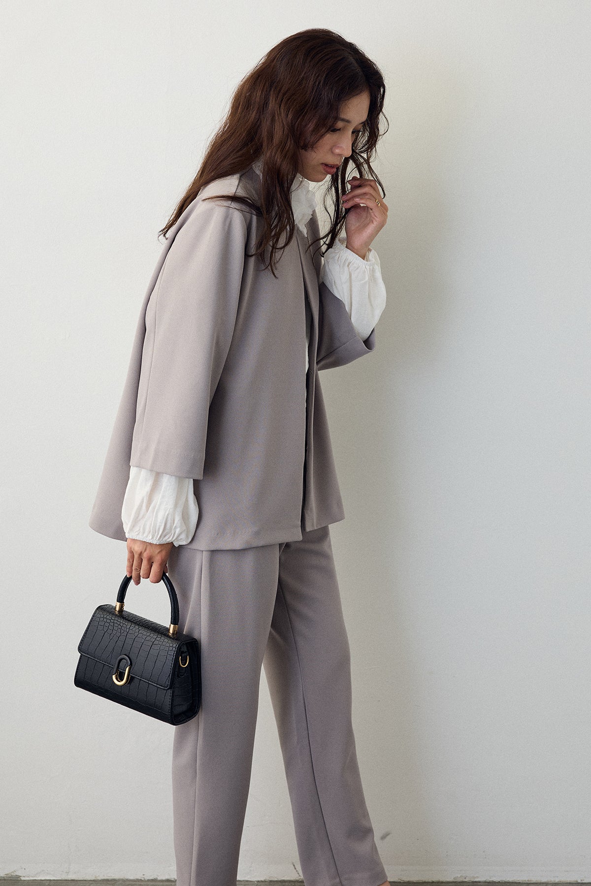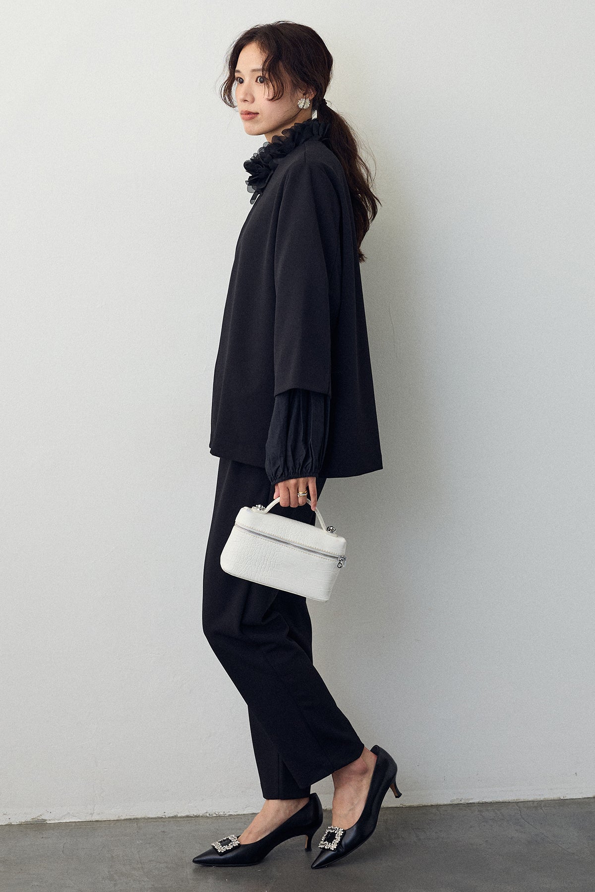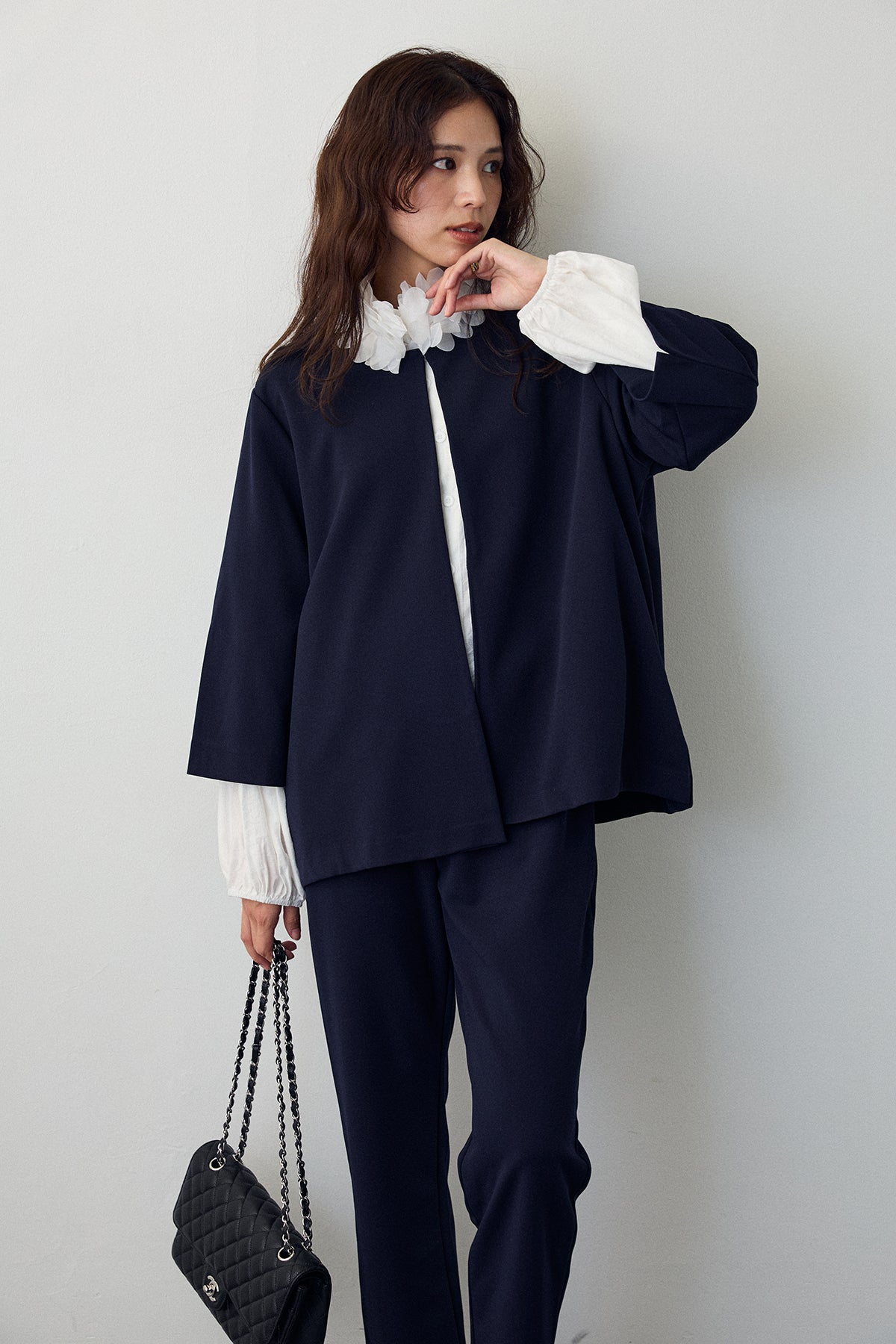 [予約/SET]フラワーフリルネックブラウス+ノーカラージョーゼットセットアップ(2set)