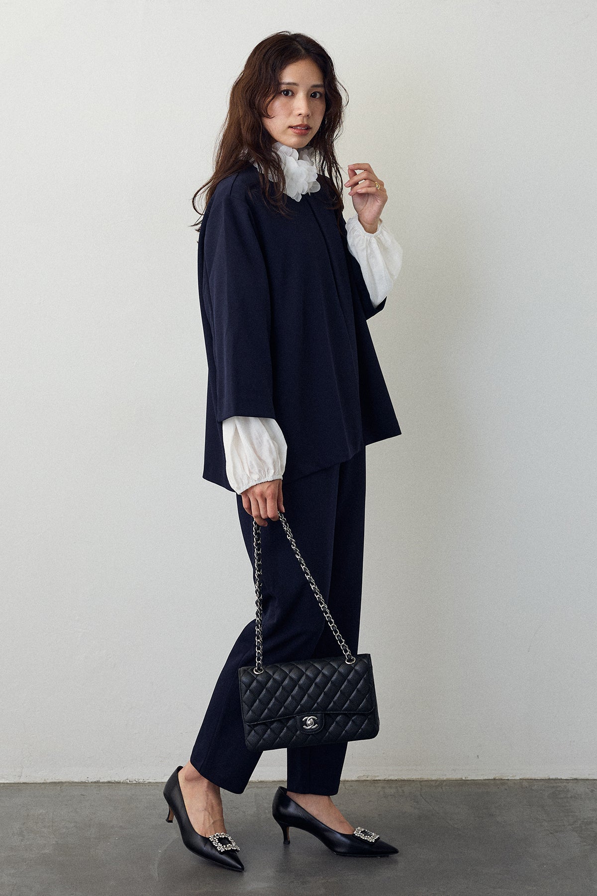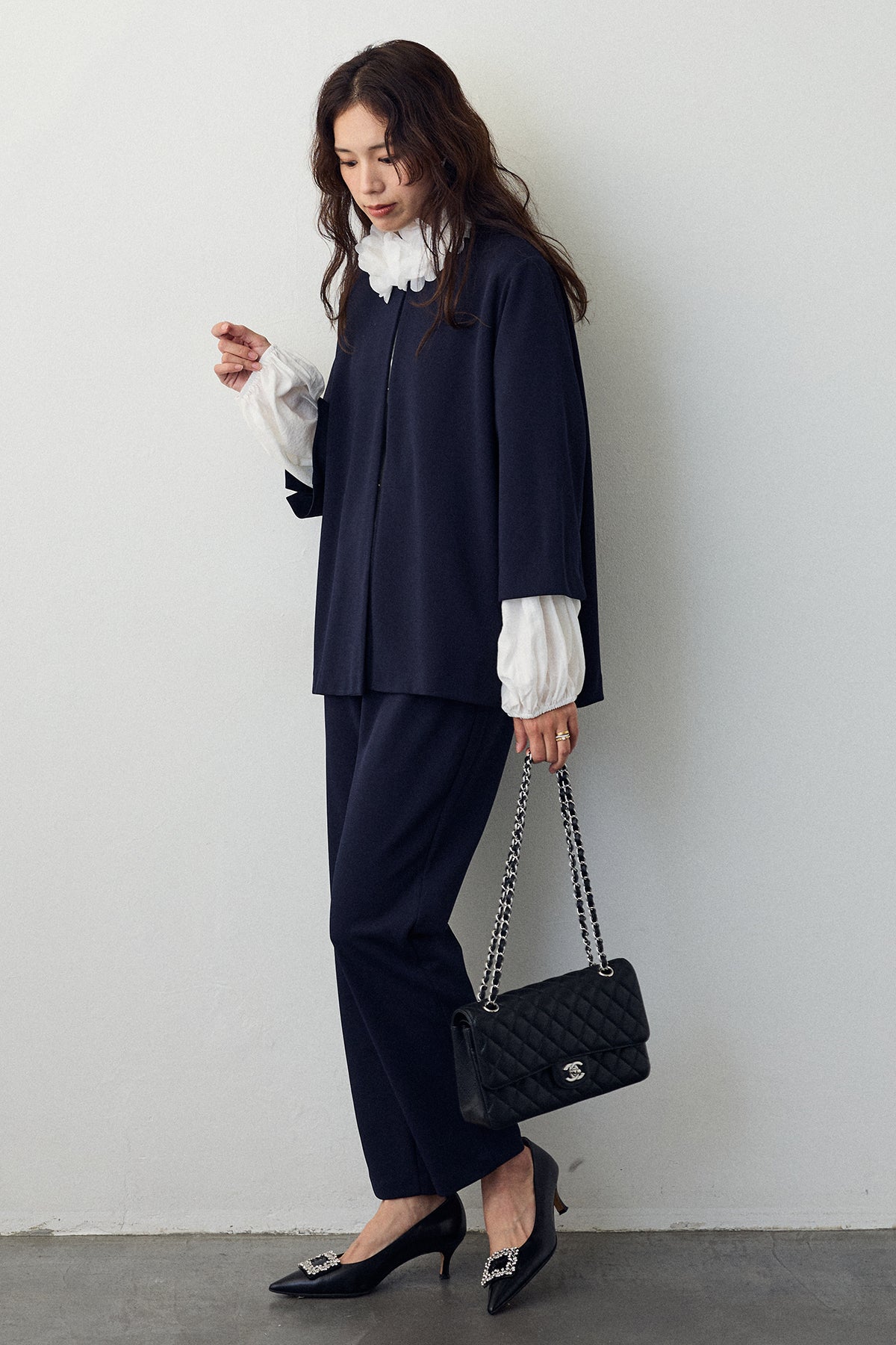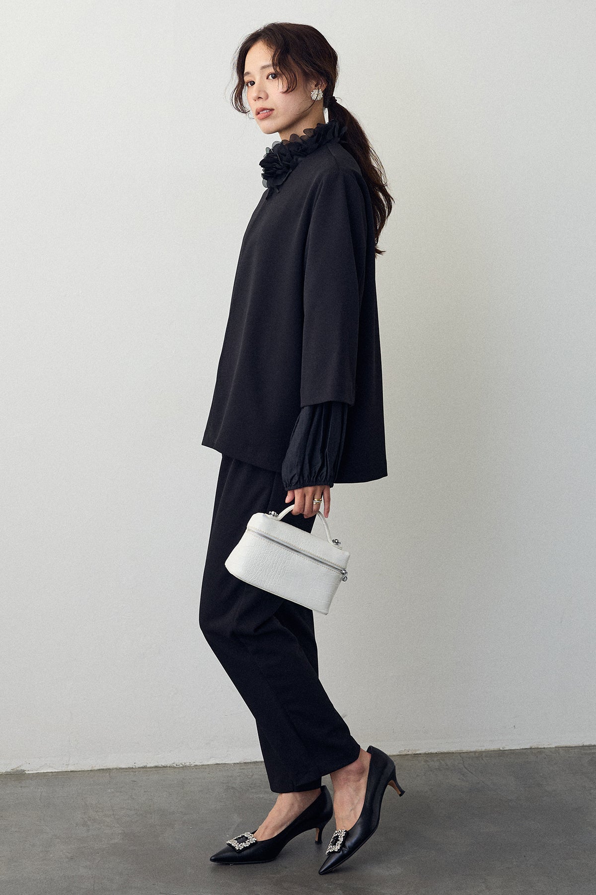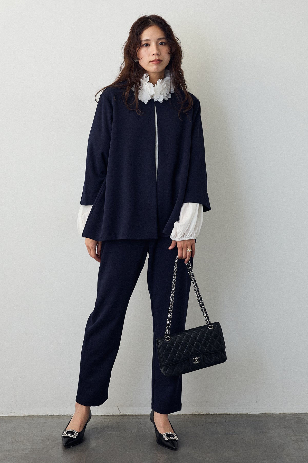 [予約/SET]フラワーフリルネックブラウス+ノーカラージョーゼットセットアップ(2set)