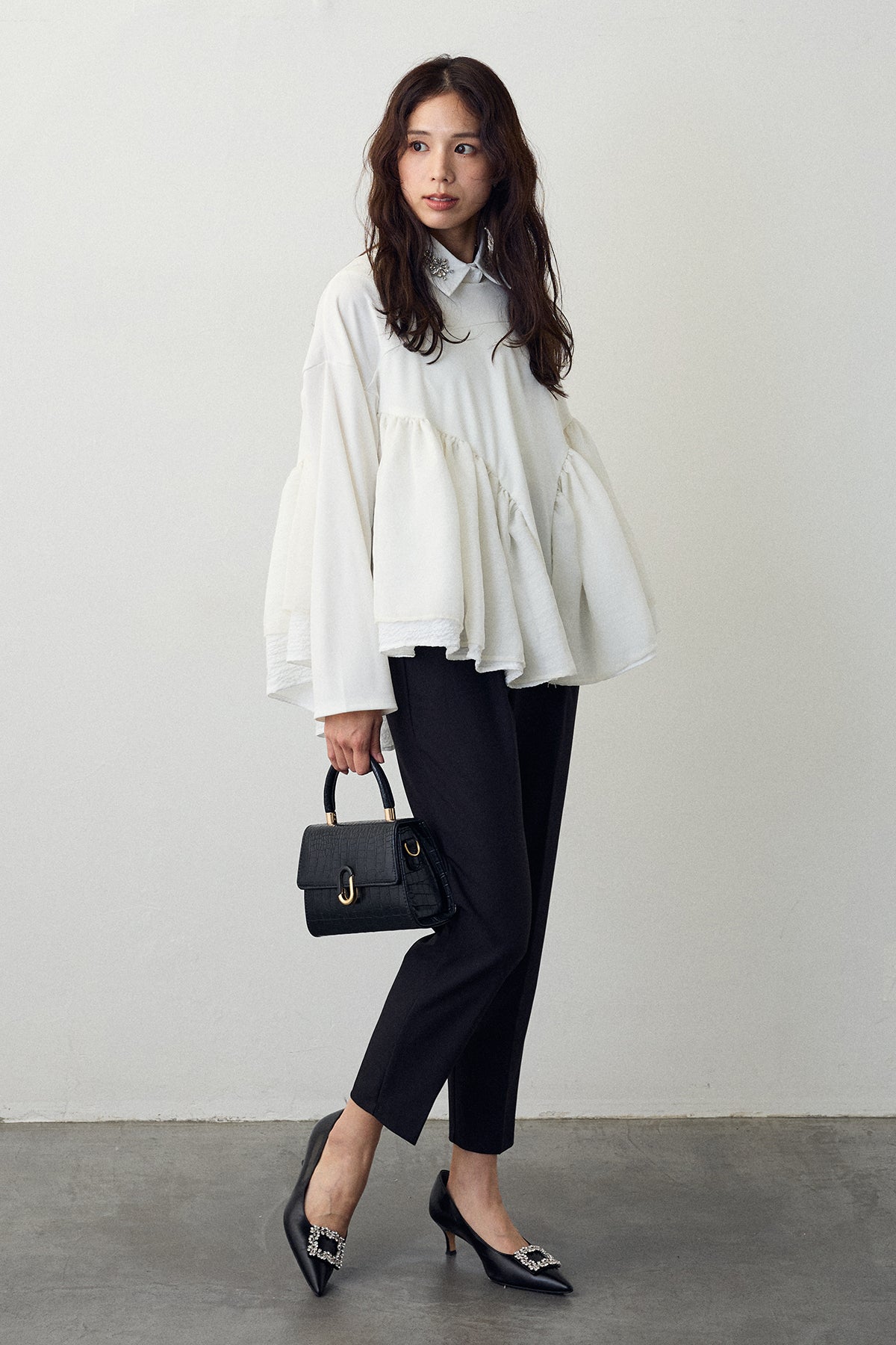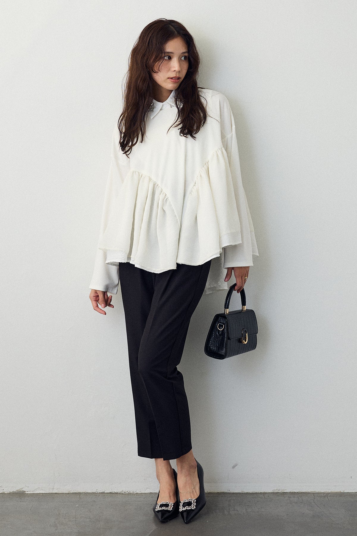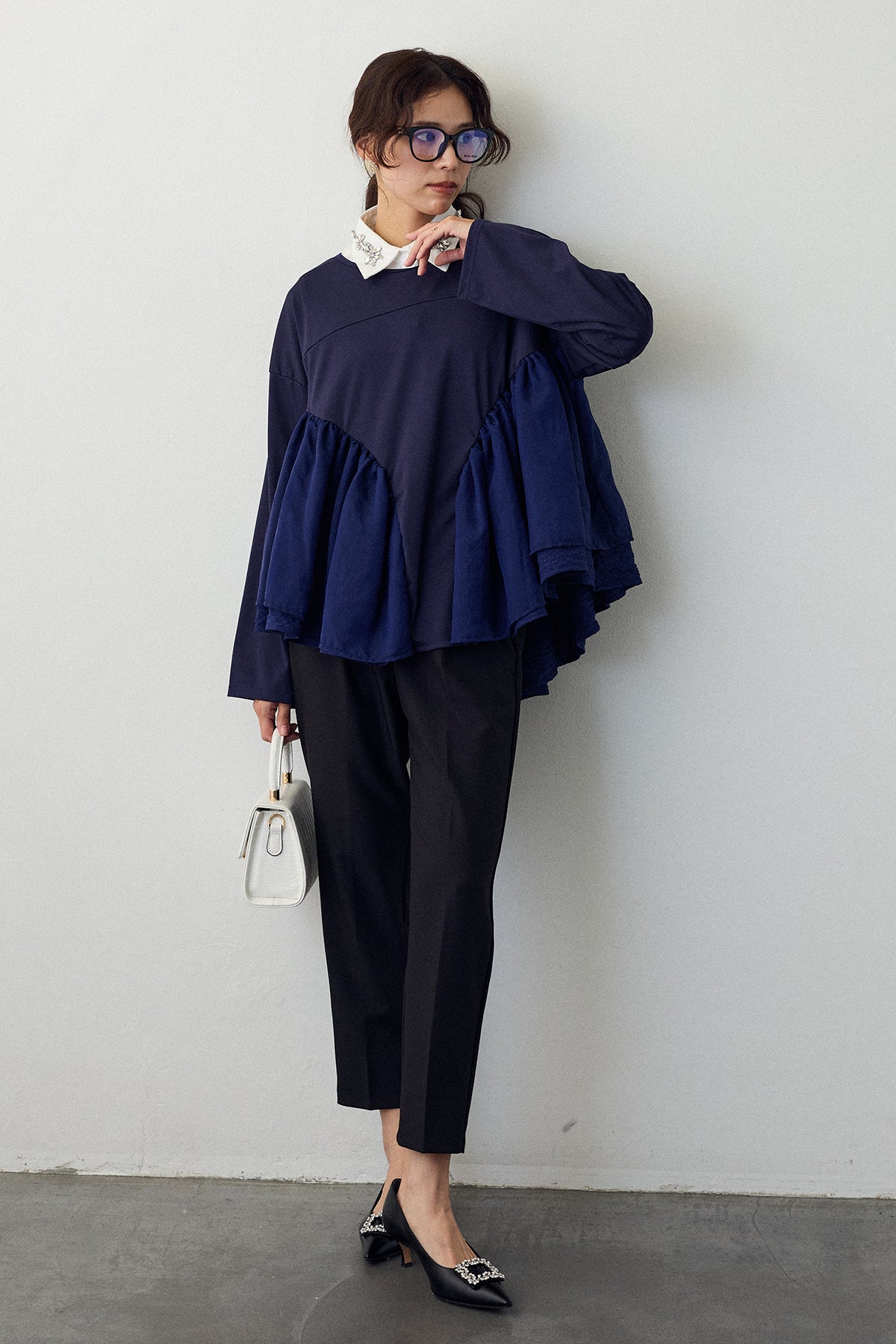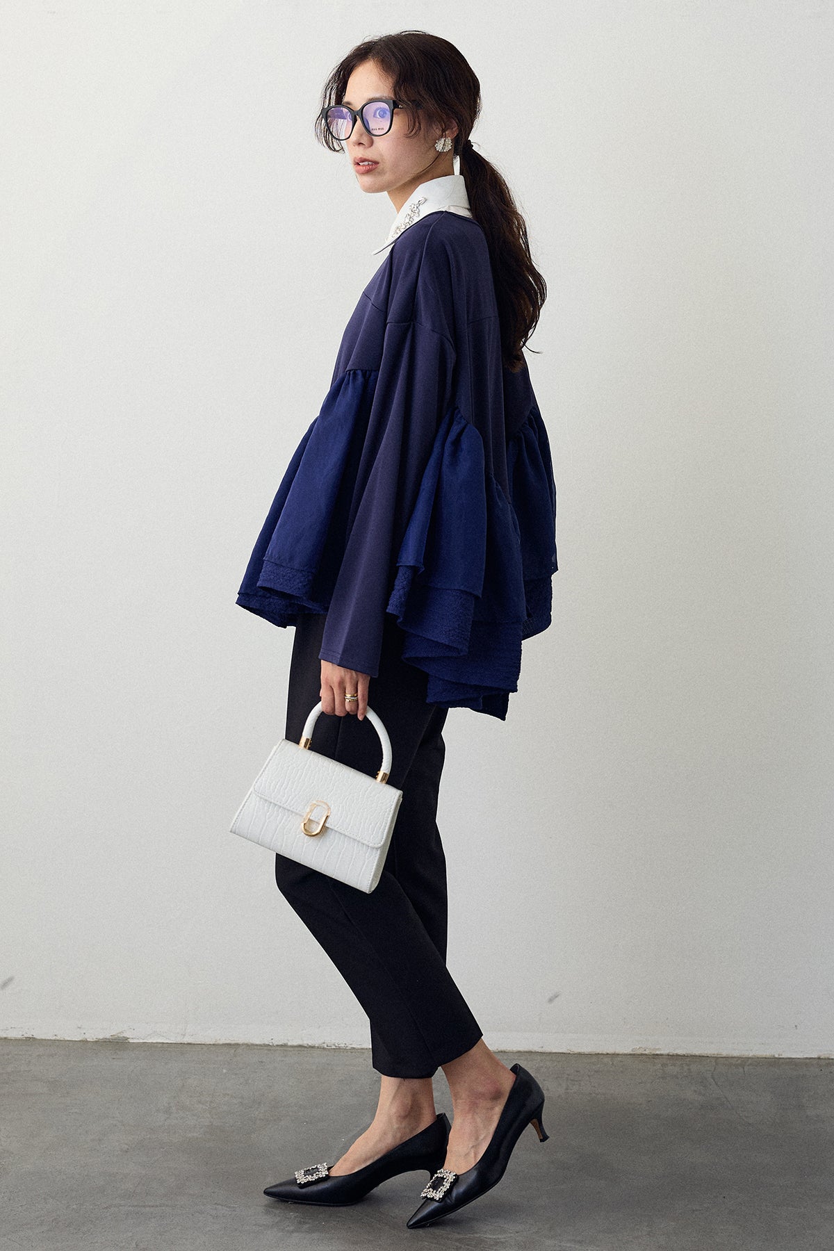 [予約/SET]ビジュー付け襟+フリルテール異素材切替チュニック(2set)