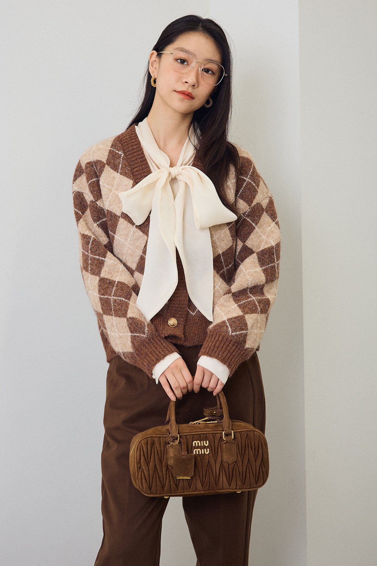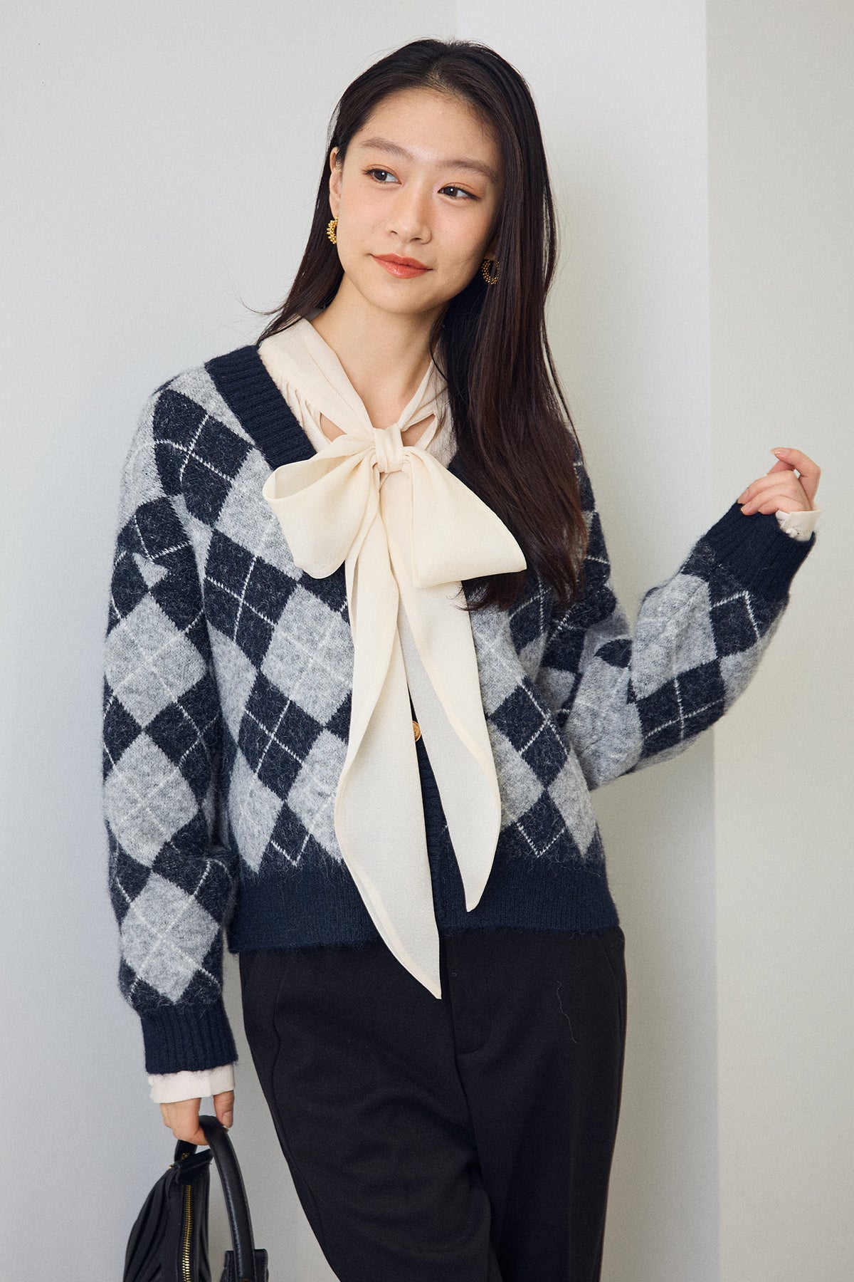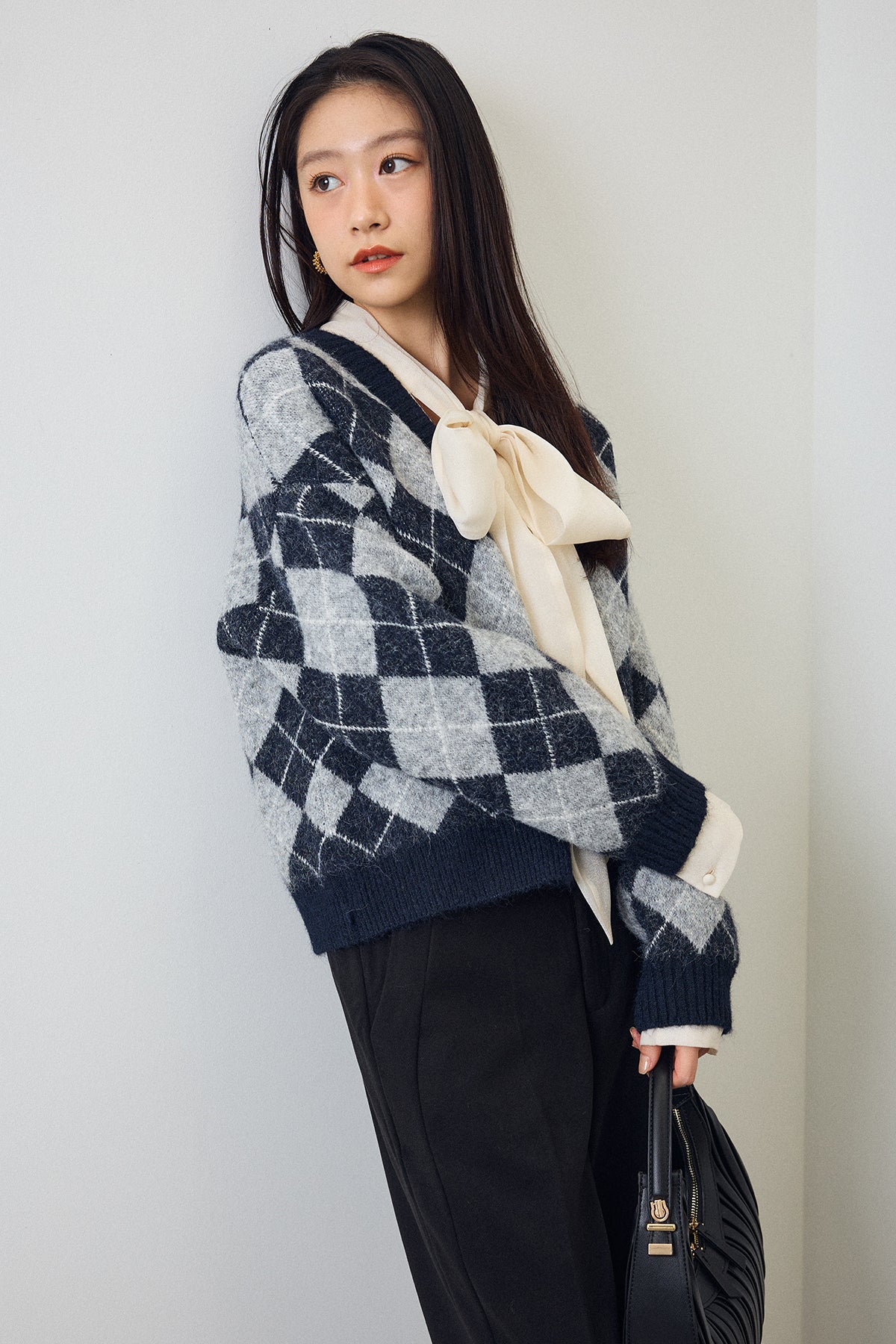 [予約]アーガイル柄ゴールドボタンニットカーデ