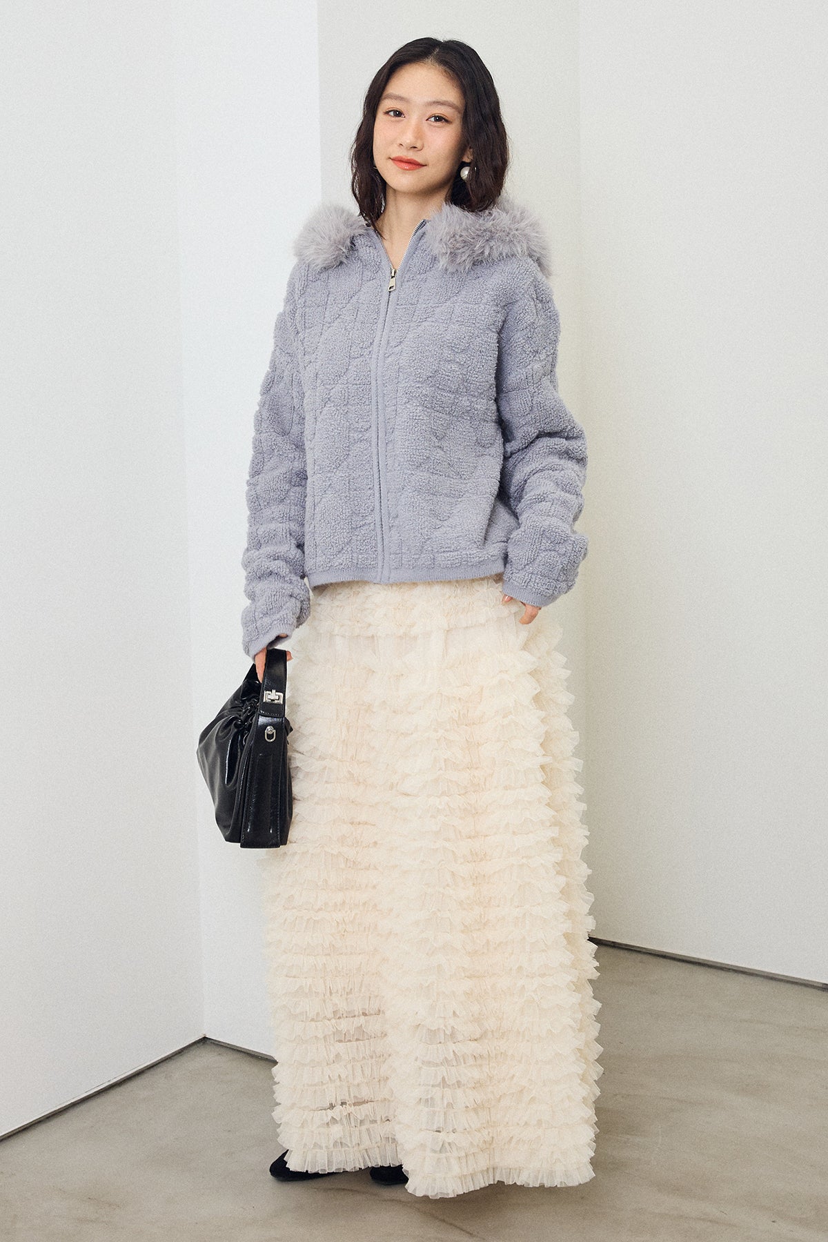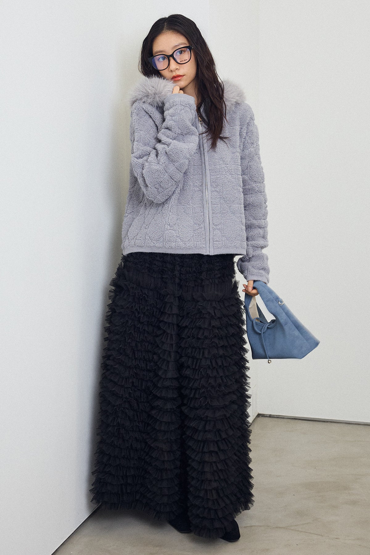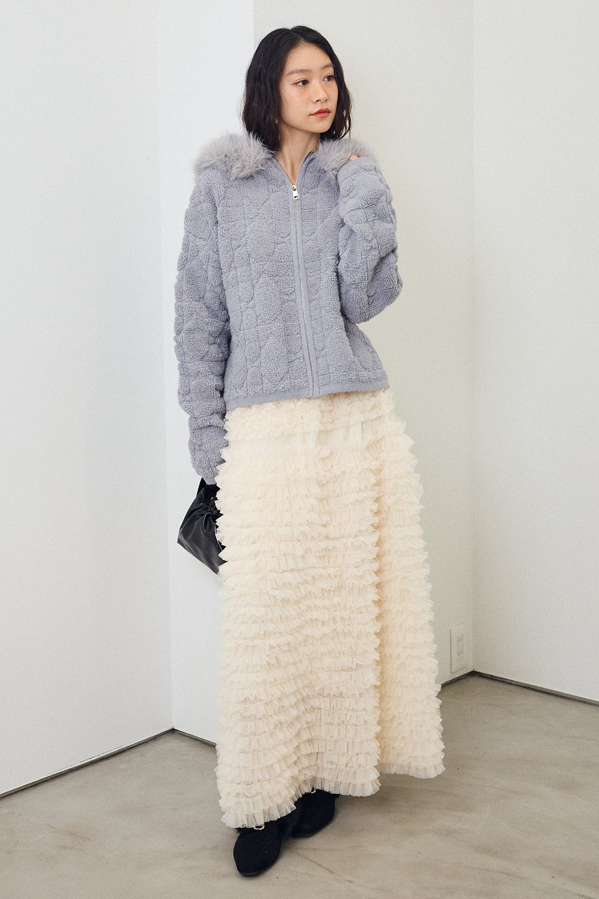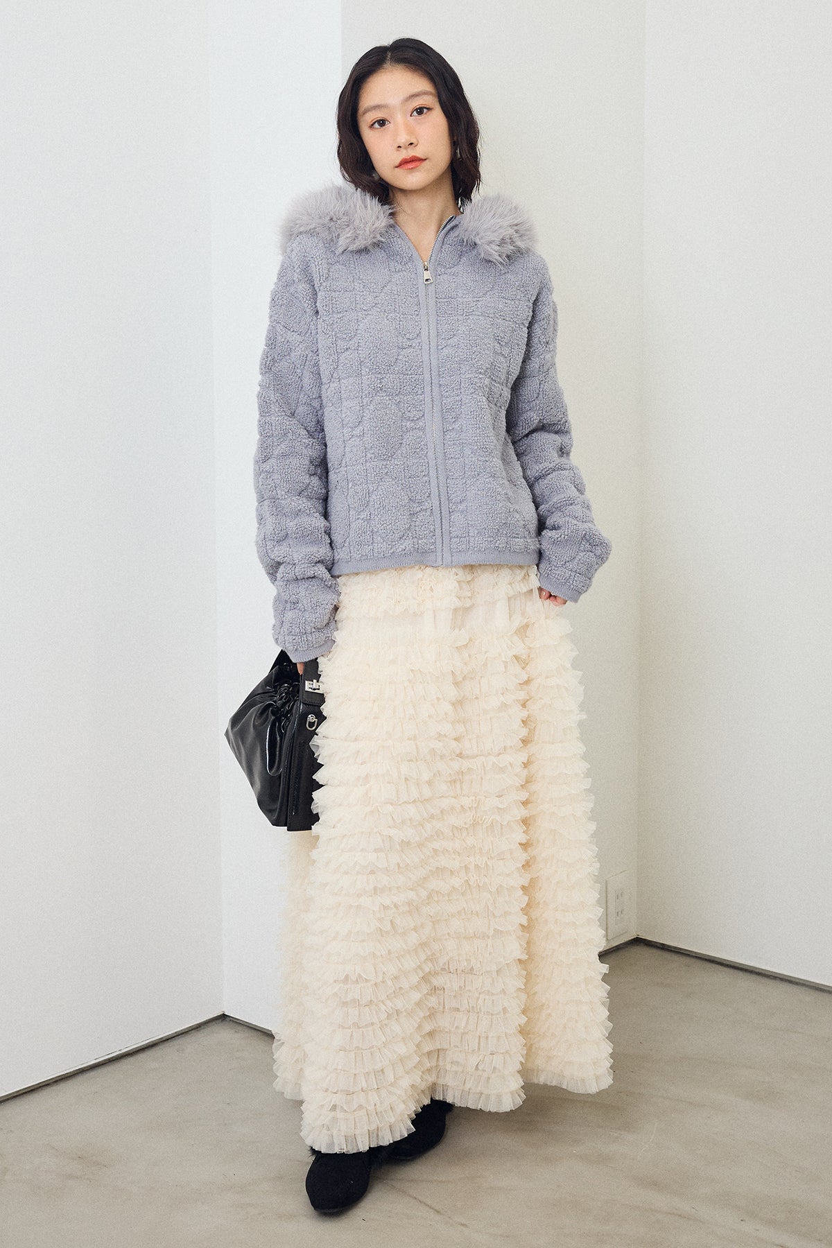 [予約/SET]フードファーキルトZIPニットブルゾン+ホイップチュールティアードスカート(2set)