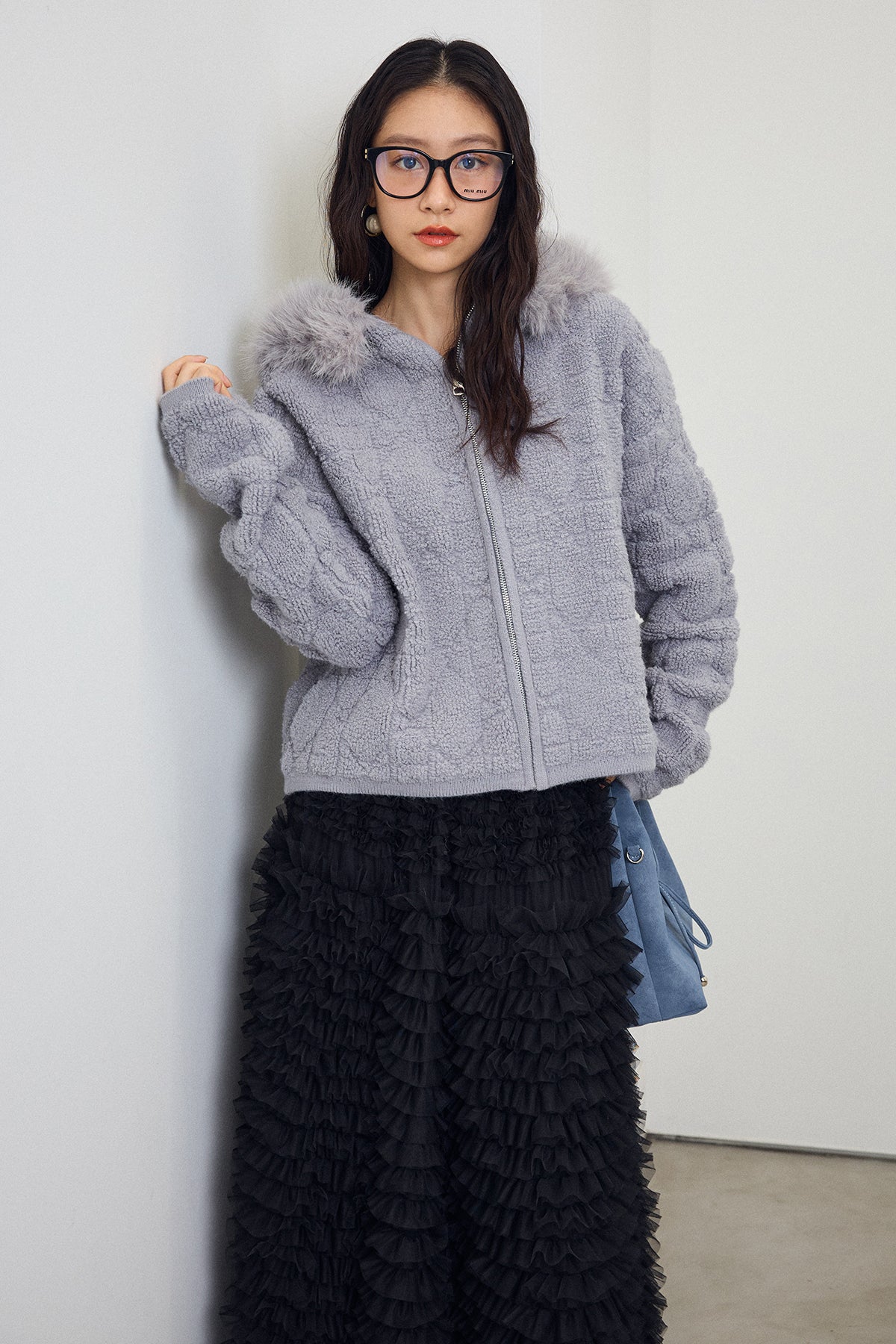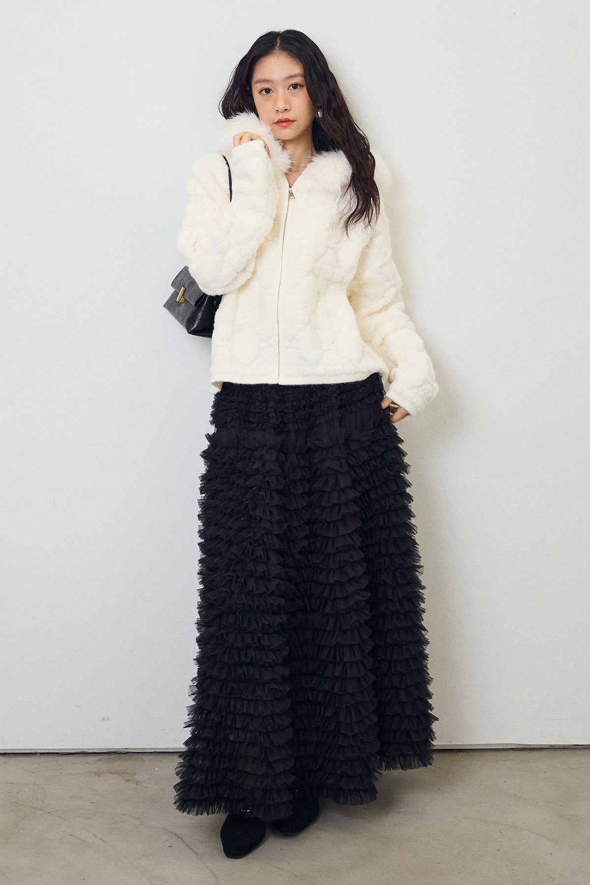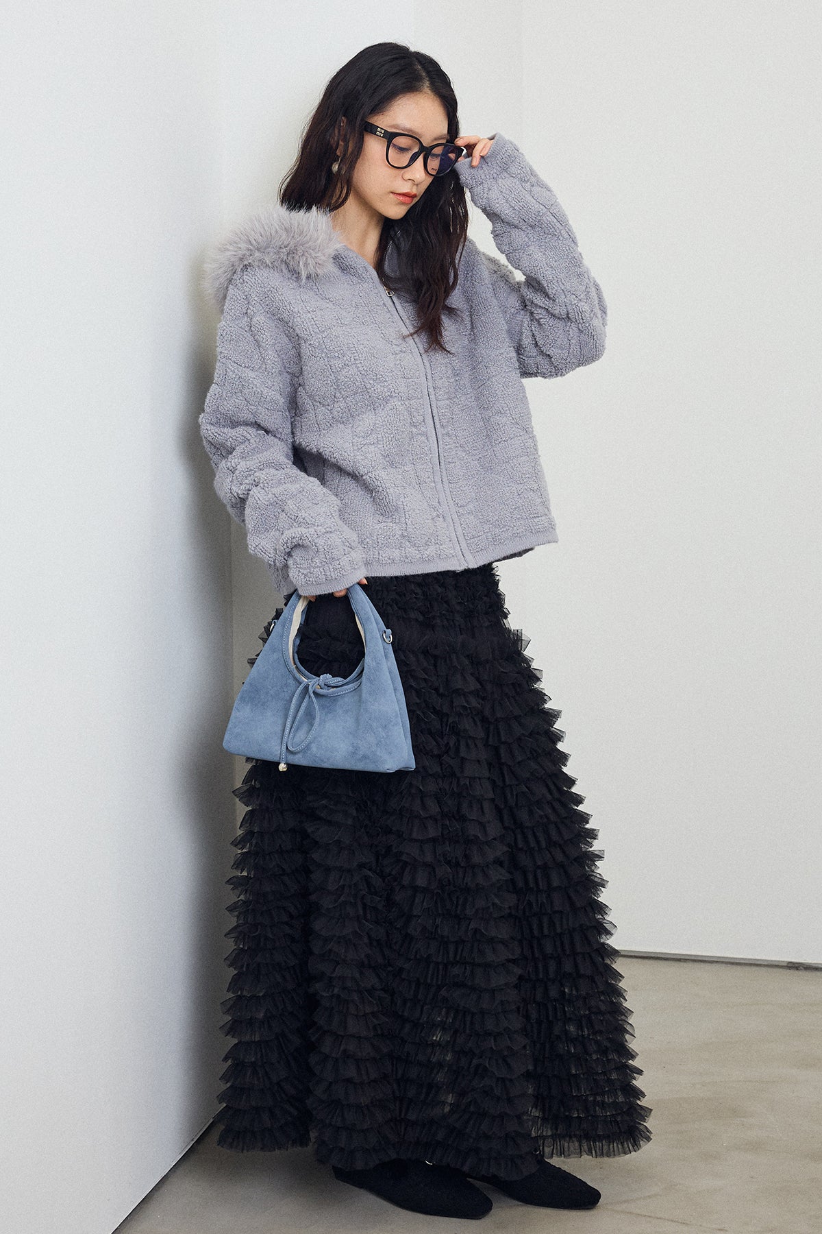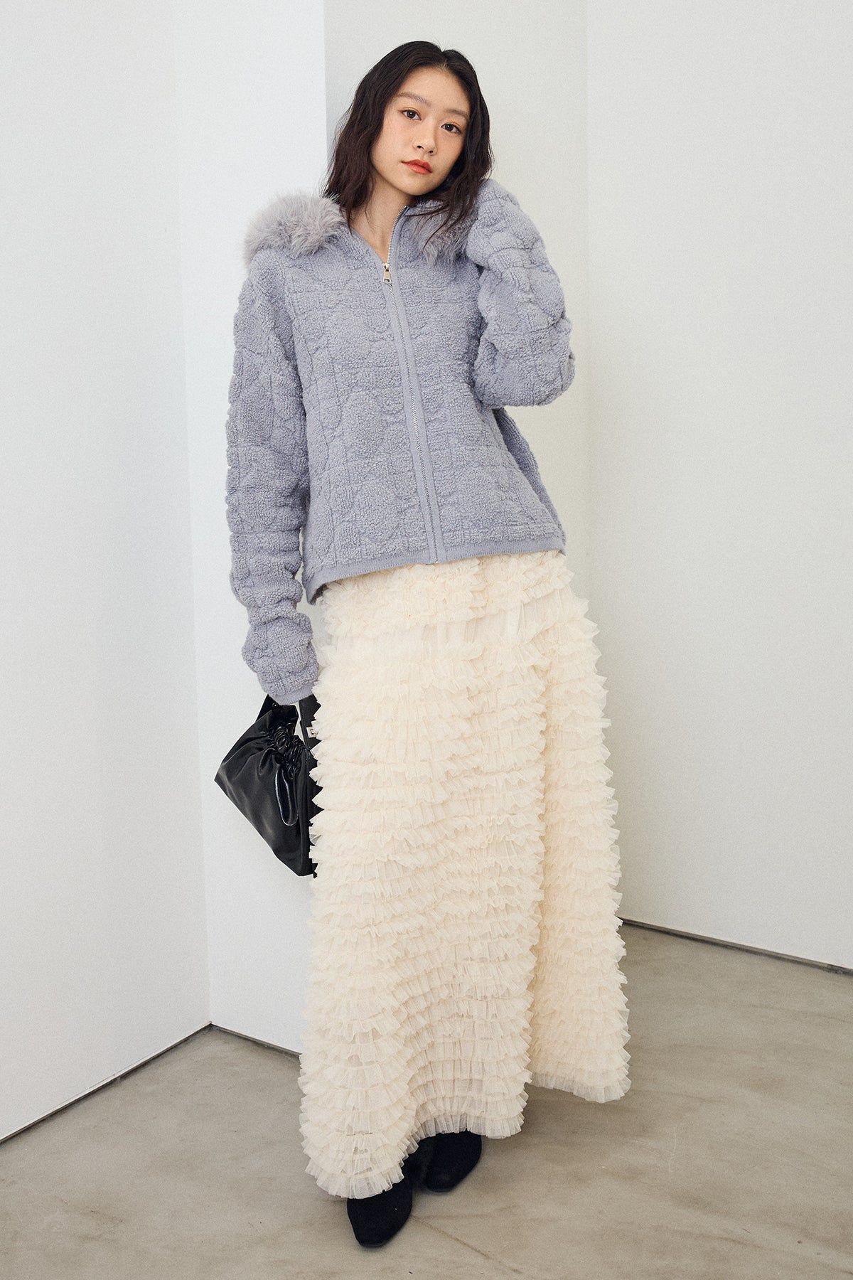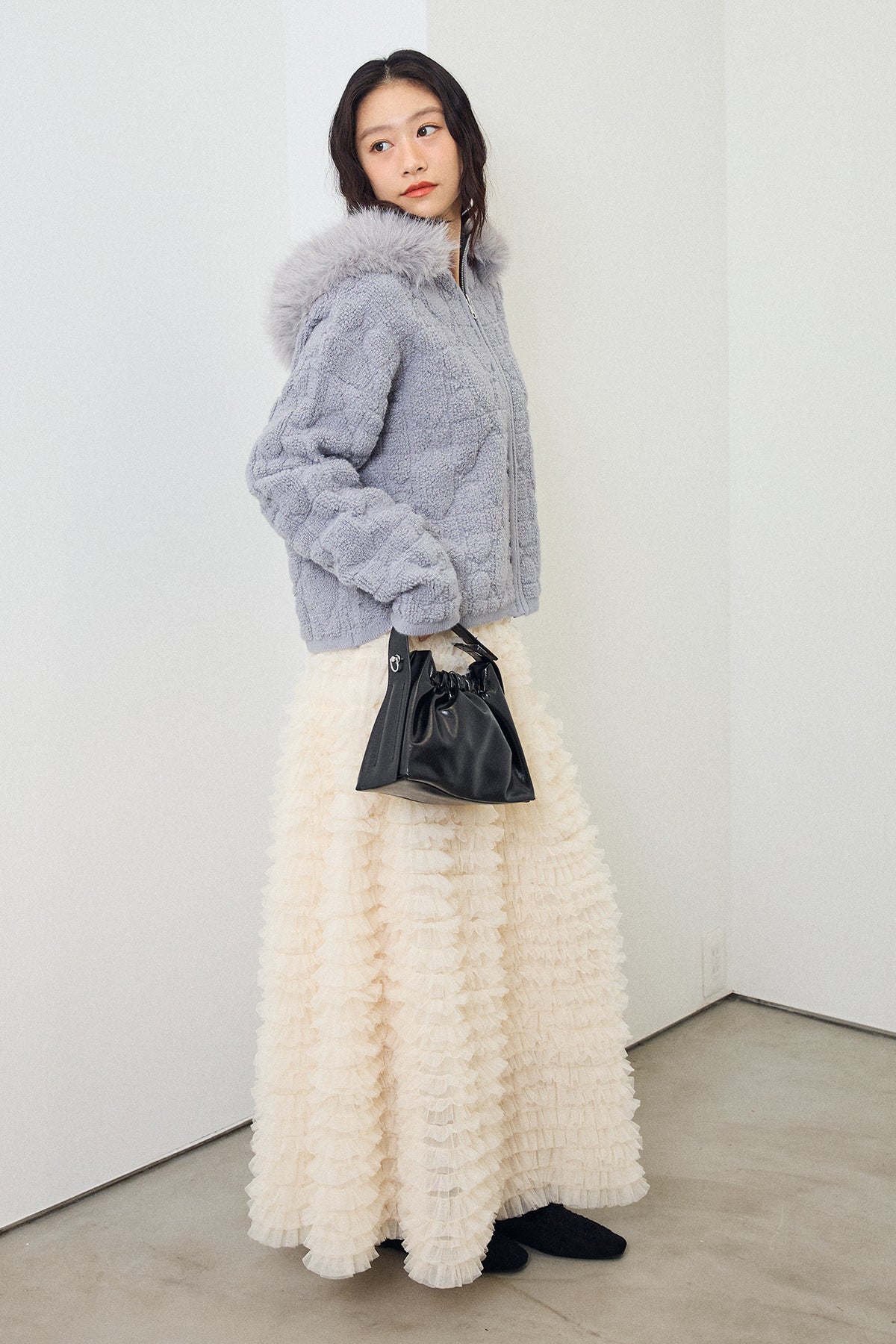 [予約/SET]フードファーキルトZIPニットブルゾン+ホイップチュールティアードスカート(2set)