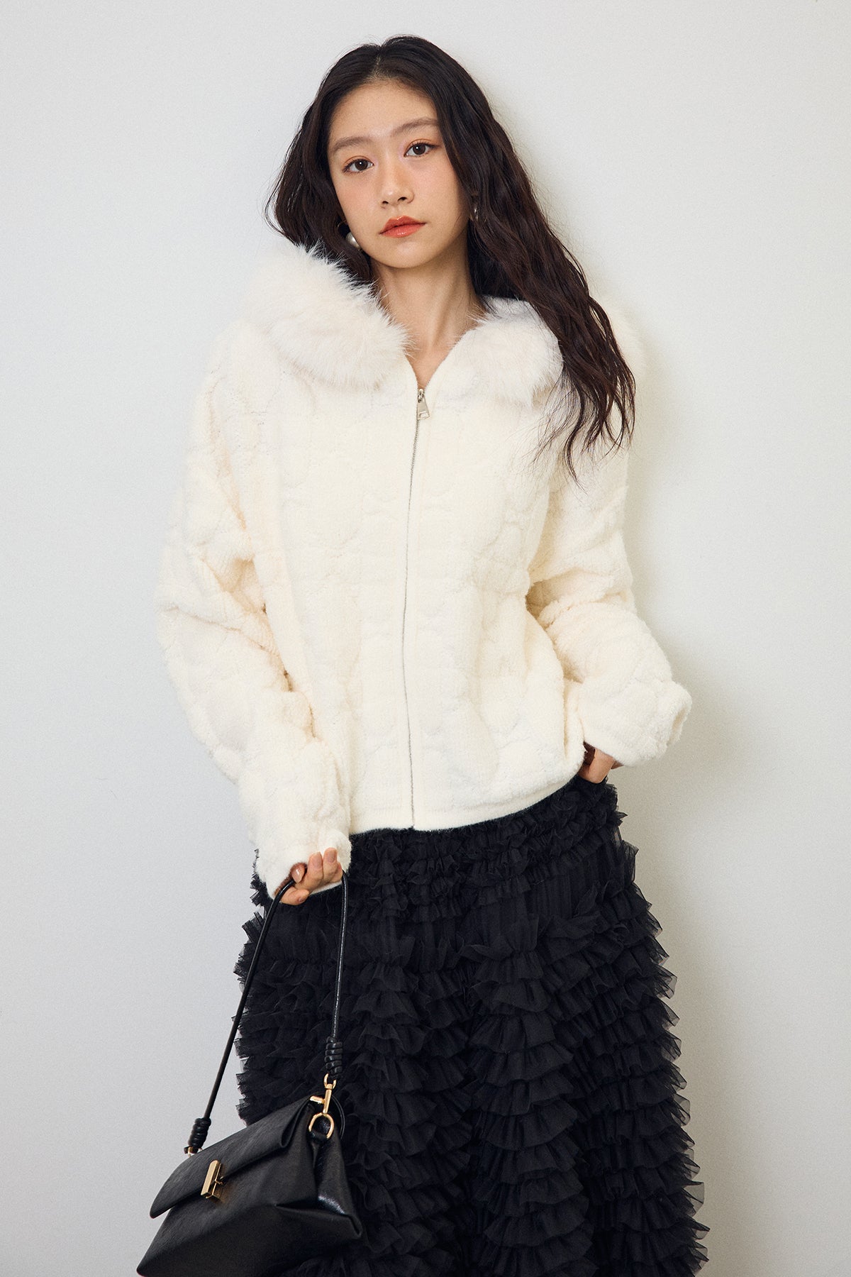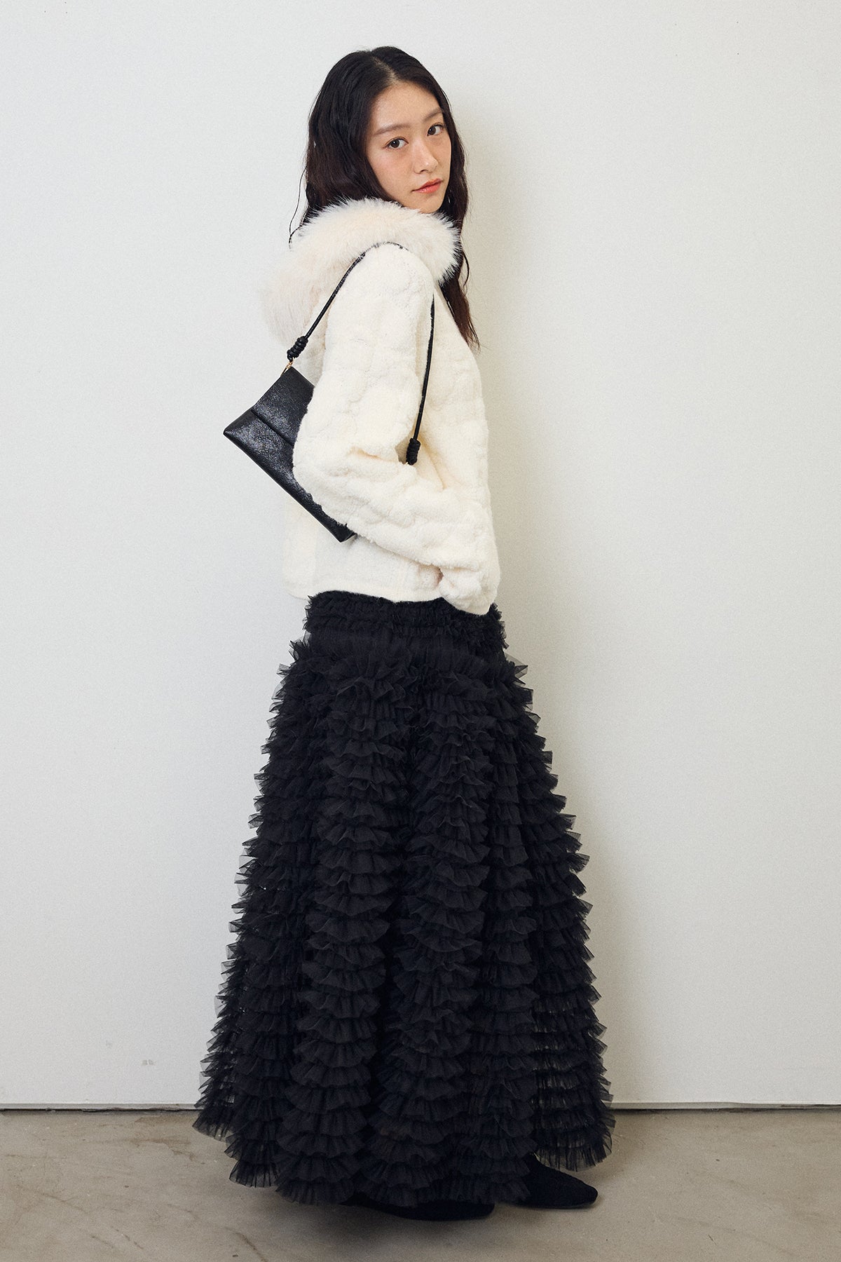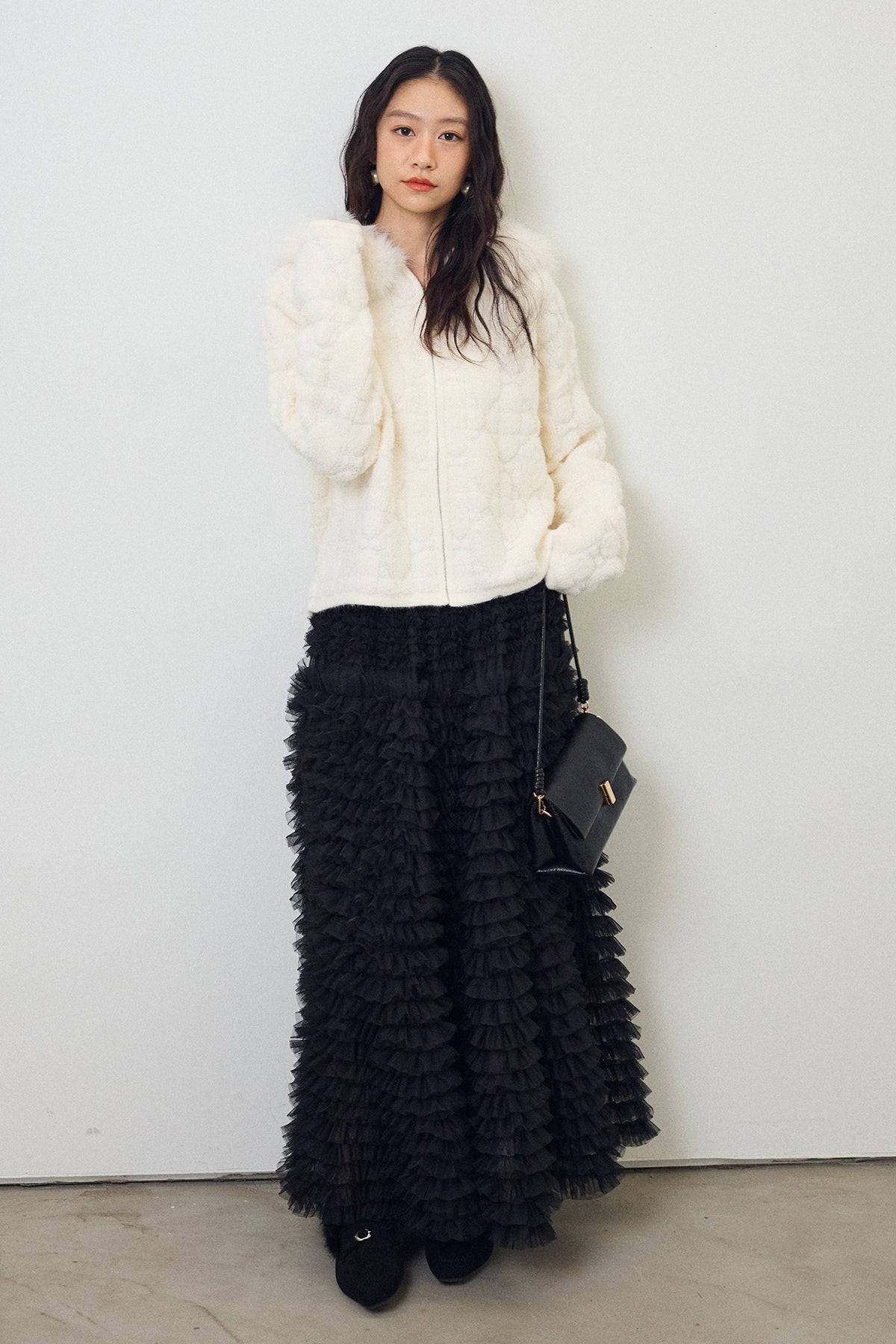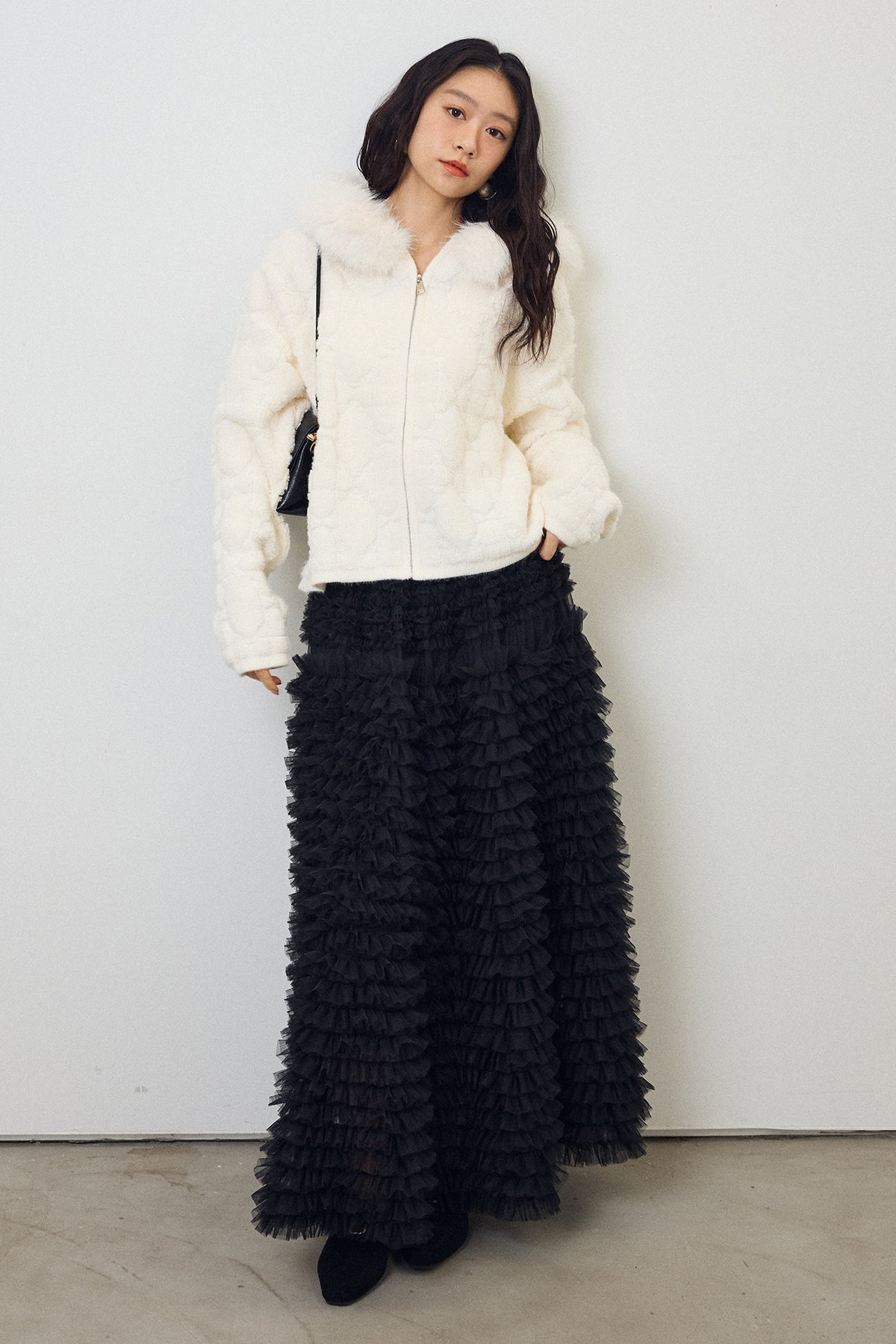 [予約/SET]フードファーキルトZIPニットブルゾン+ホイップチュールティアードスカート(2set)