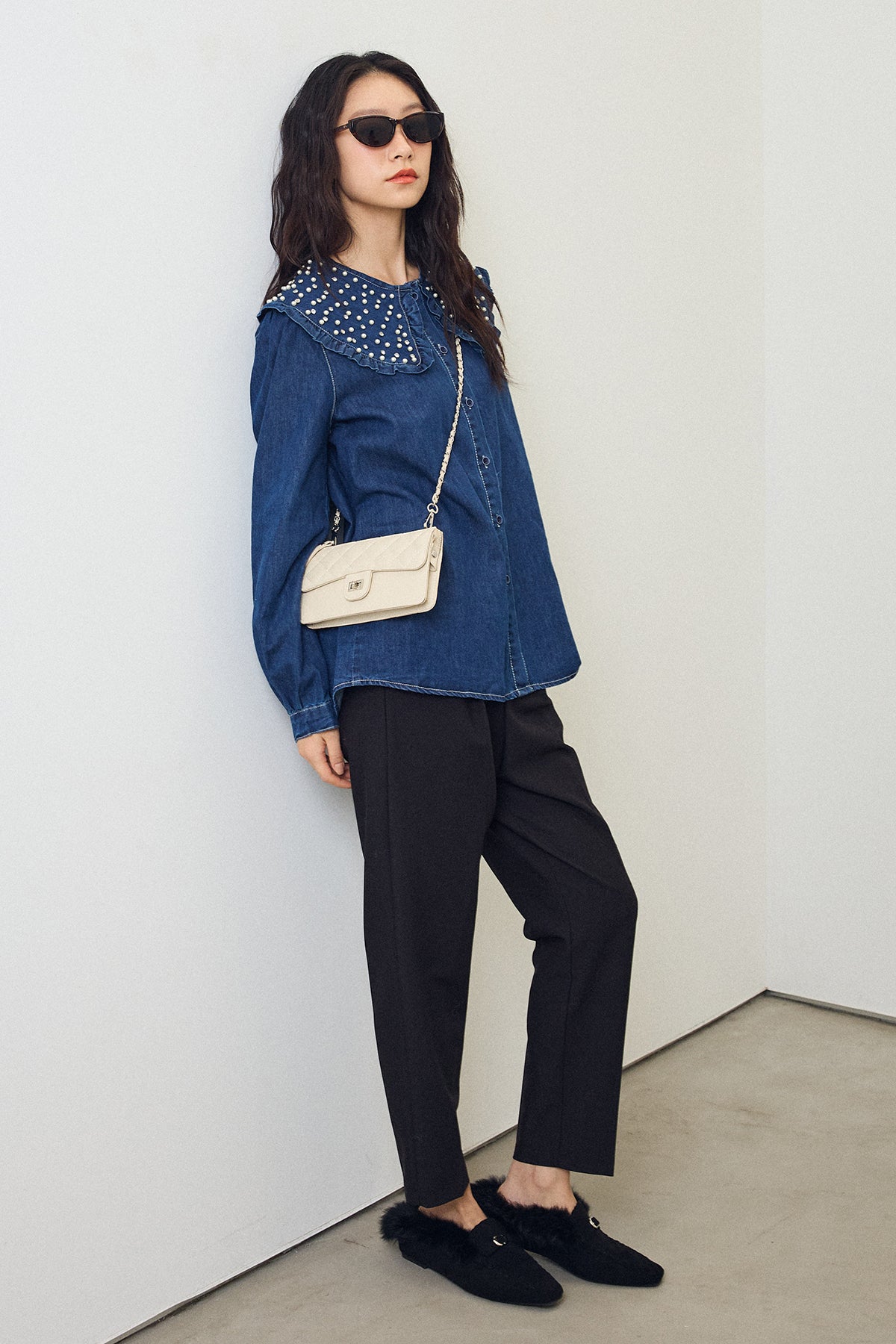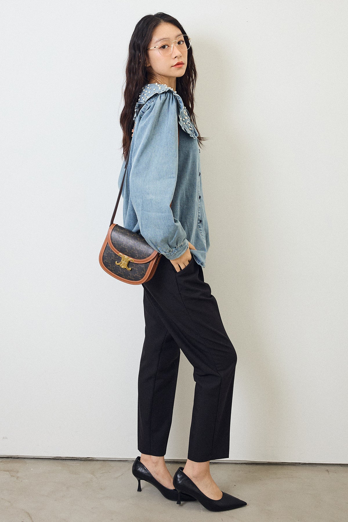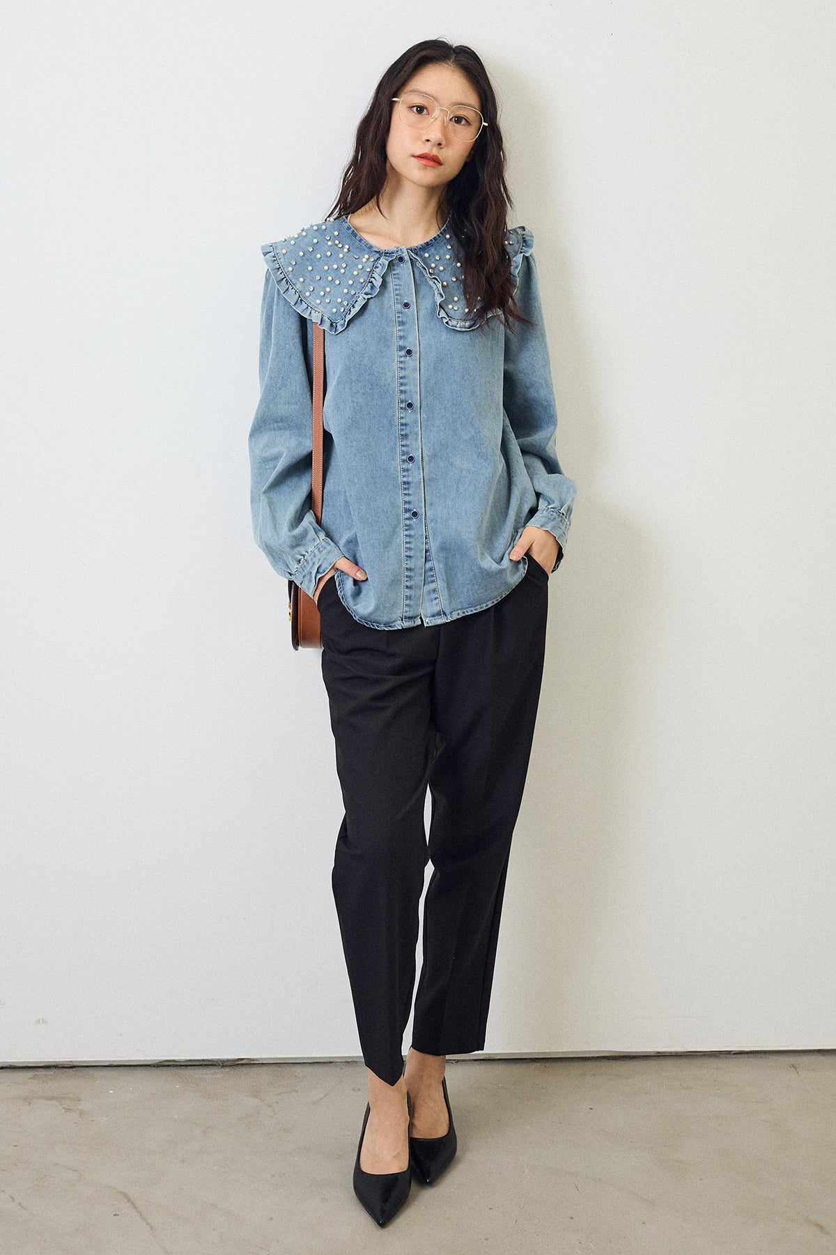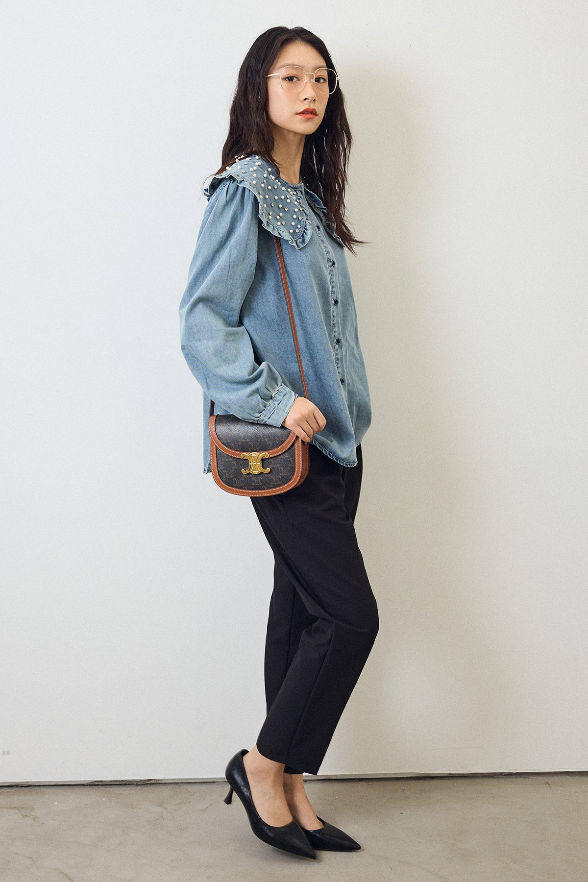 [予約/SET]パールBIGカラーデニムシャツ+タックテーパードパンツ(2set)