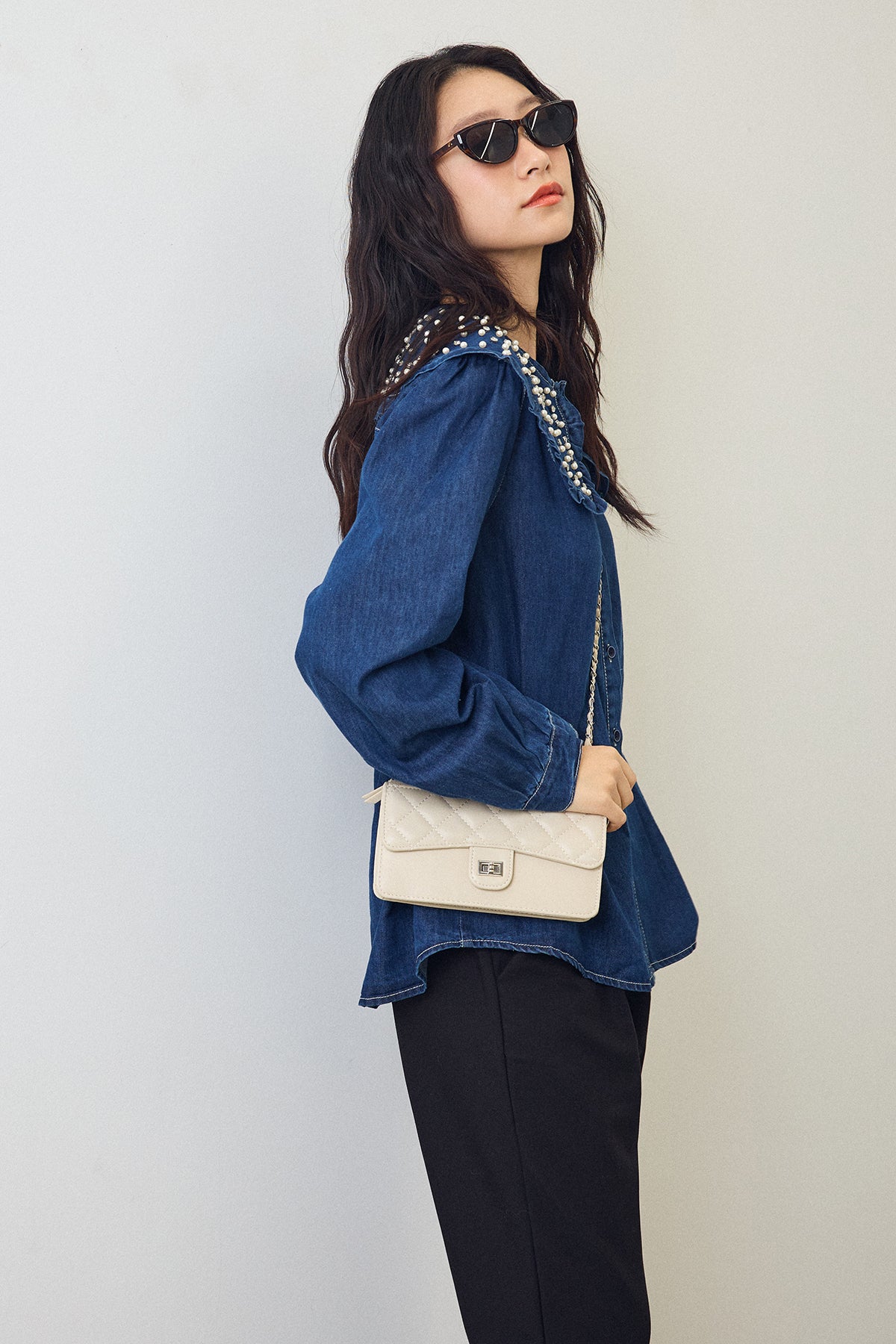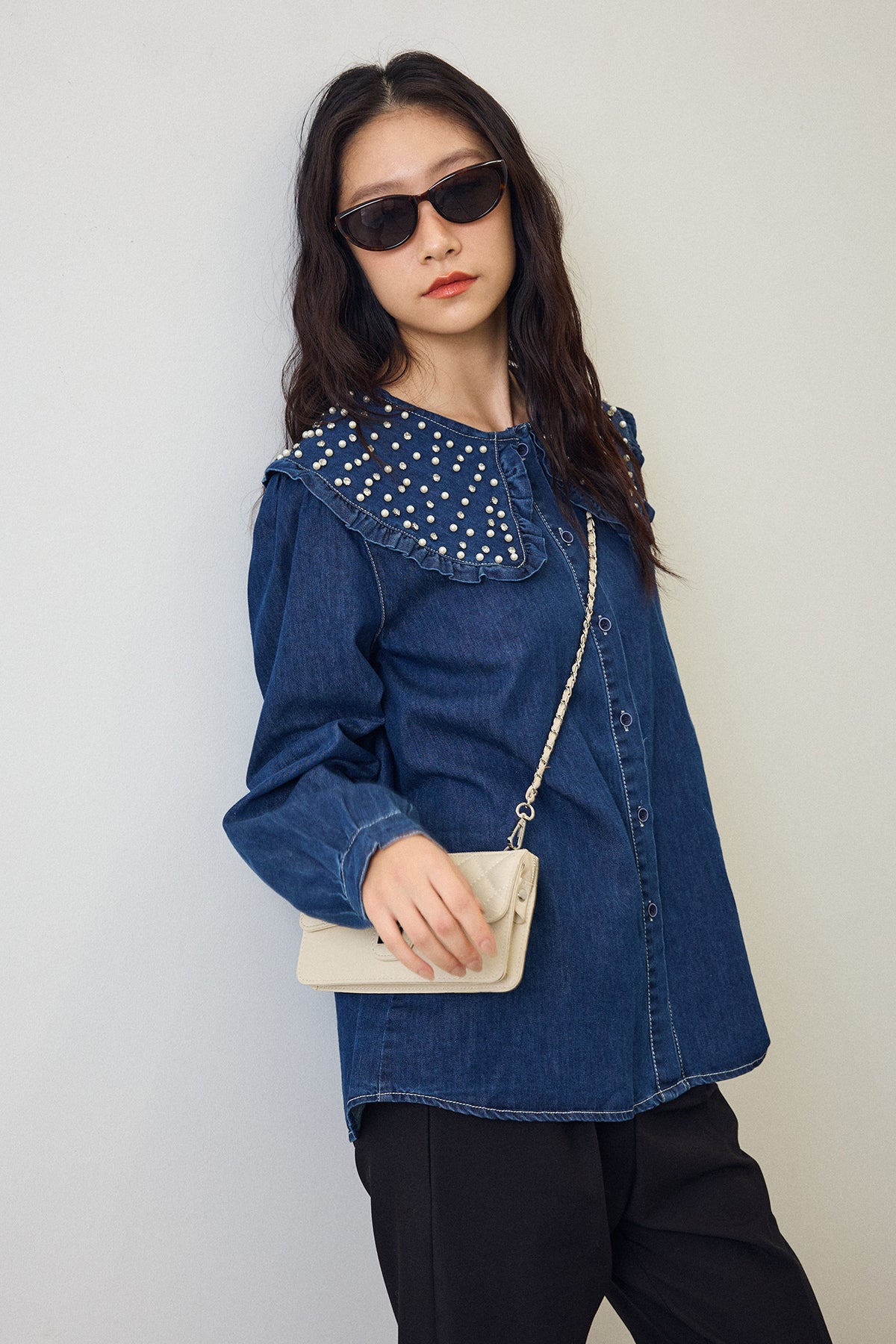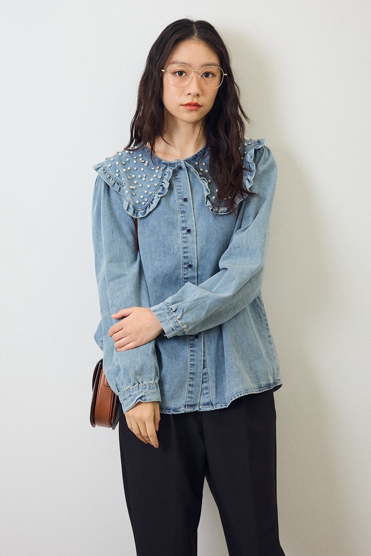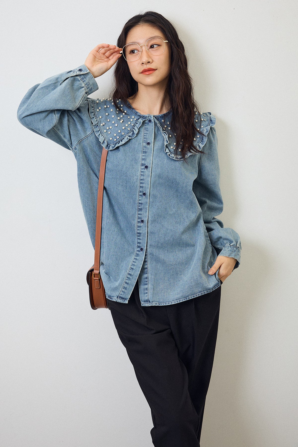 [予約/SET]パールBIGカラーデニムシャツ+タックテーパードパンツ(2set)