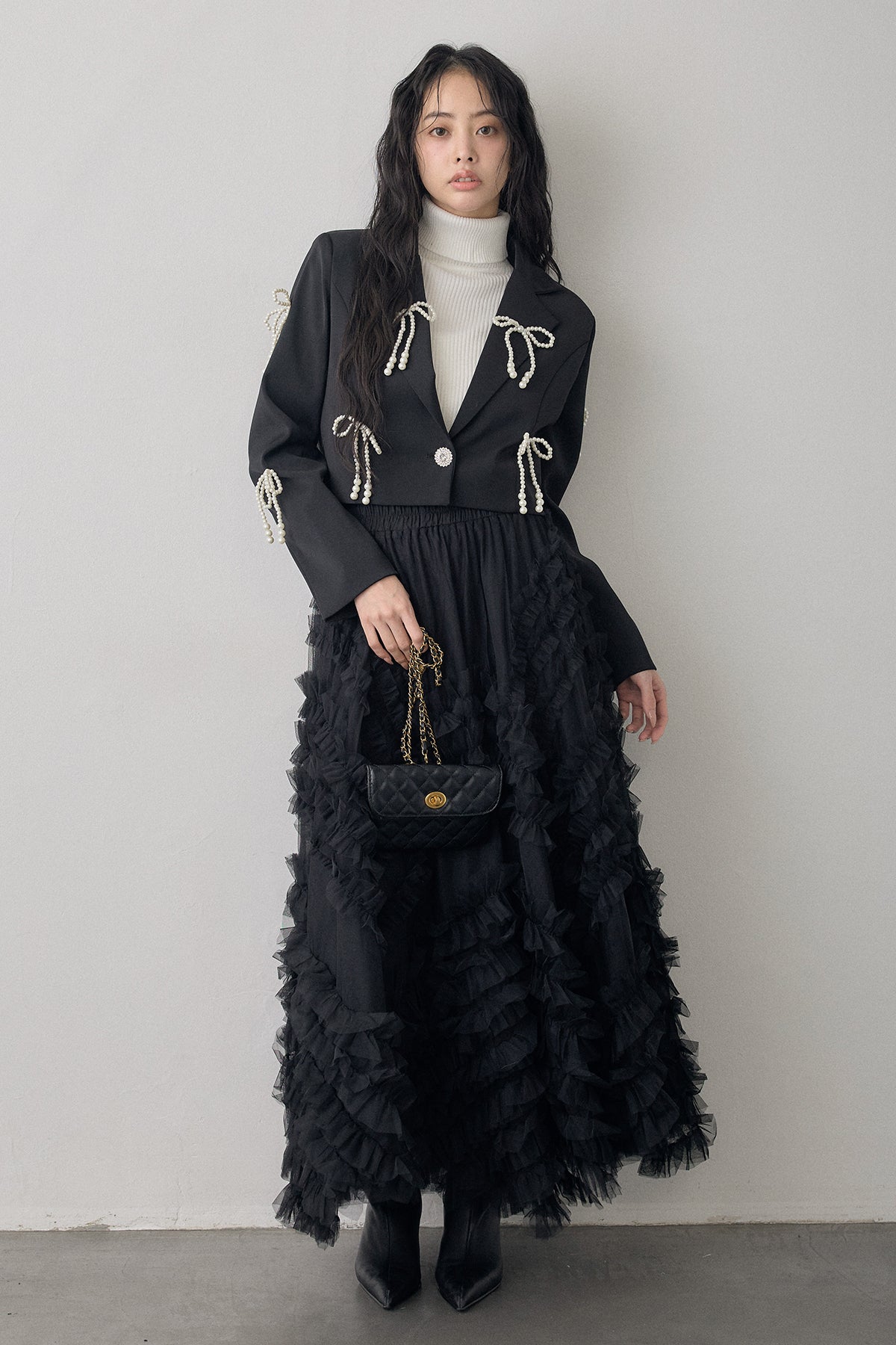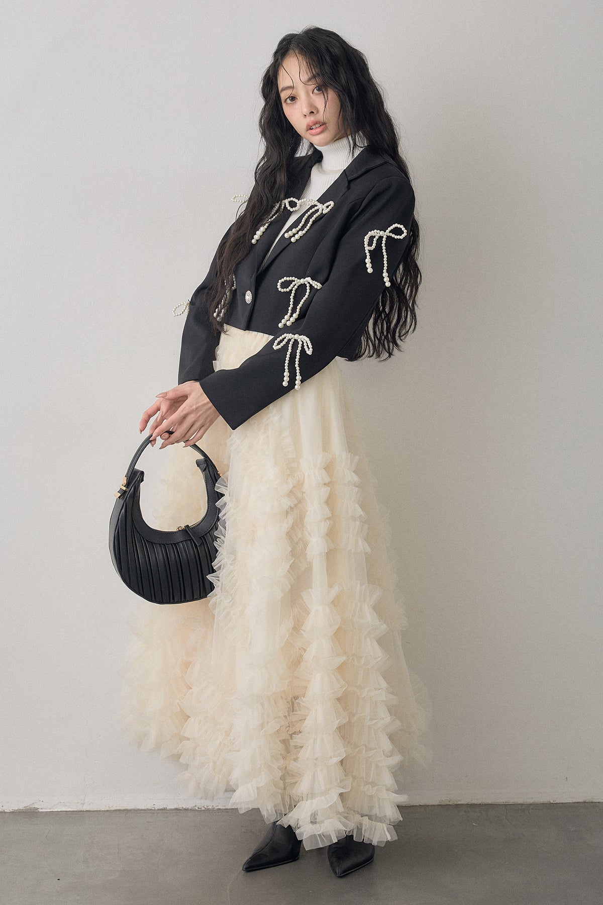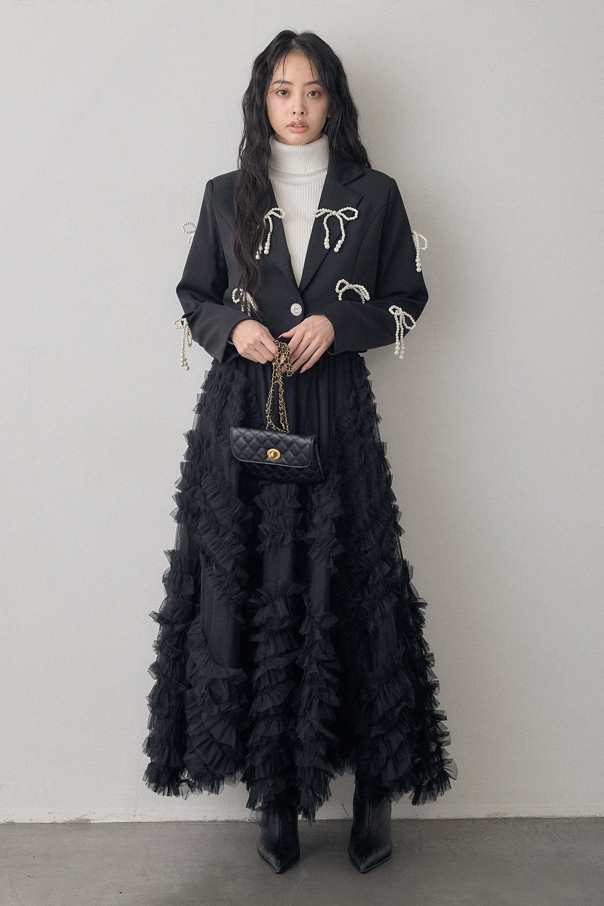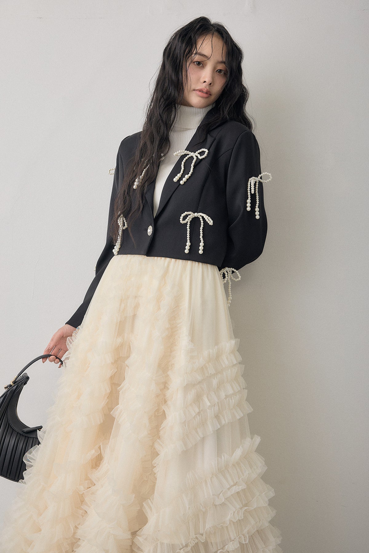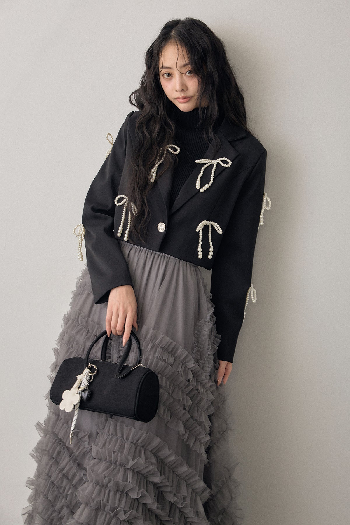 [予約/SET]パールリボンクロップドジャケット+スフレアシメチュールスカート(2set)