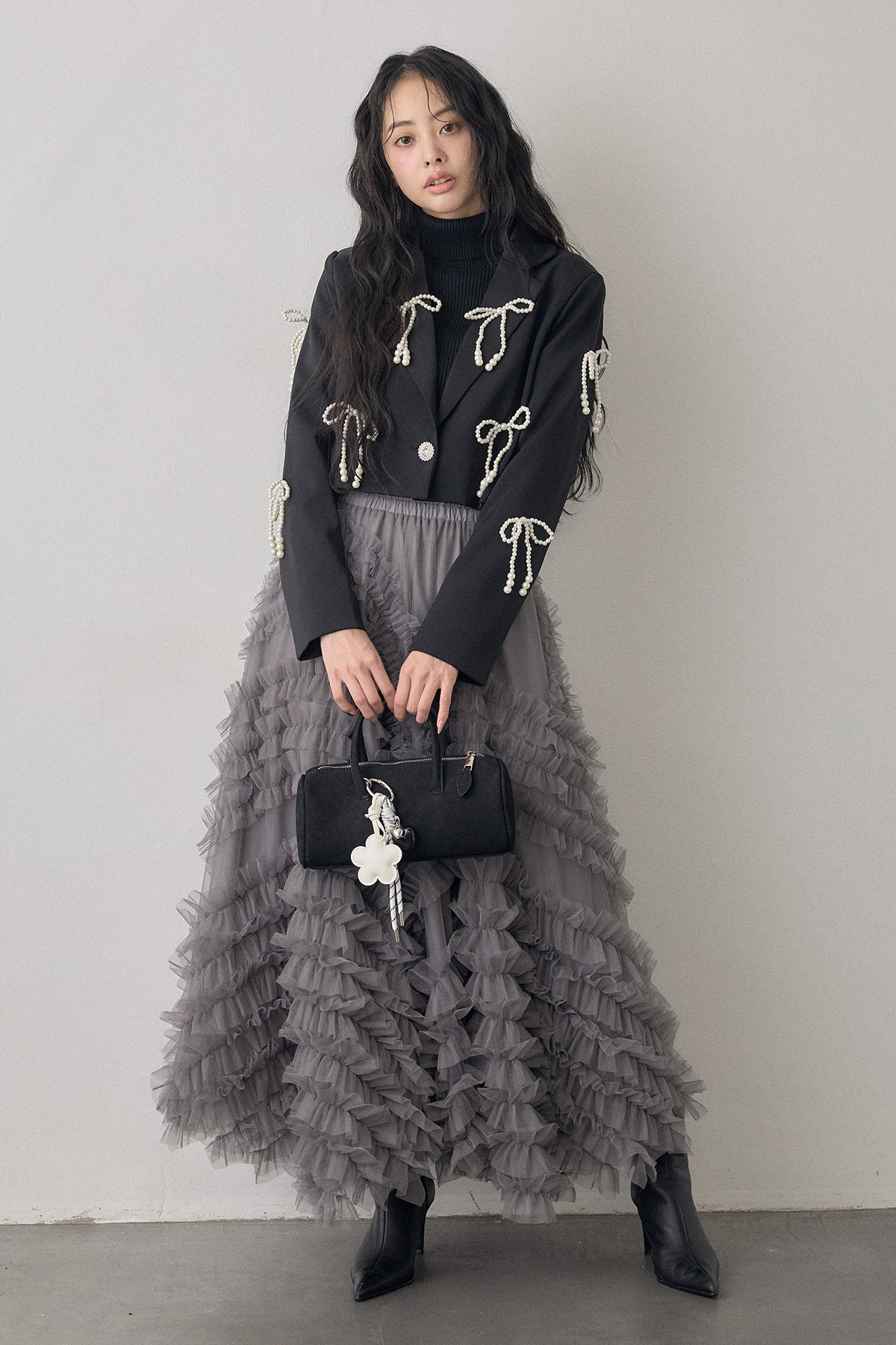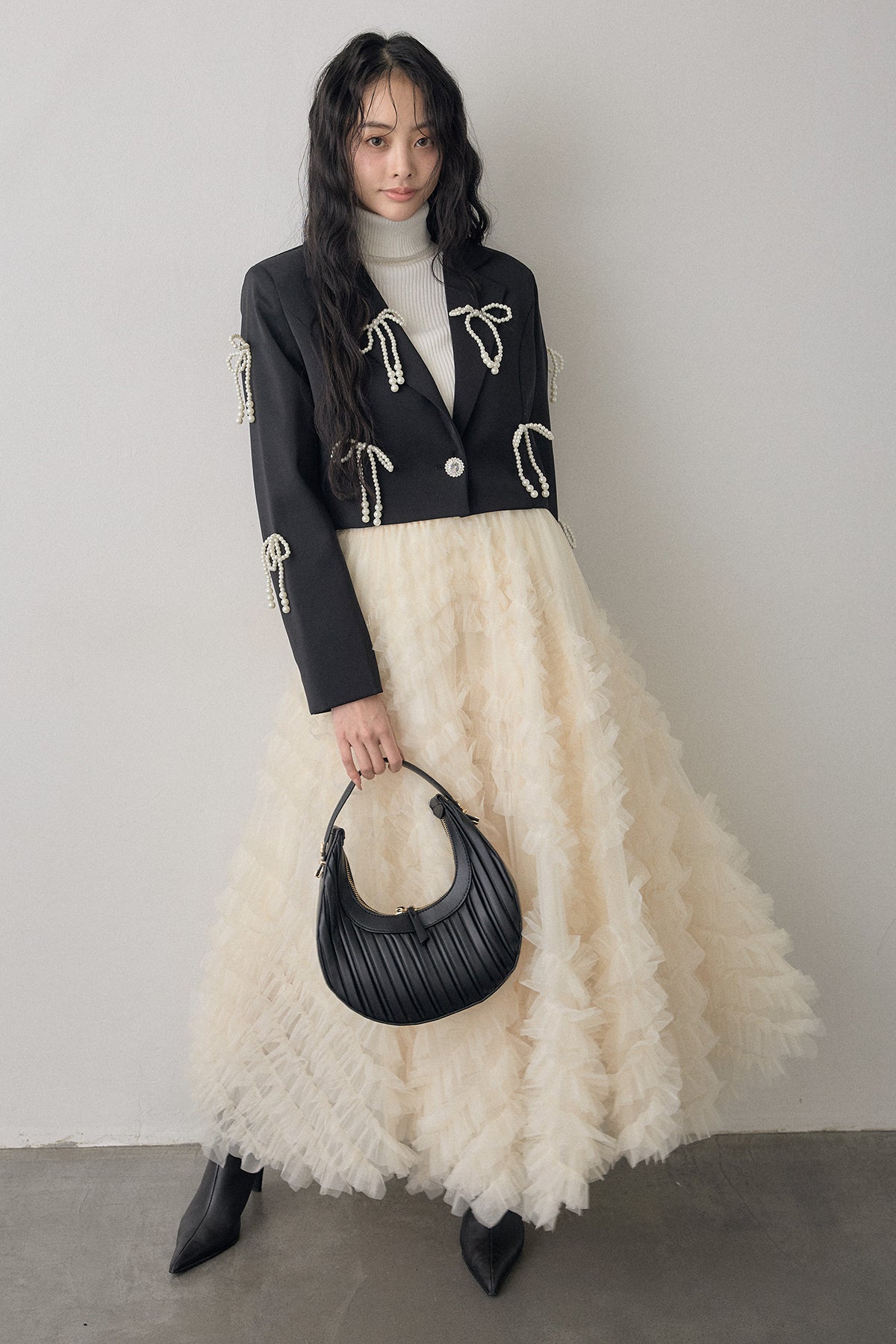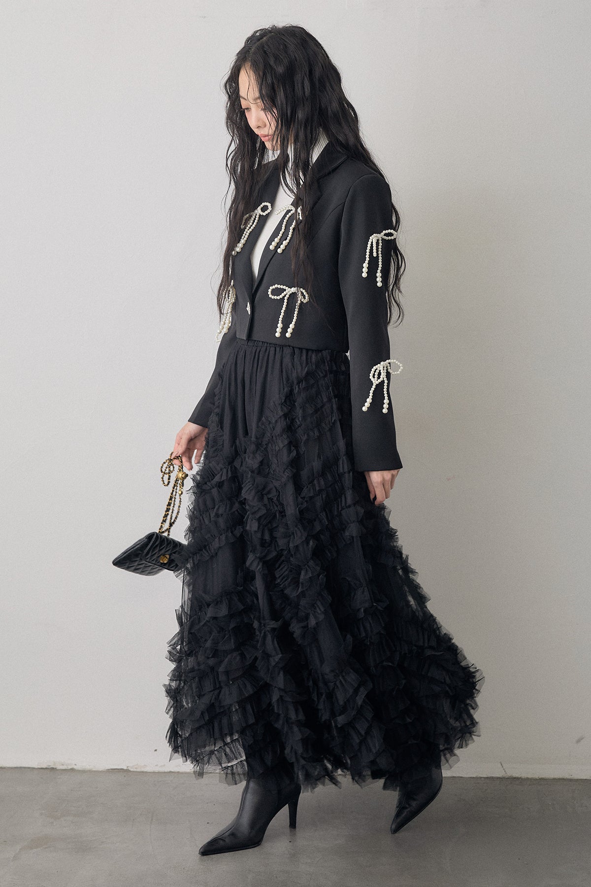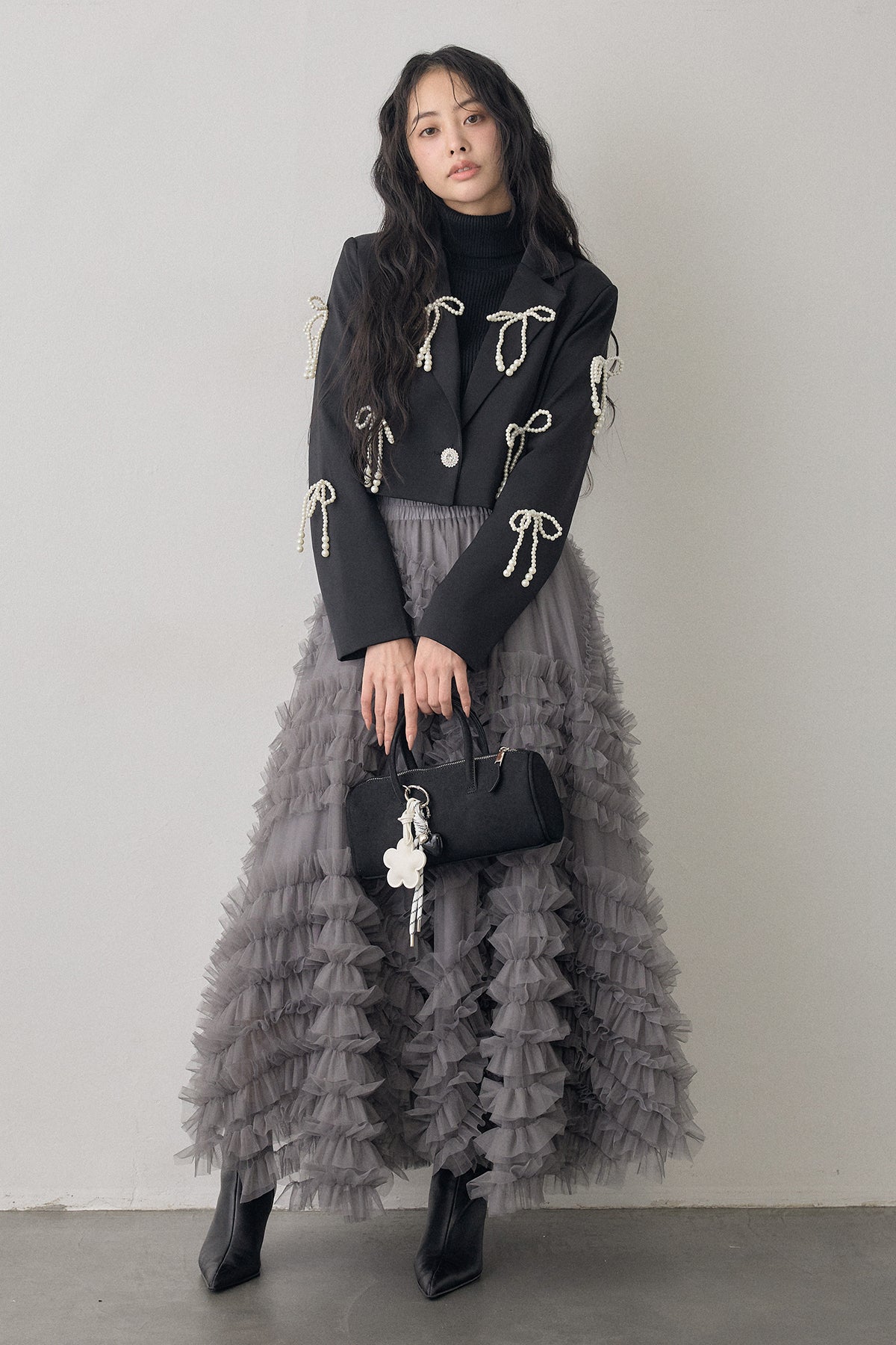 [予約/SET]パールリボンクロップドジャケット+スフレアシメチュールスカート(2set)