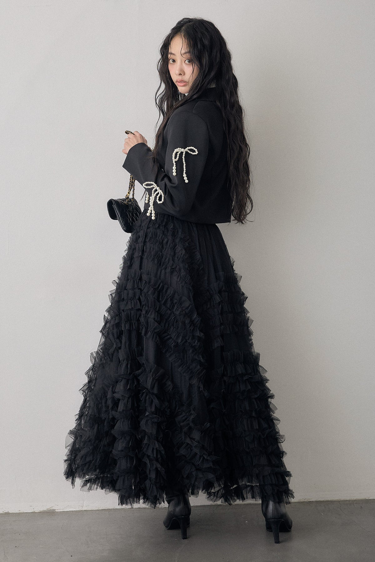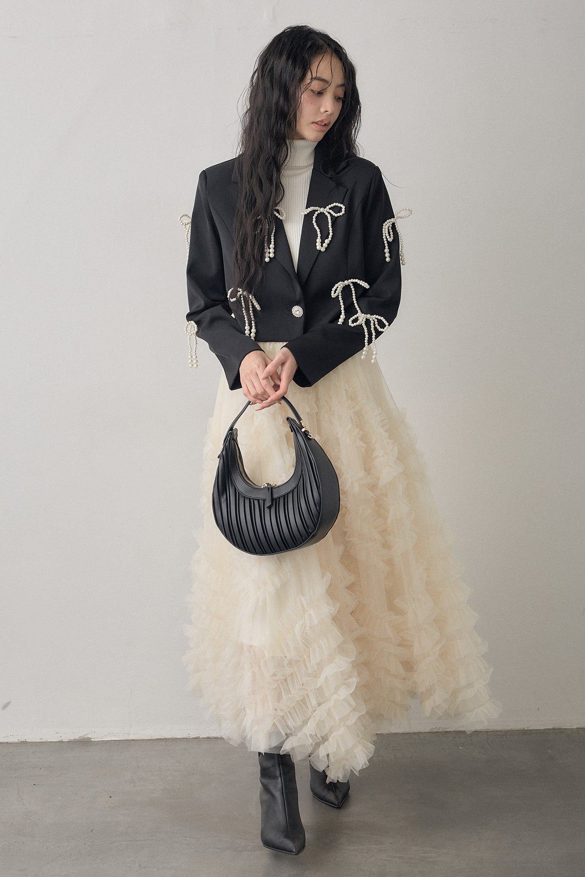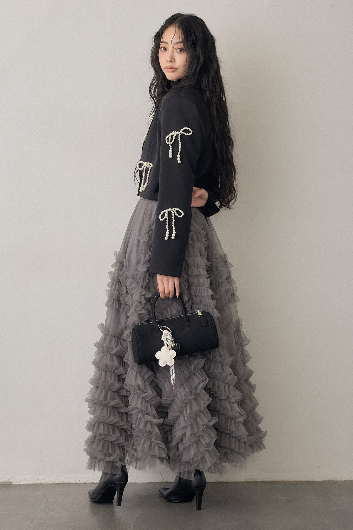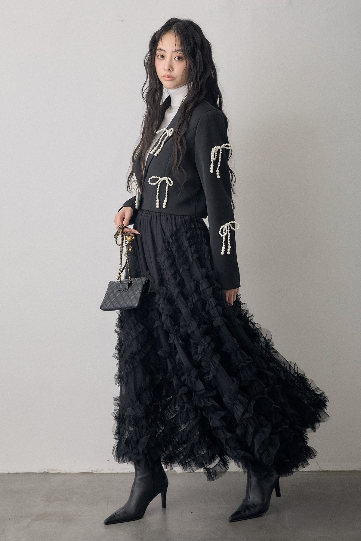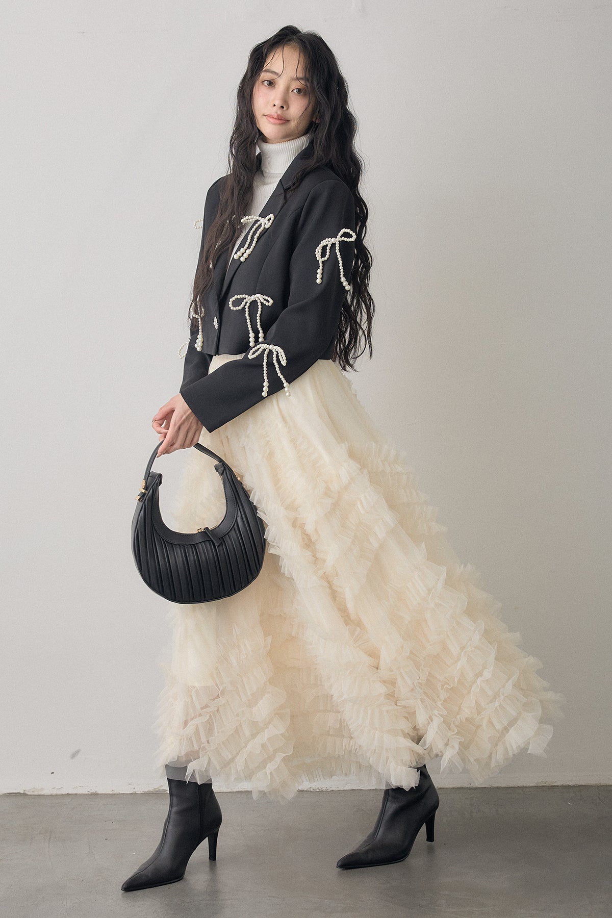 [予約/SET]パールリボンクロップドジャケット+スフレアシメチュールスカート(2set)