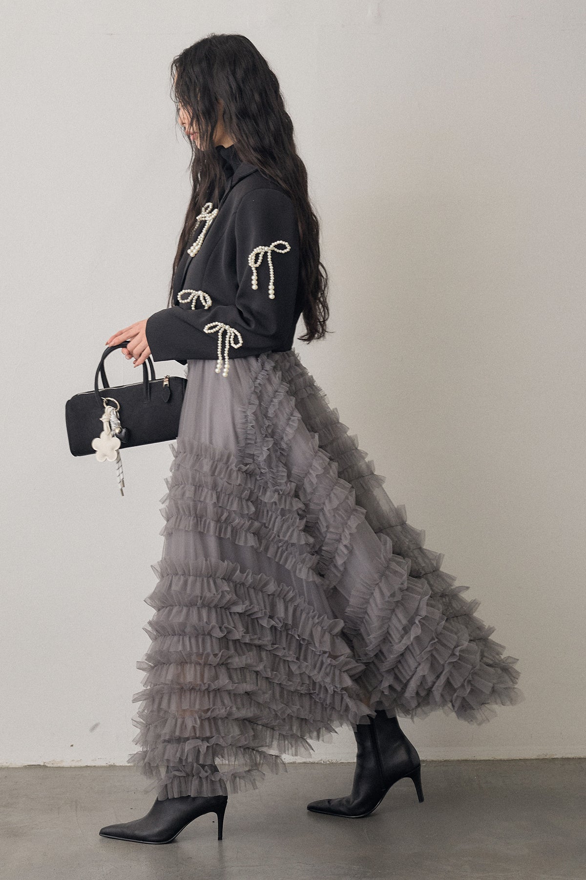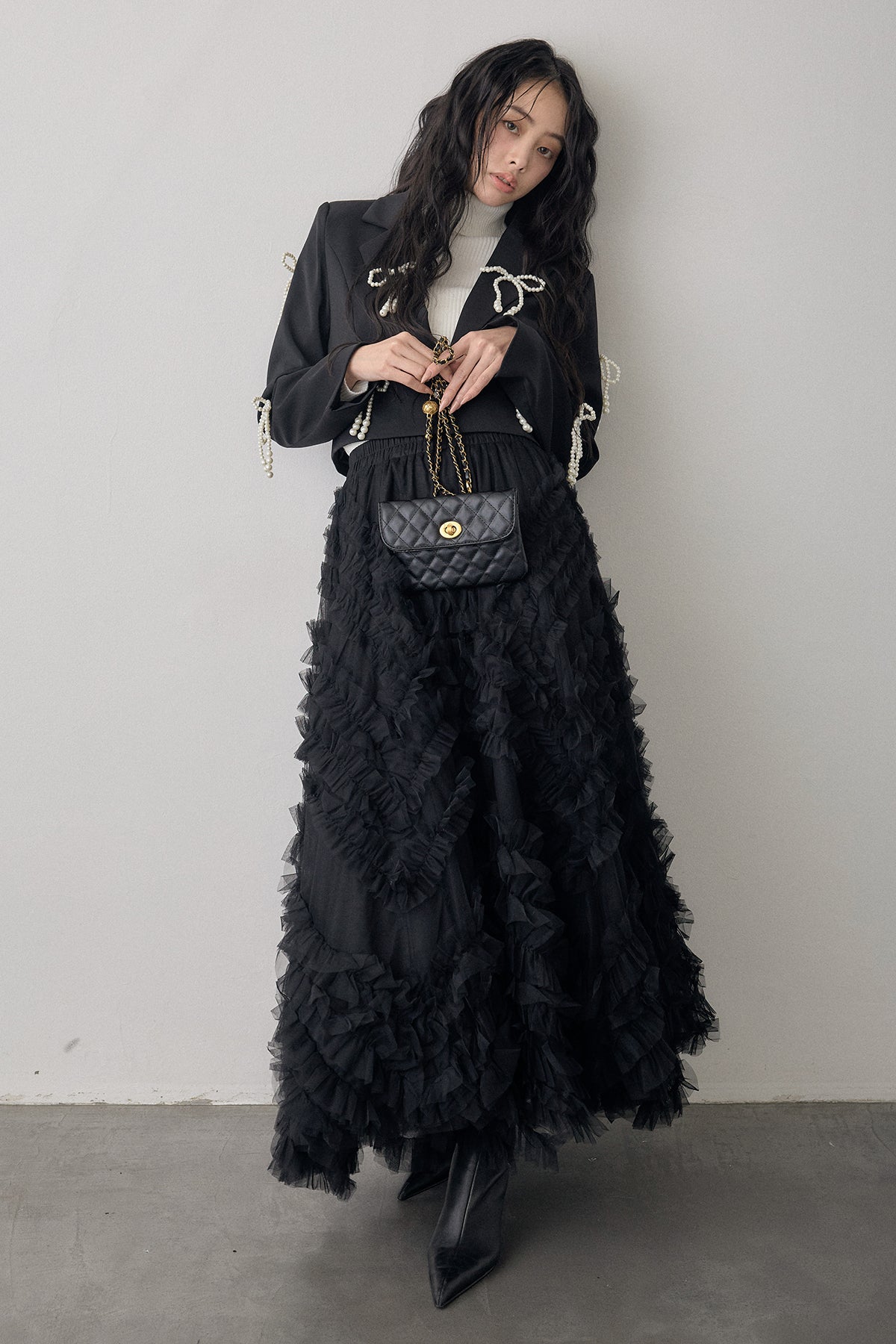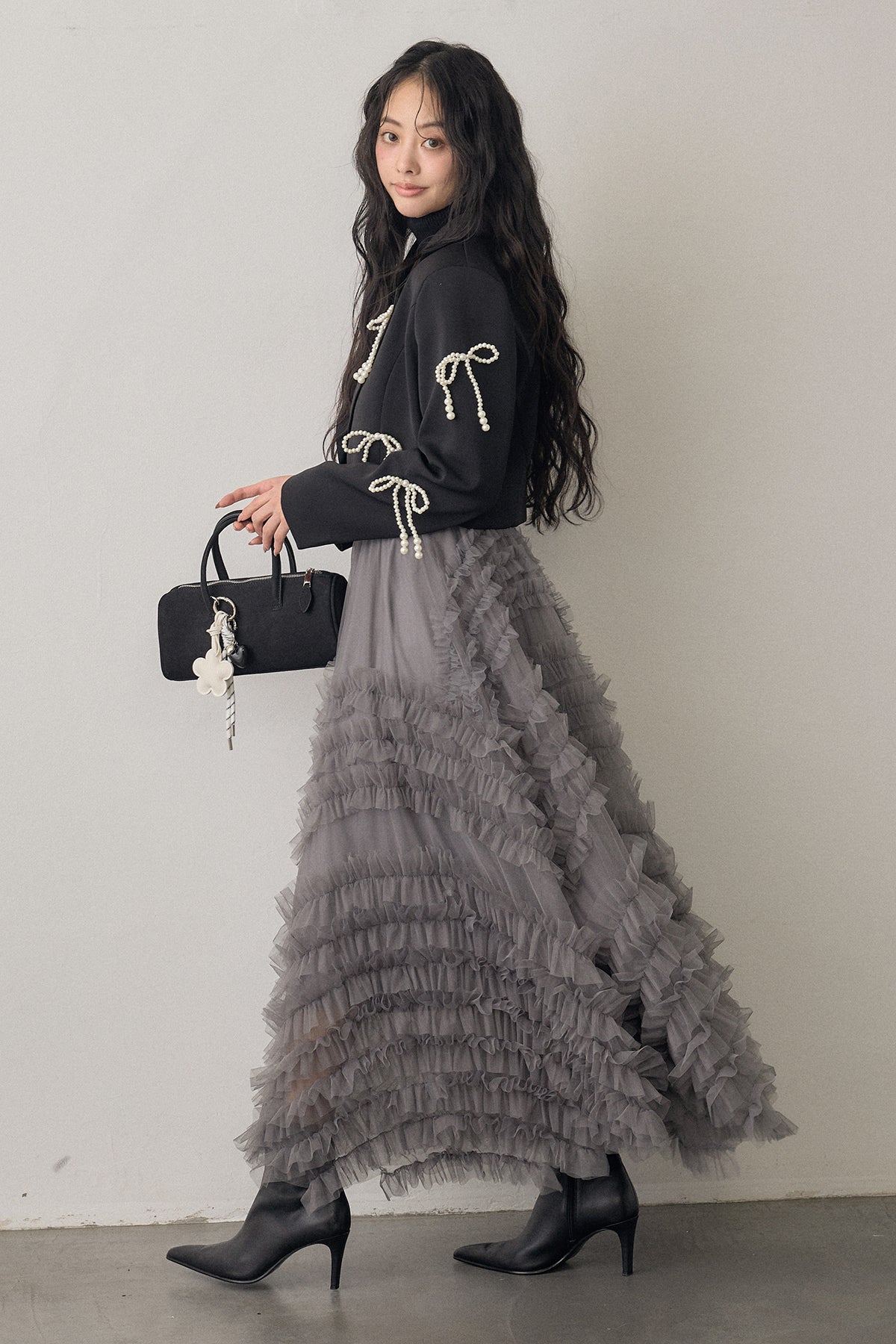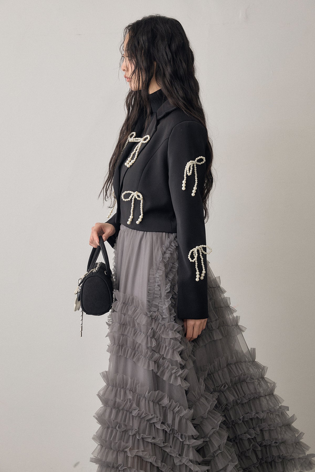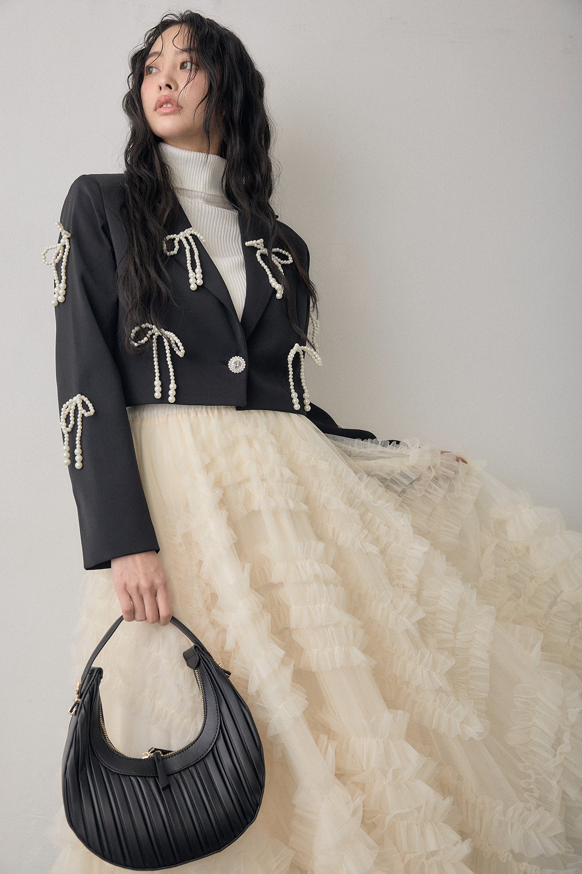 [予約/SET]パールリボンクロップドジャケット+スフレアシメチュールスカート(2set)