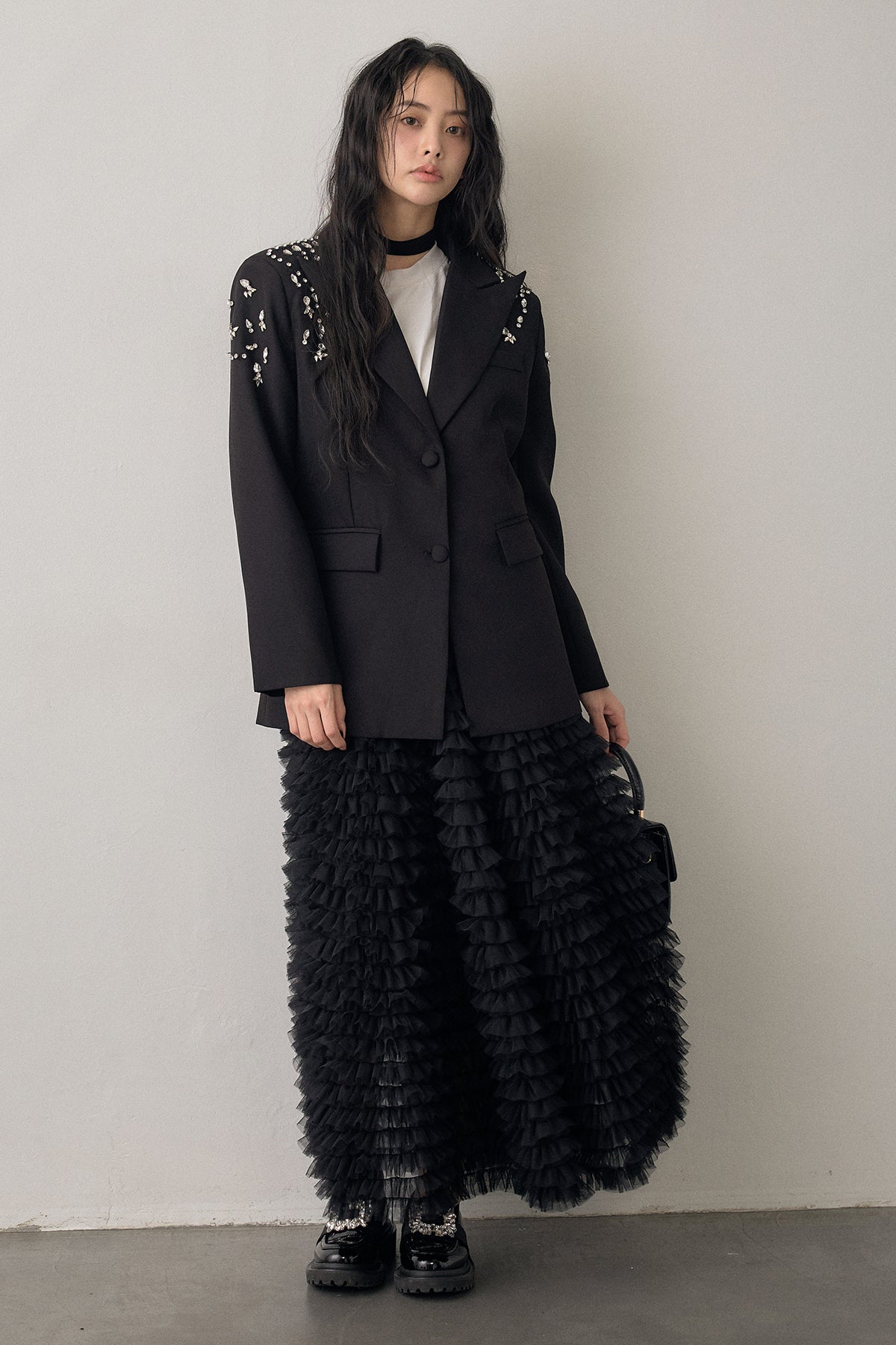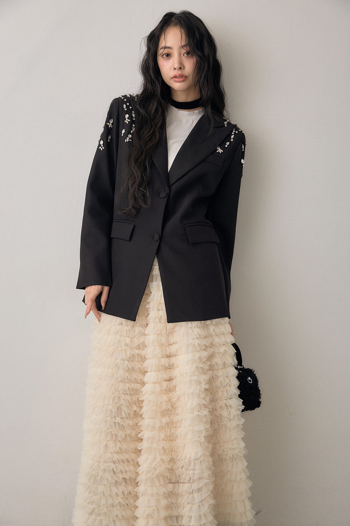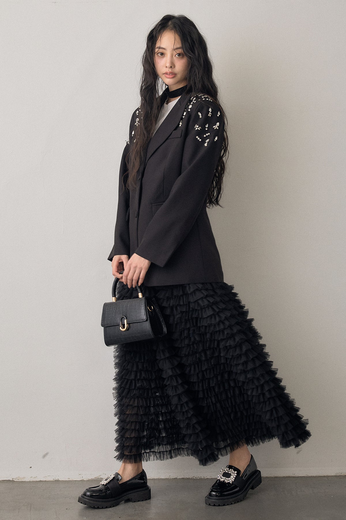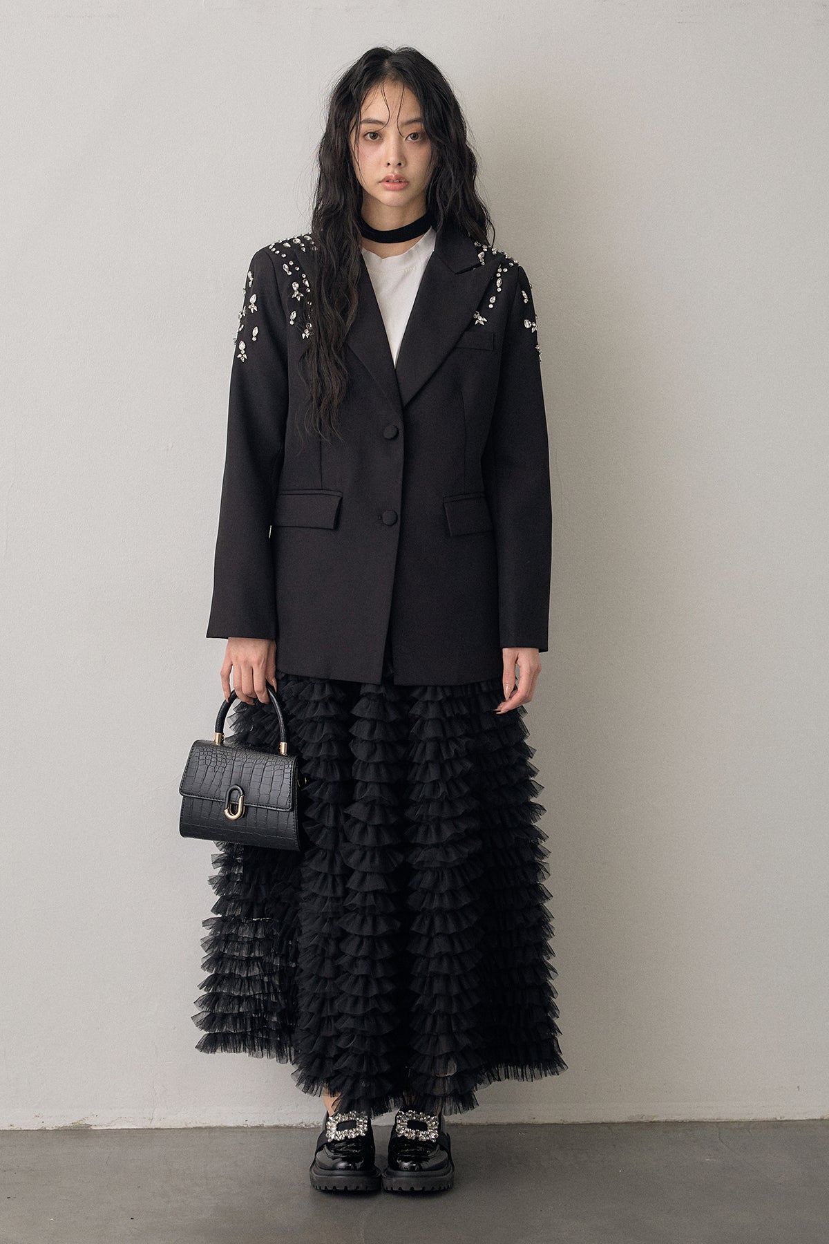[予約/SET]ショルダービジューマニッシュジャケット+ホイップチュールティアードスカート(2set)