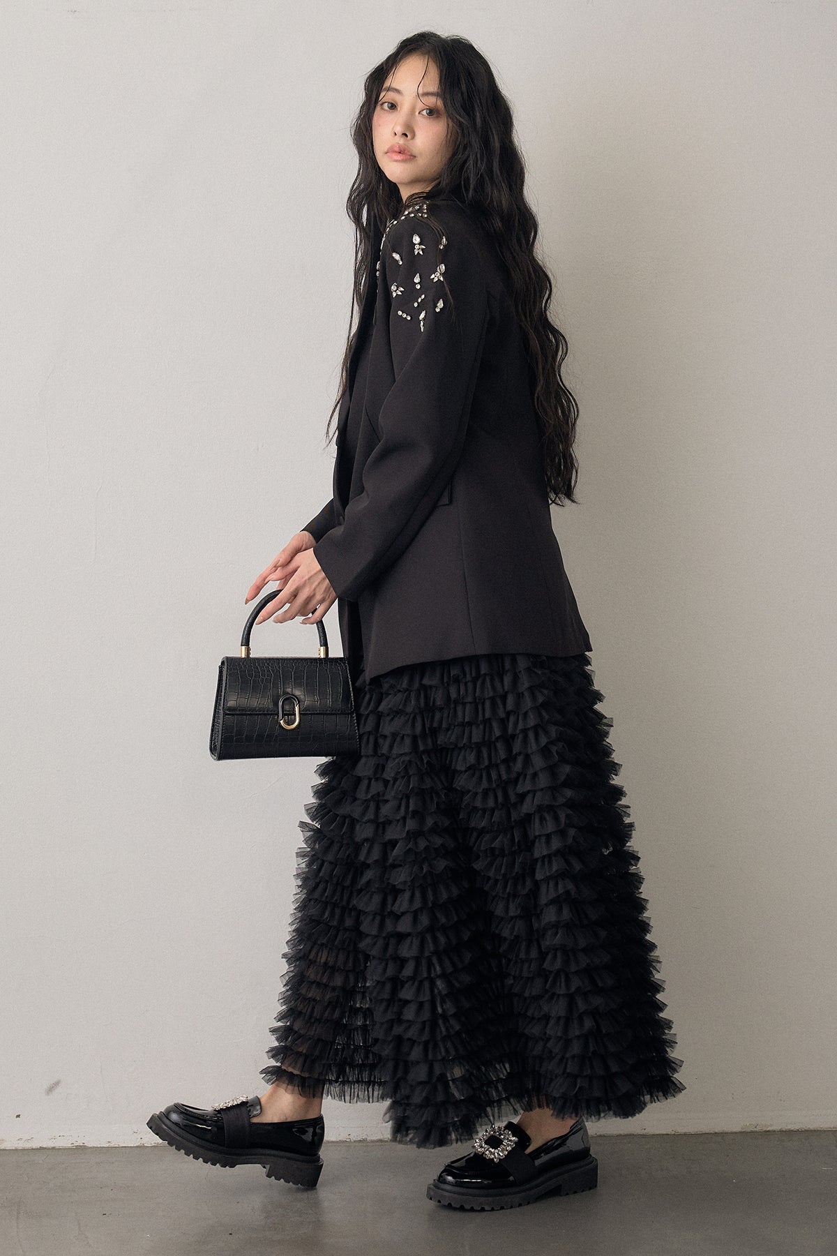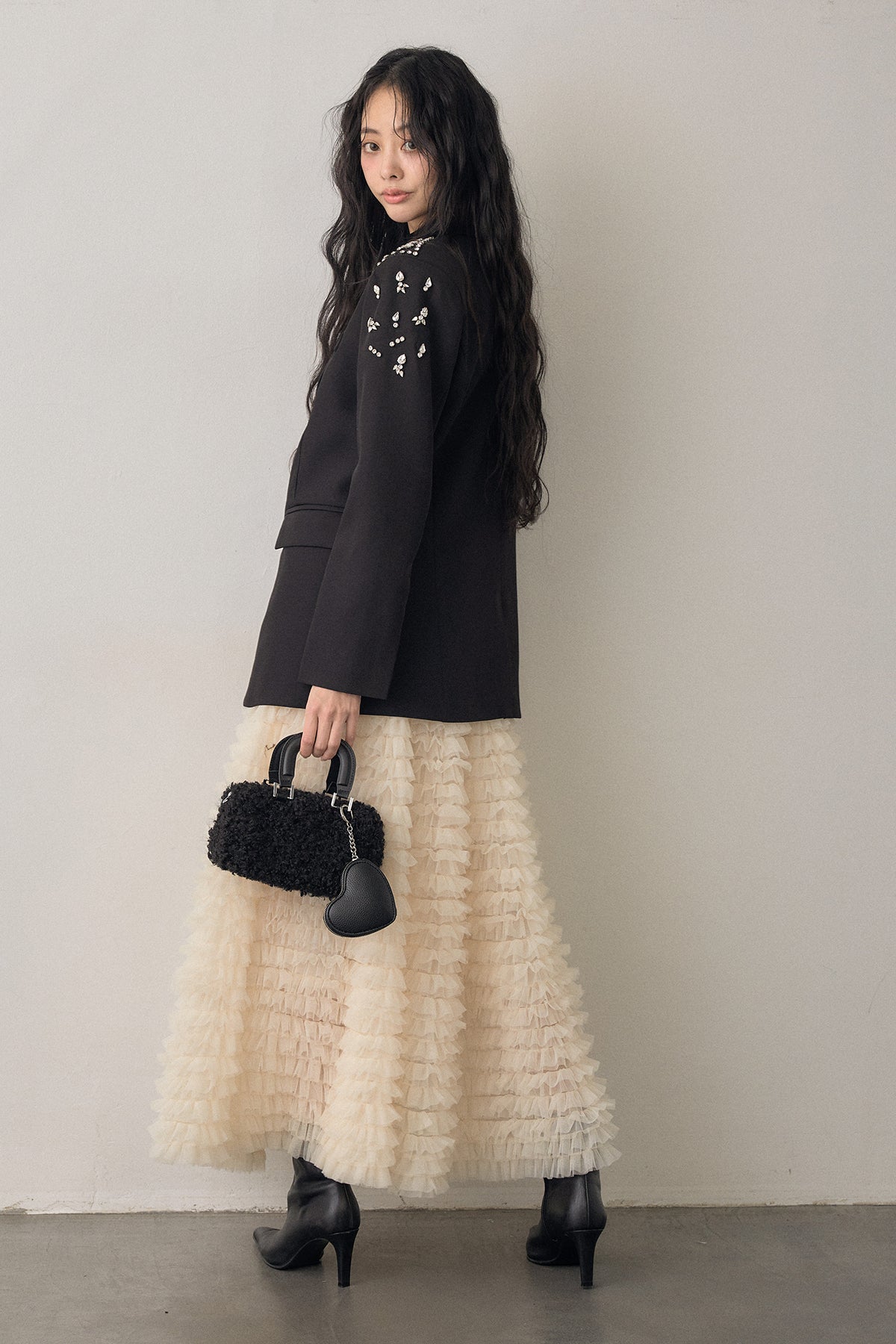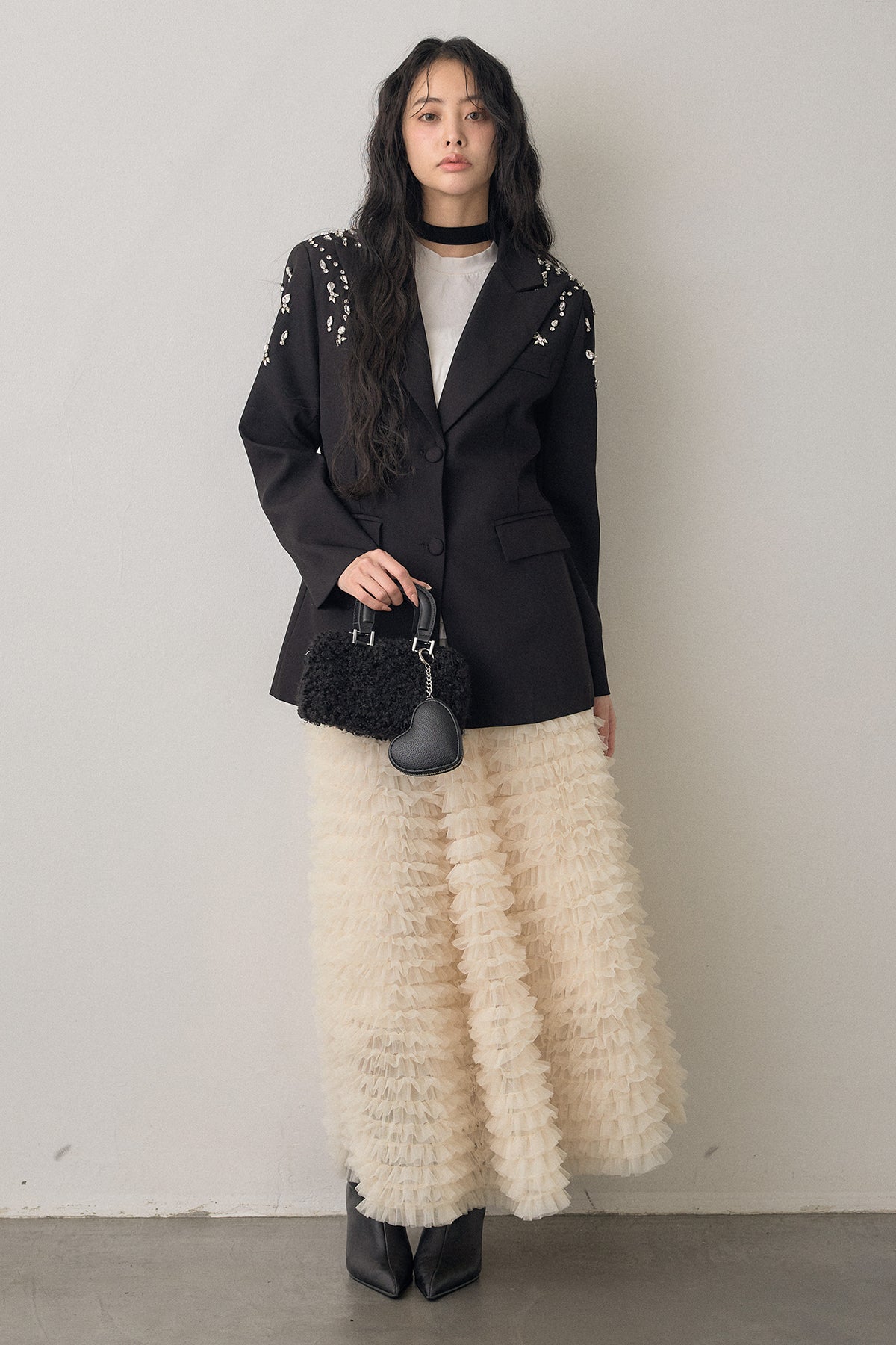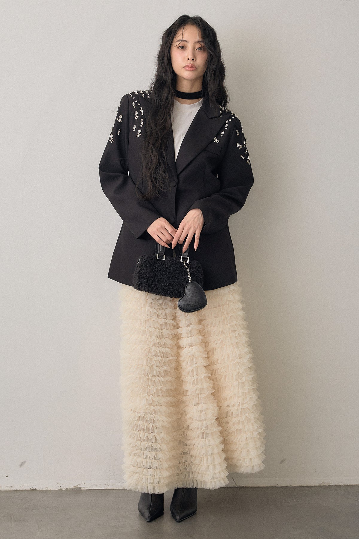 [予約/SET]ショルダービジューマニッシュジャケット+ホイップチュールティアードスカート(2set)
