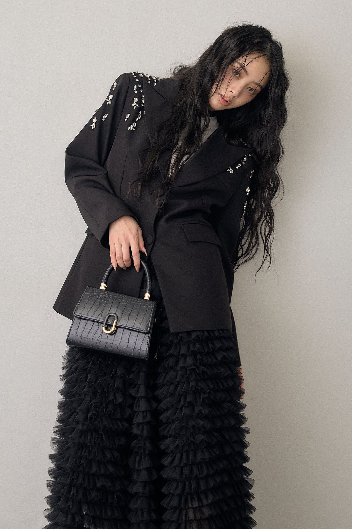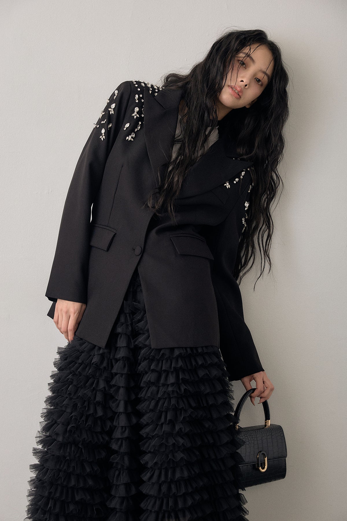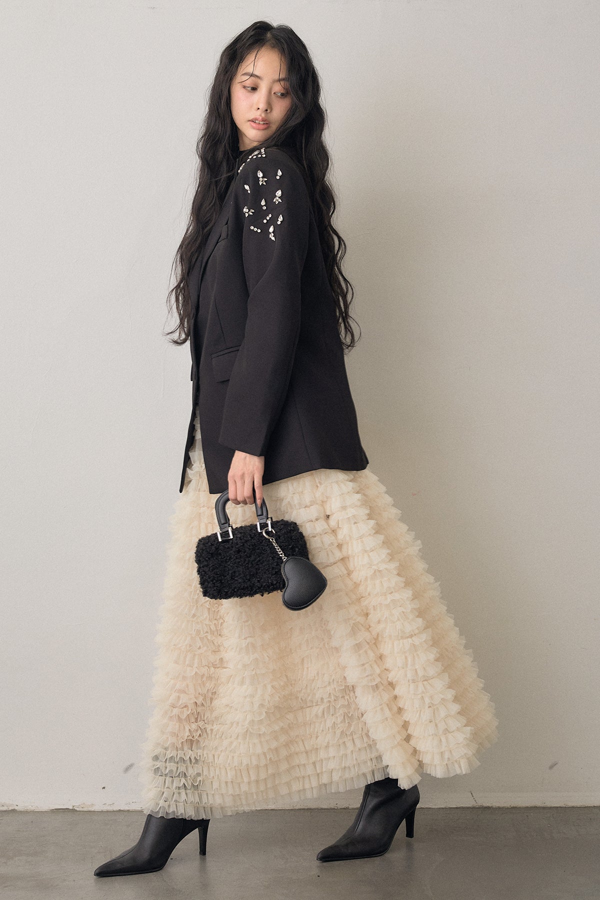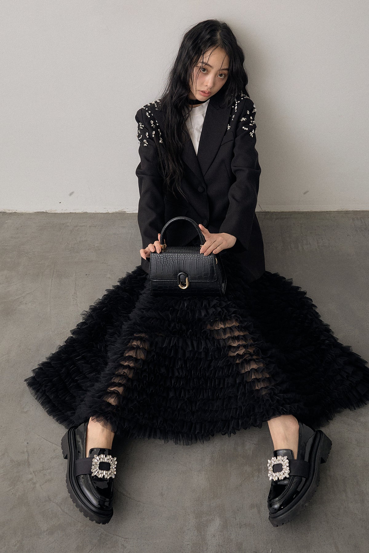 [予約/SET]ショルダービジューマニッシュジャケット+ホイップチュールティアードスカート(2set)