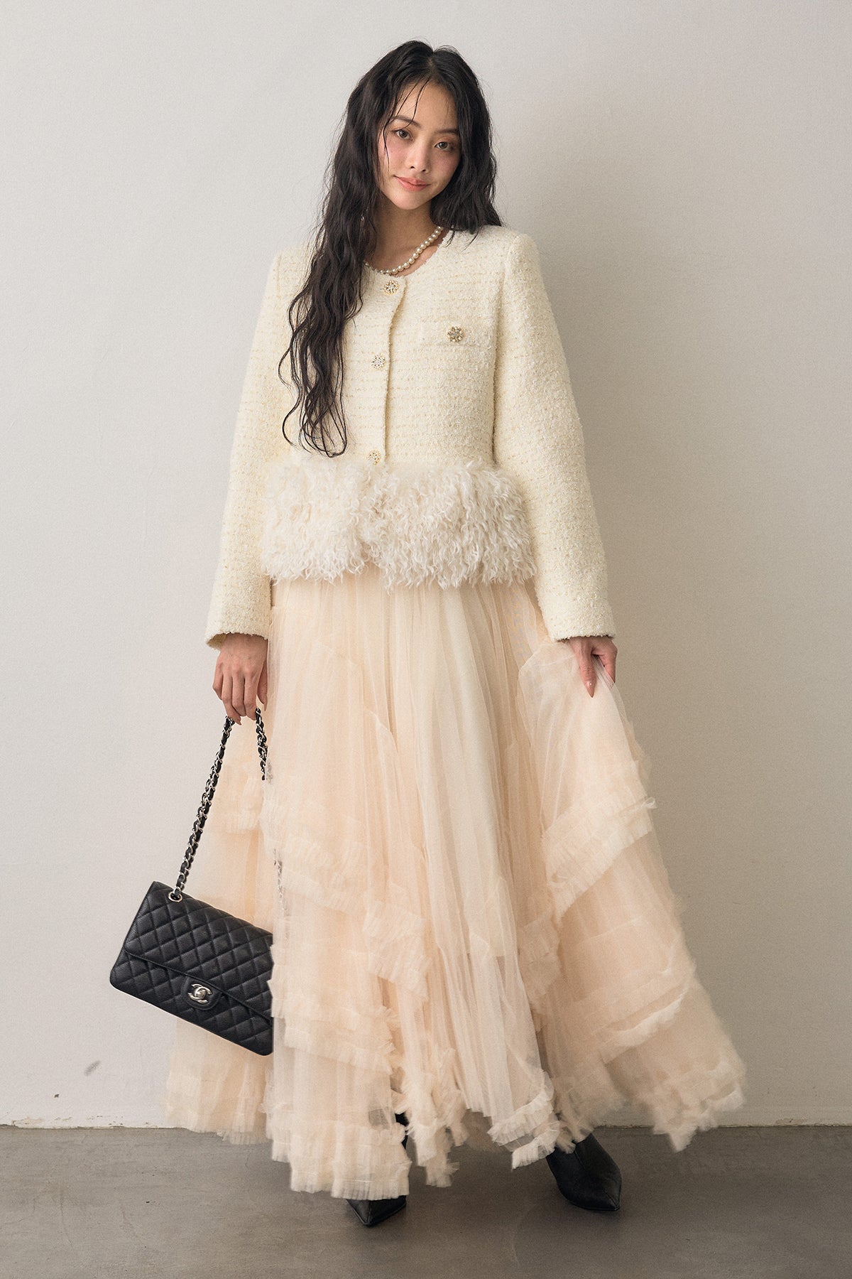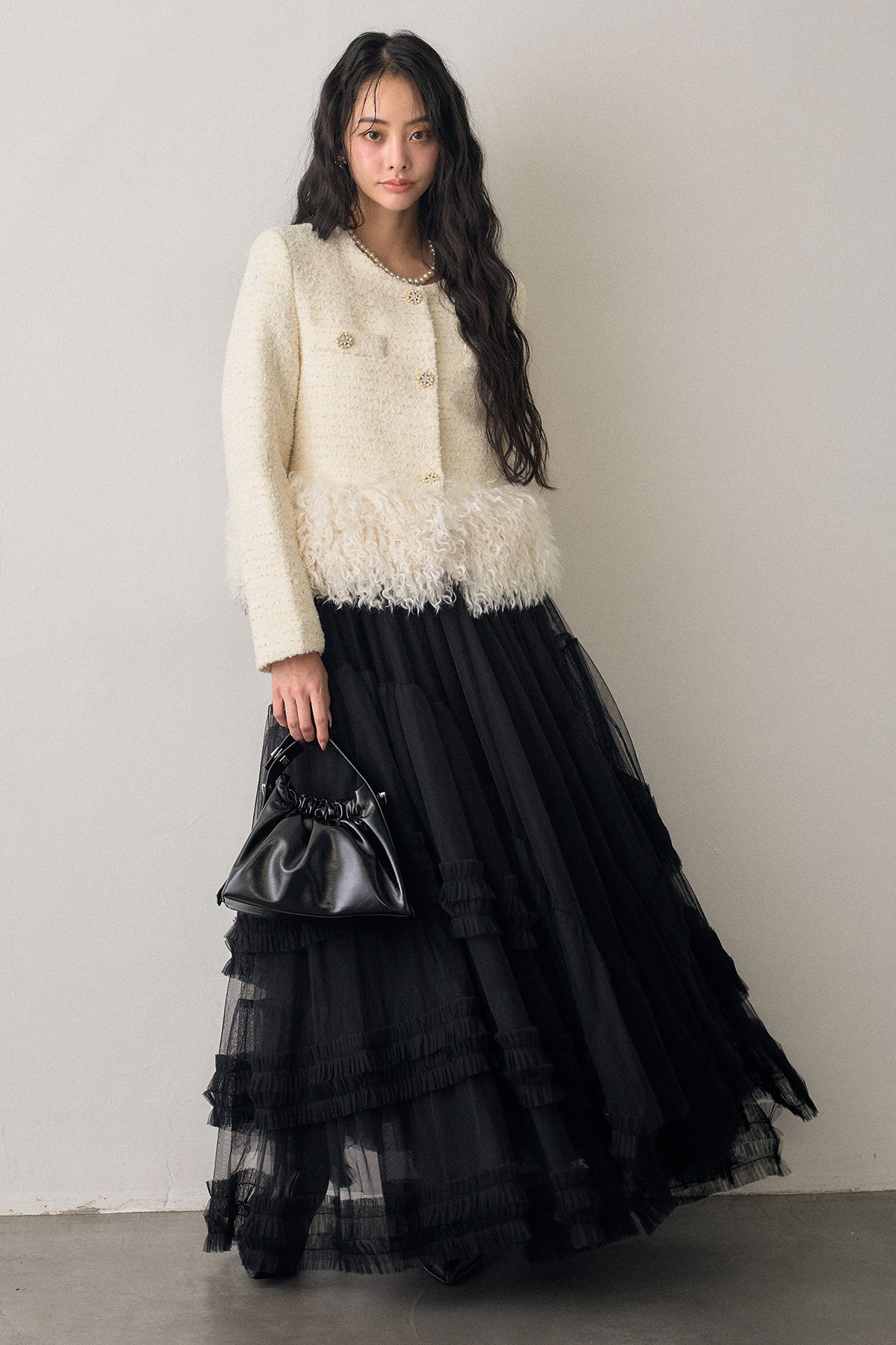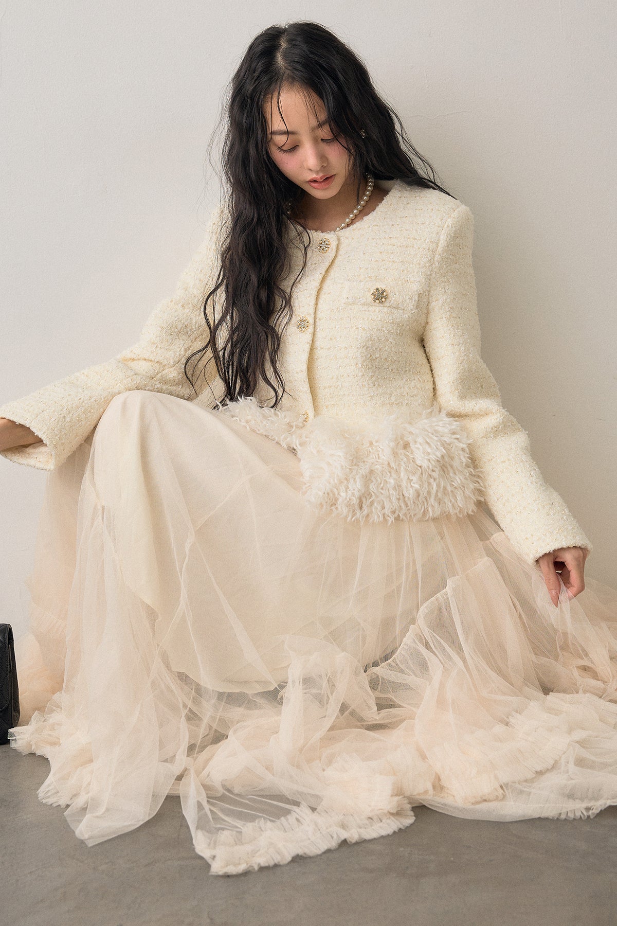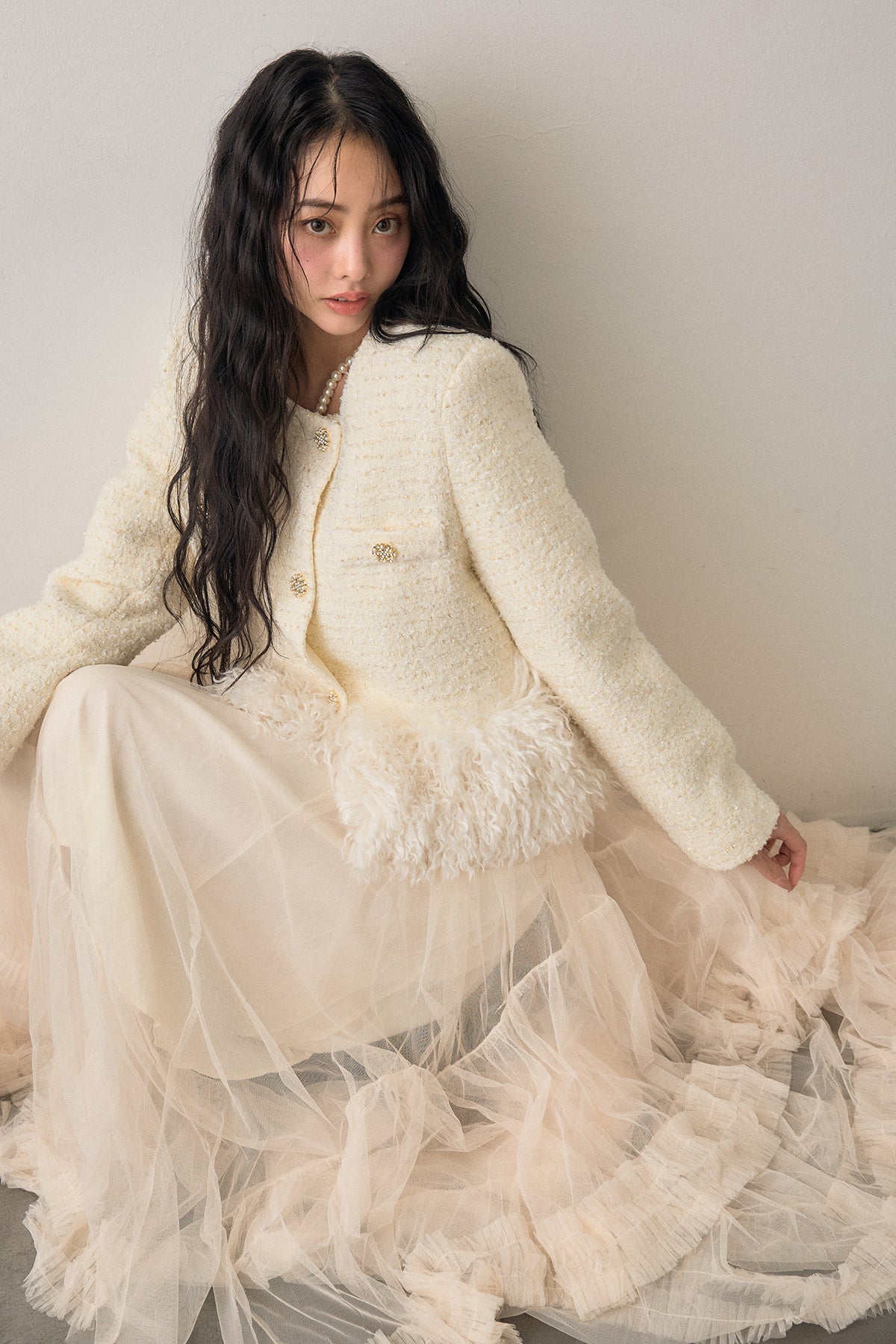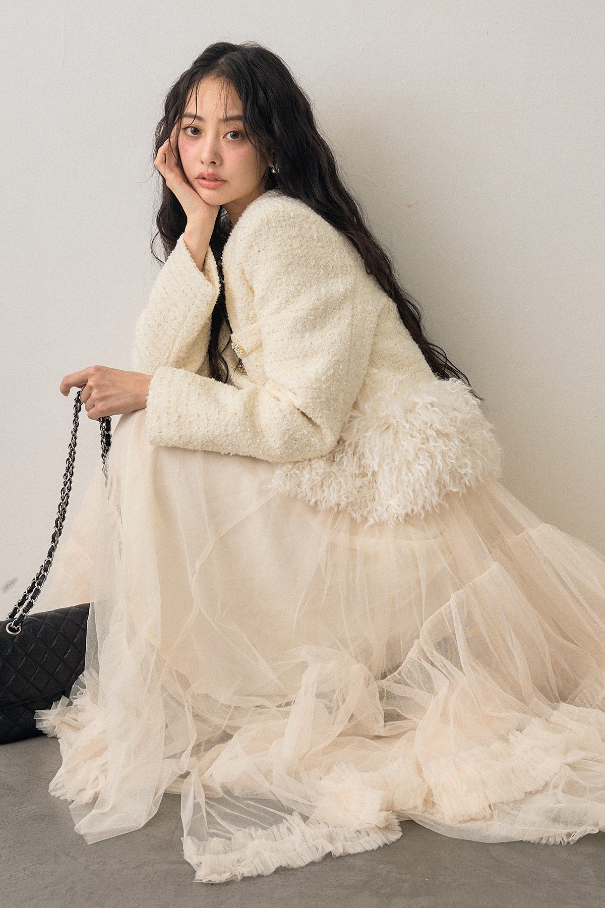[予約/SET]中綿ツイードロングファードッキングジャケット+フェアリードレープチュールスカート(2set)