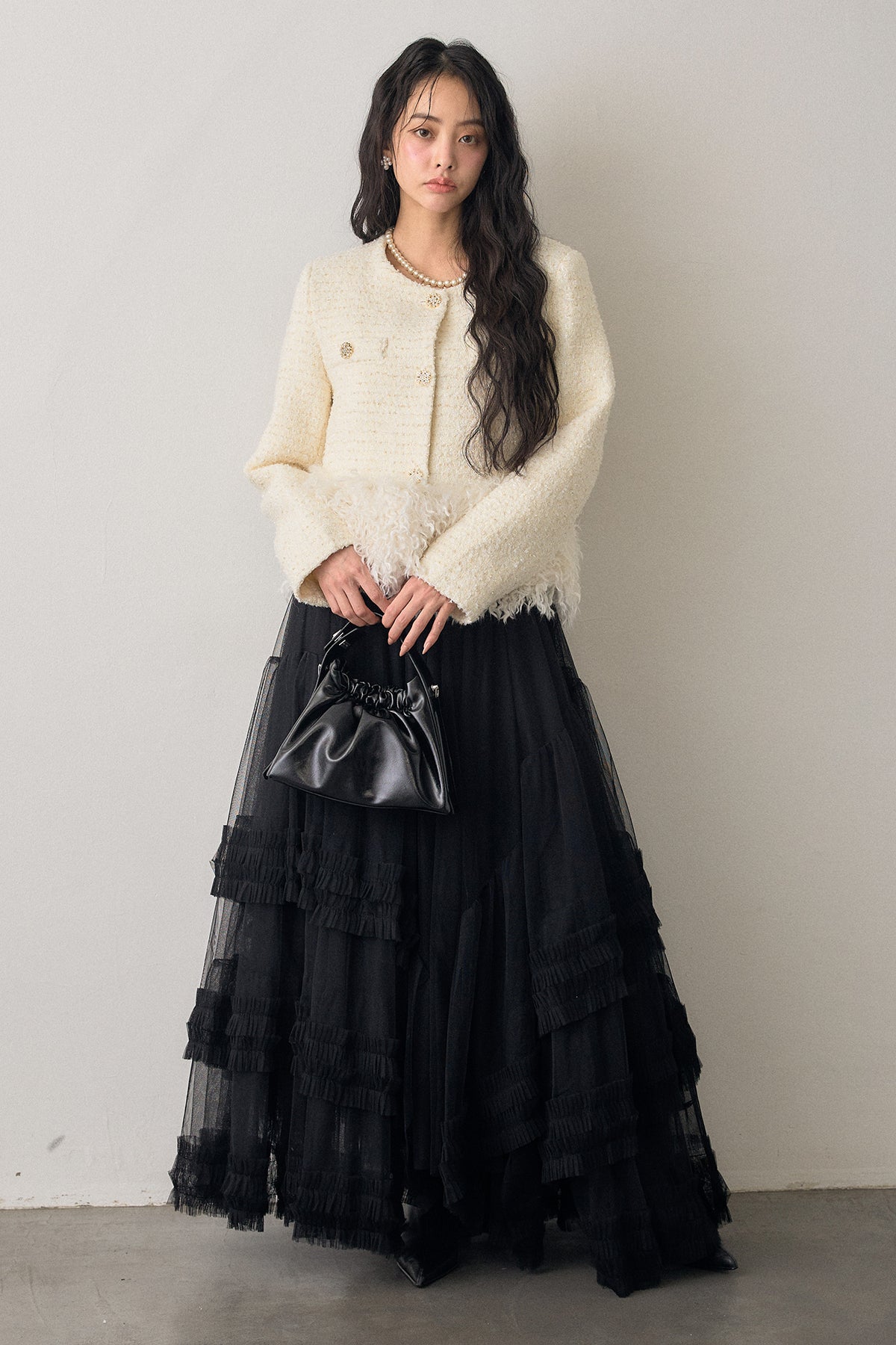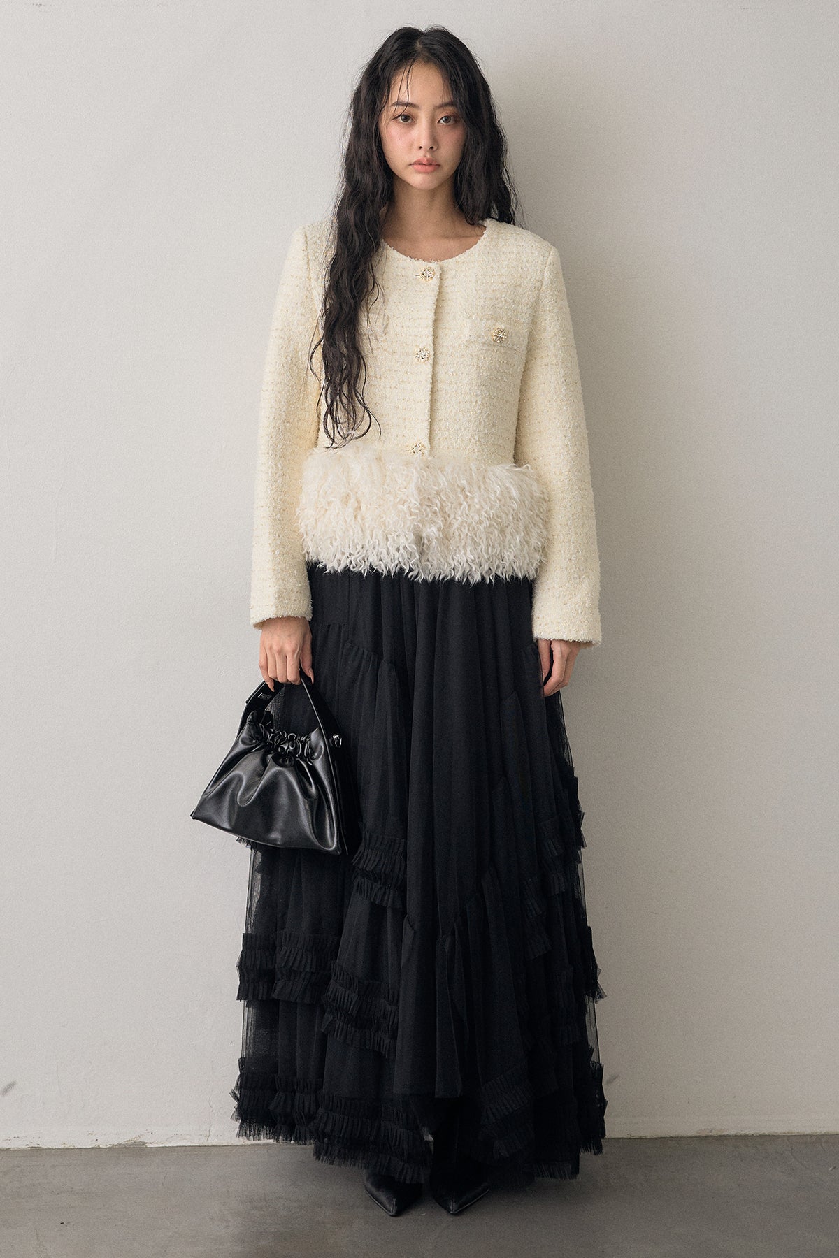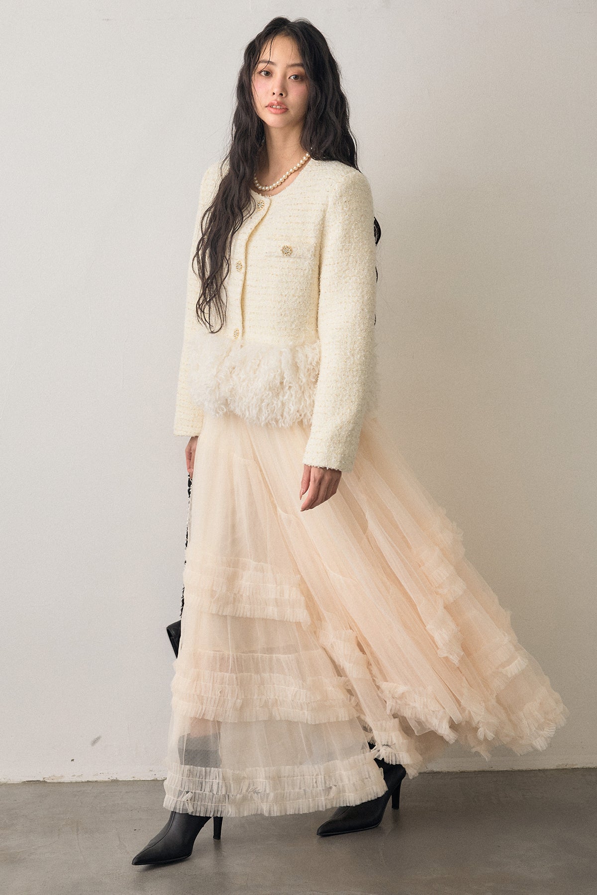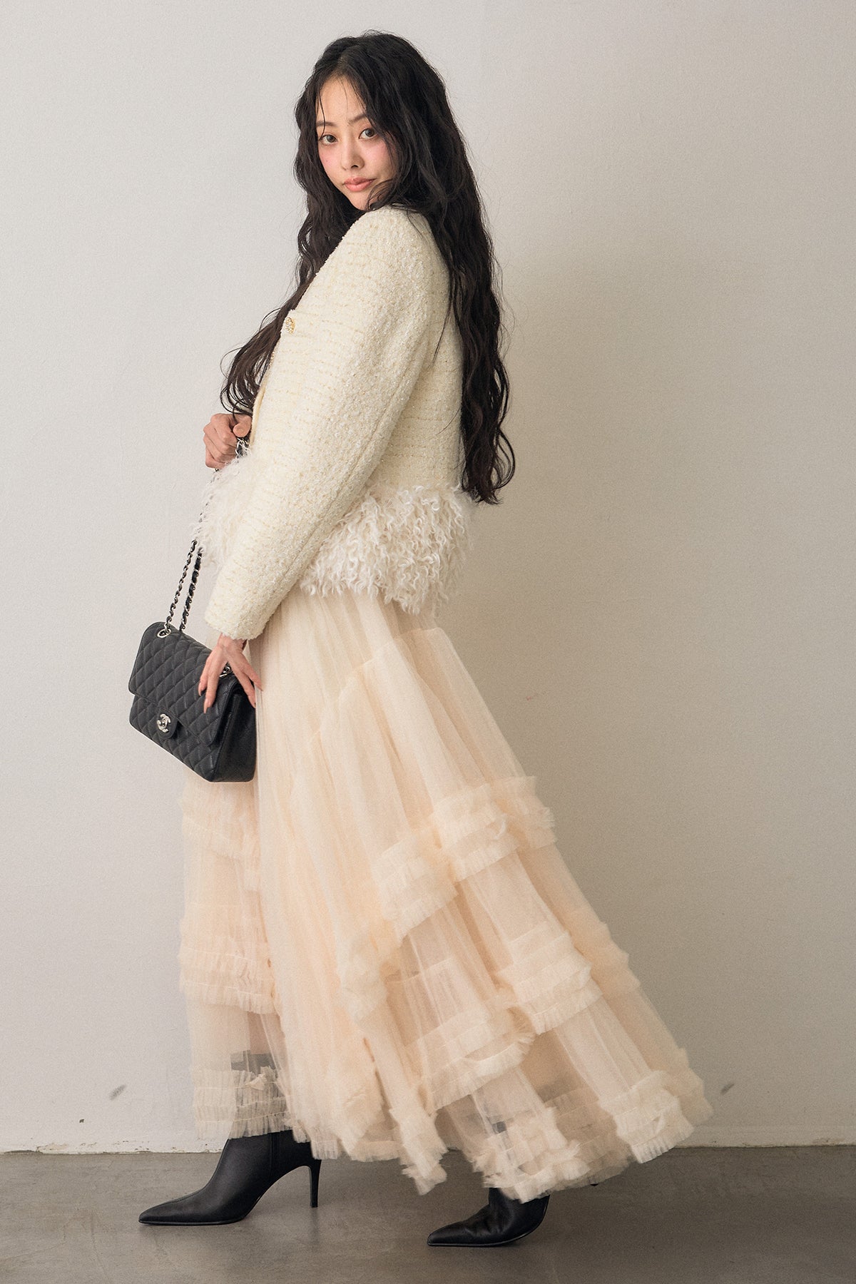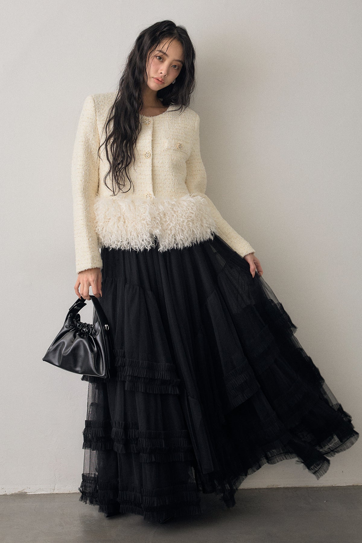 [予約/SET]中綿ツイードロングファードッキングジャケット+フェアリードレープチュールスカート(2set)