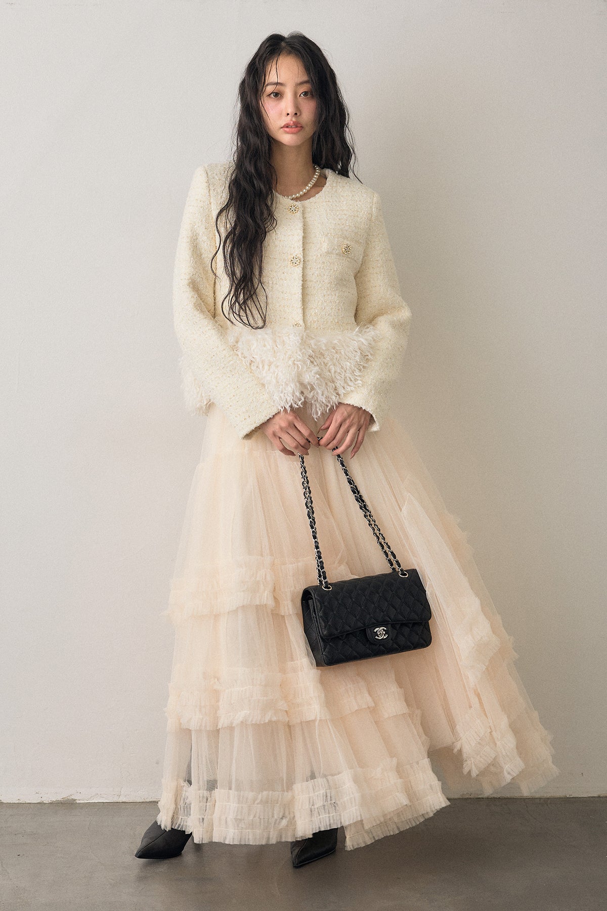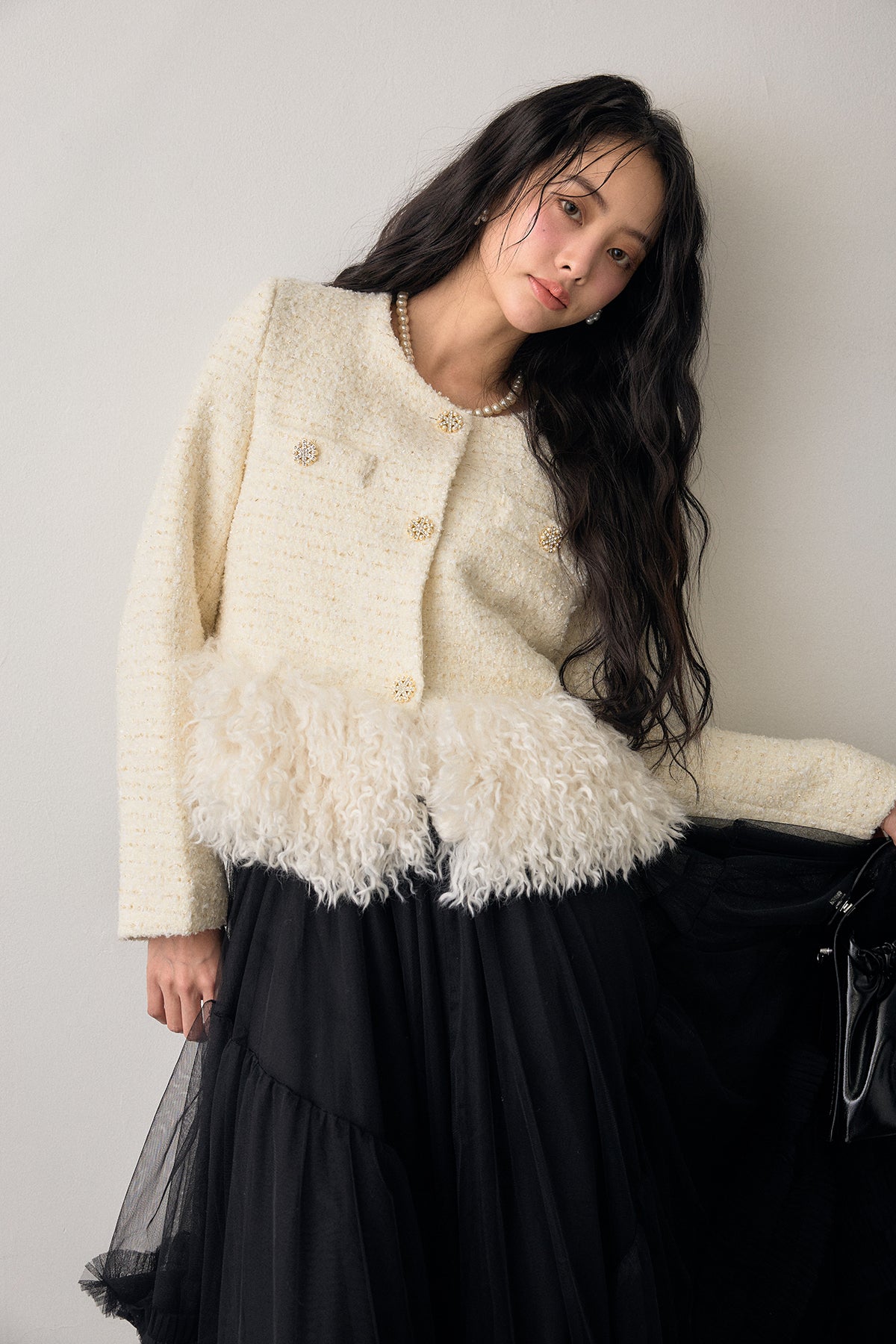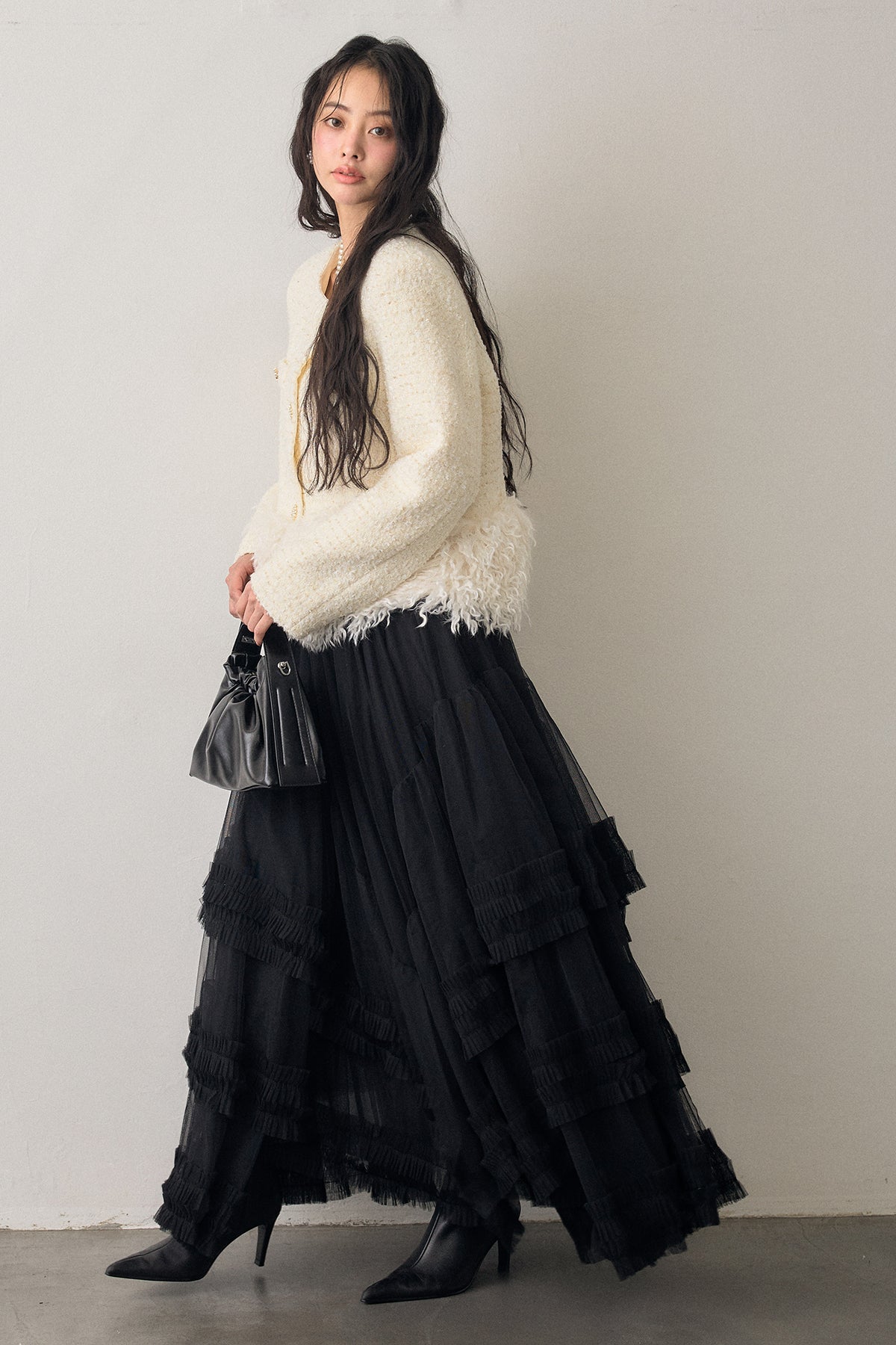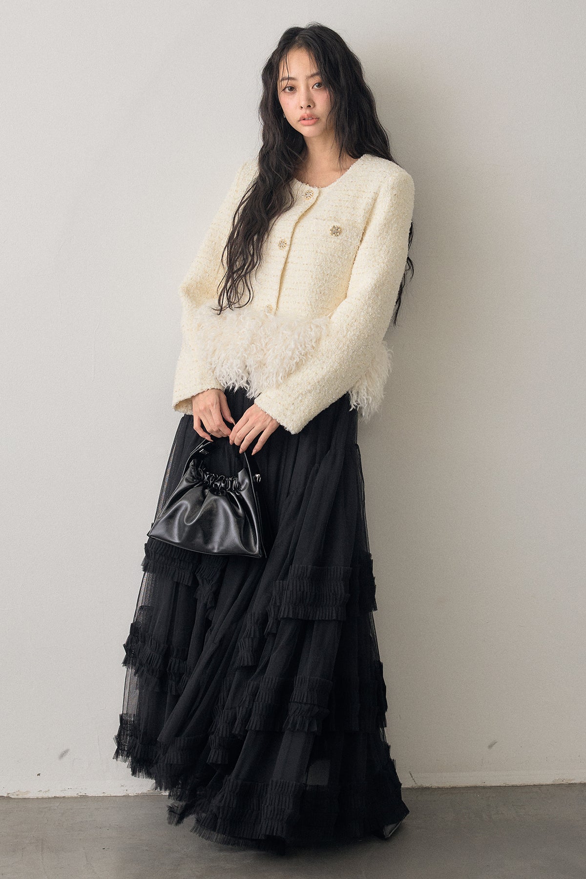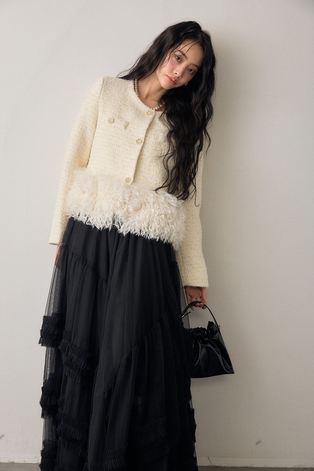 [予約/SET]中綿ツイードロングファードッキングジャケット+フェアリードレープチュールスカート(2set)