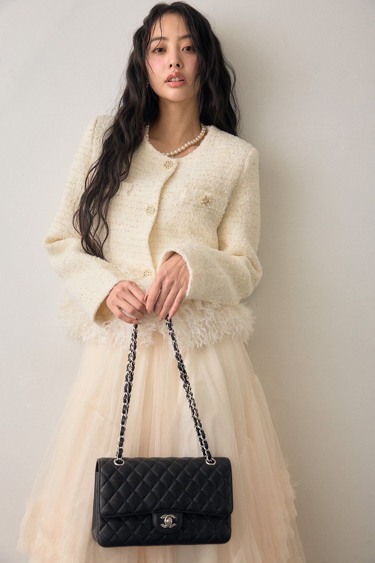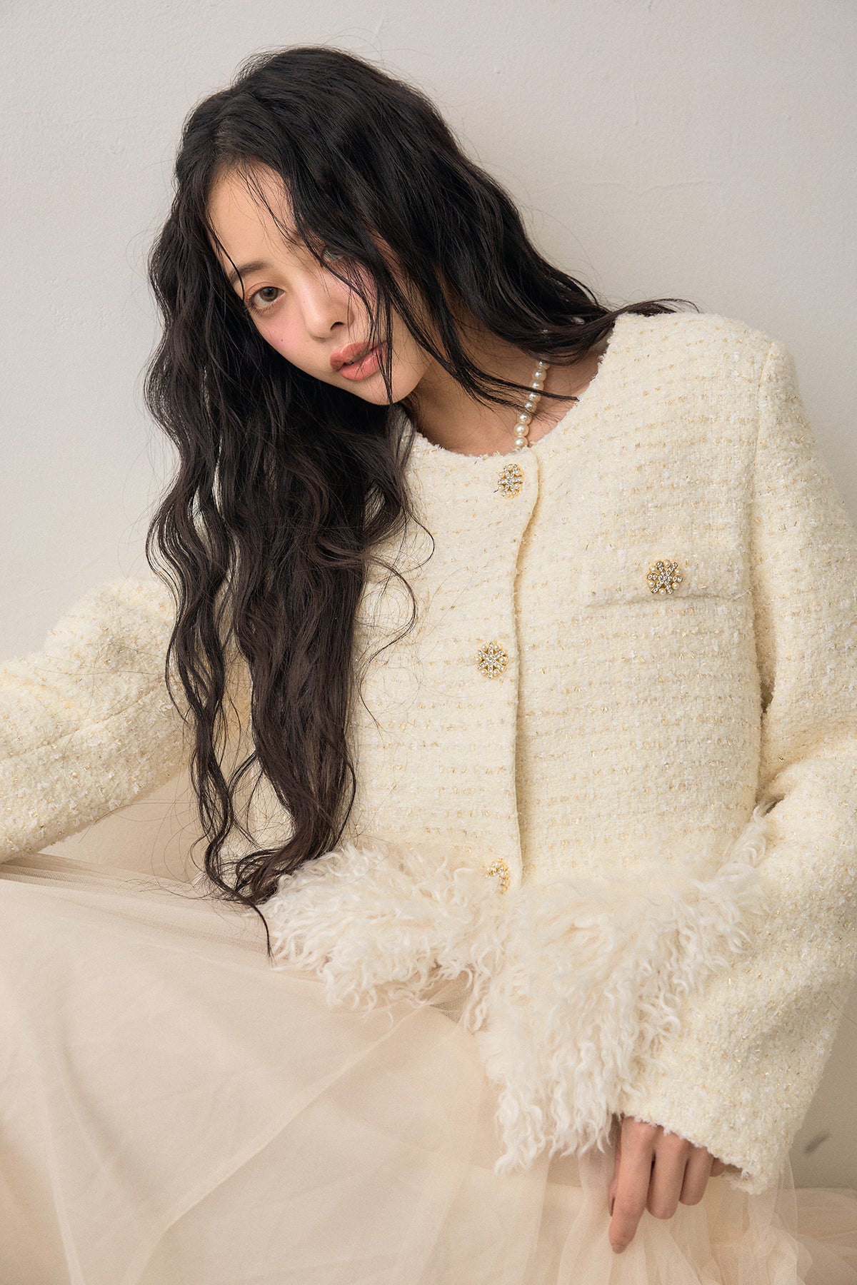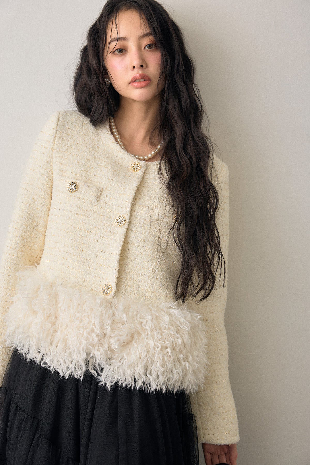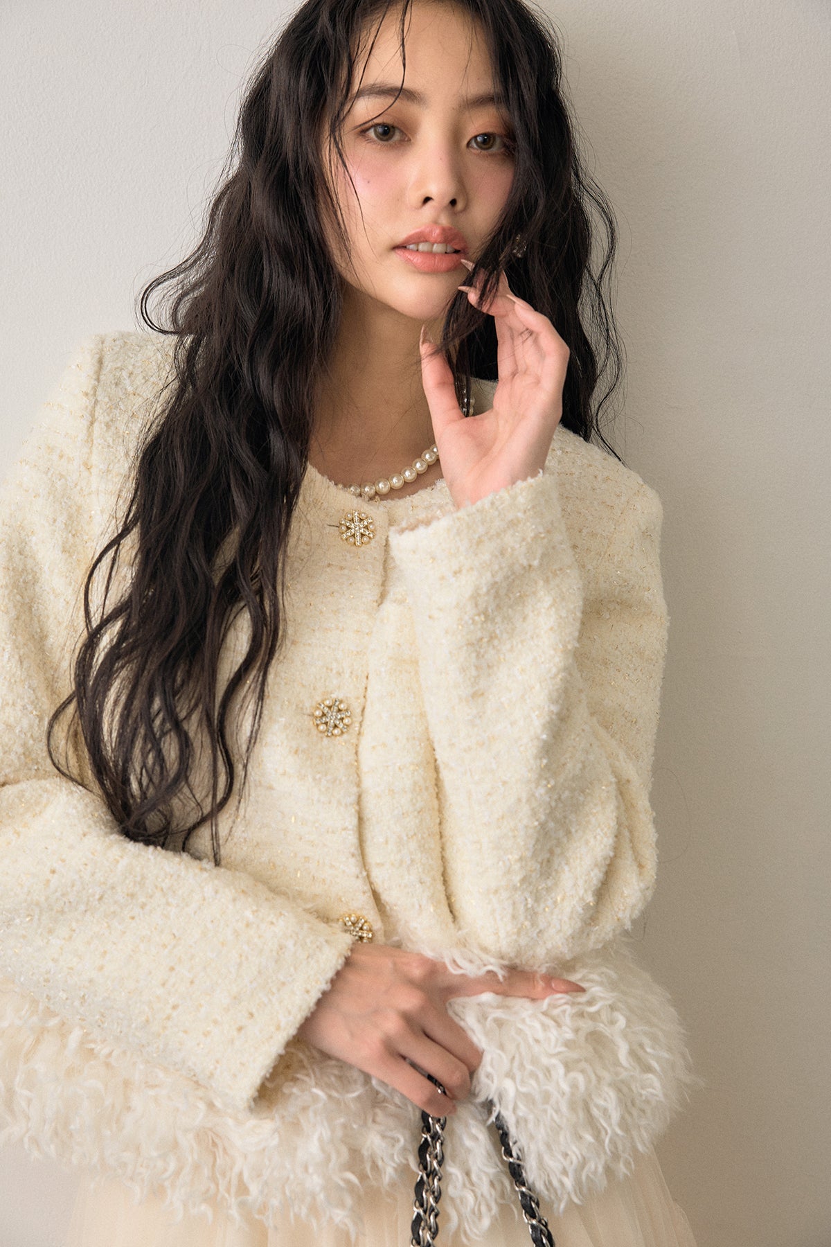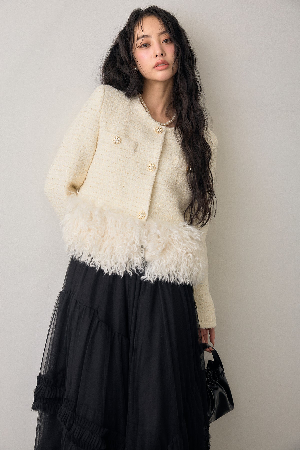 [予約/SET]中綿ツイードロングファードッキングジャケット+フェアリードレープチュールスカート(2set)