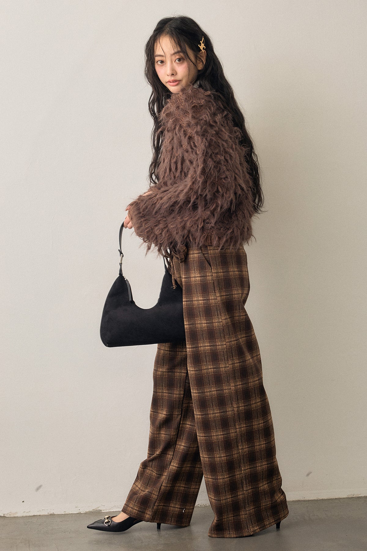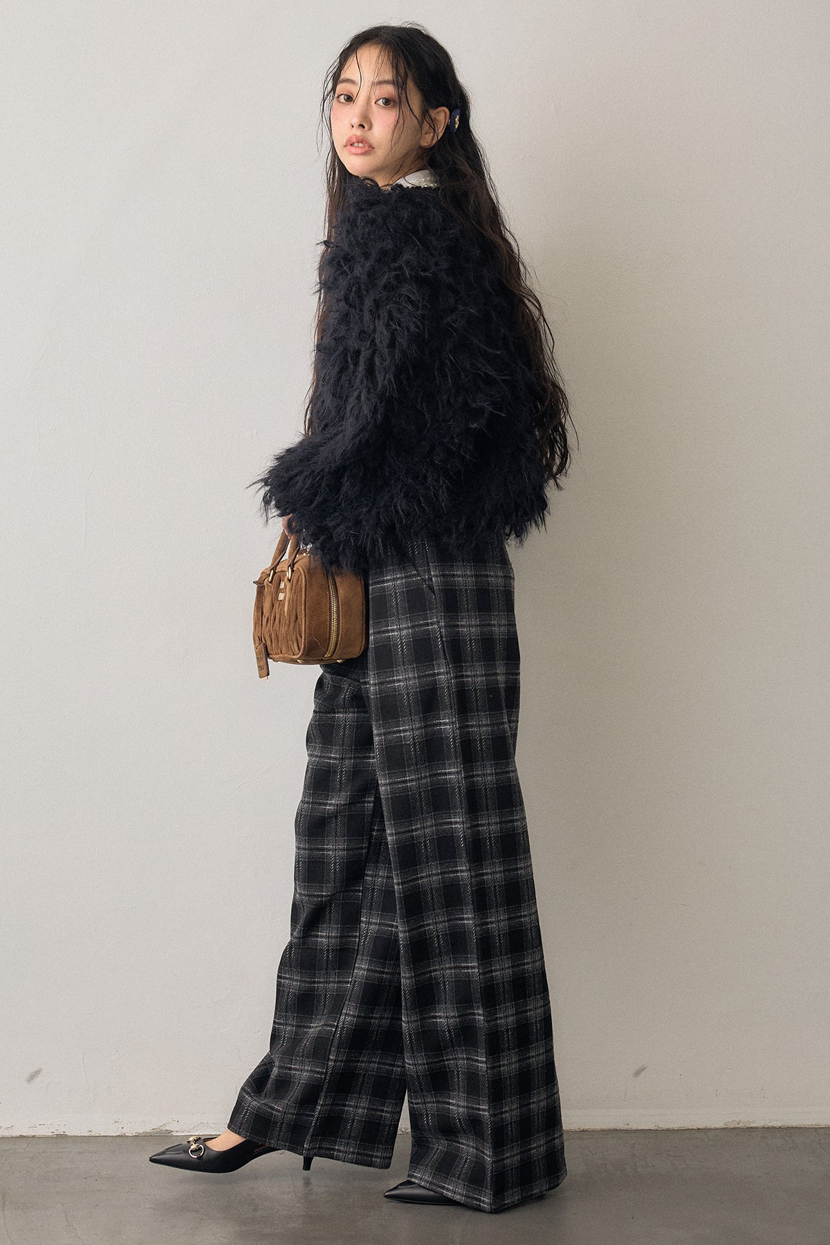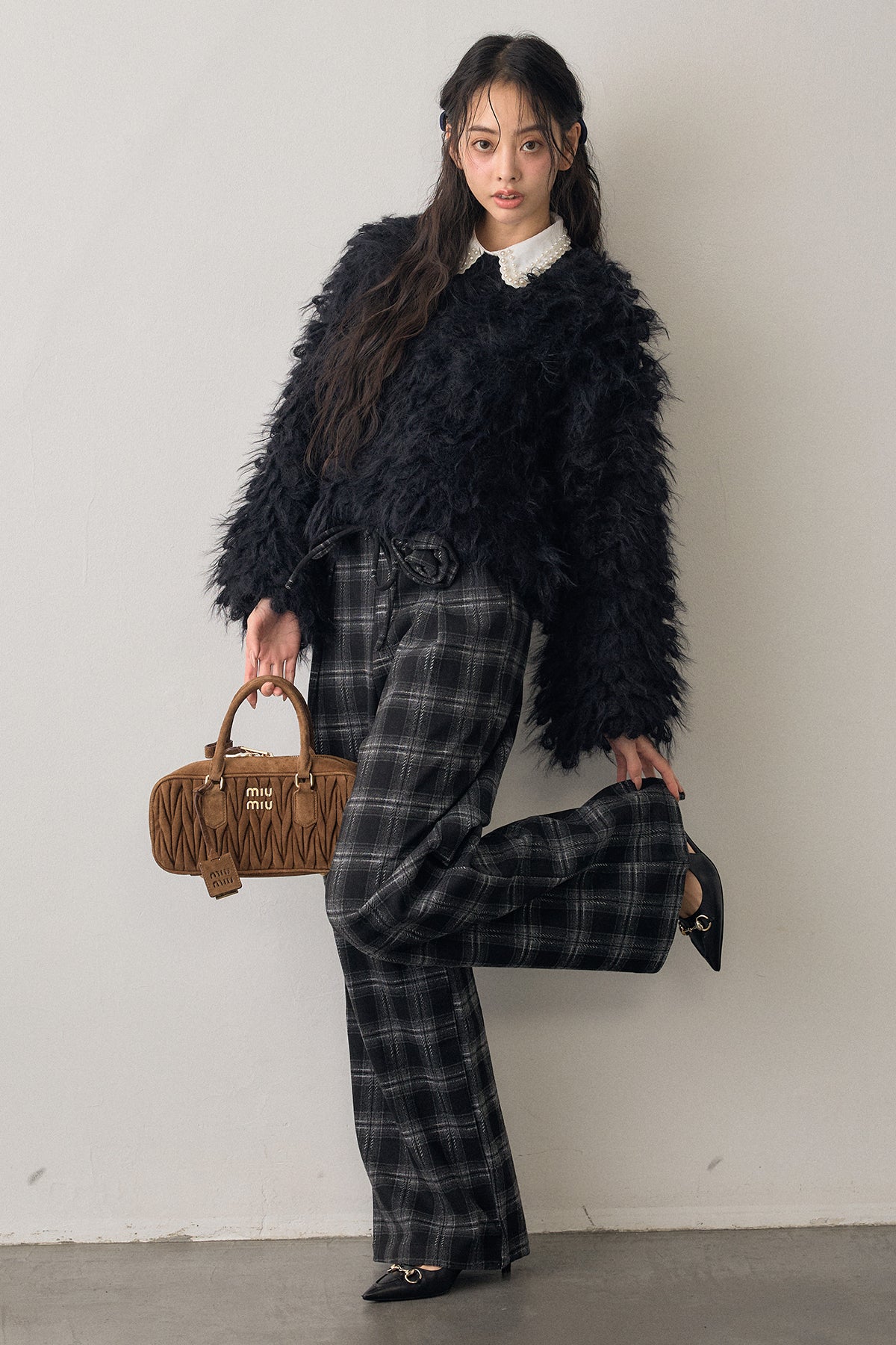 ◆ クラシカルチェックフラワーモチーフ付きパンツ
