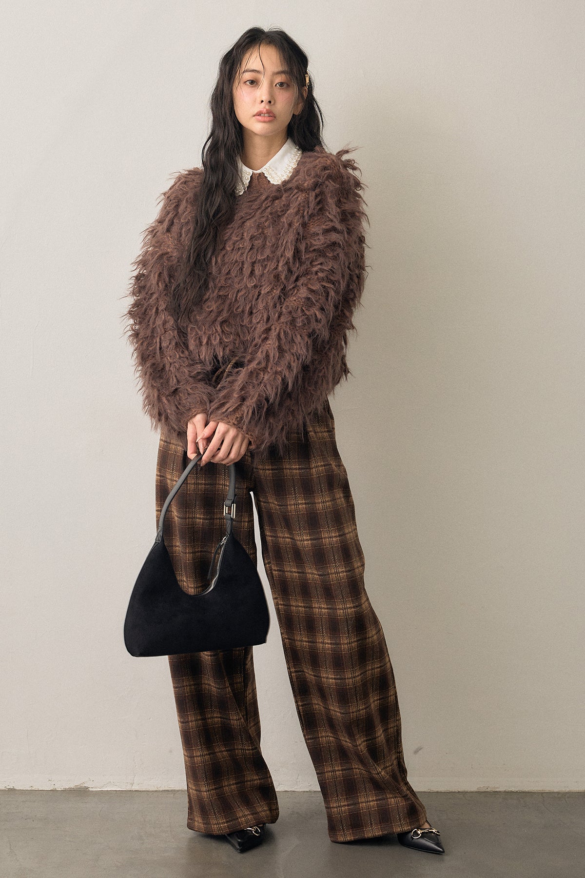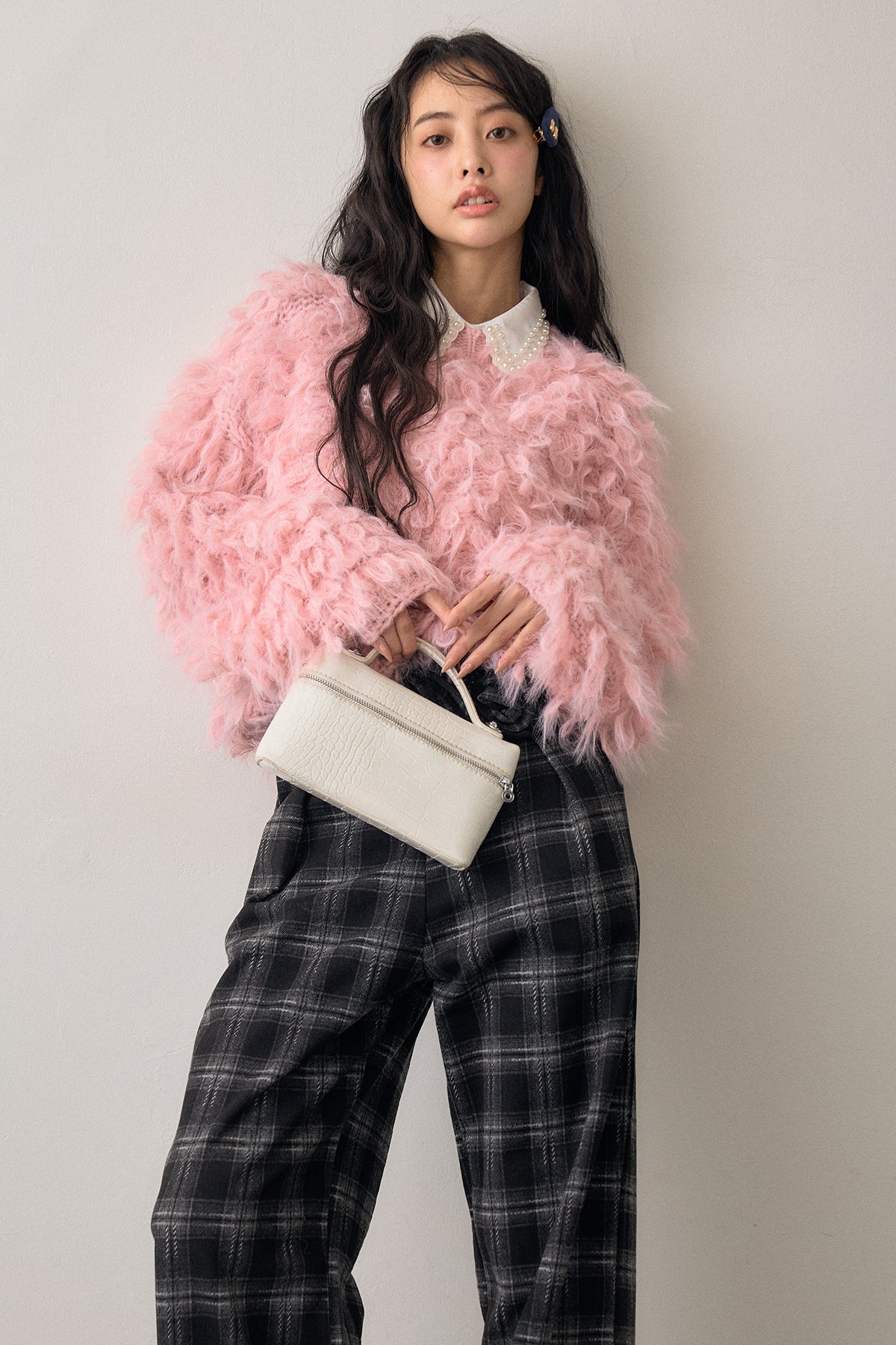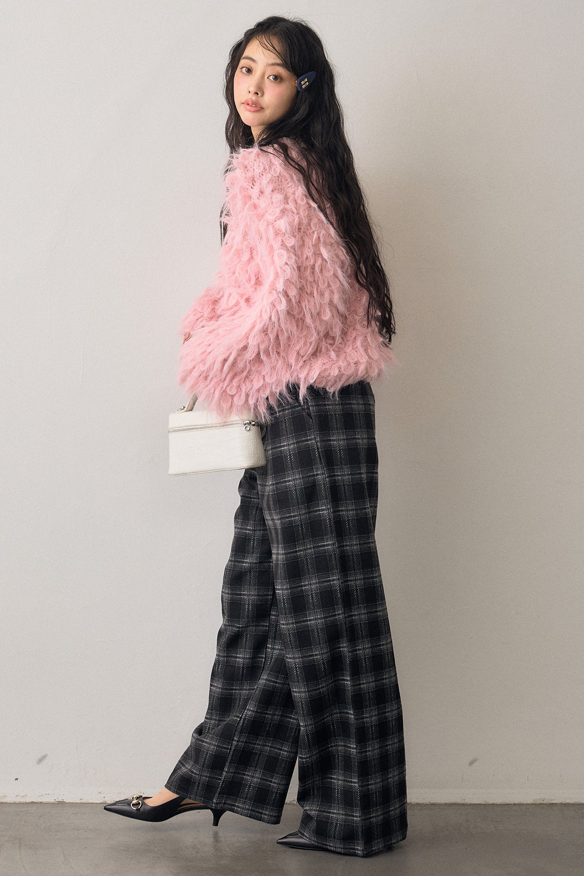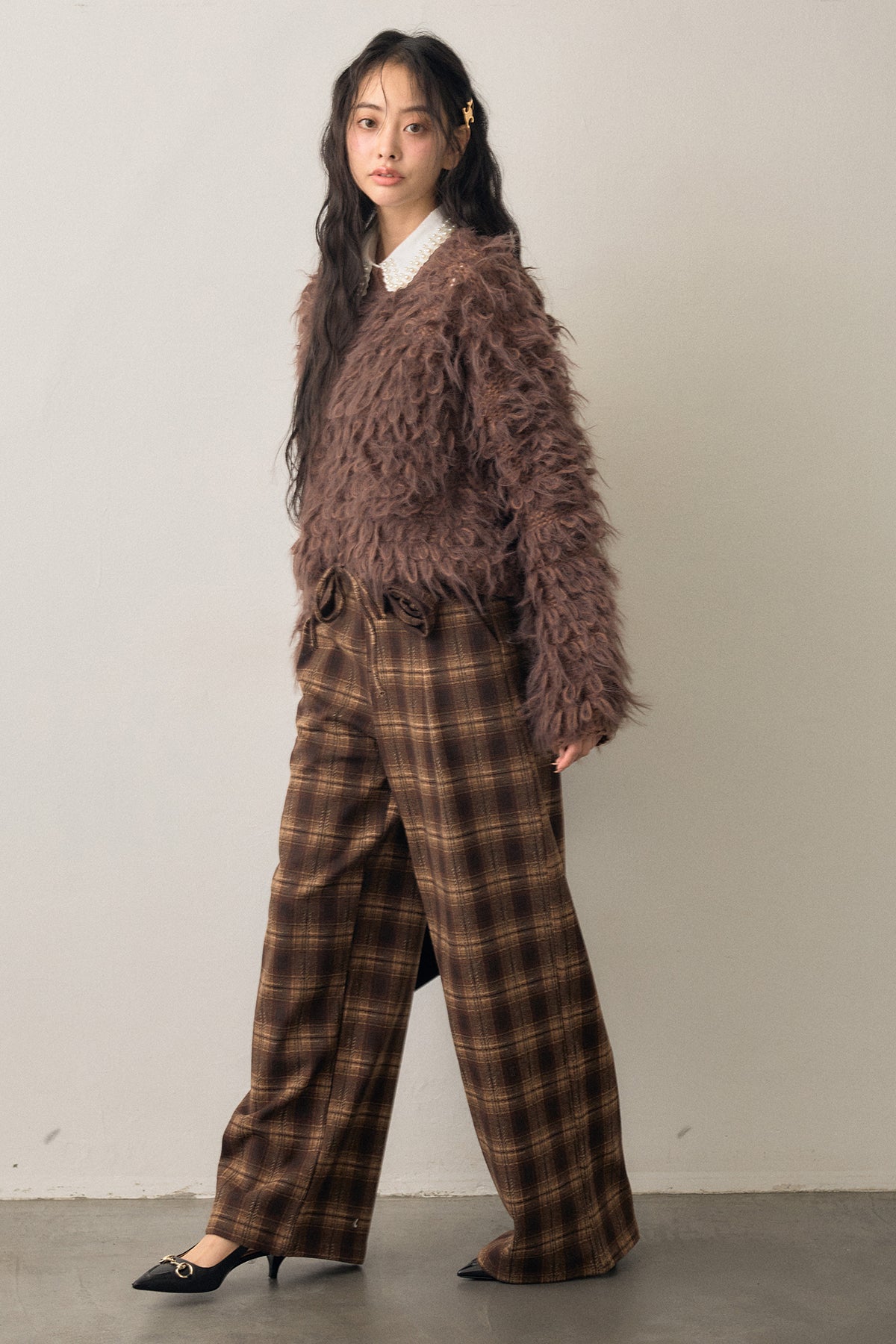 [予約/SET]2連パール付け襟+ループシャプルオーバーニット+クラシカルチェックフラワーモチーフ付きパンツ(3set)