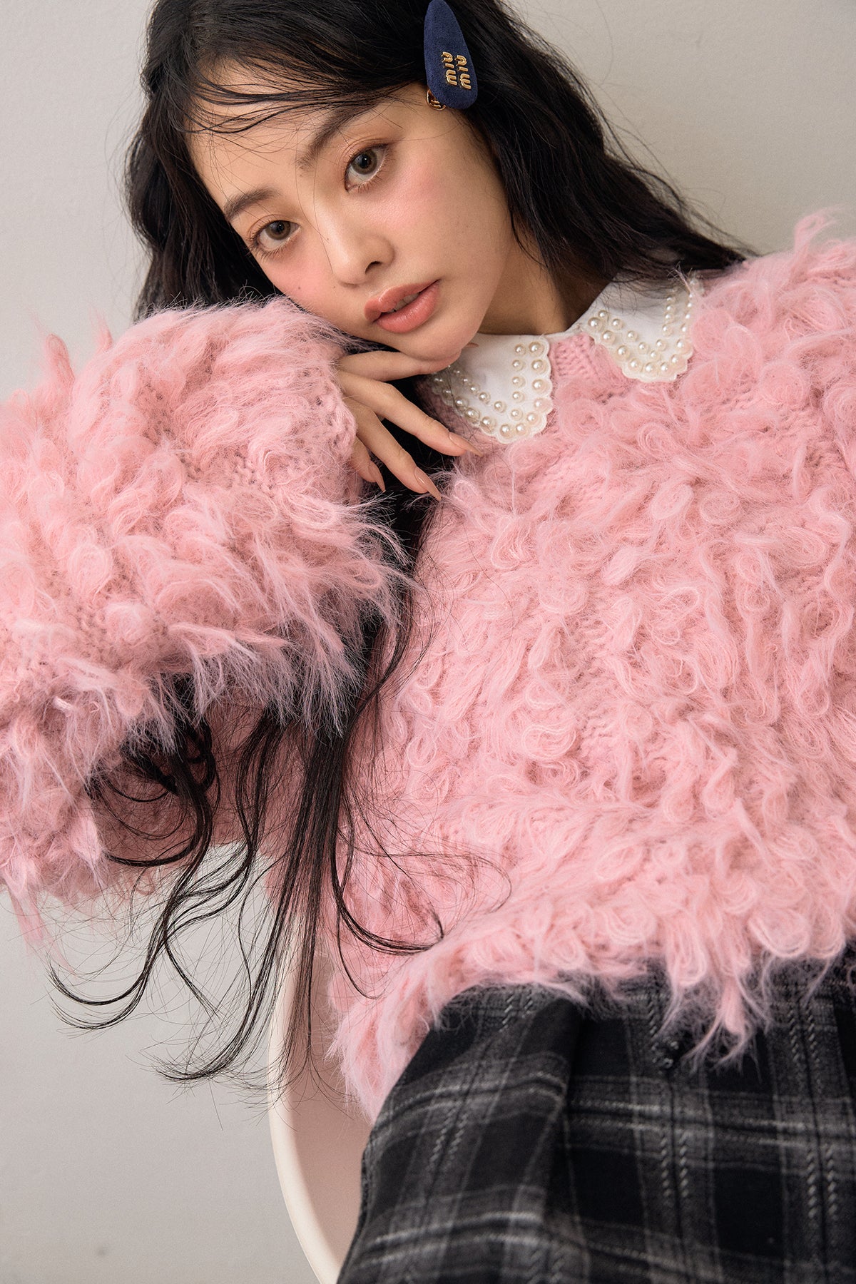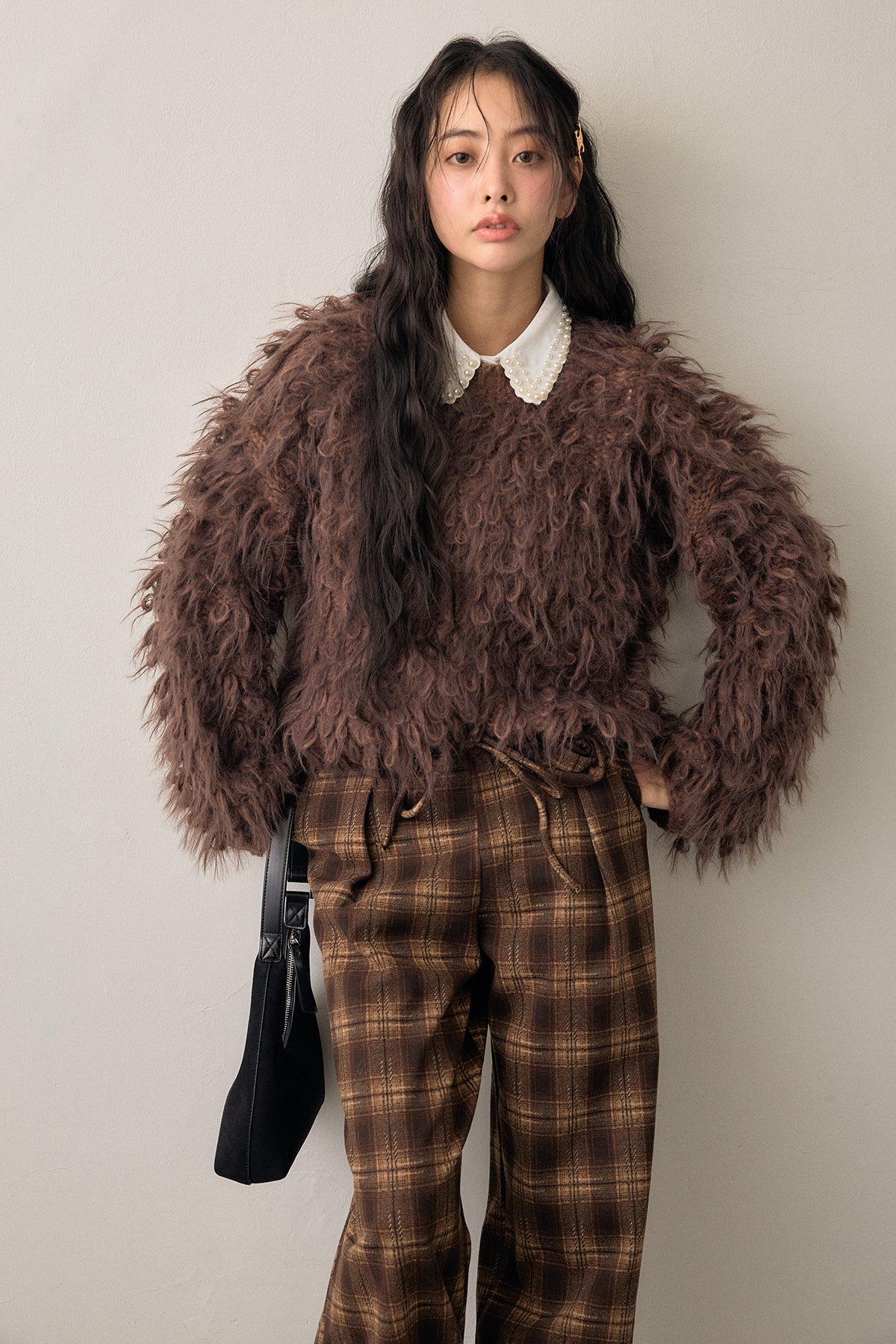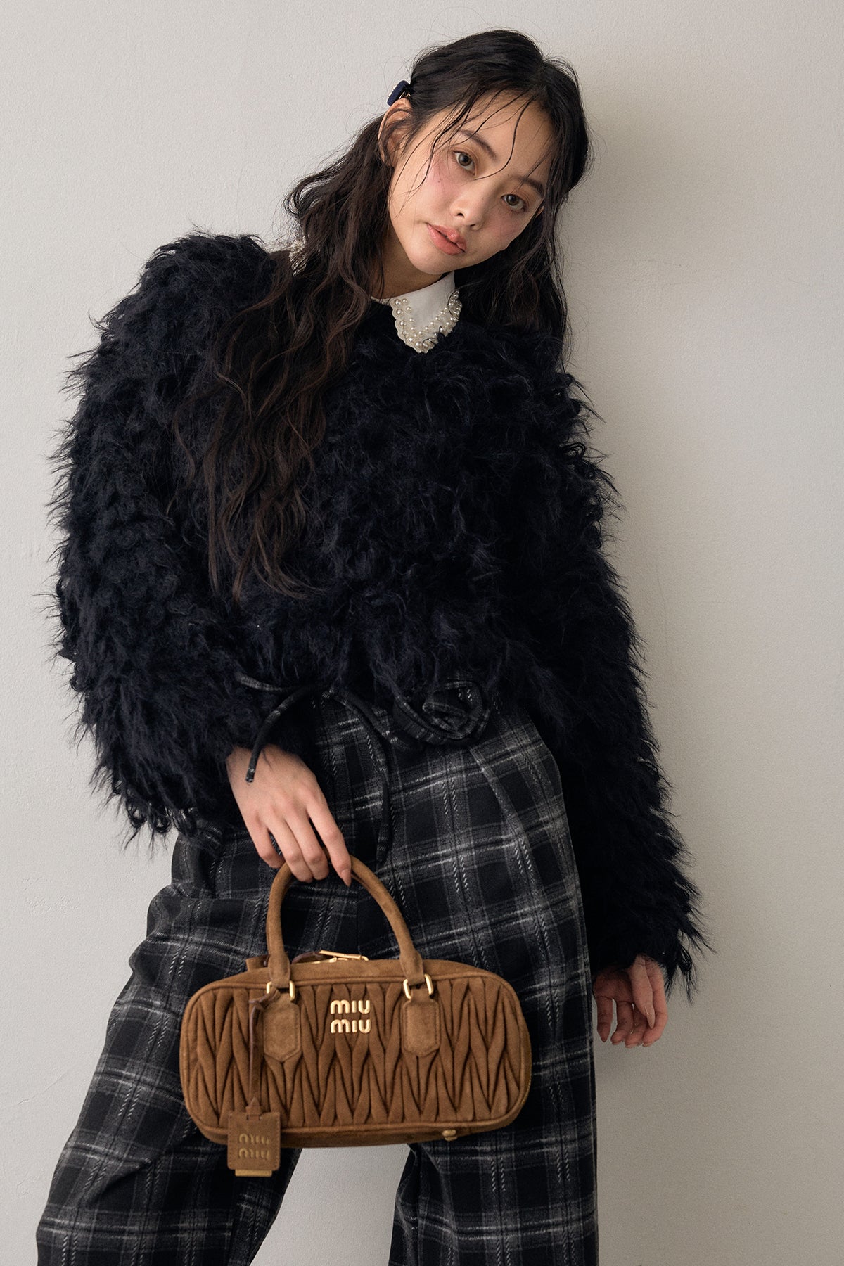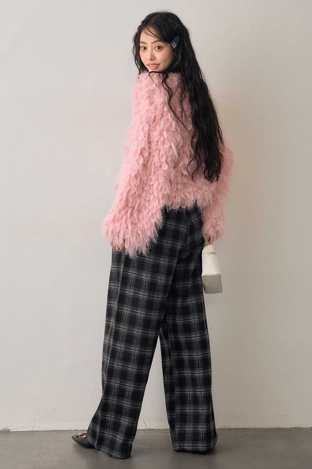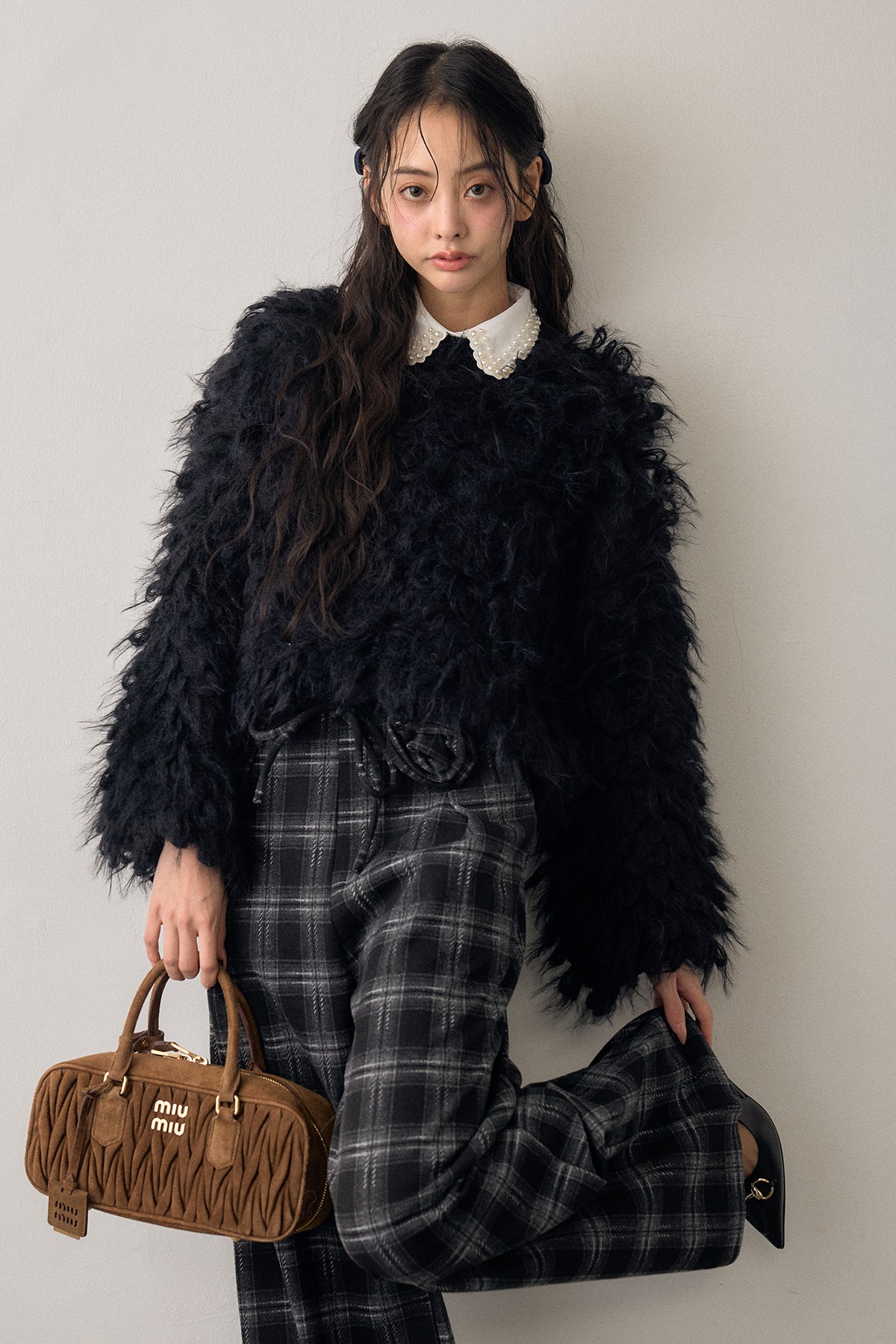 [予約/SET]2連パール付け襟+ループシャプルオーバーニット+クラシカルチェックフラワーモチーフ付きパンツ(3set)