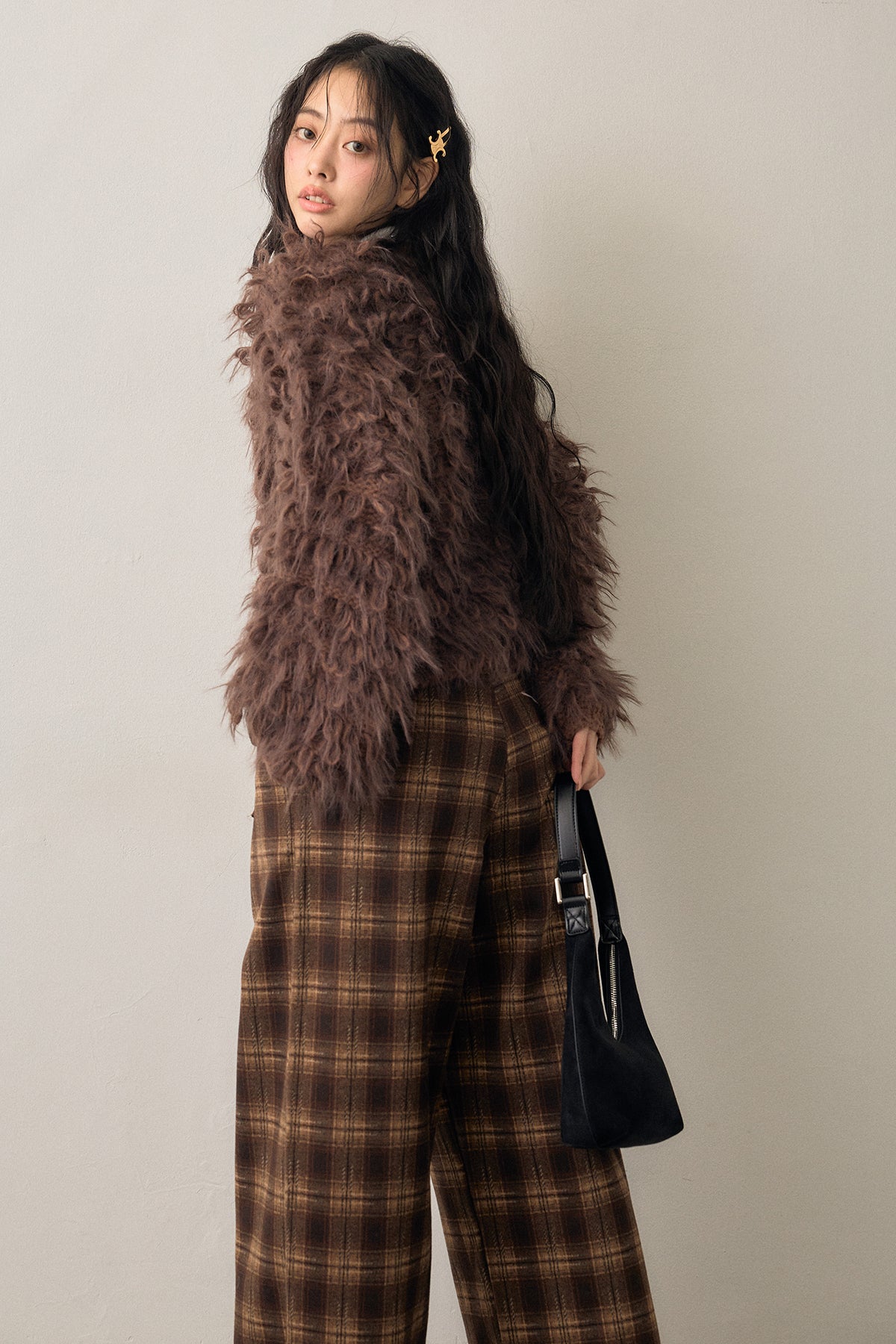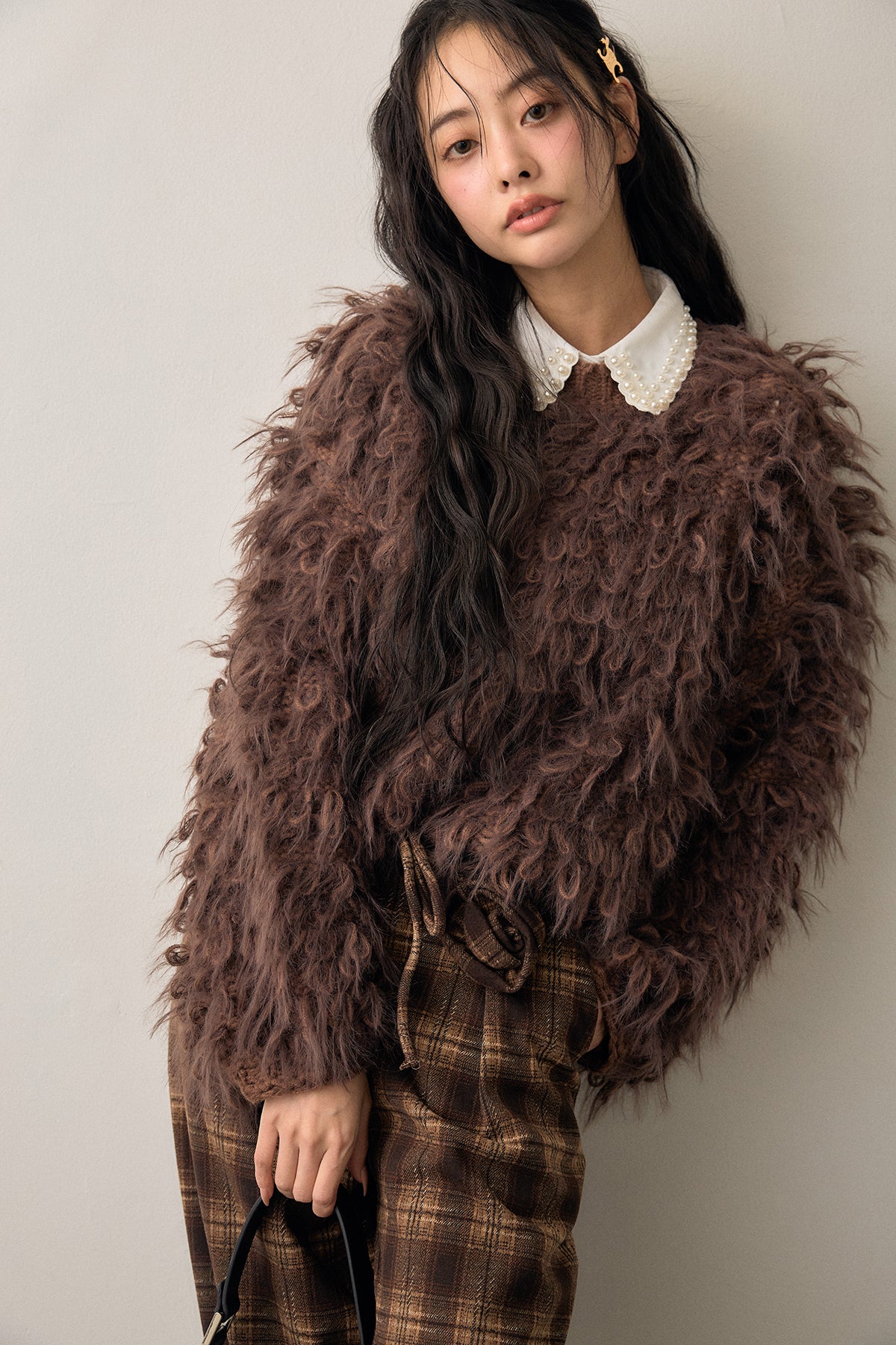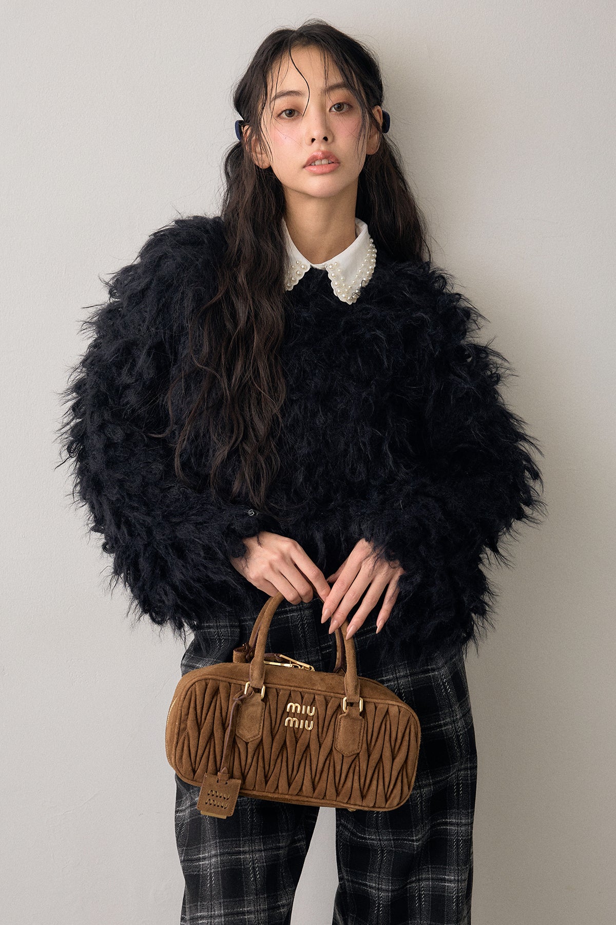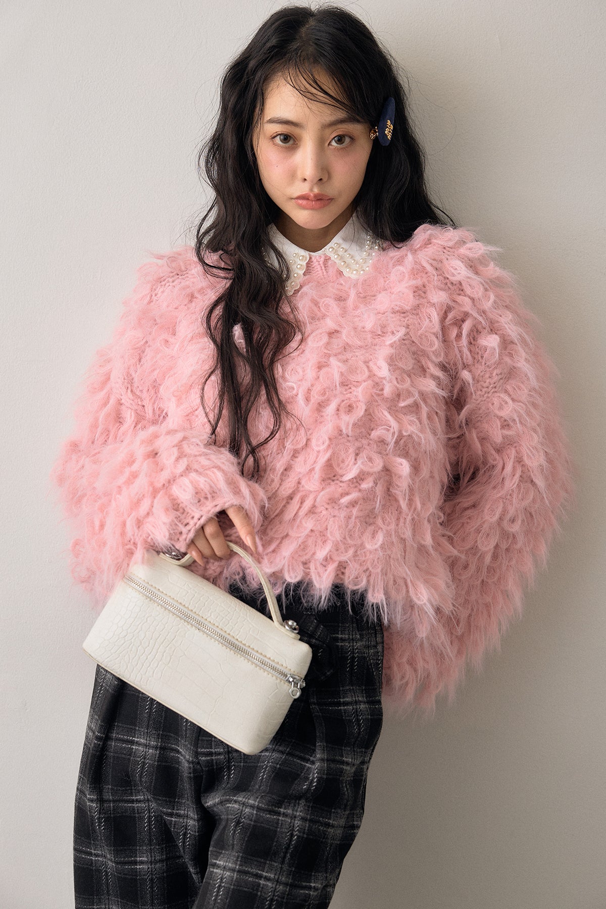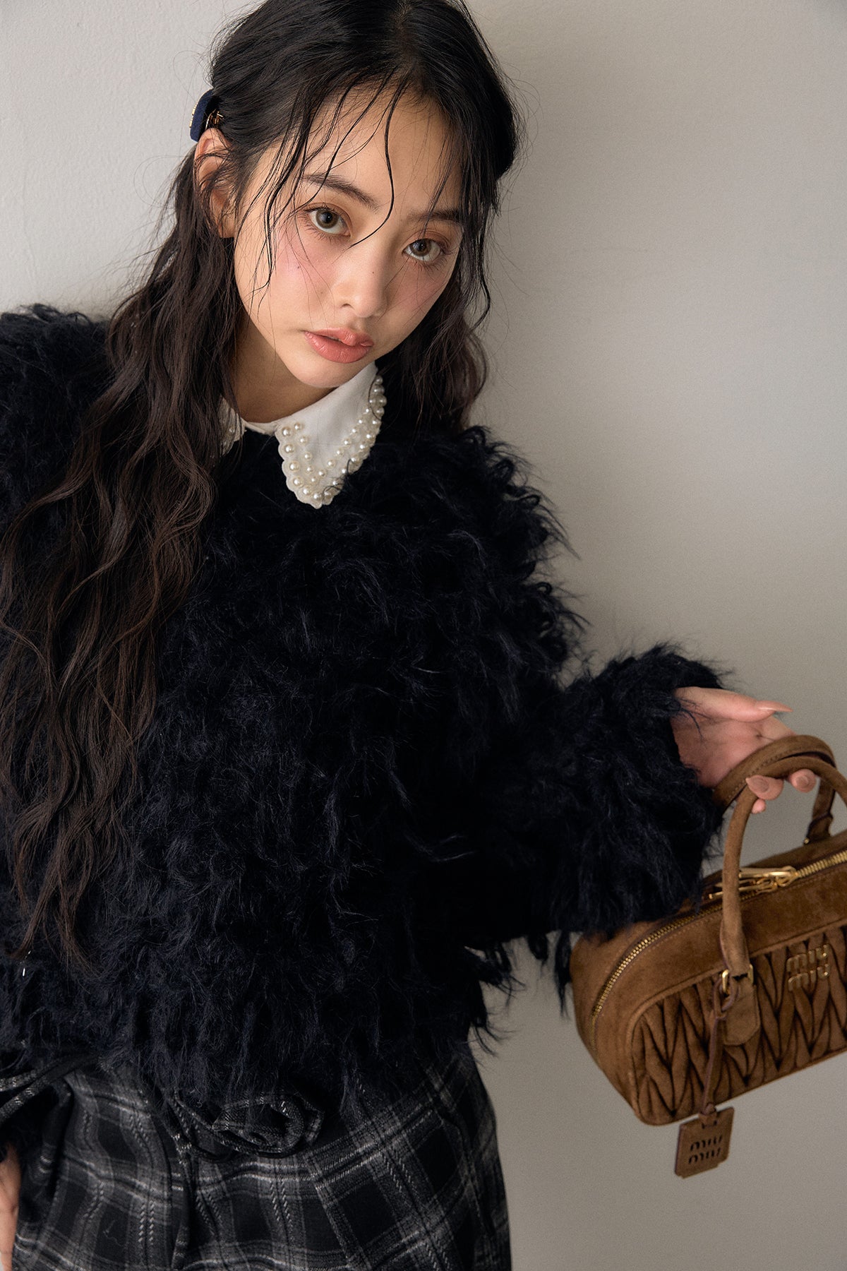 [予約/SET]2連パール付け襟+ループシャプルオーバーニット+クラシカルチェックフラワーモチーフ付きパンツ(3set)