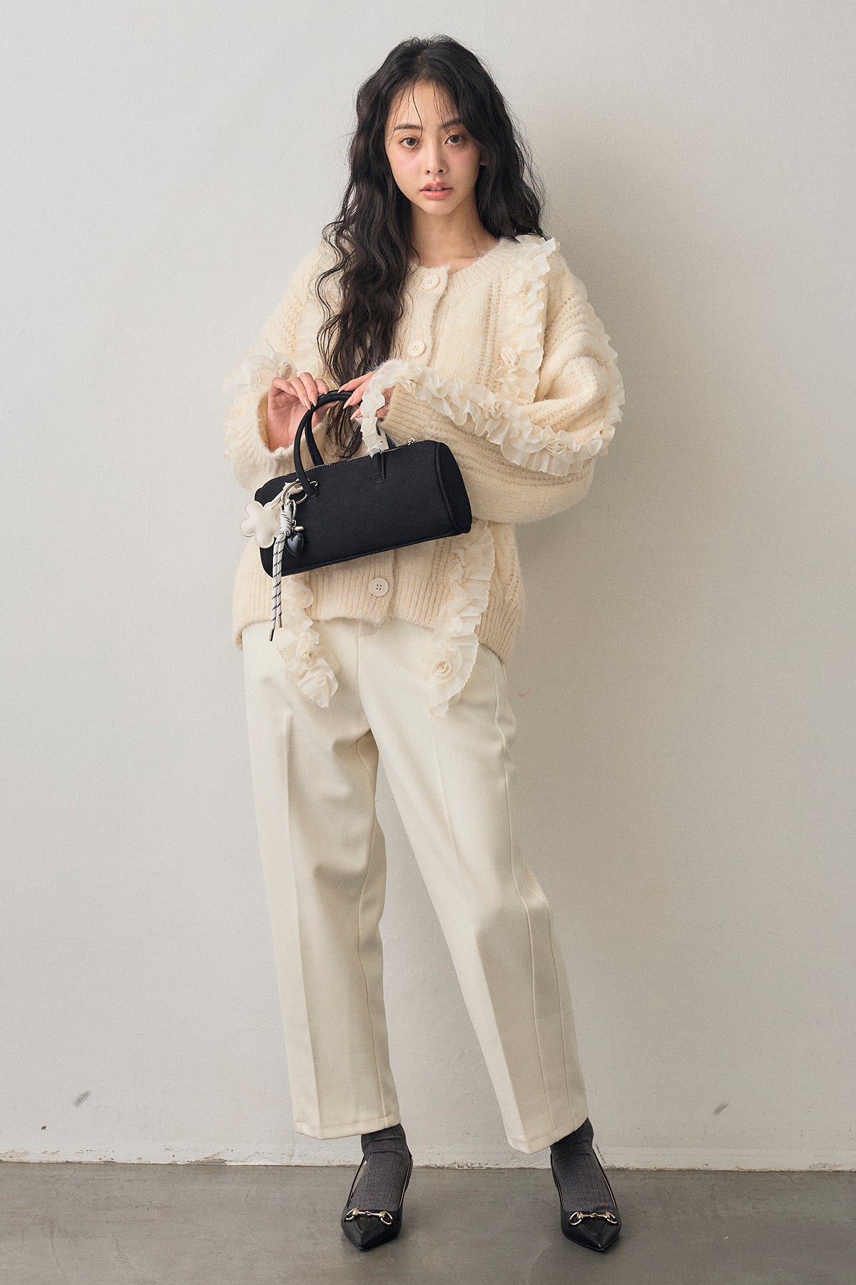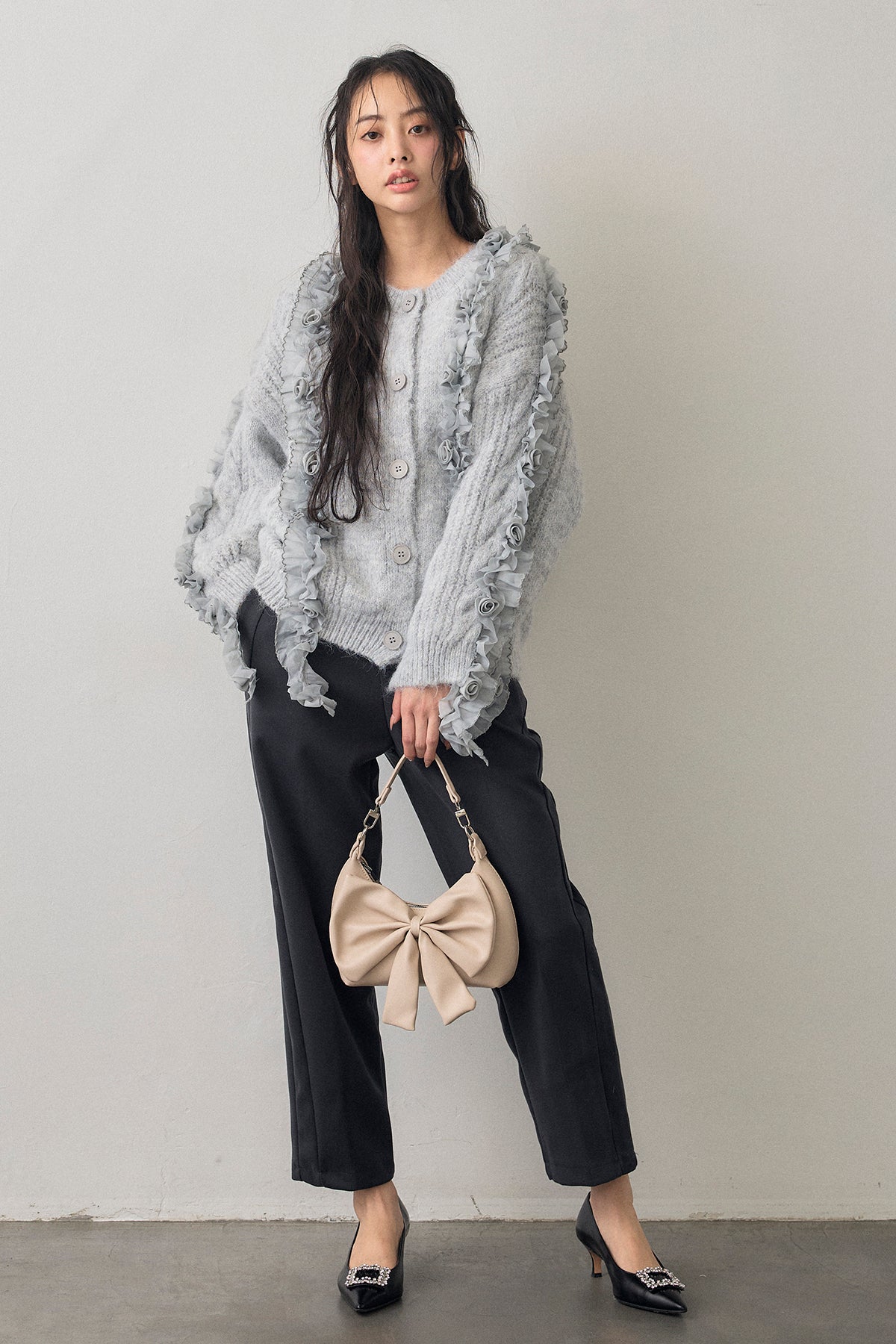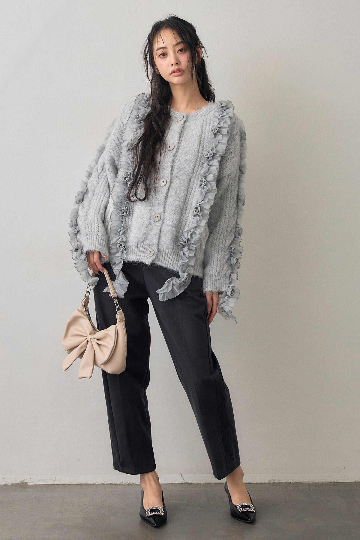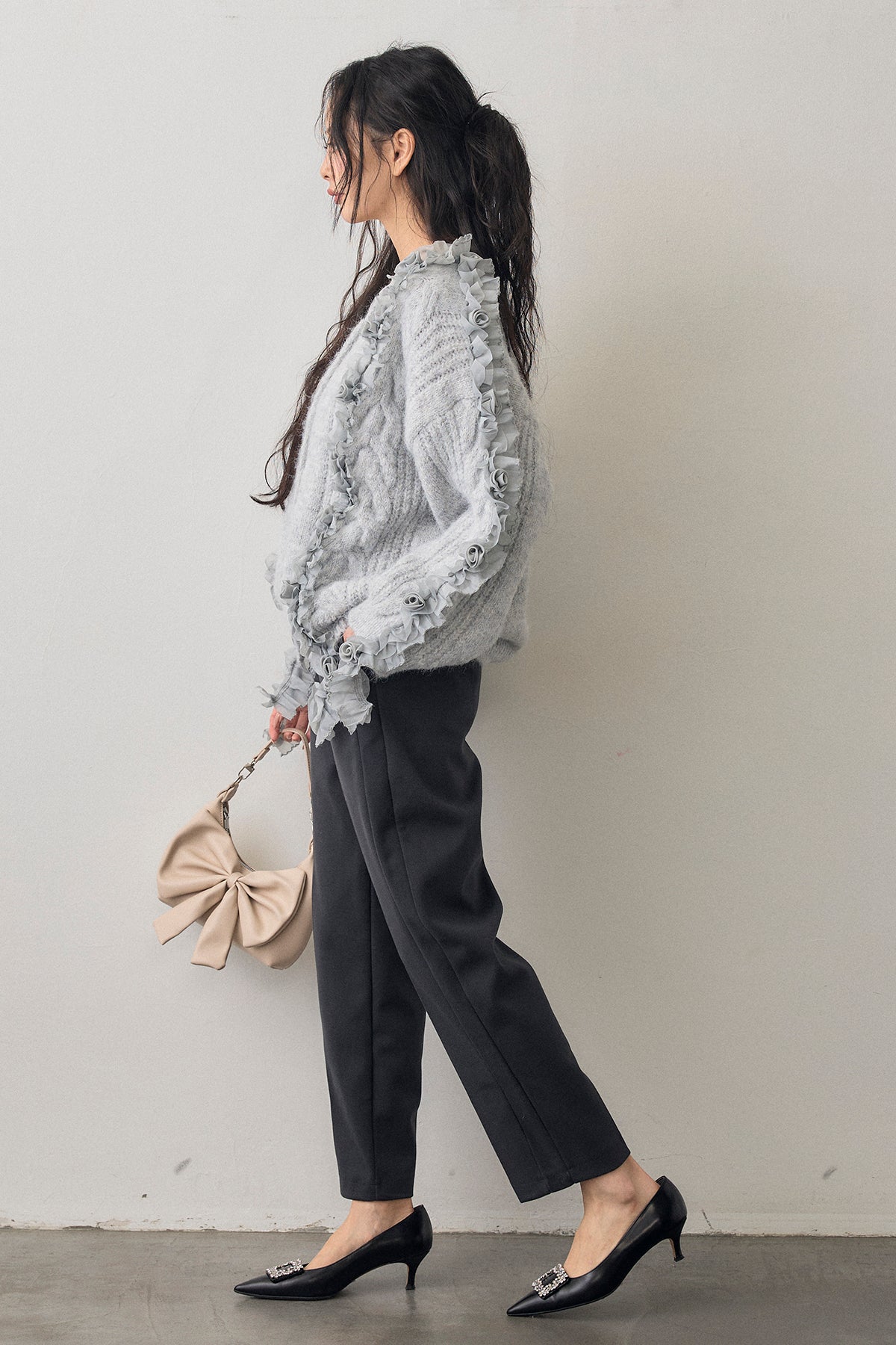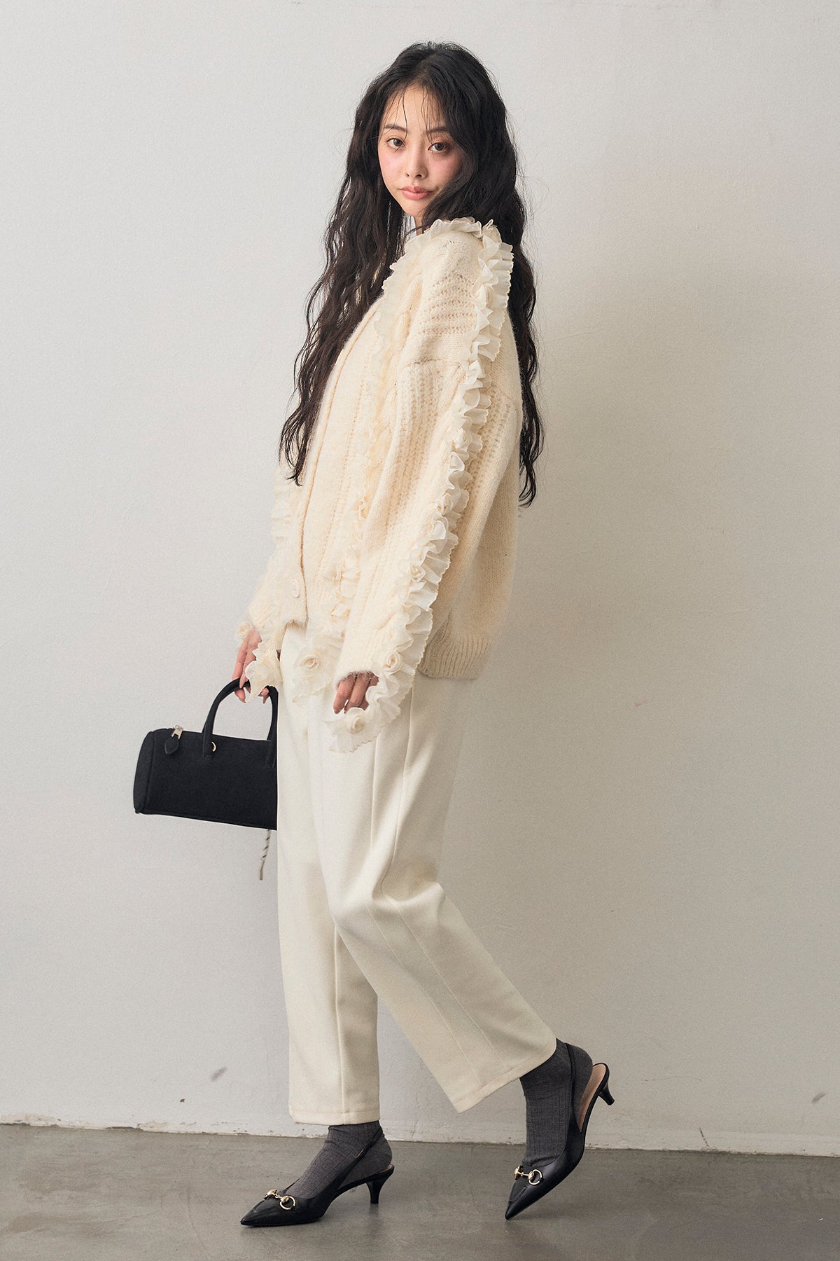 [予約/SET]フリルローズドッキングニットカーデ+ウォームセンタープレス美ラインテーパードパンツ(2set)