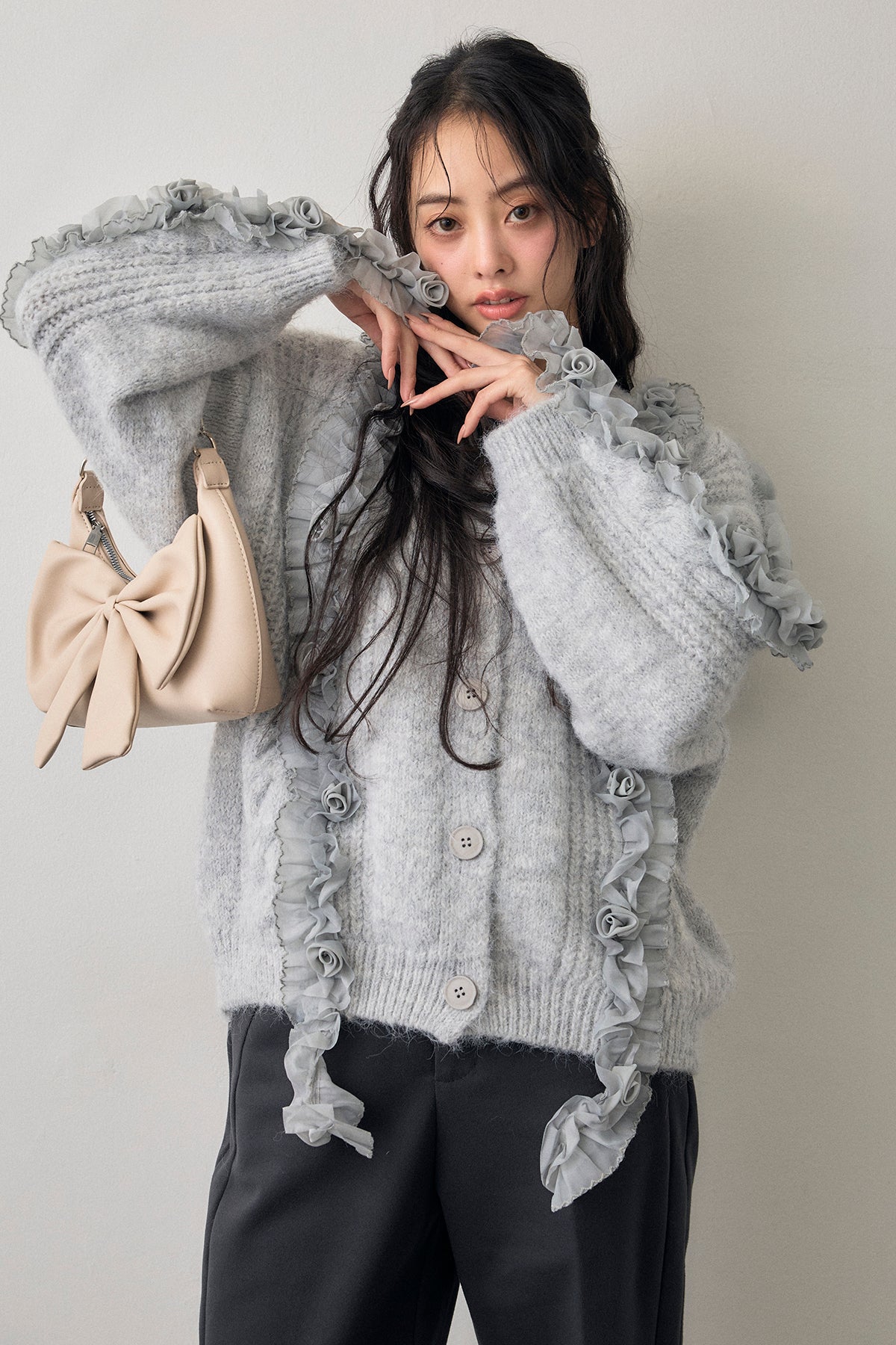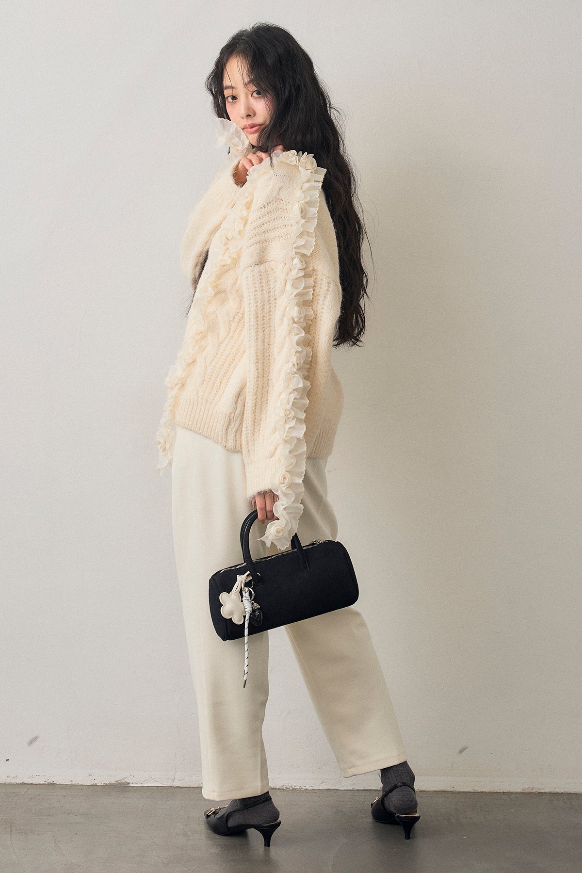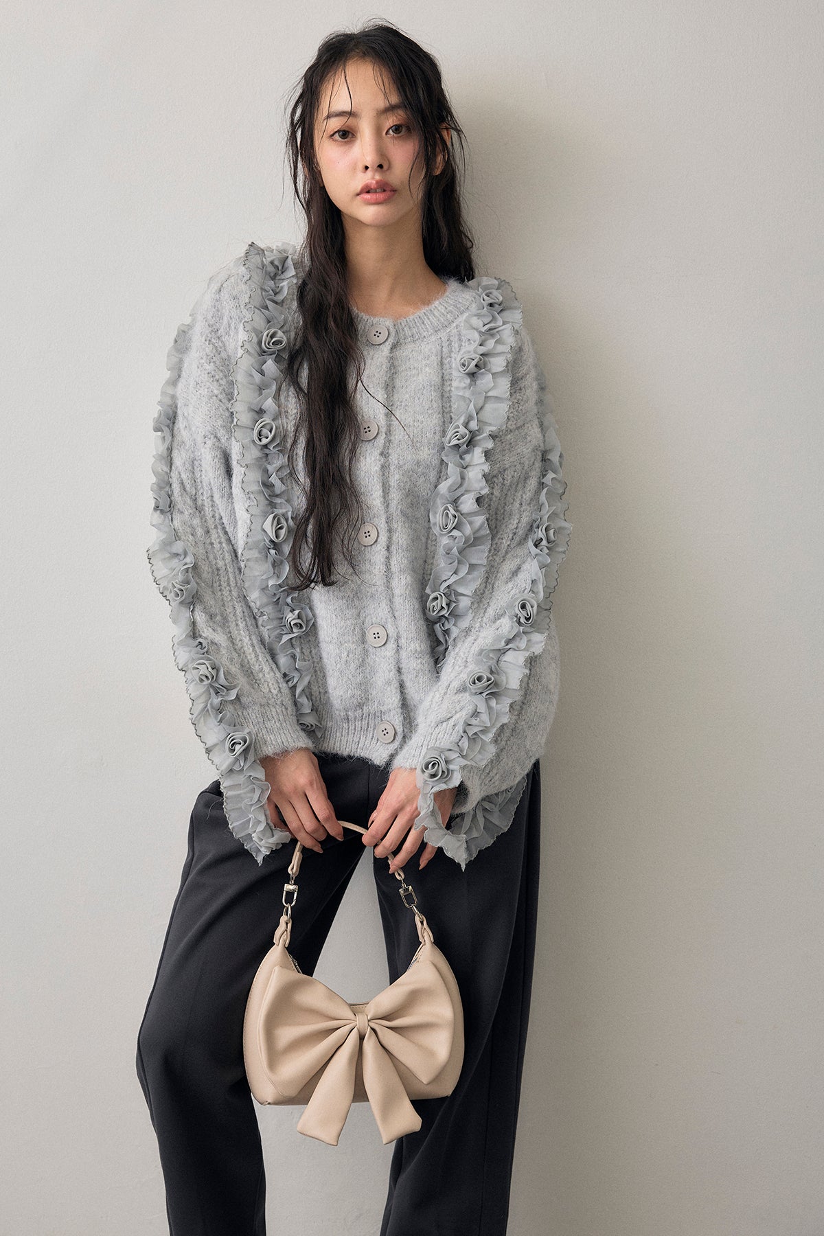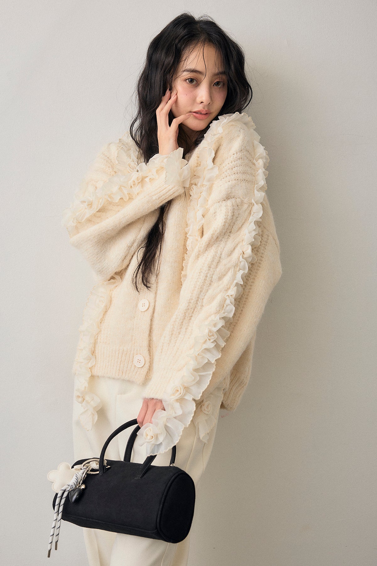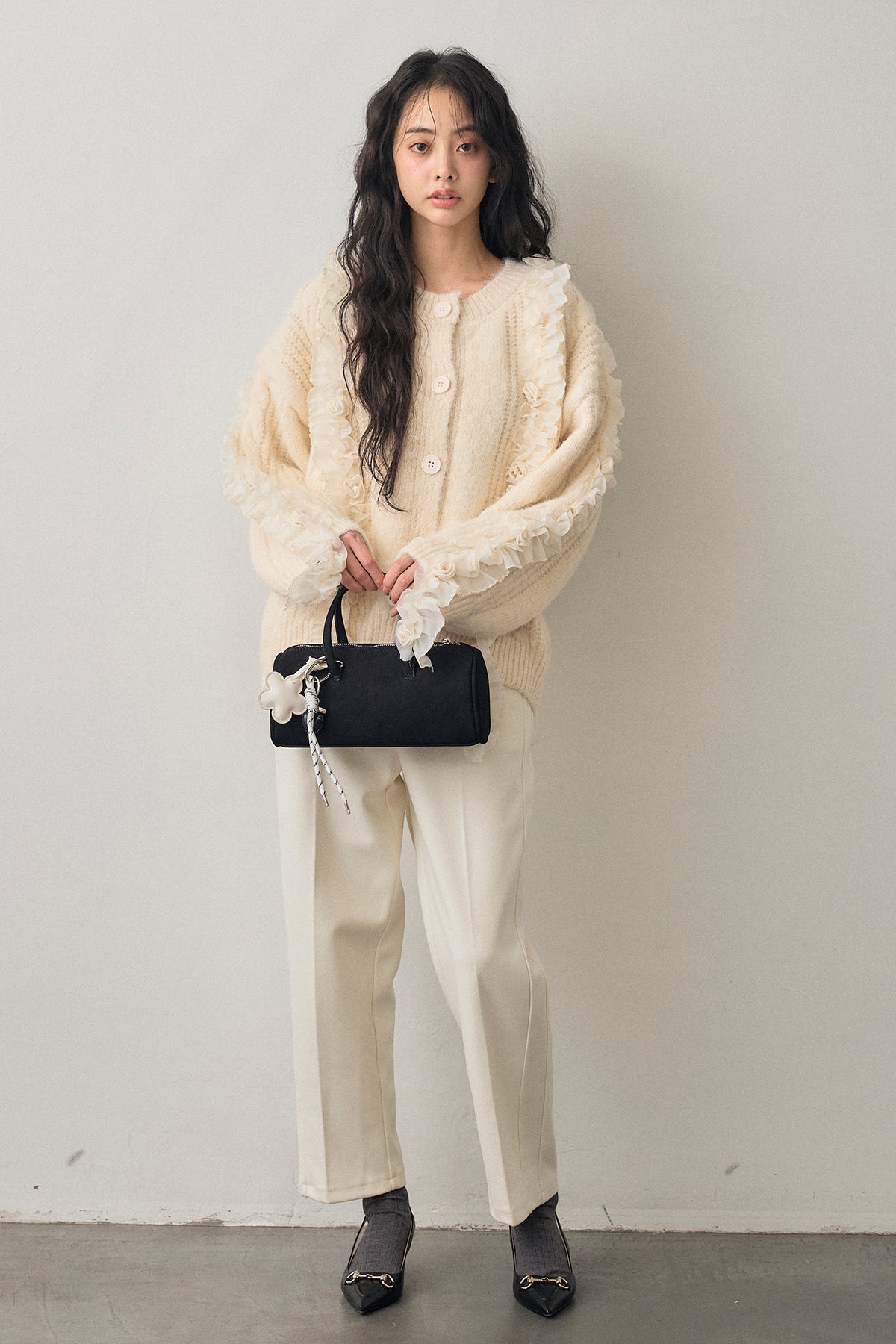 [予約/SET]フリルローズドッキングニットカーデ+ウォームセンタープレス美ラインテーパードパンツ(2set)