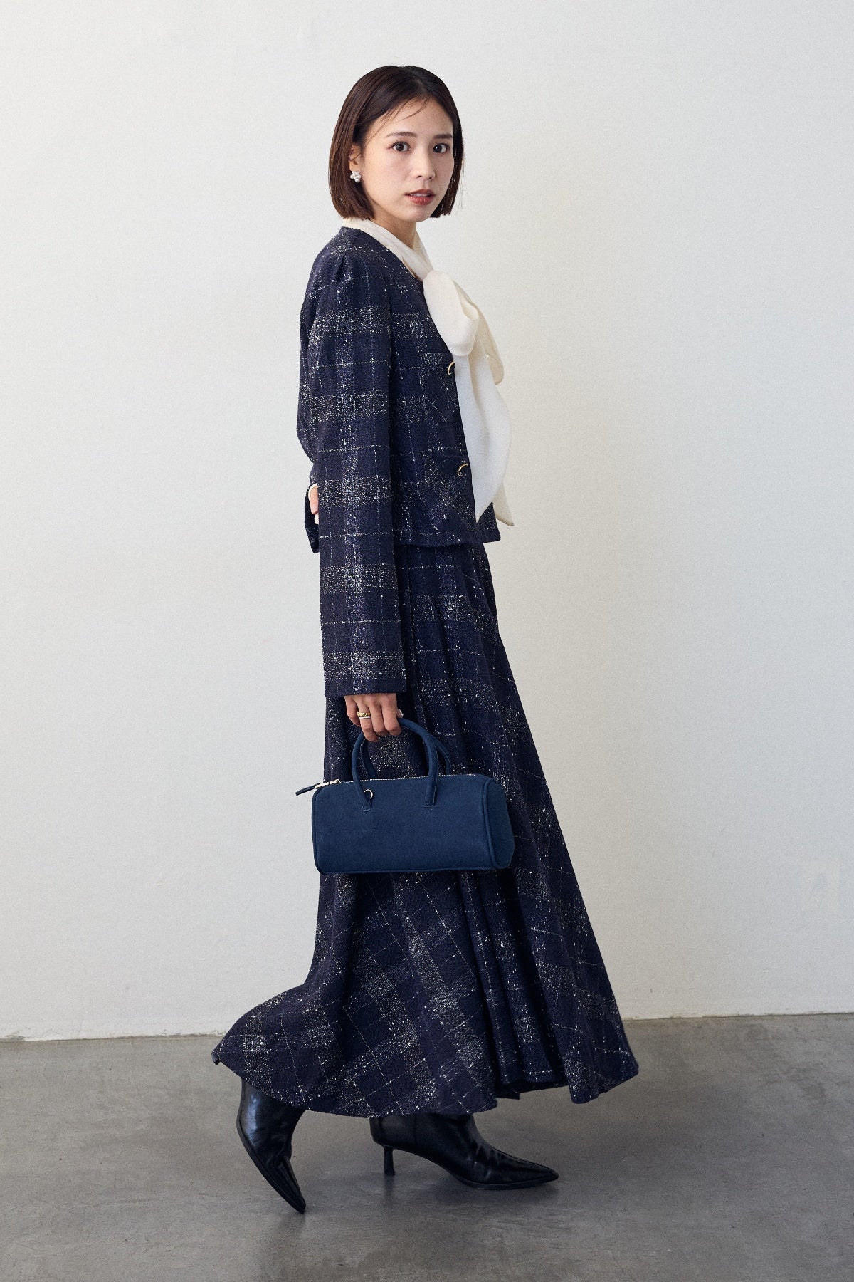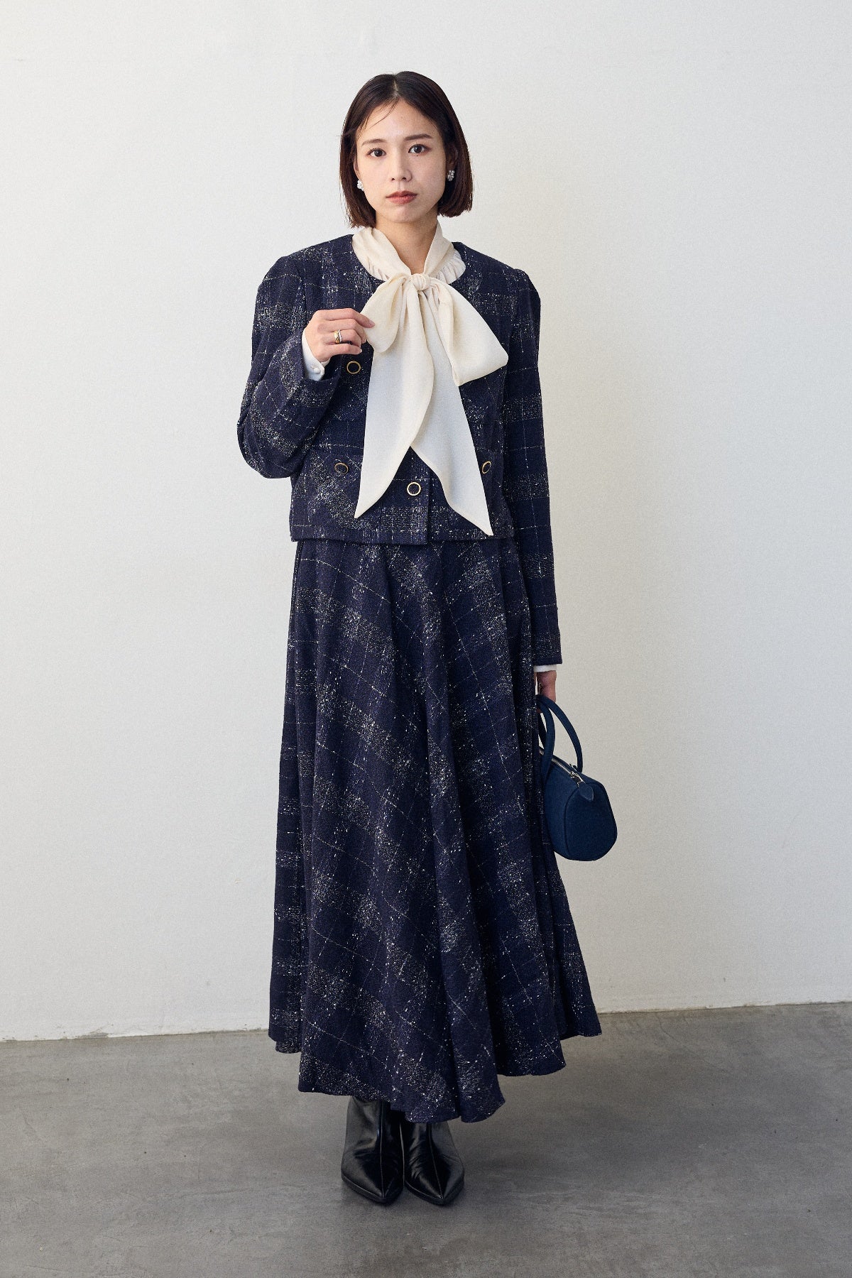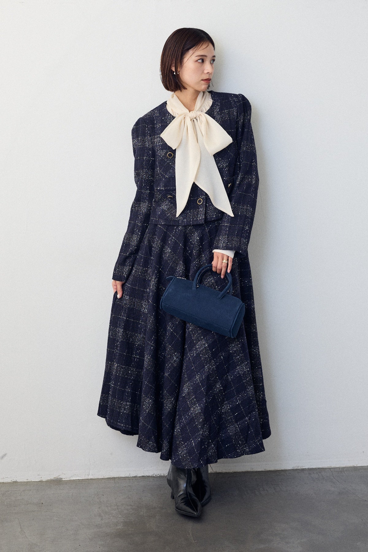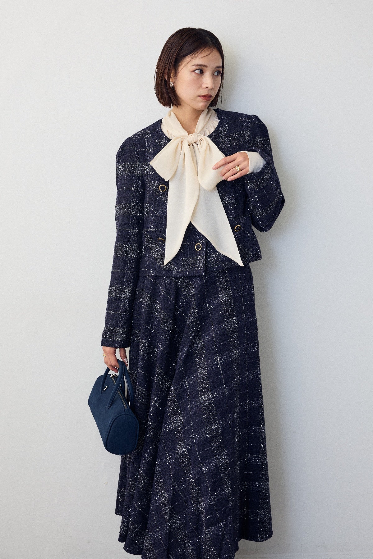 [予約]ツイードチェックセミフレアスカートセットアップ