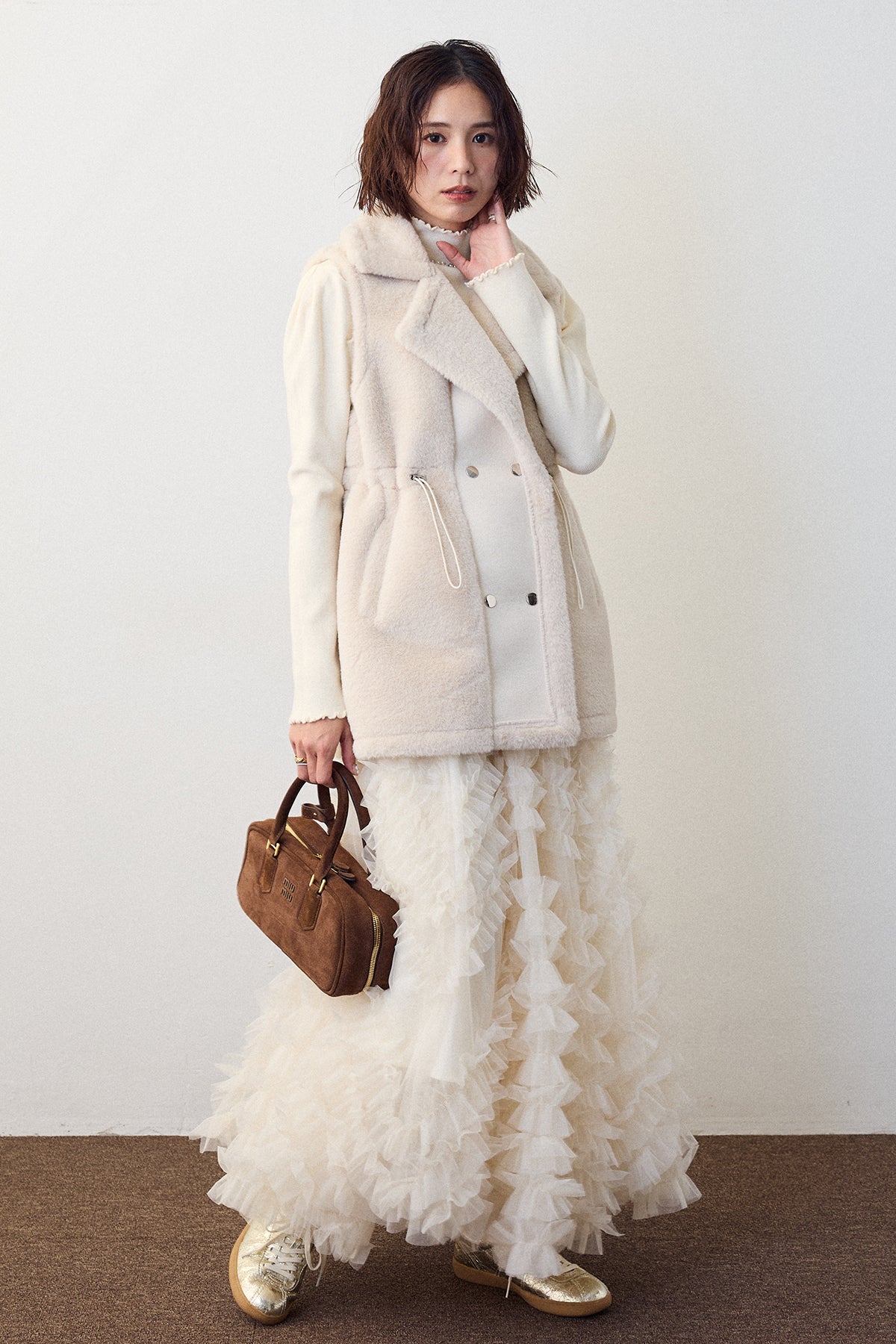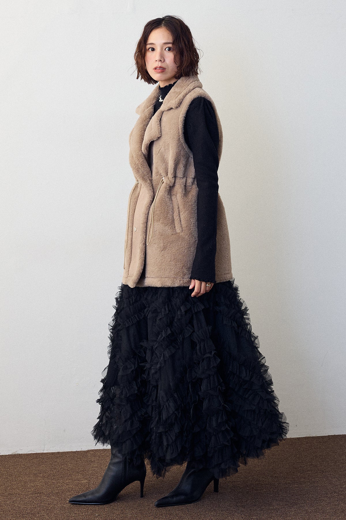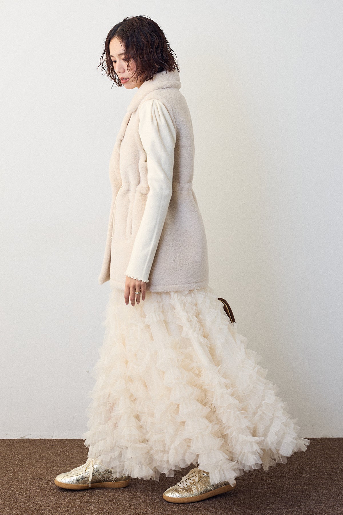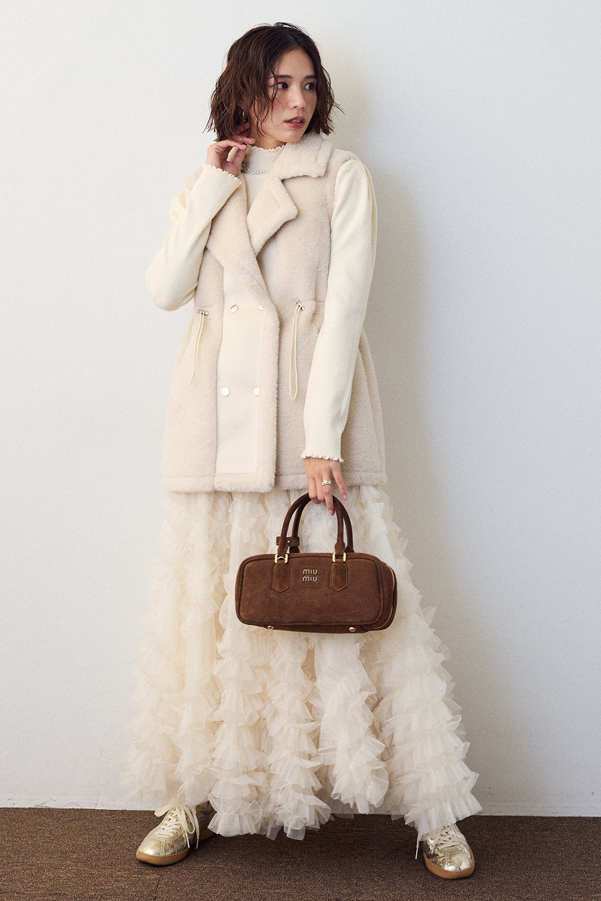 [予約/SET]テディボアウエストドロストベスト+スフレアシメチュールスカート(2set)