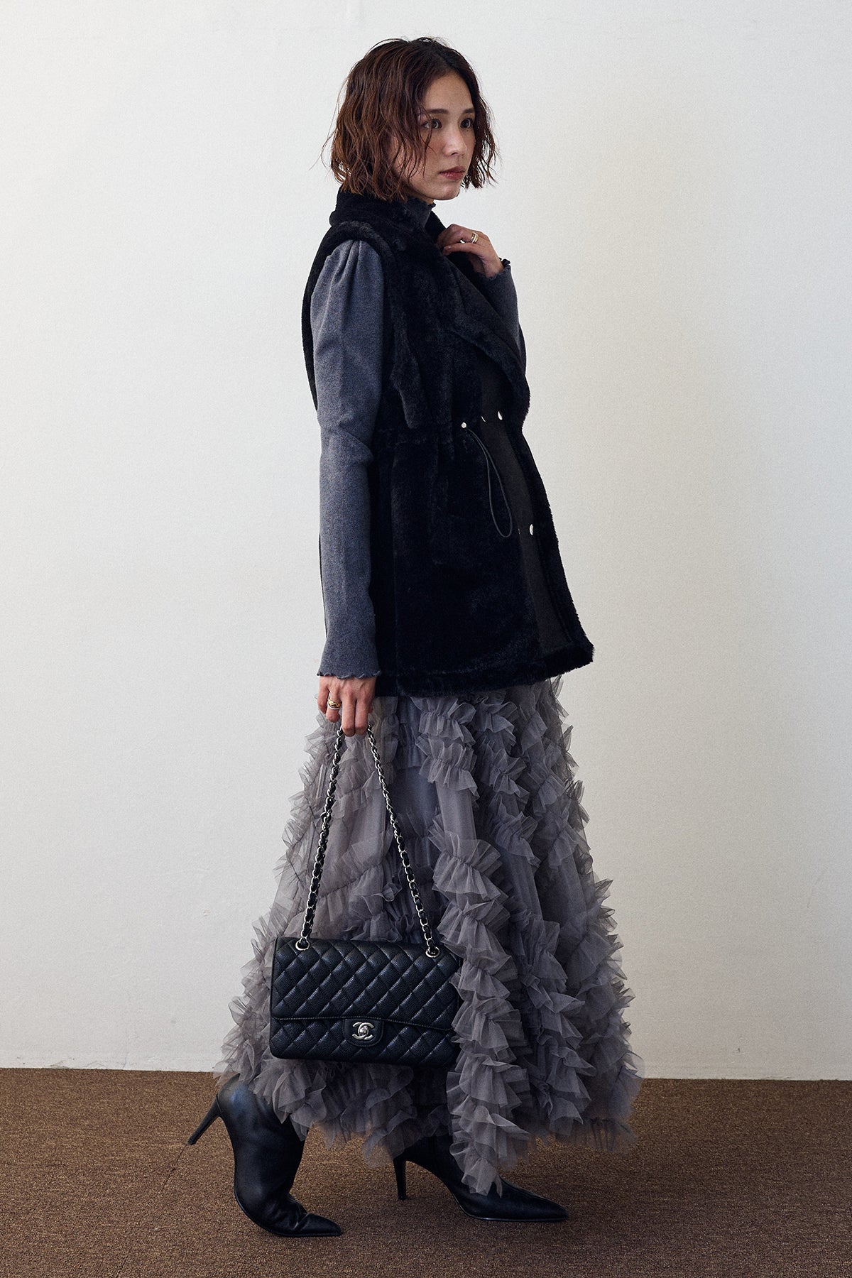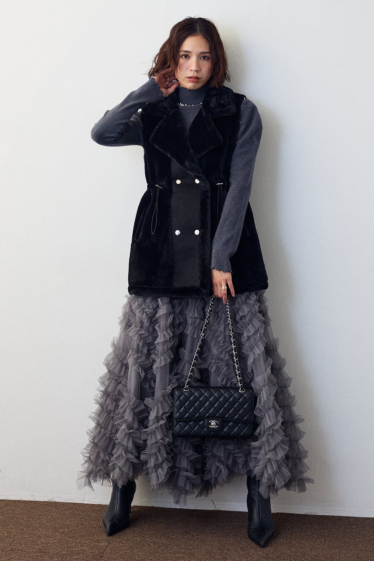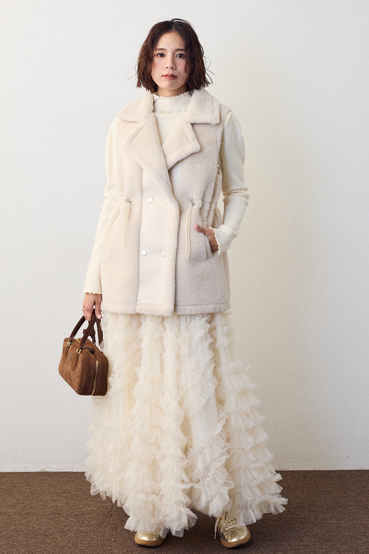 [予約/SET]テディボアウエストドロストベスト+スフレアシメチュールスカート(2set)
