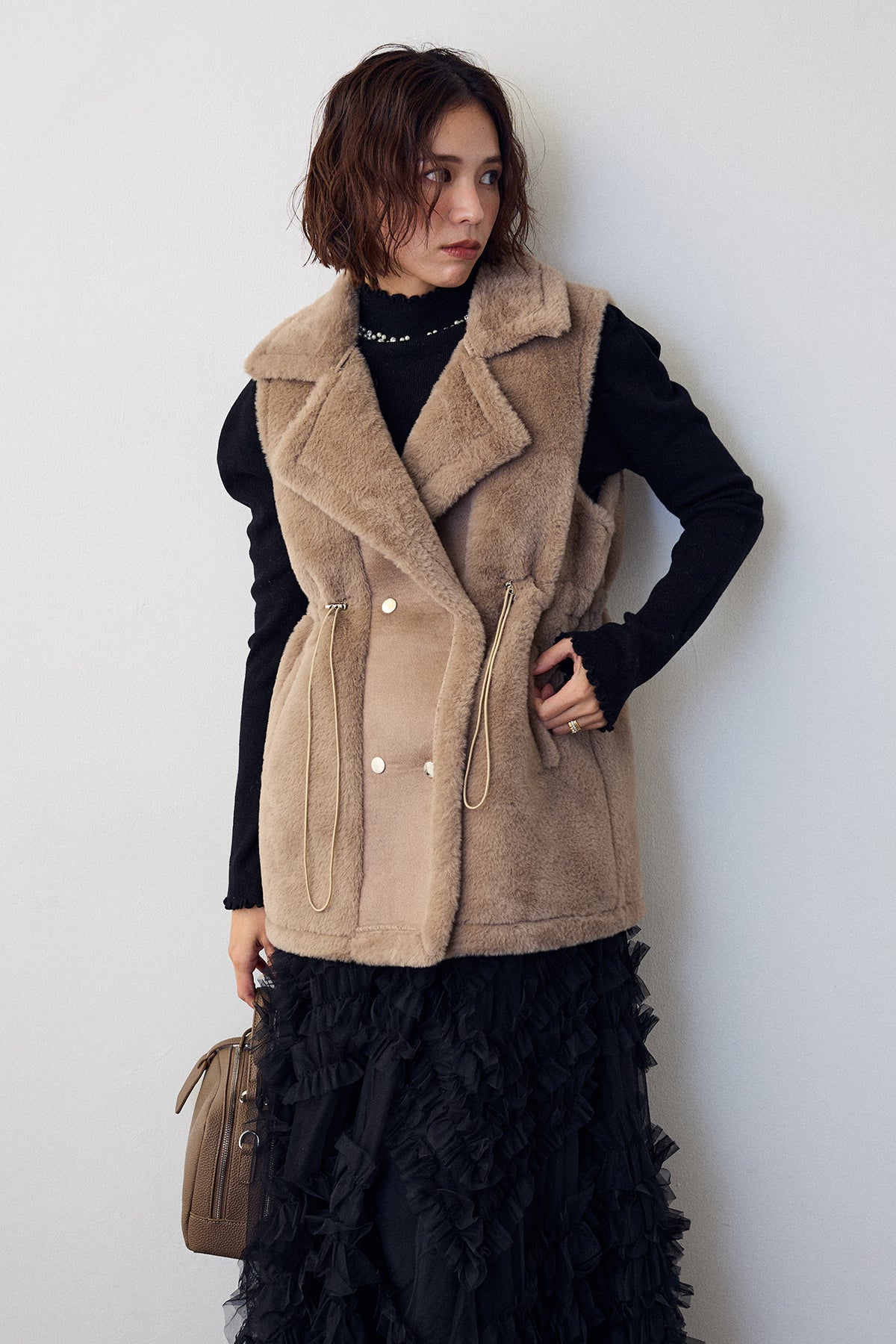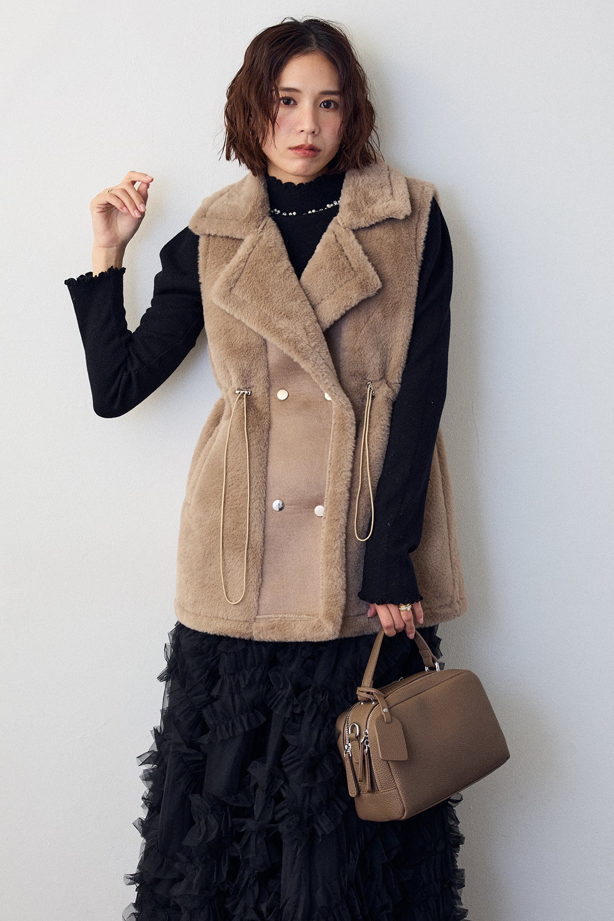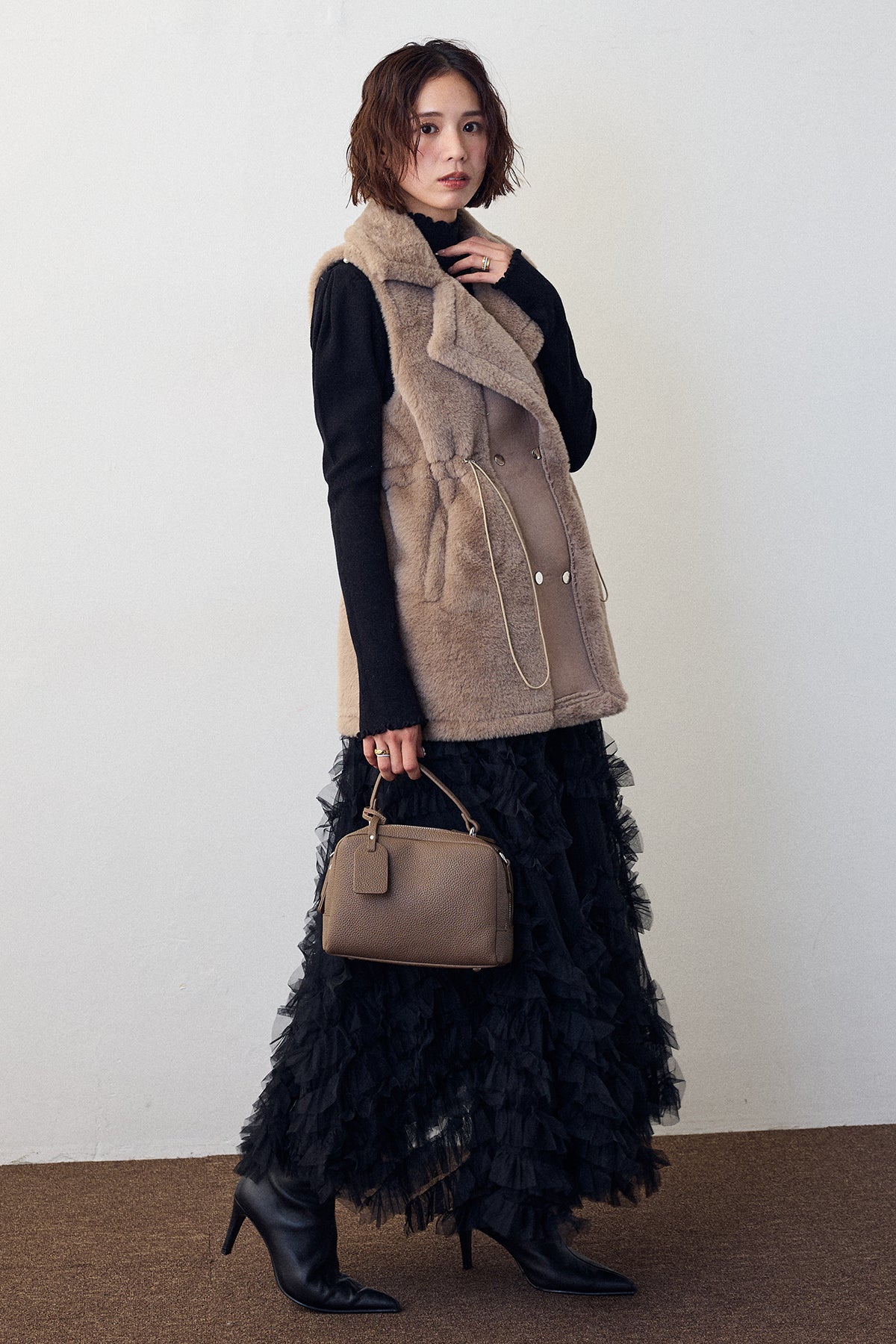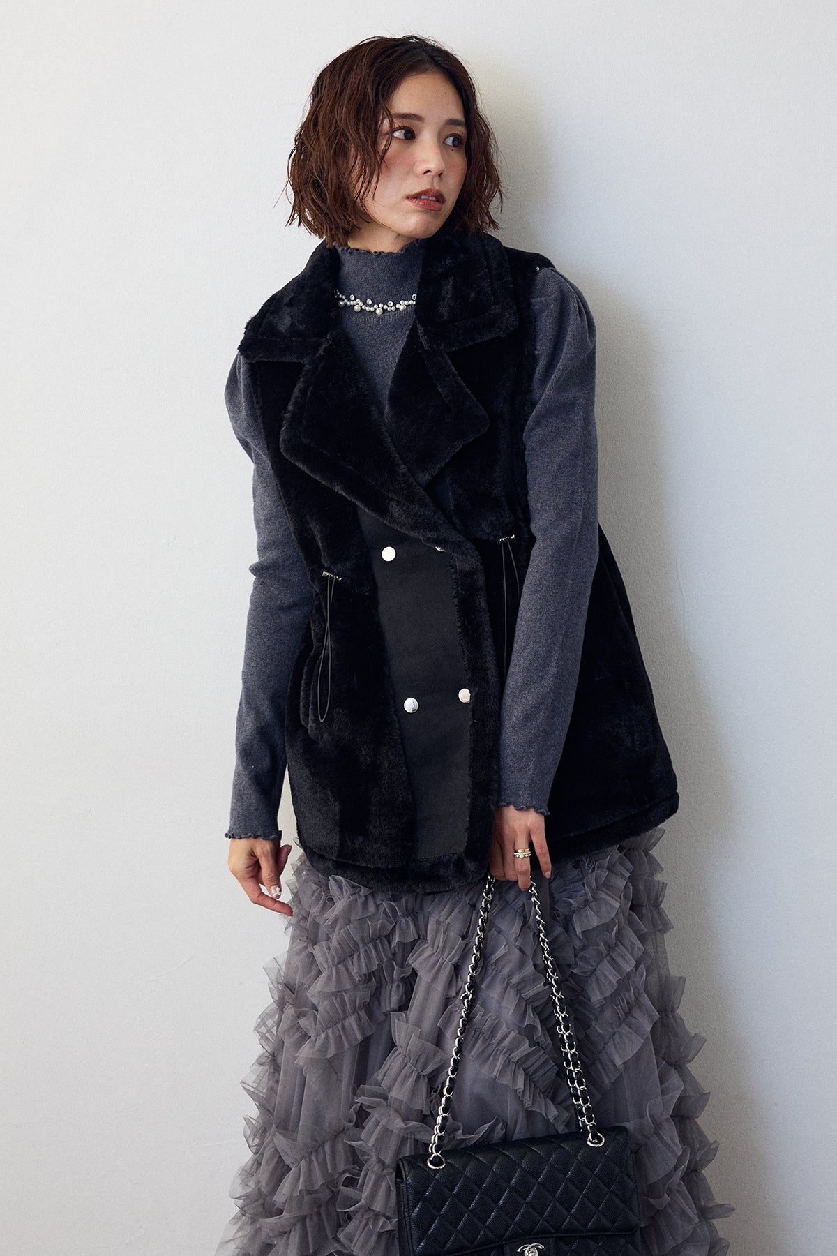 [予約/SET]テディボアウエストドロストベスト+スフレアシメチュールスカート(2set)