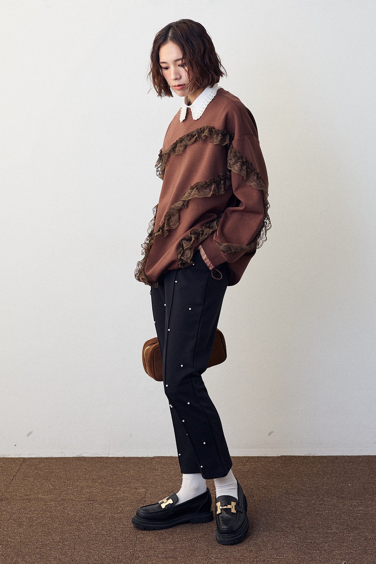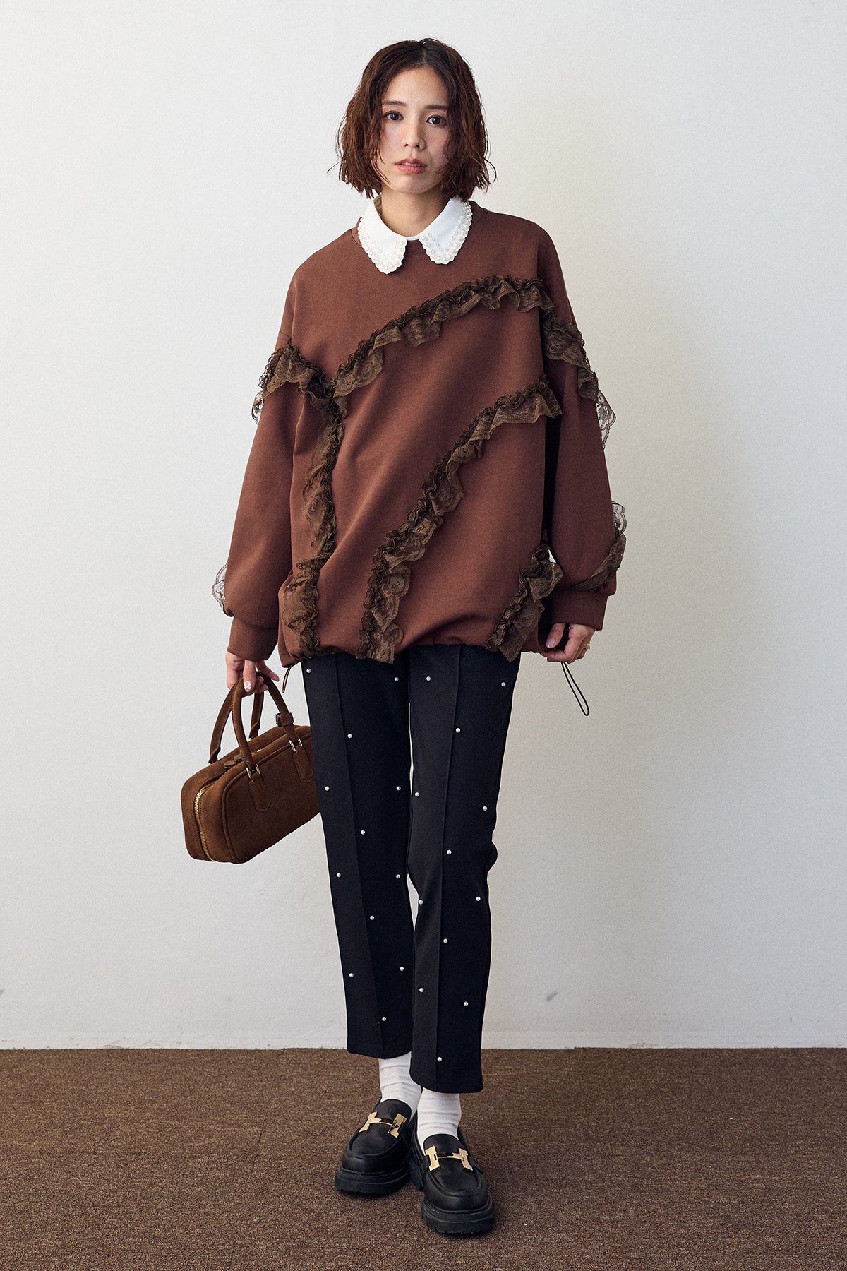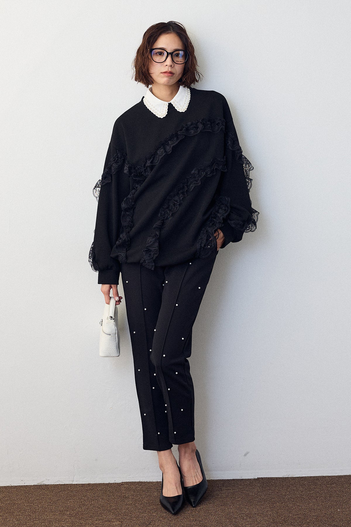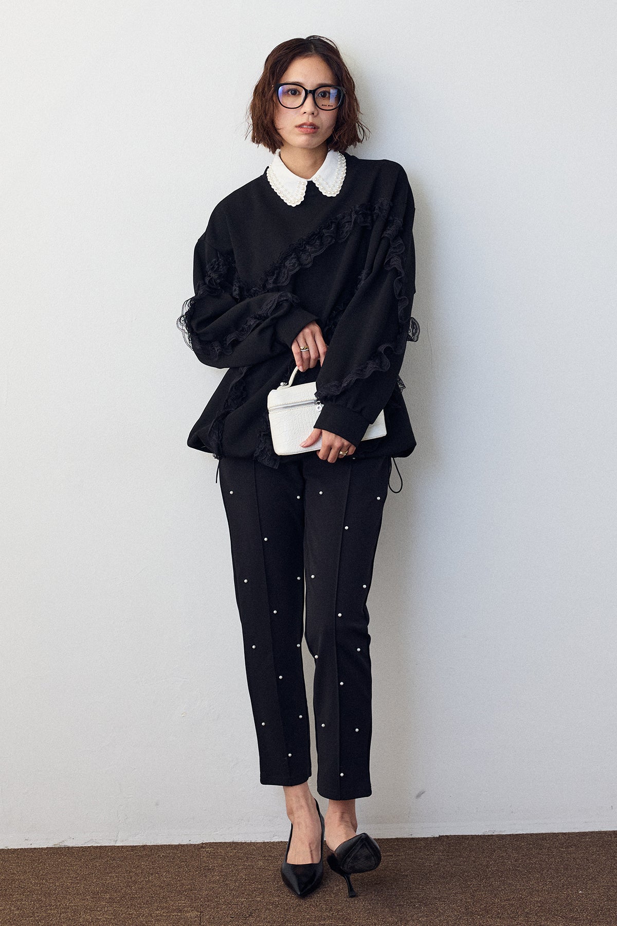 [予約/SET]レースフリルランダムラインスウェット+センターシームランダムパールパンツ(2set)