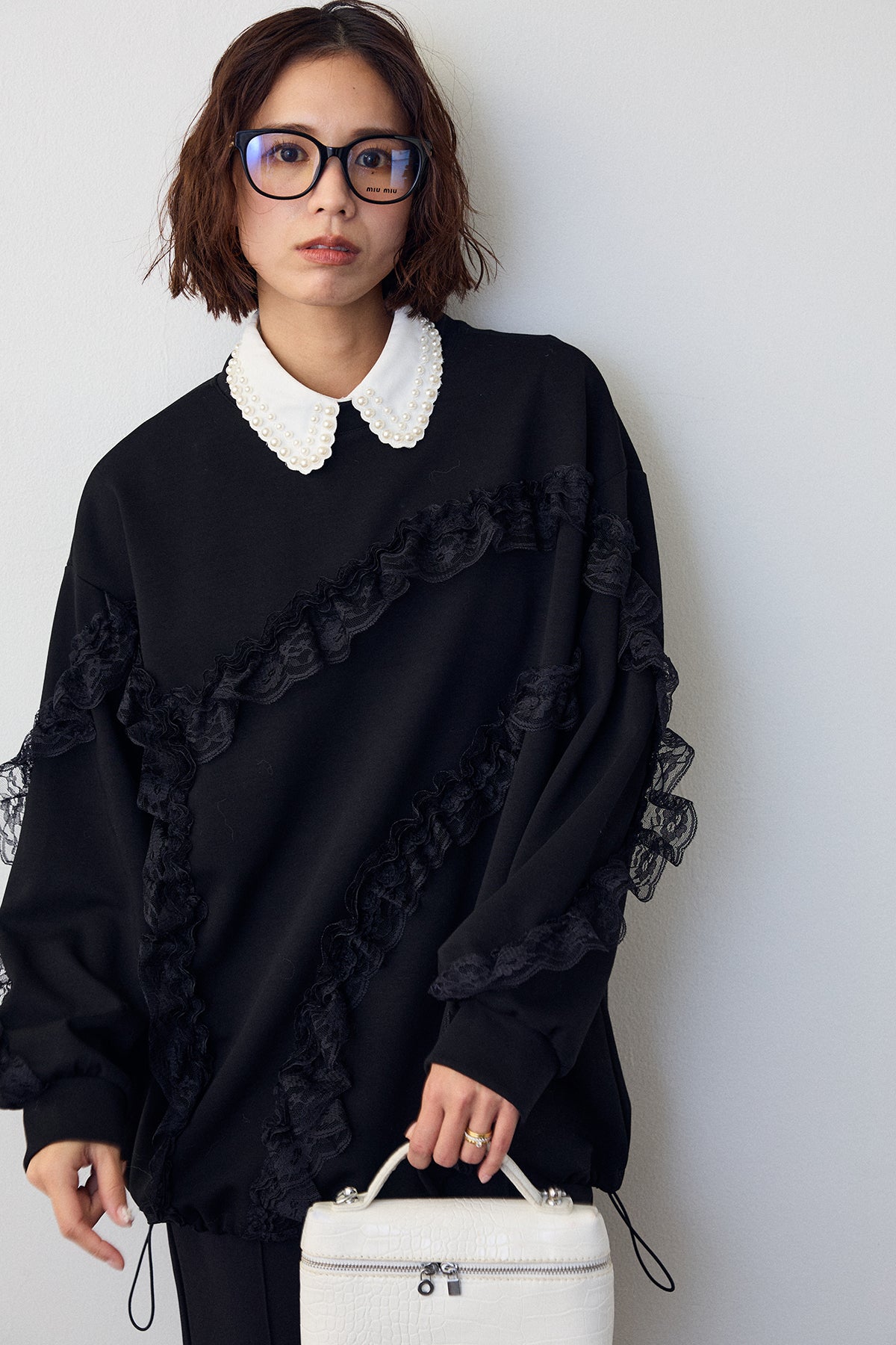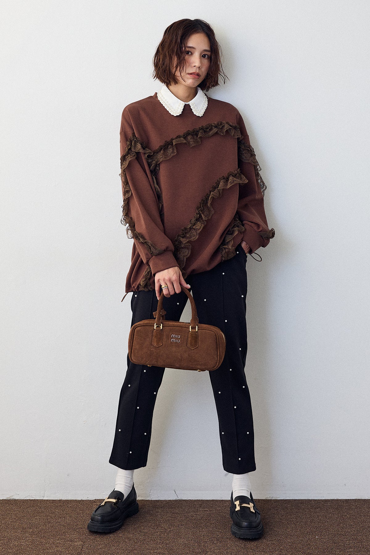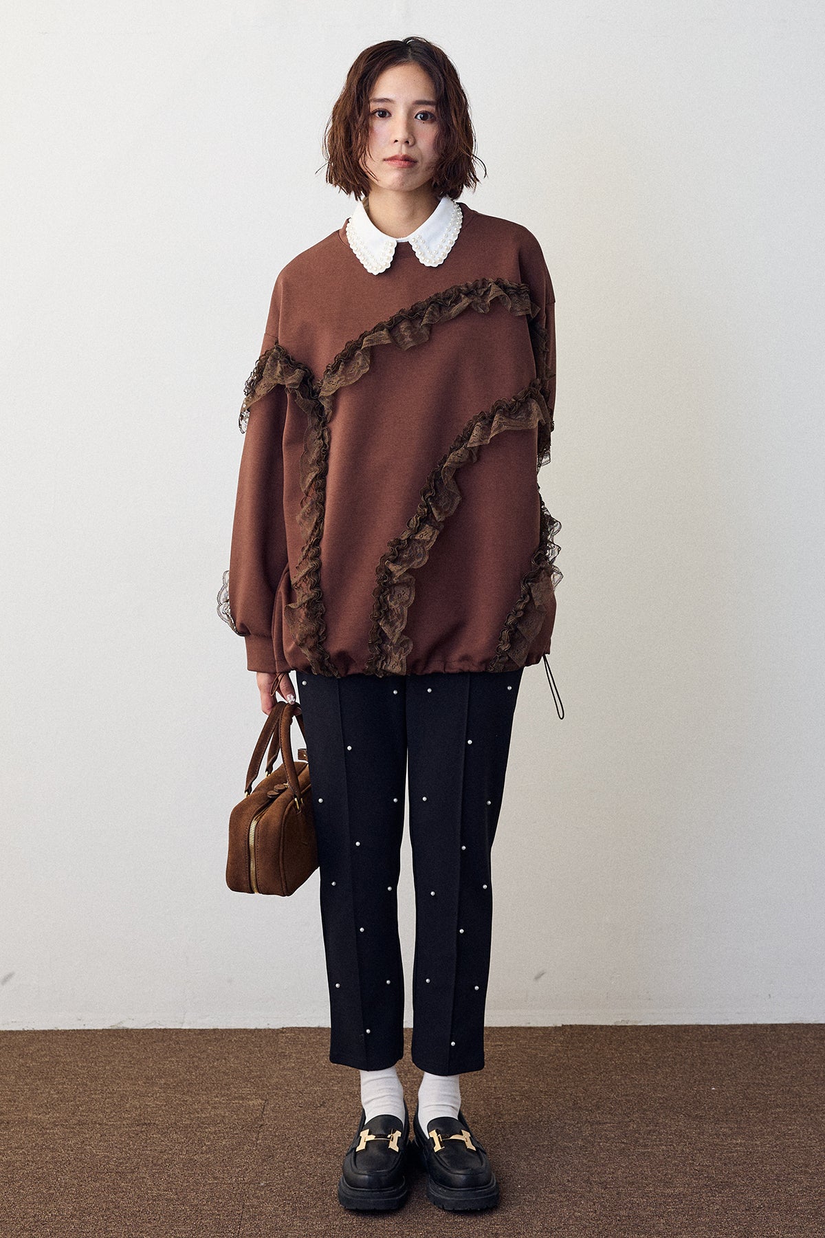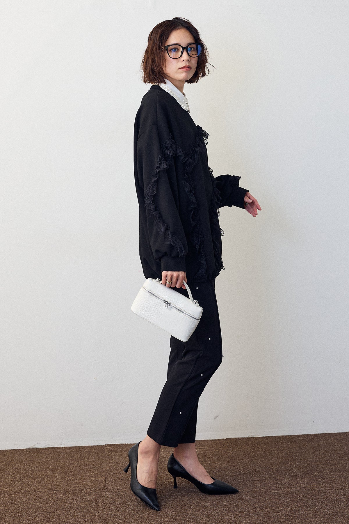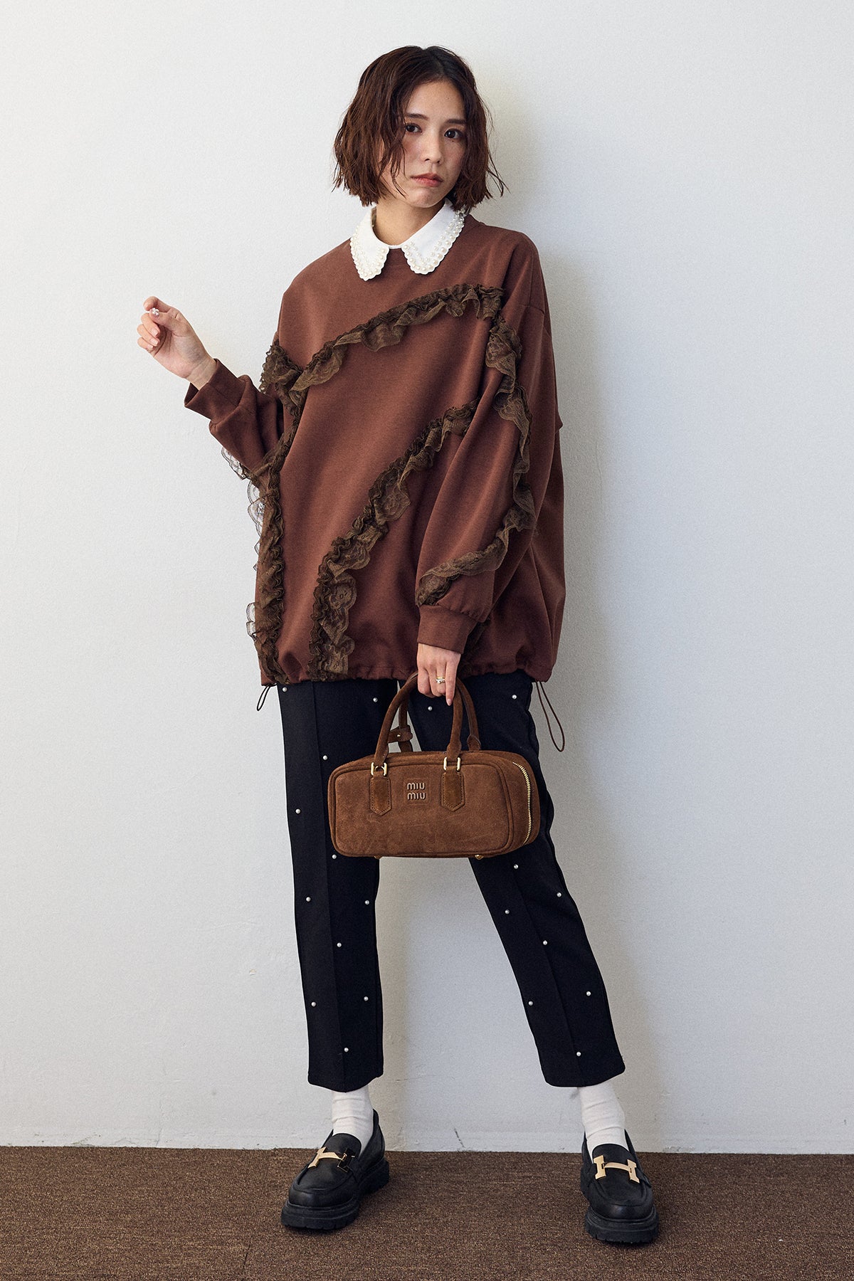 [予約/SET]レースフリルランダムラインスウェット+センターシームランダムパールパンツ(2set)