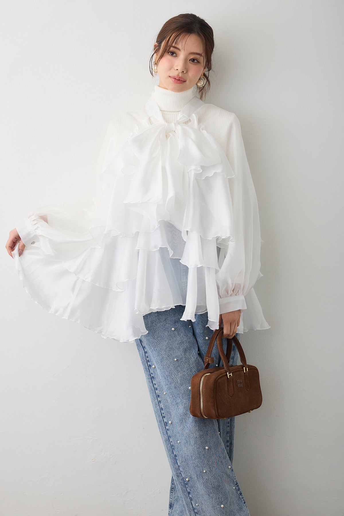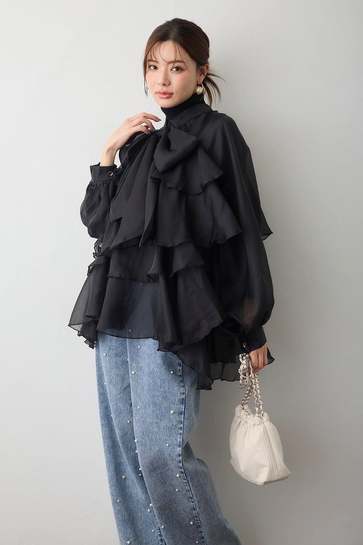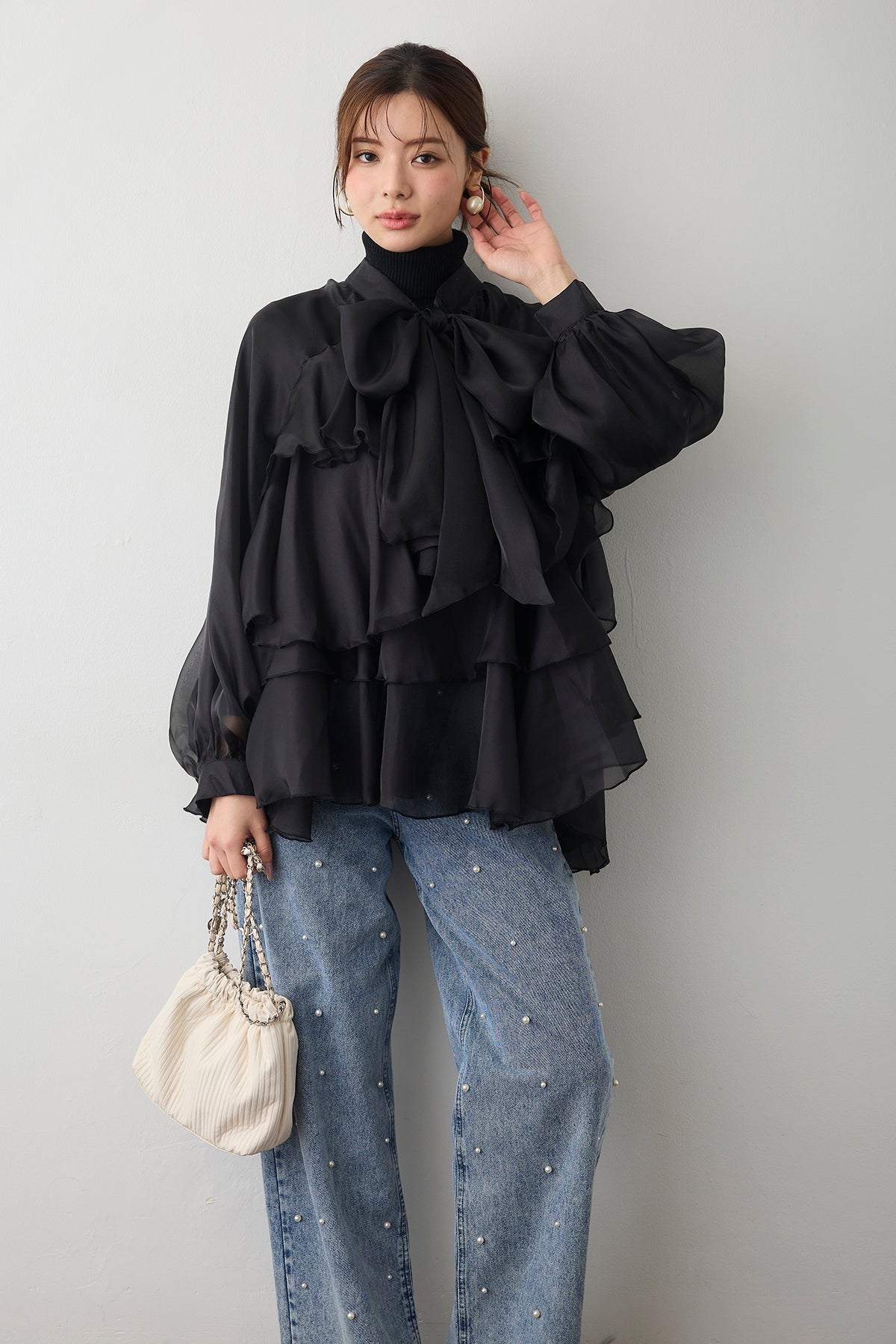 [予約]フロントBIGリボンティアードエアリーチュニック