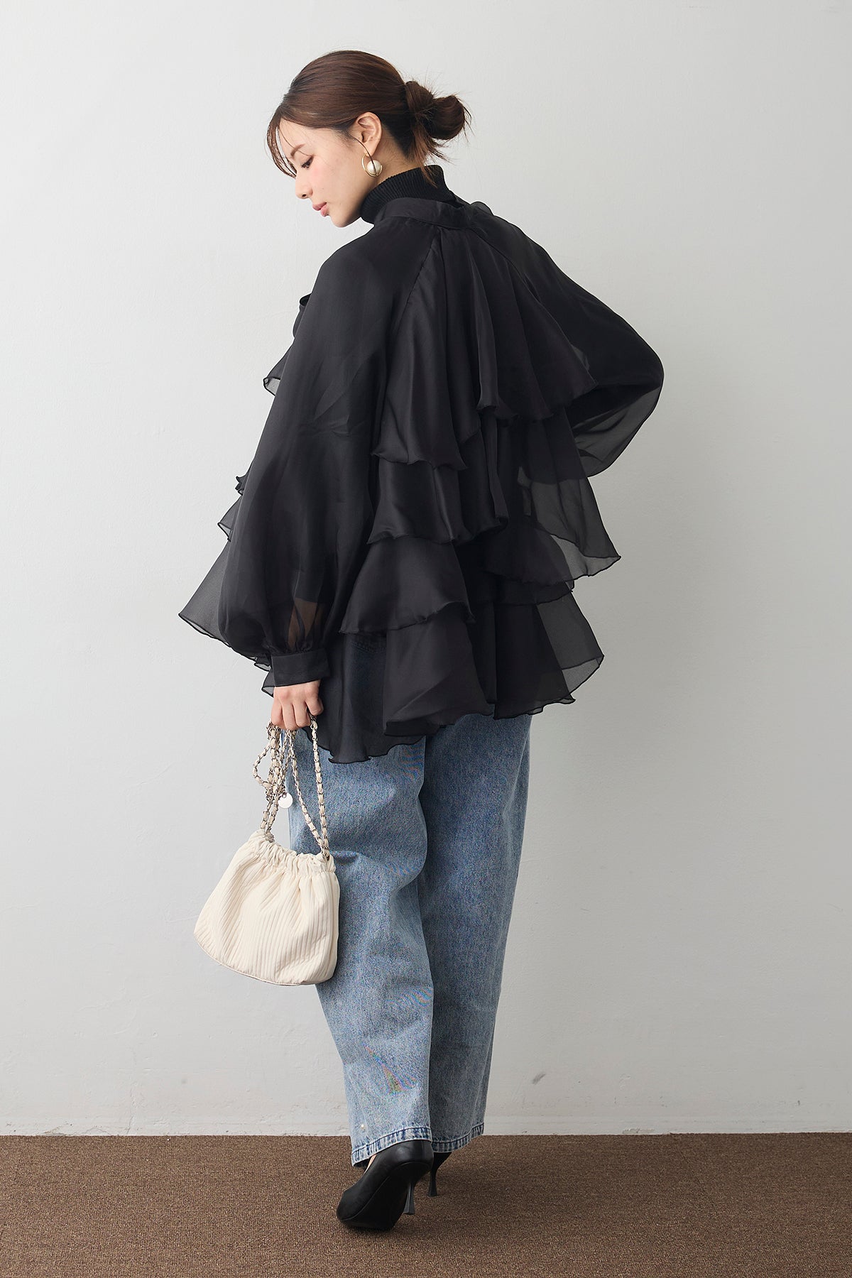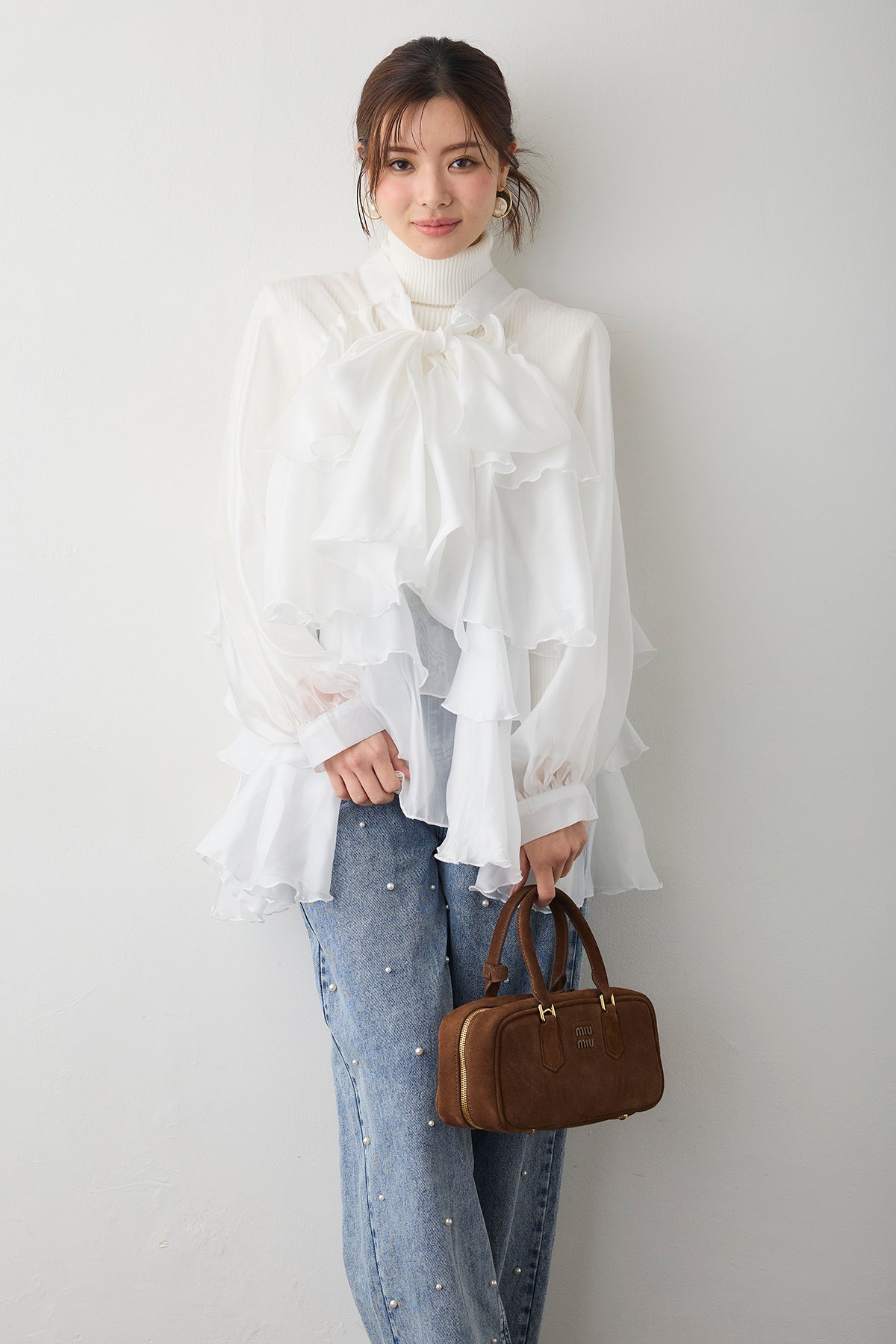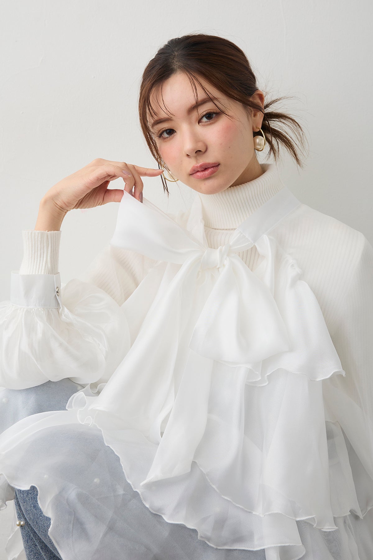 [予約]フロントBIGリボンティアードエアリーチュニック