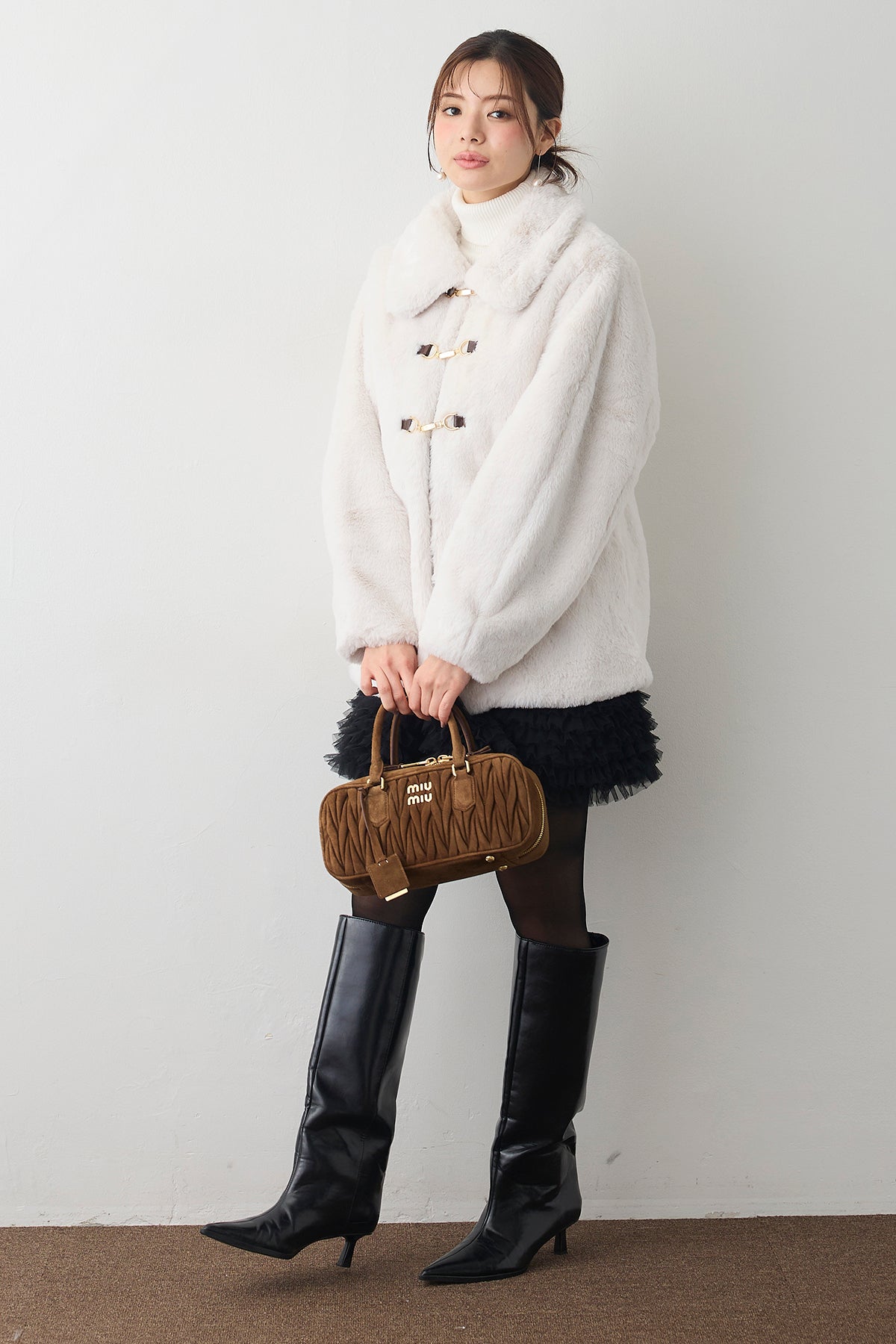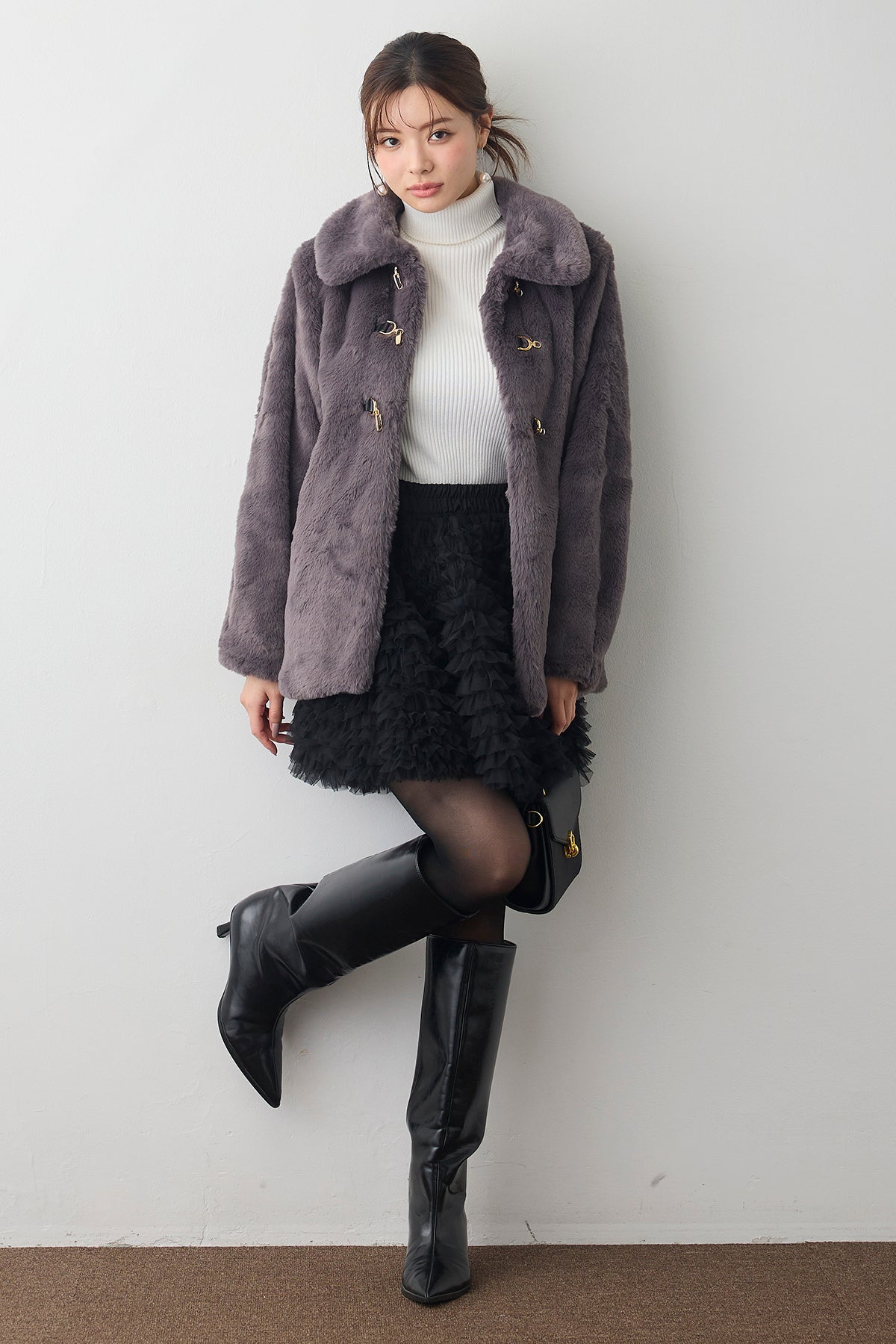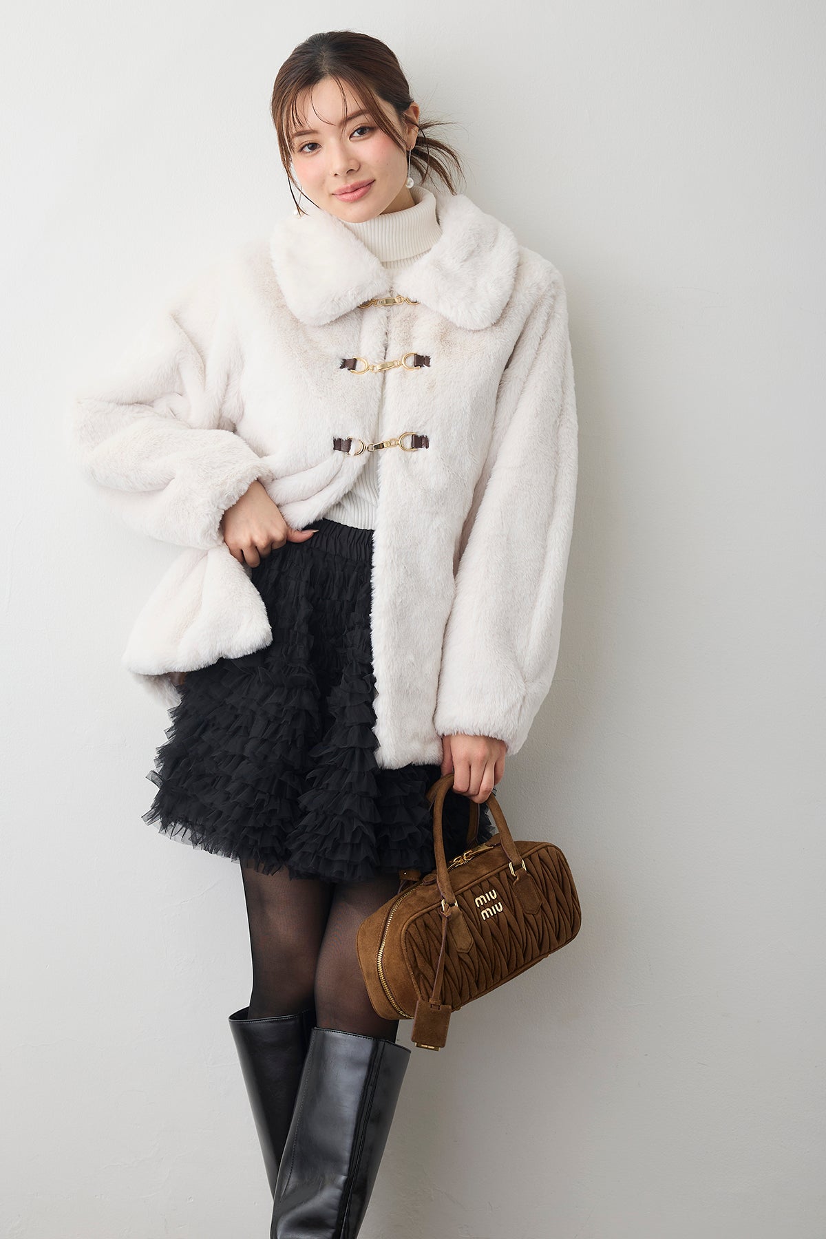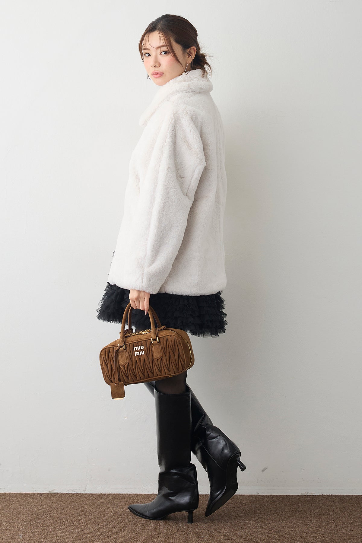[予約/SET]ビット付きフェイクファーコート+ホイップチュールミニ丈スカート(2set)