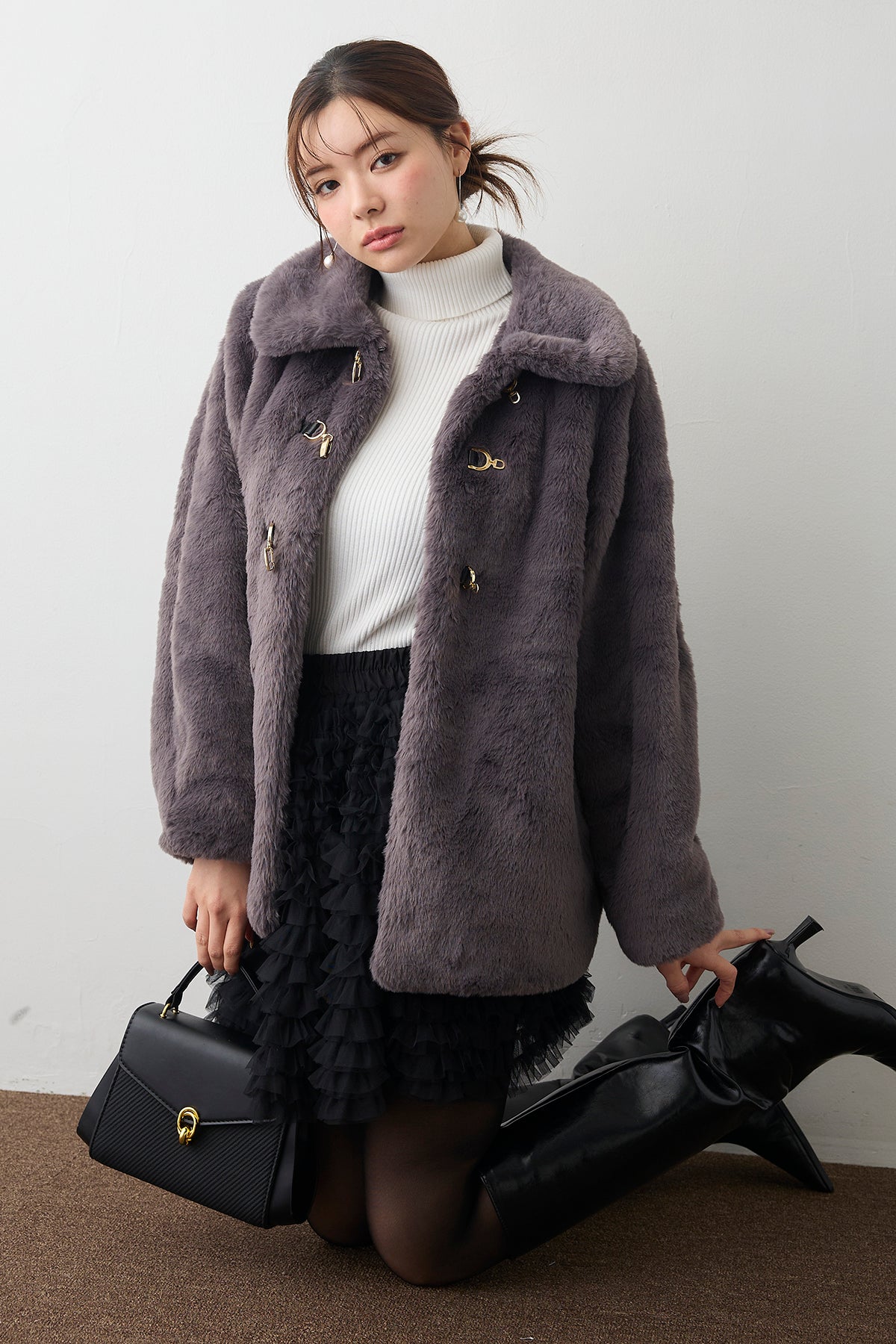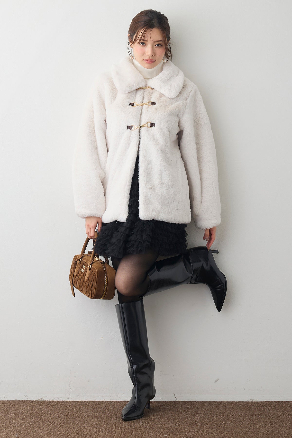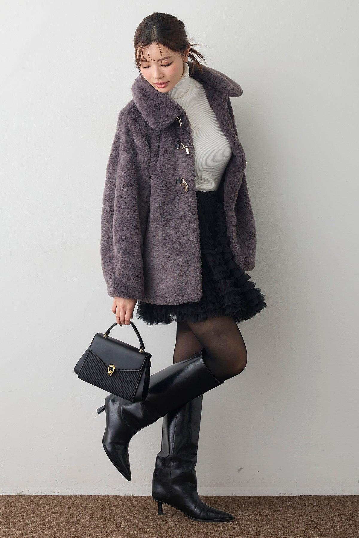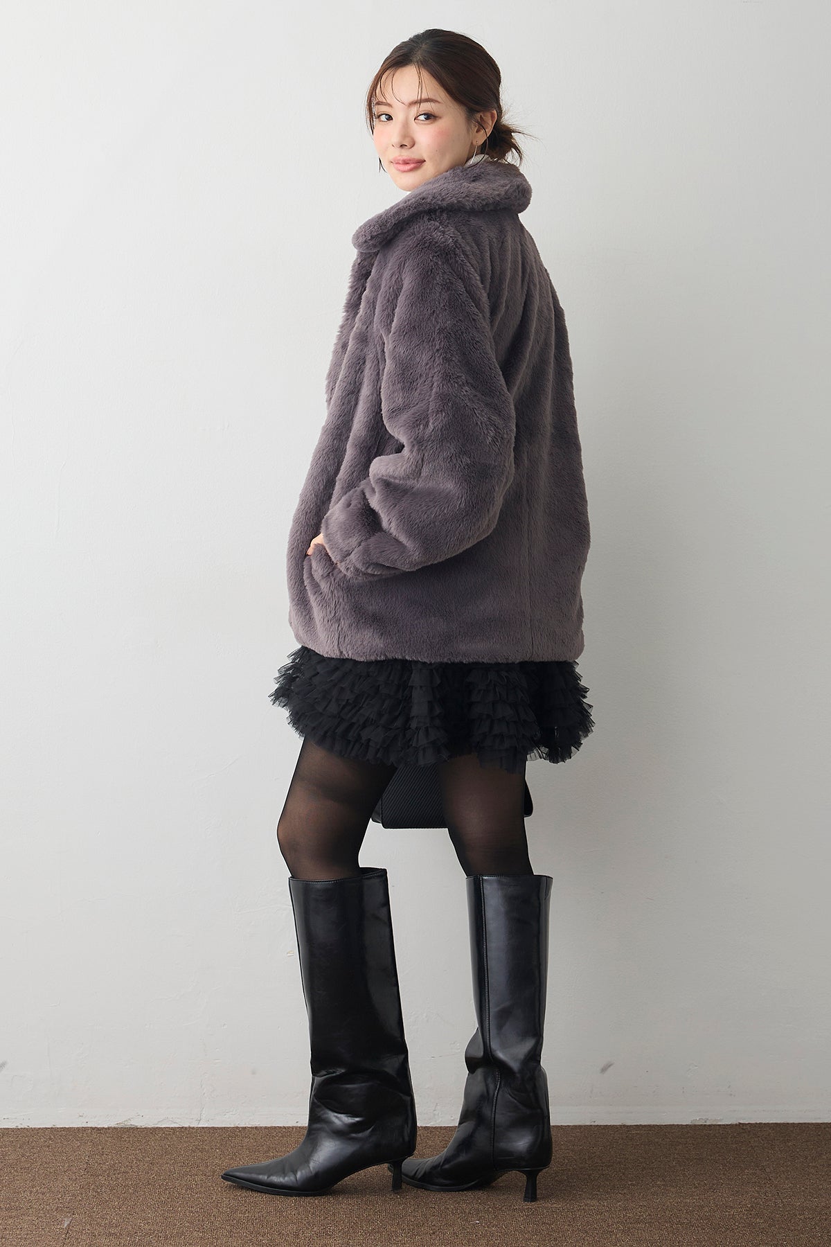 [予約/SET]ビット付きフェイクファーコート+ホイップチュールミニ丈スカート(2set)