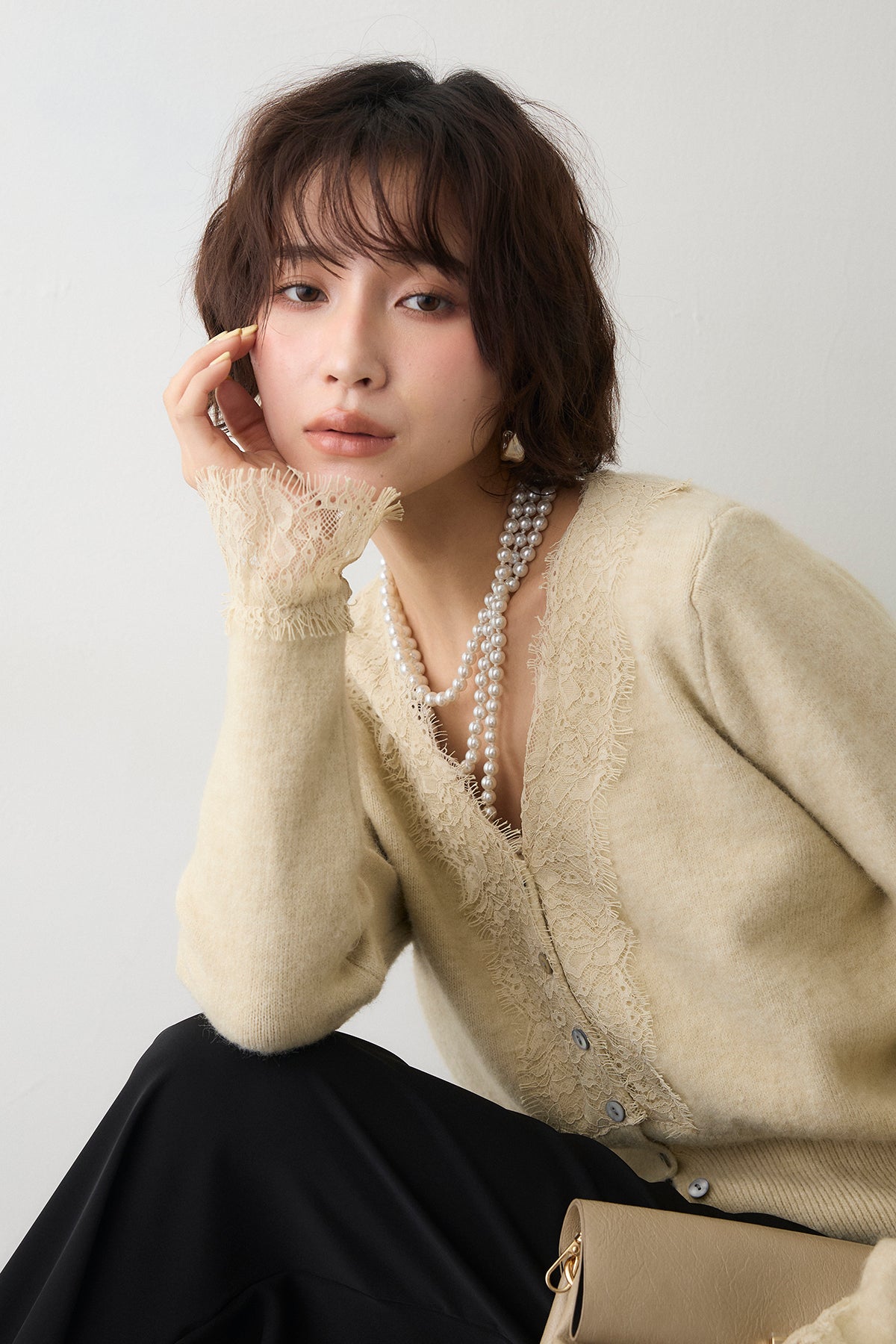 [予約]レースVラインボタンニット