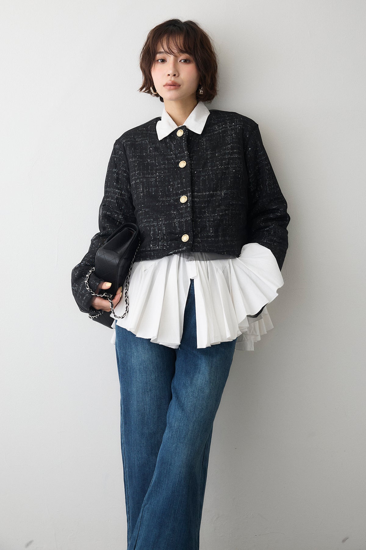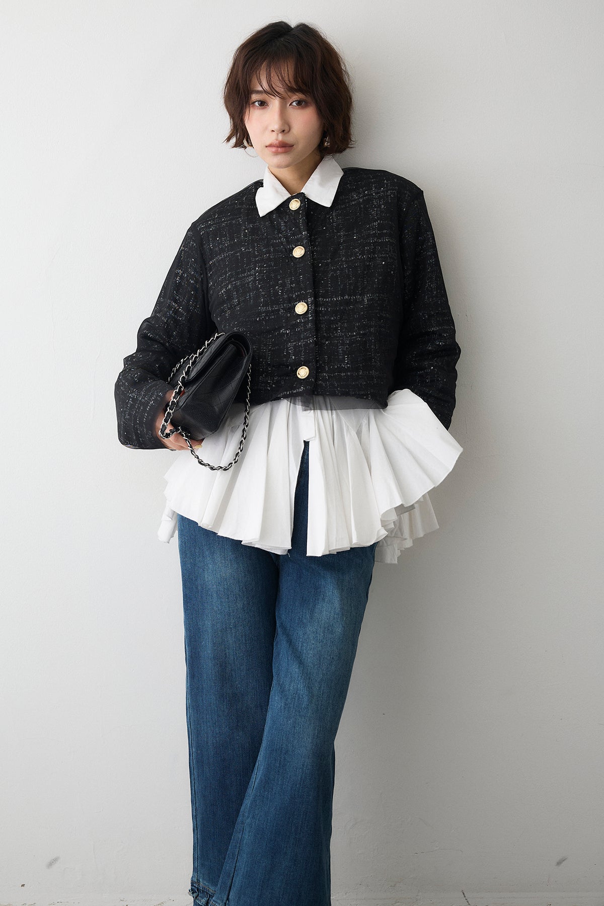 [予約]ツイード×チュールレイヤードクロップドジャケット