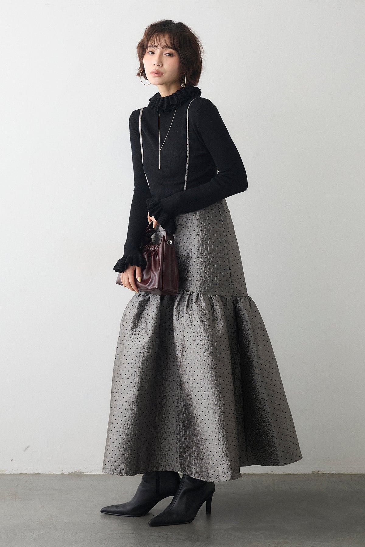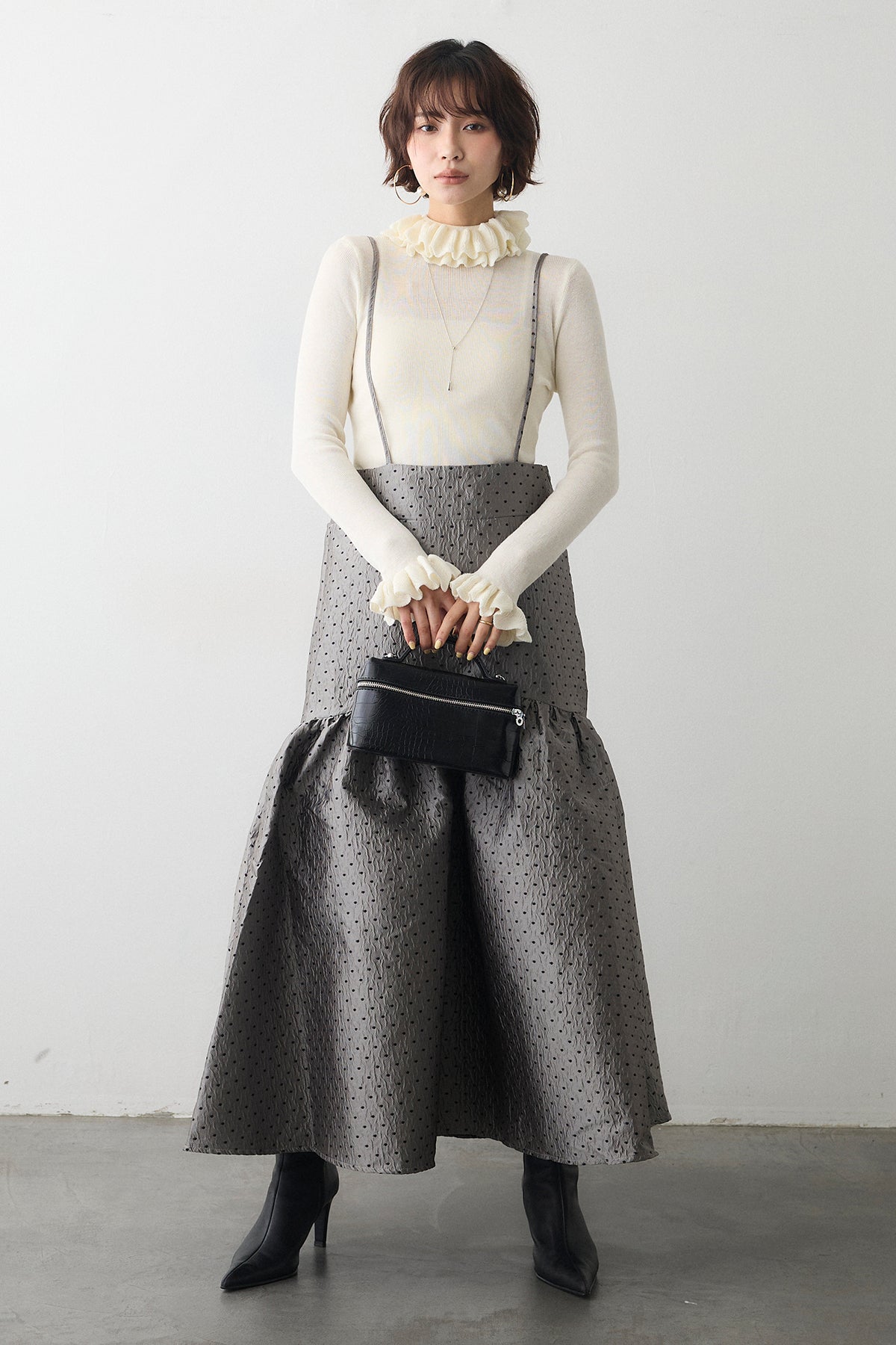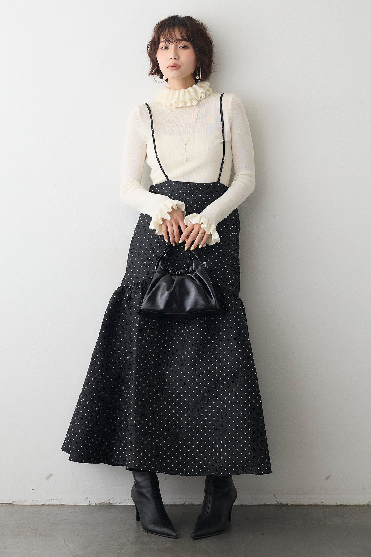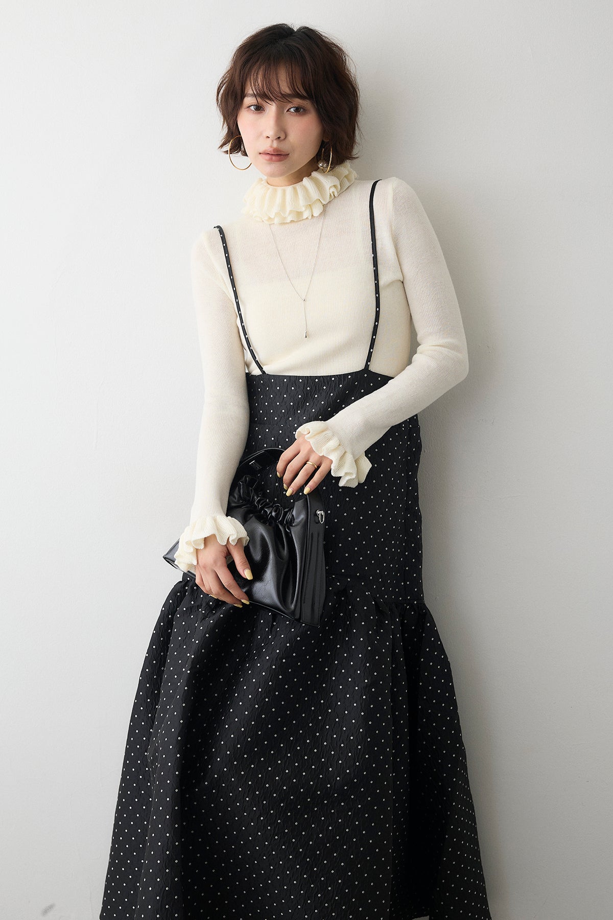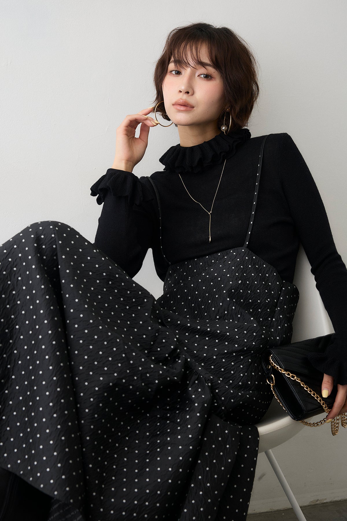 [予約/SET]ダブルフリルカラーニットプルオーバー+ドットジャガードギャザーフレアスカート(2set)