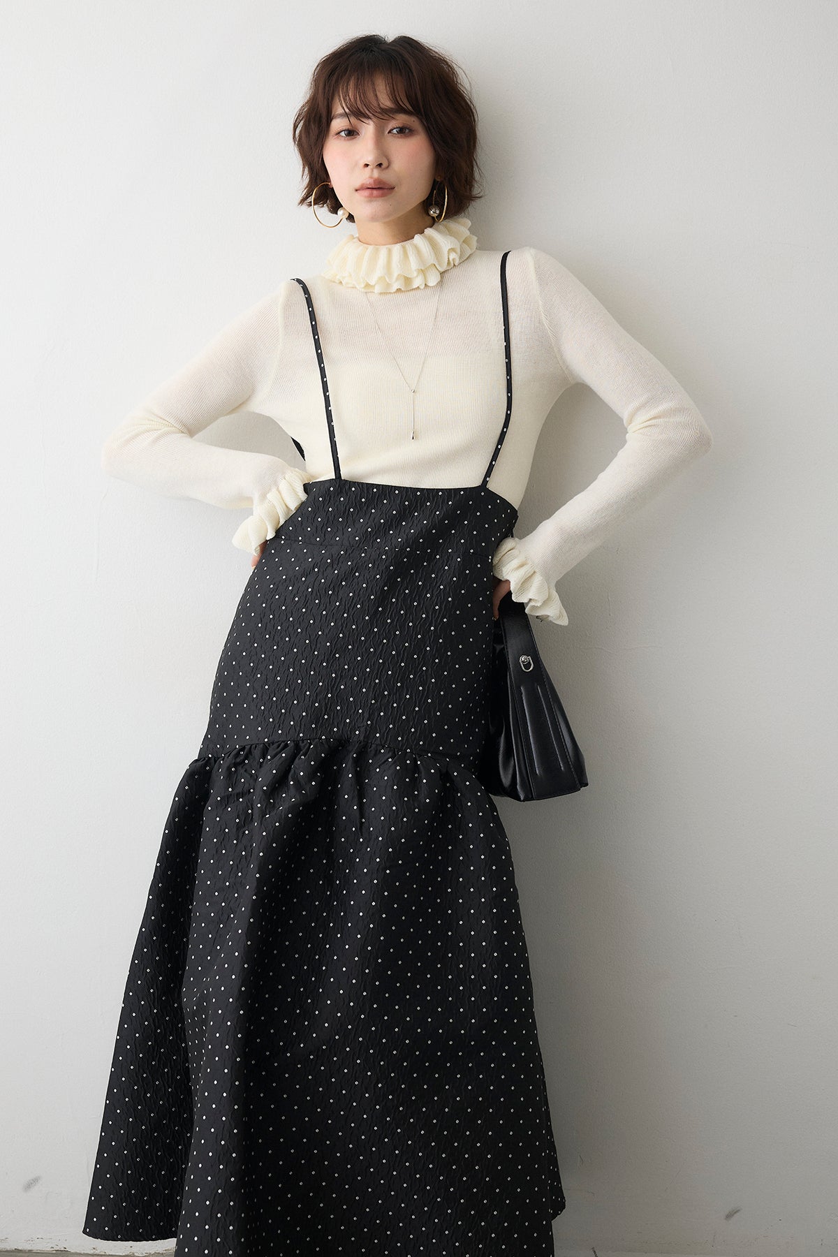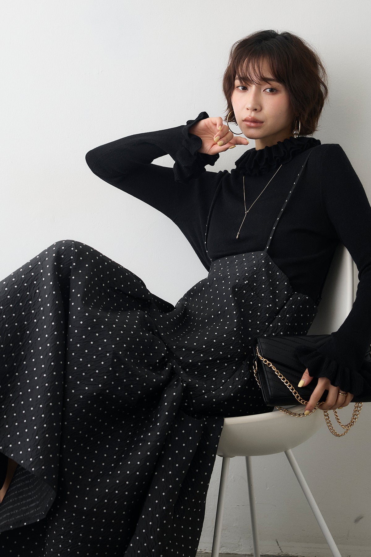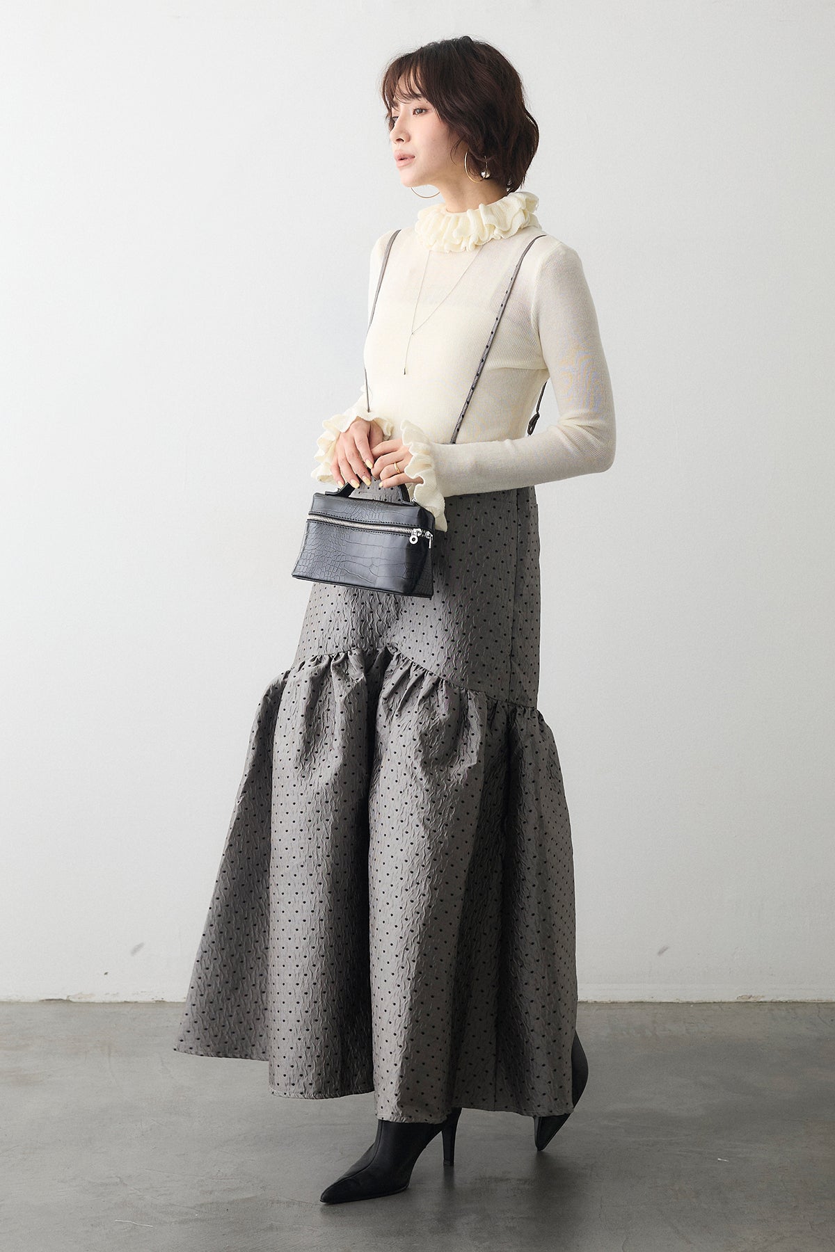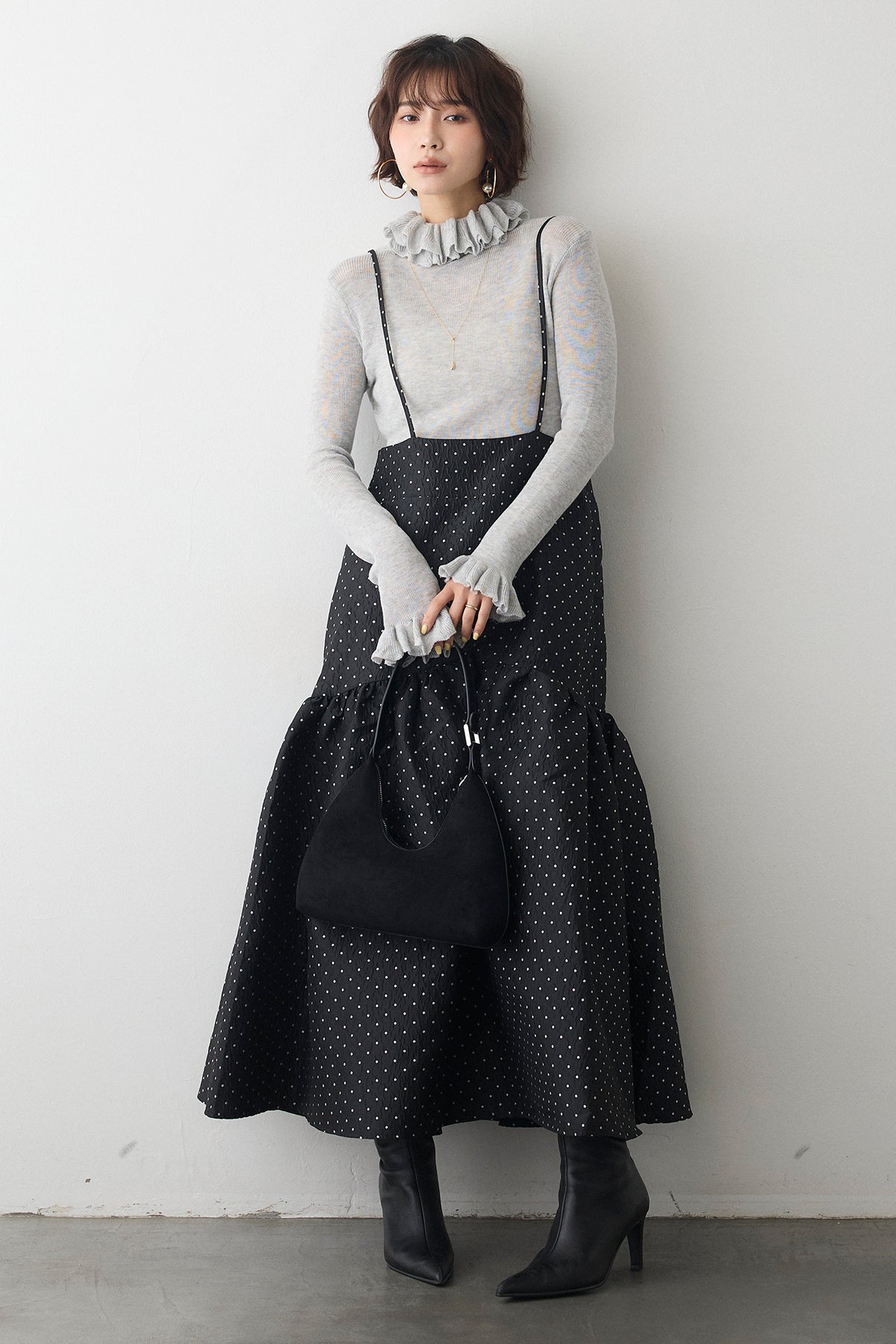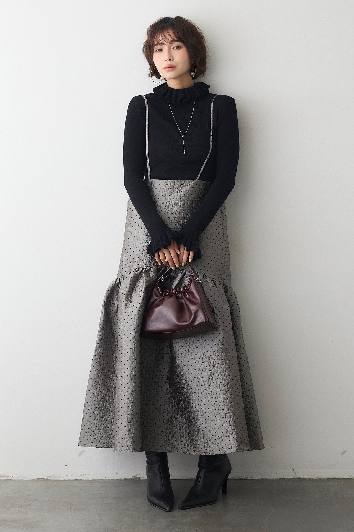 [予約/SET]ダブルフリルカラーニットプルオーバー+ドットジャガードギャザーフレアスカート(2set)