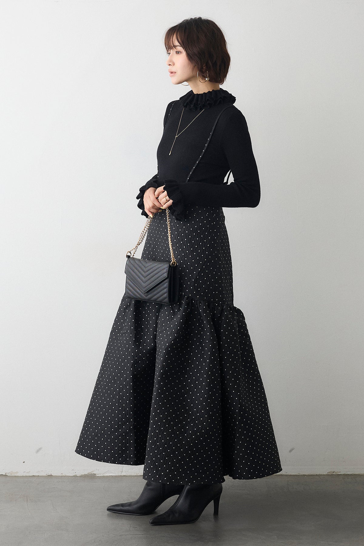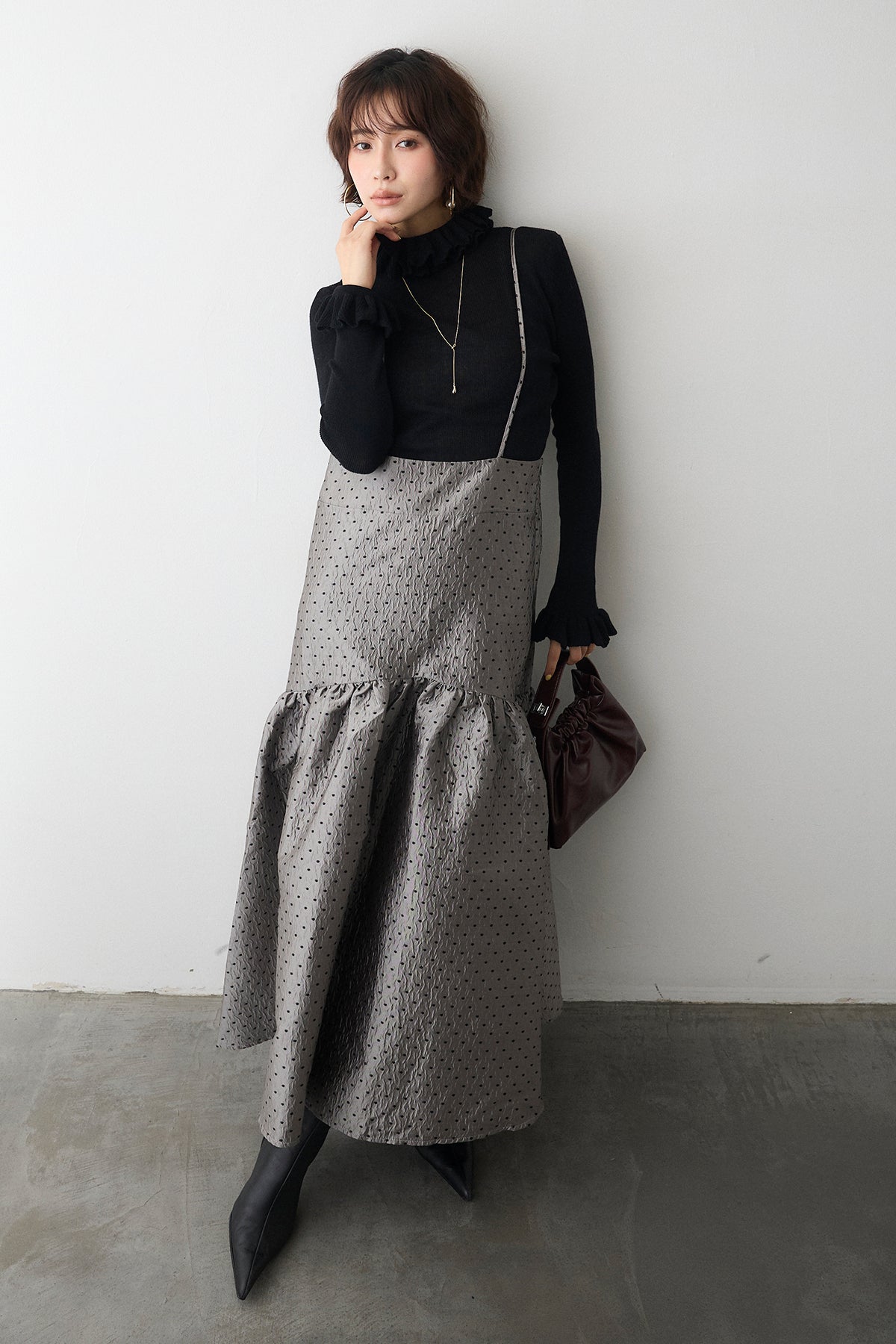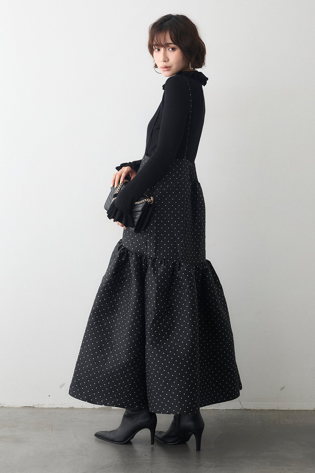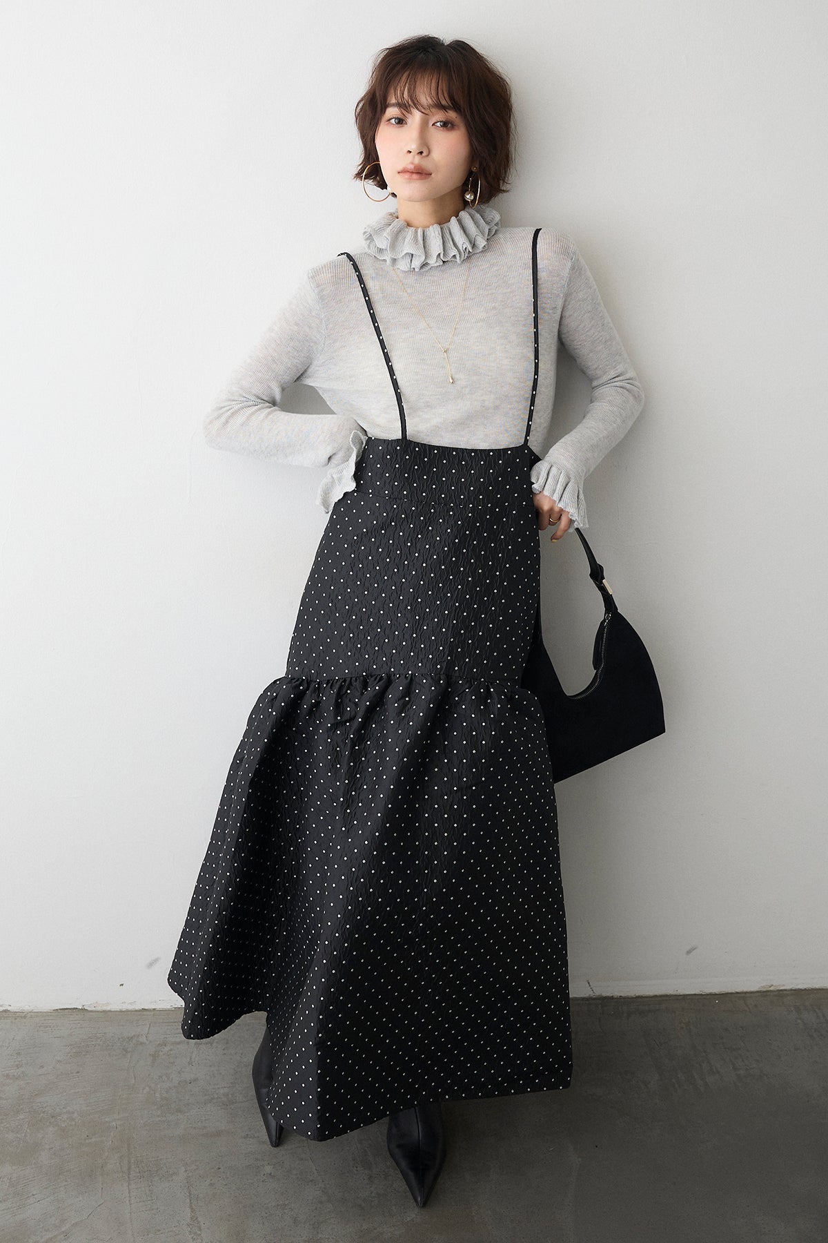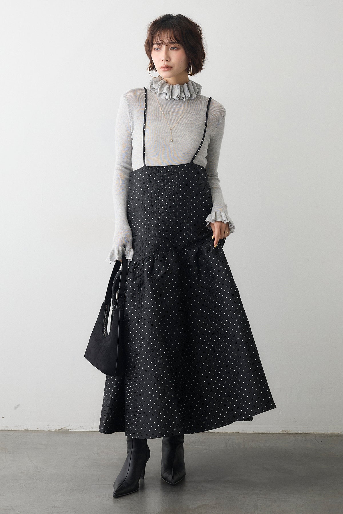 [予約/SET]ダブルフリルカラーニットプルオーバー+ドットジャガードギャザーフレアスカート(2set)