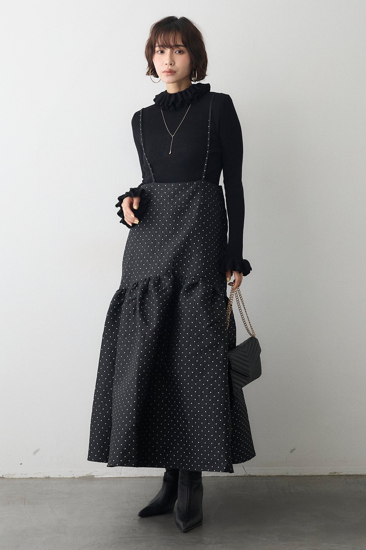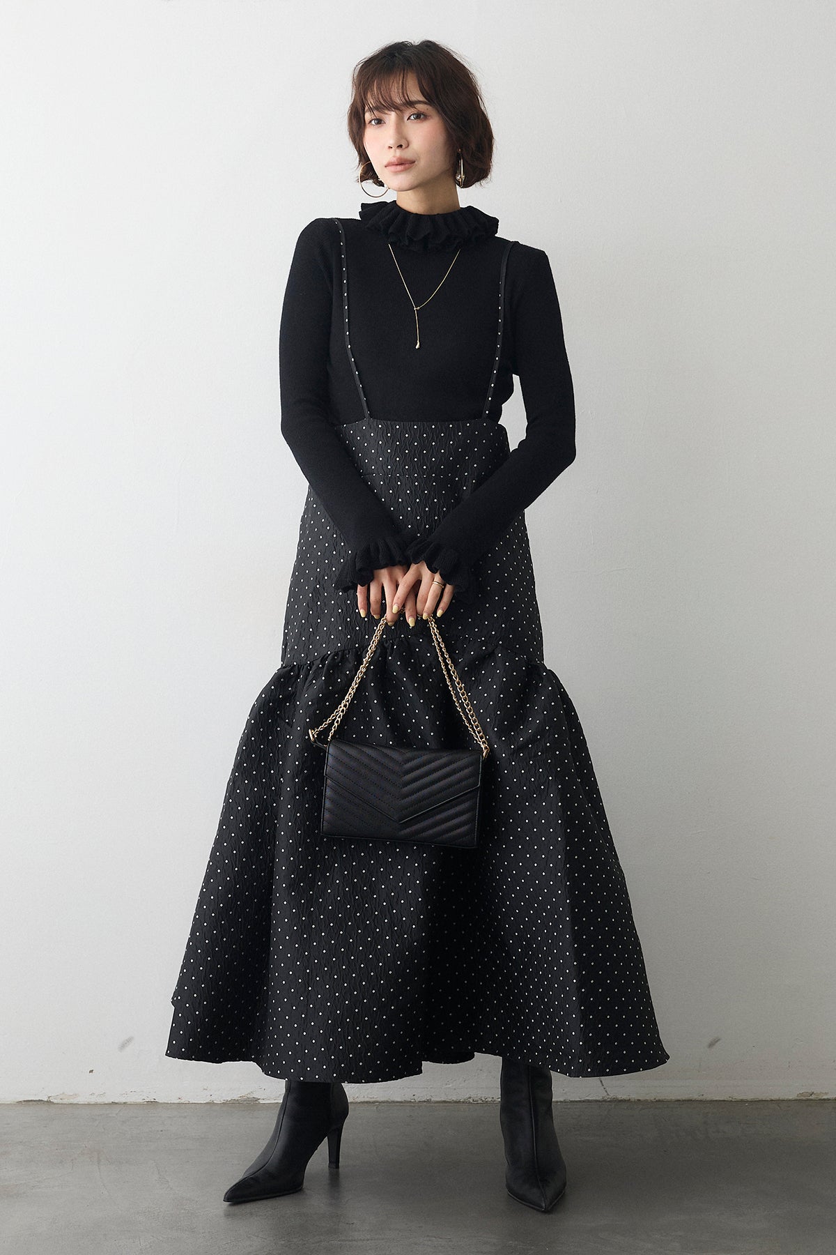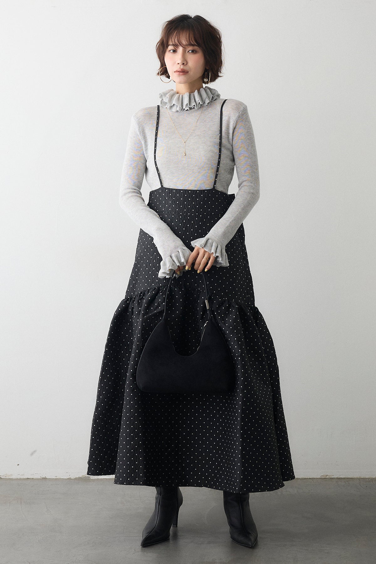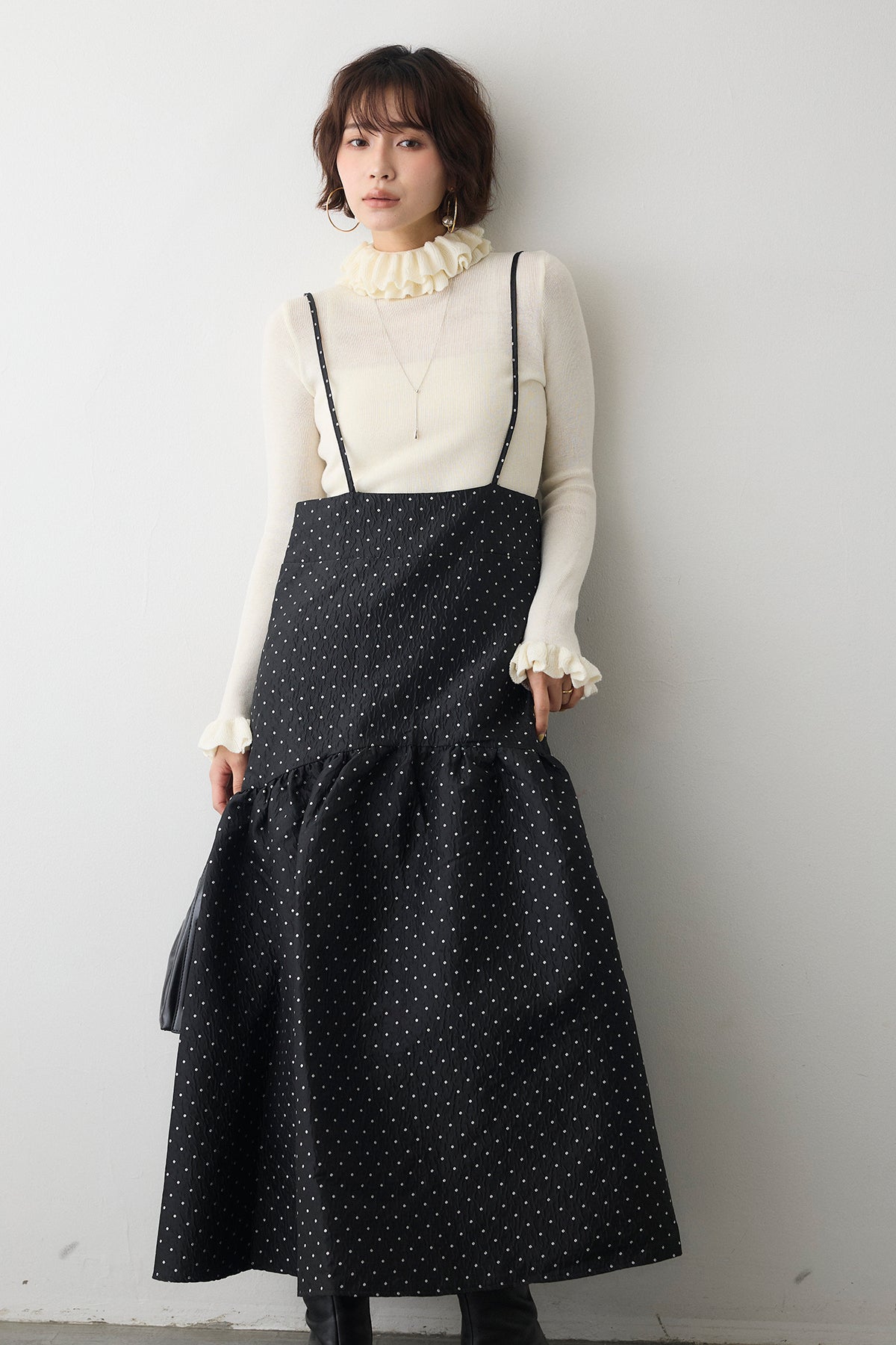 [予約/SET]ダブルフリルカラーニットプルオーバー+ドットジャガードギャザーフレアスカート(2set)