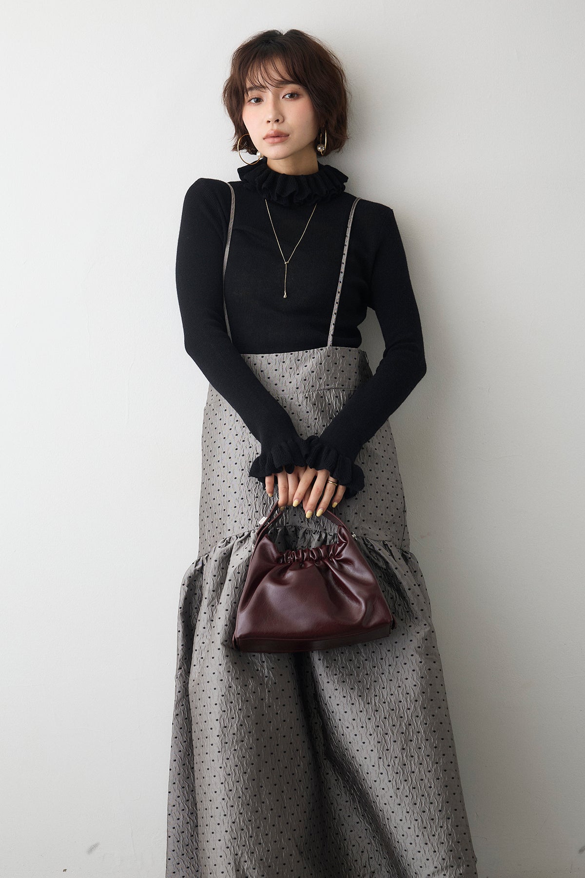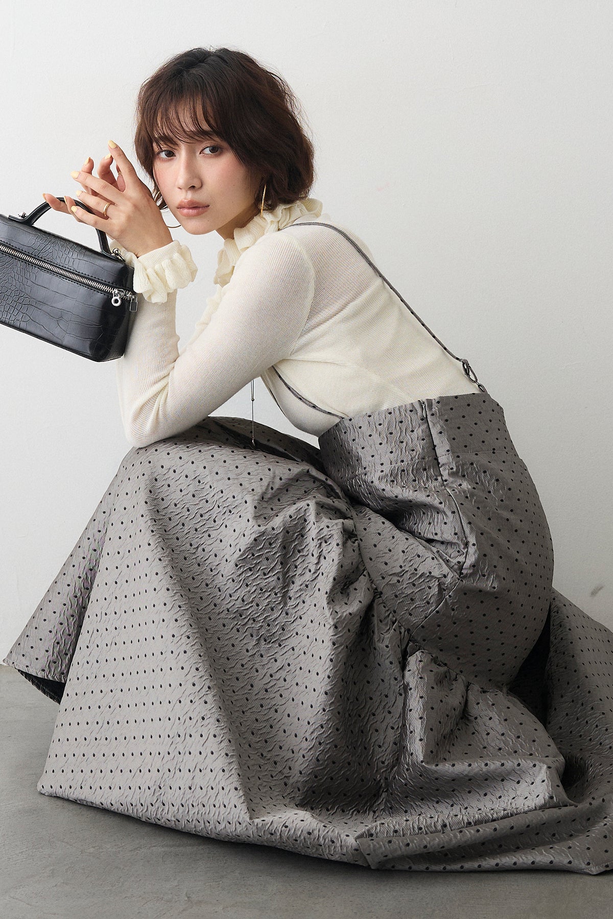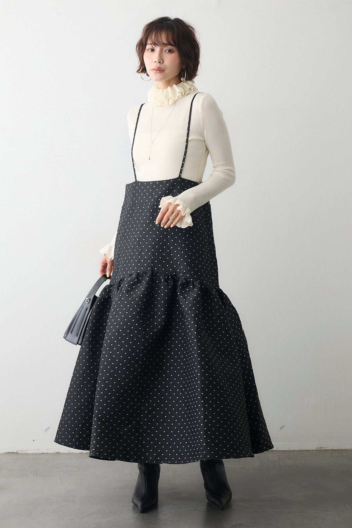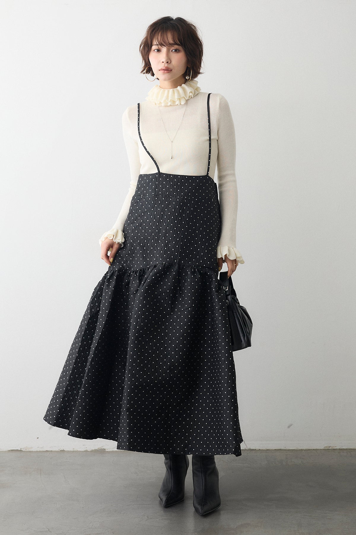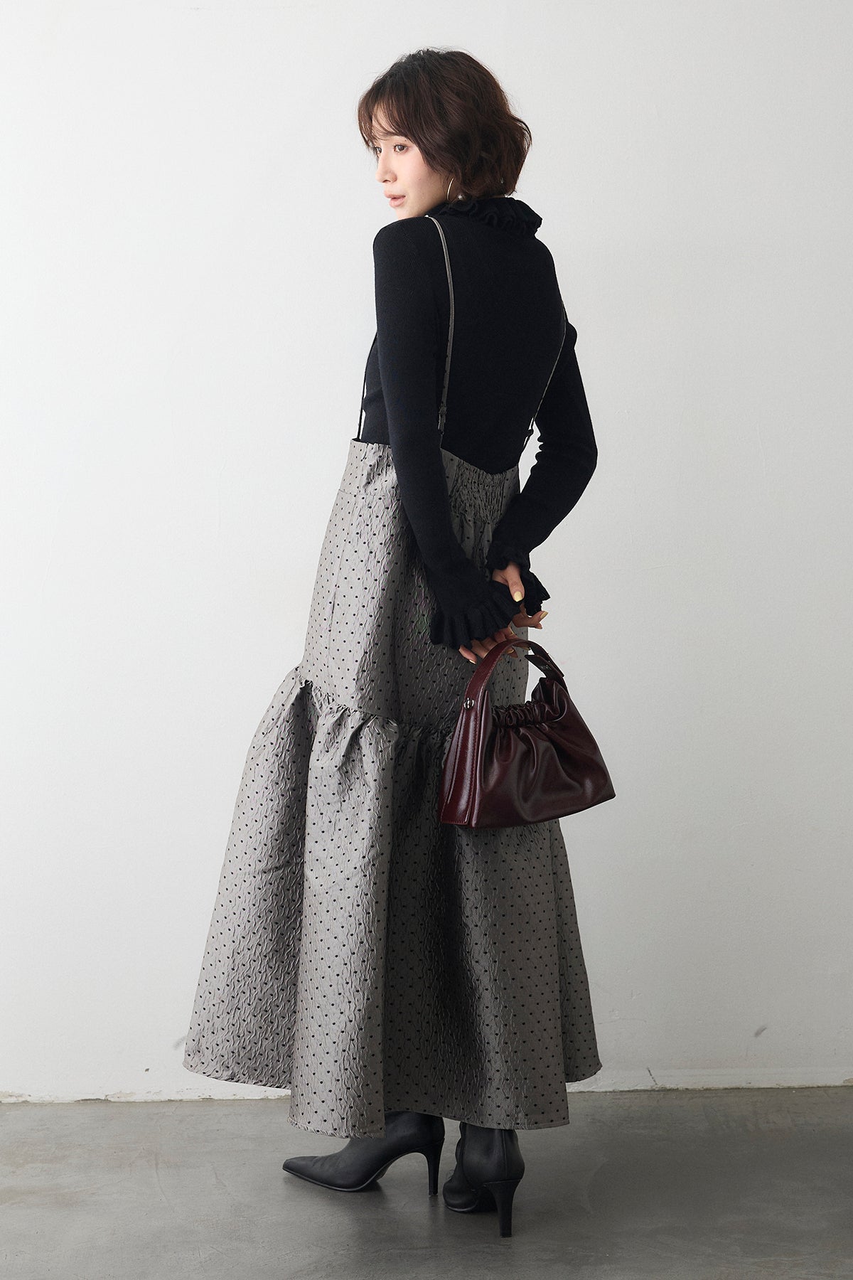 [予約/SET]ダブルフリルカラーニットプルオーバー+ドットジャガードギャザーフレアスカート(2set)