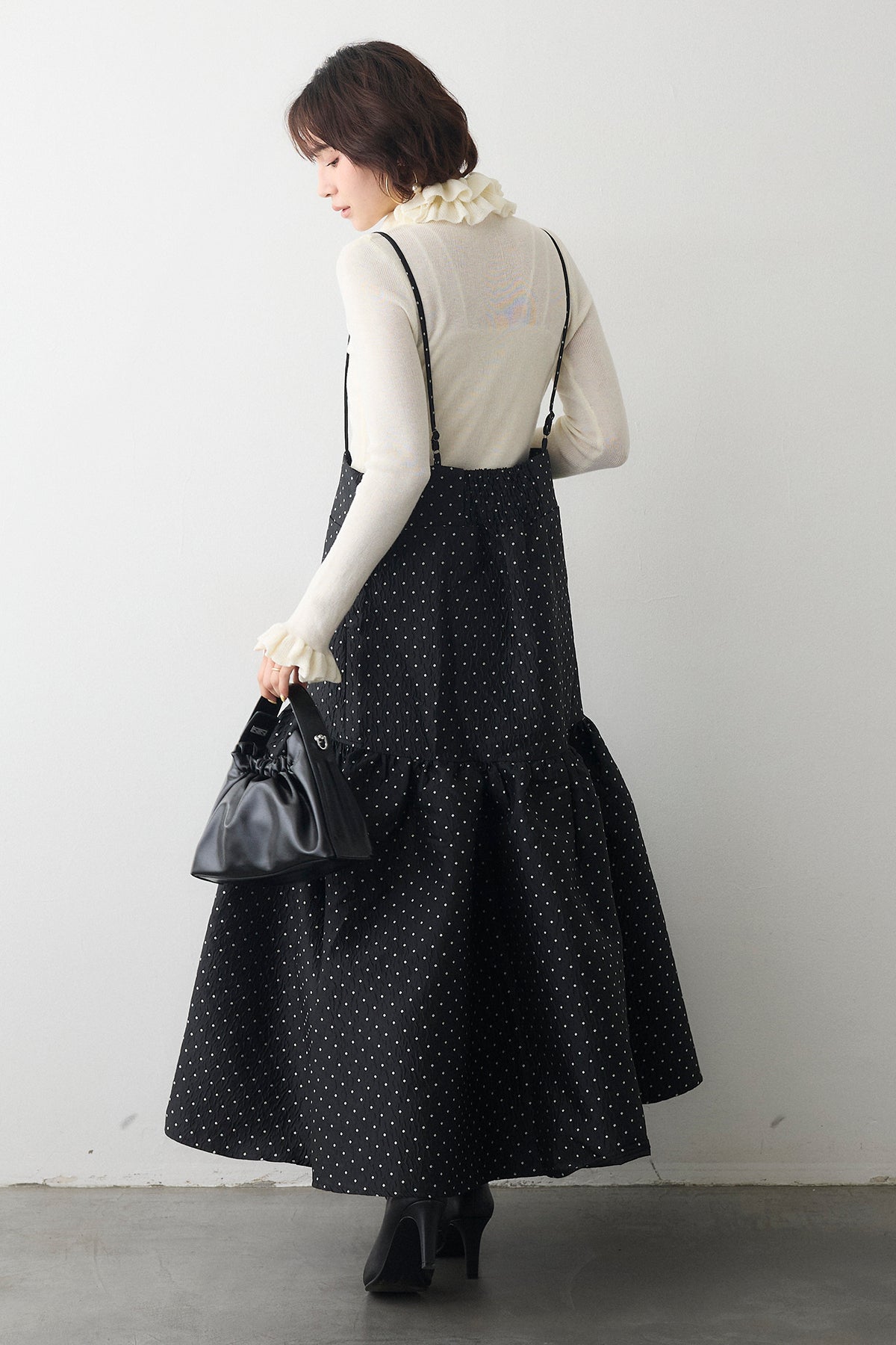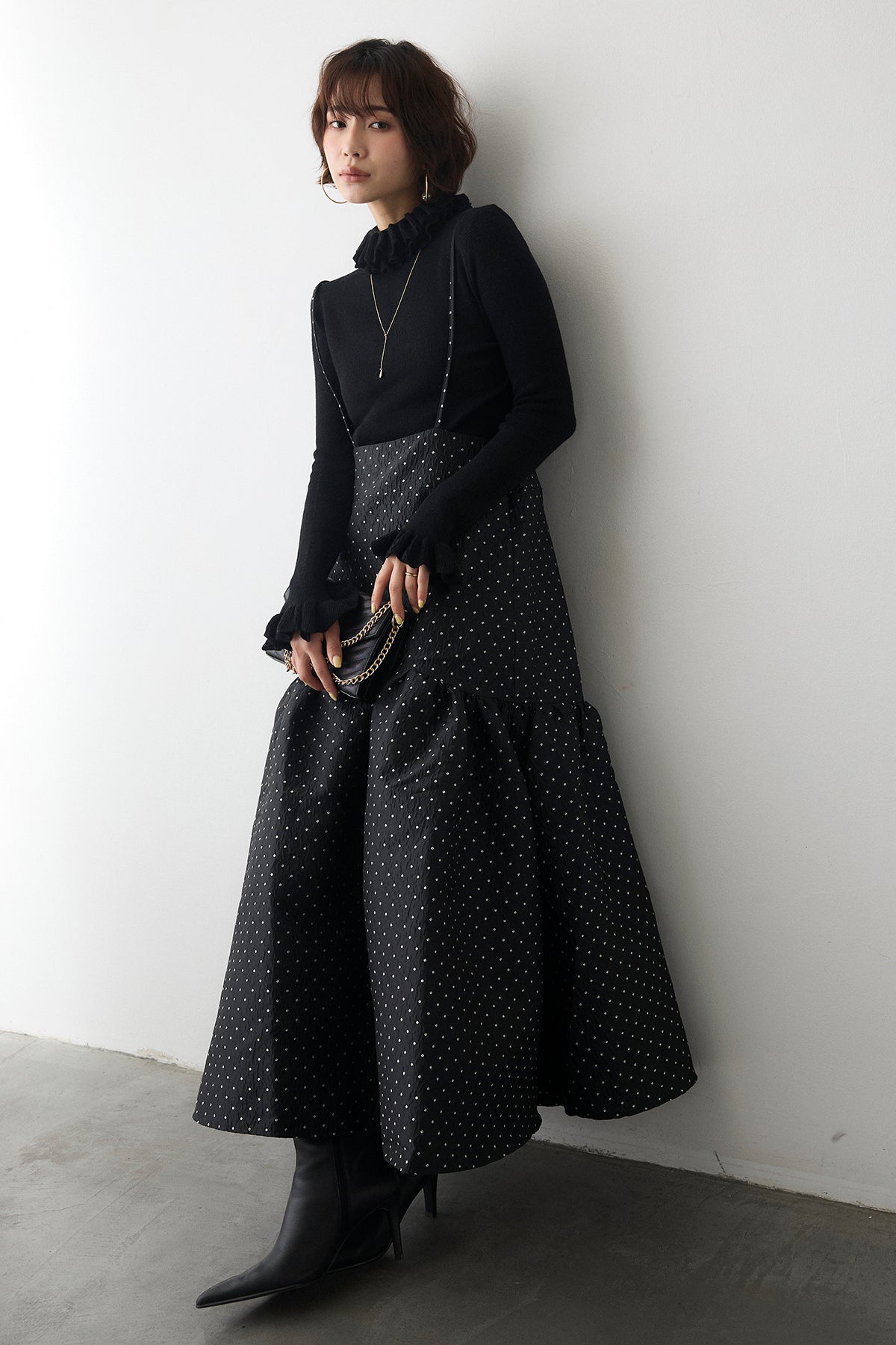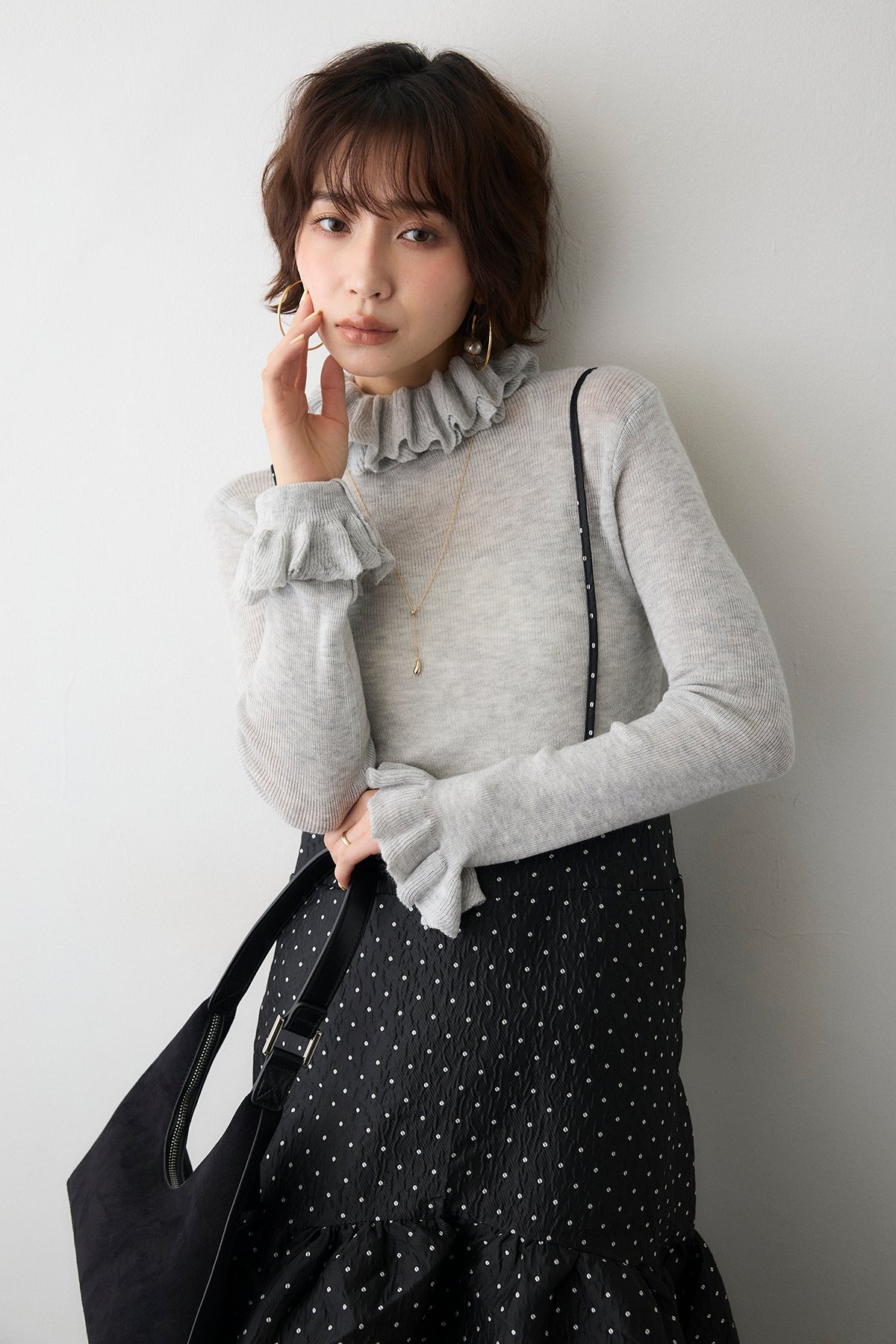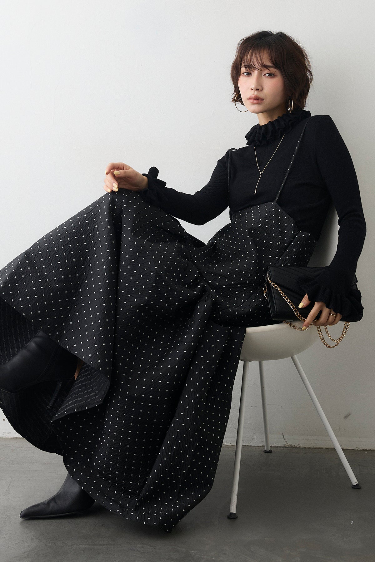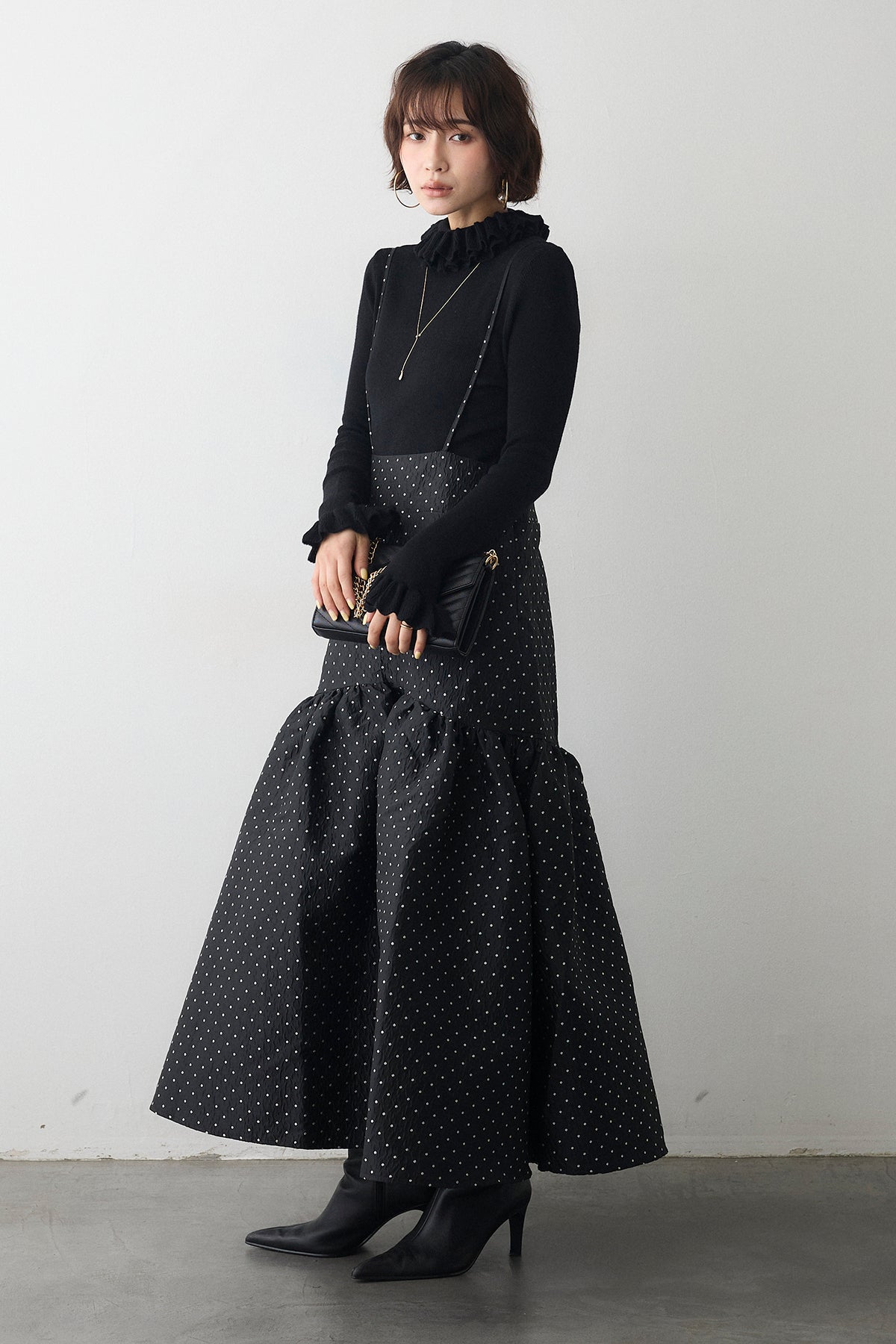 [予約/SET]ダブルフリルカラーニットプルオーバー+ドットジャガードギャザーフレアスカート(2set)