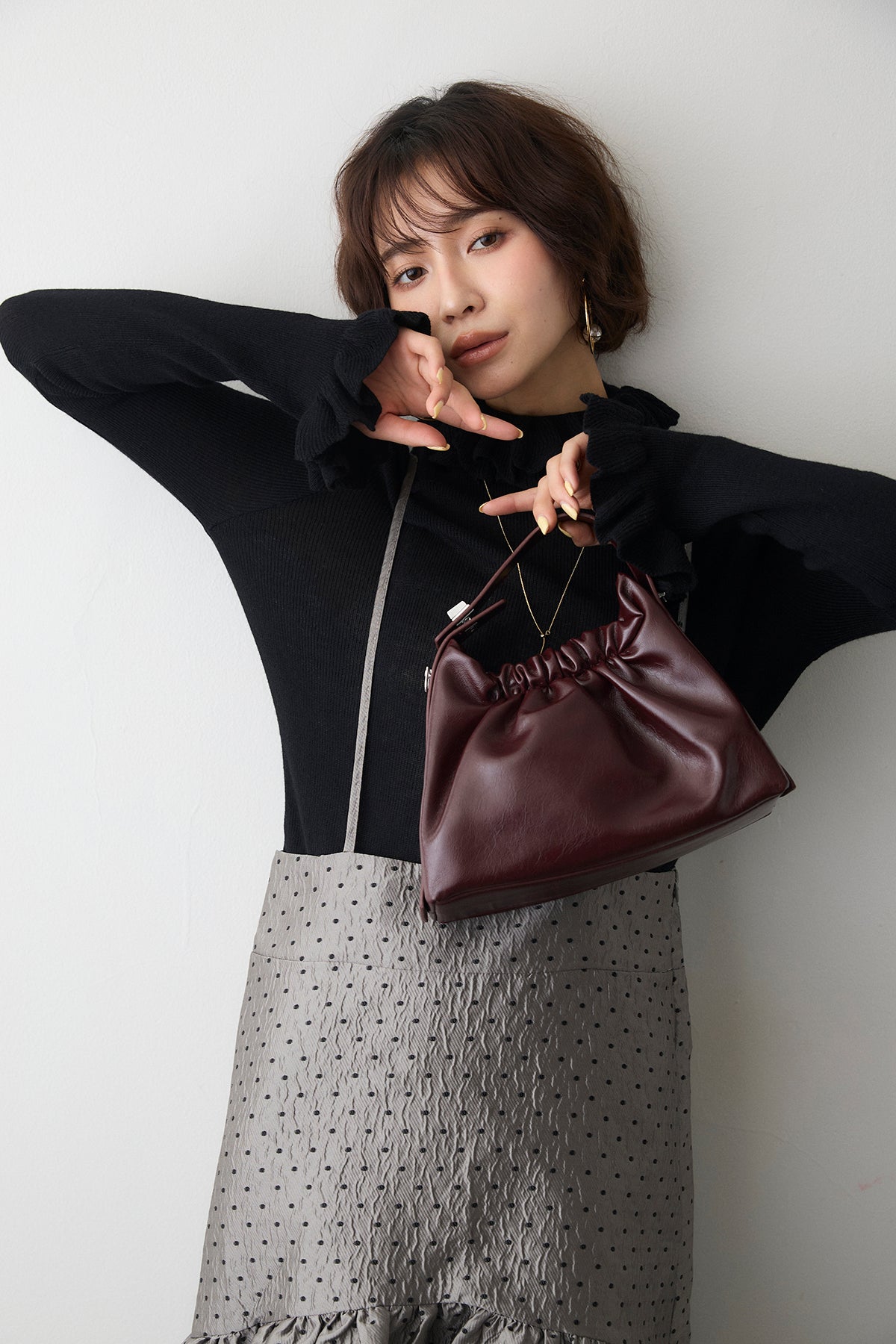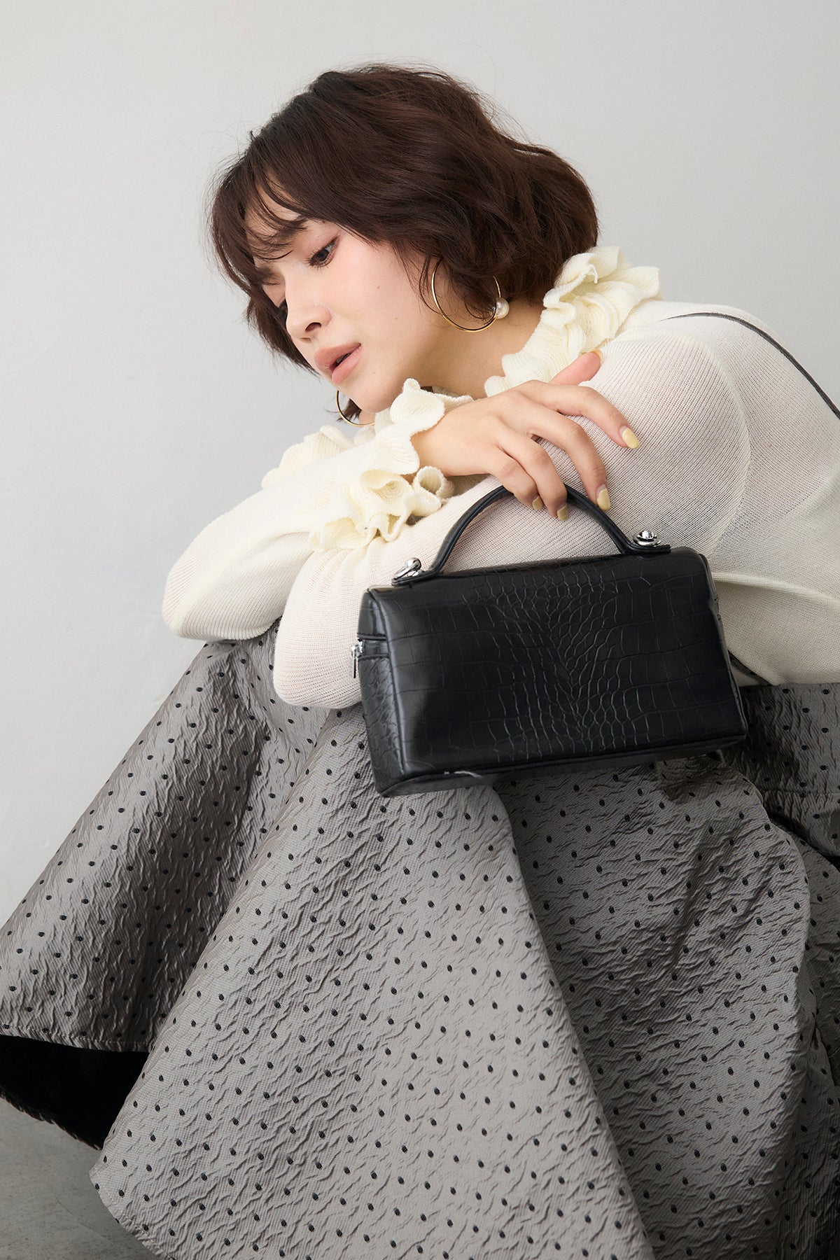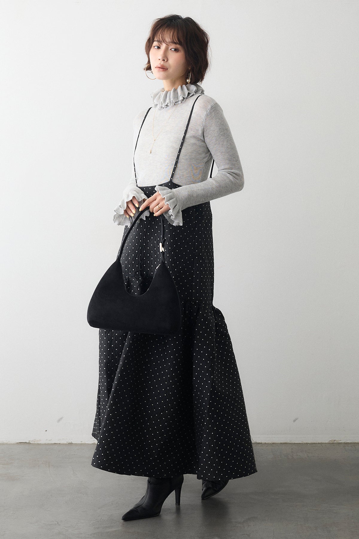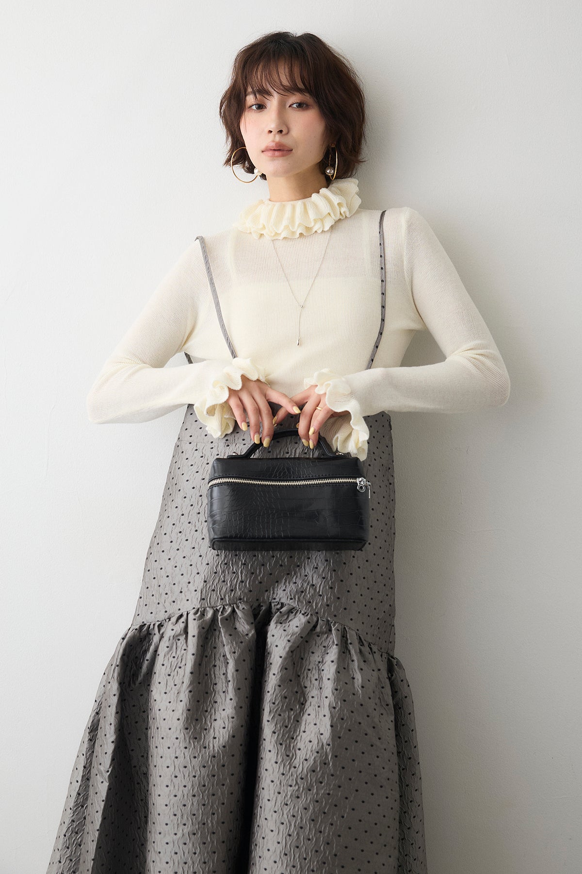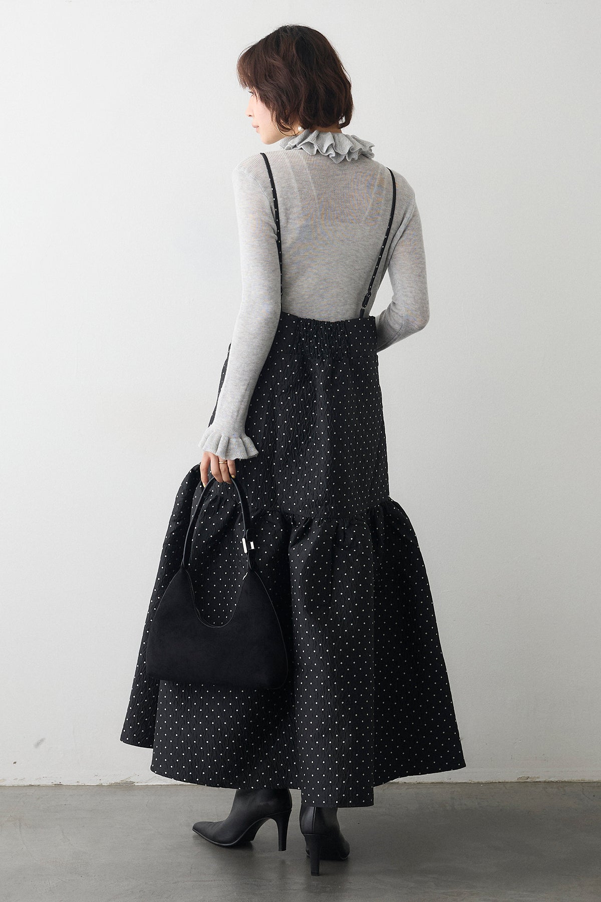 [予約/SET]ダブルフリルカラーニットプルオーバー+ドットジャガードギャザーフレアスカート(2set)