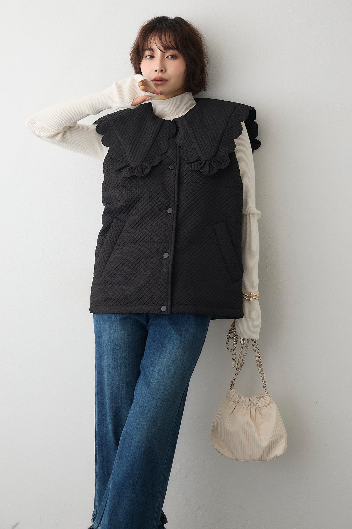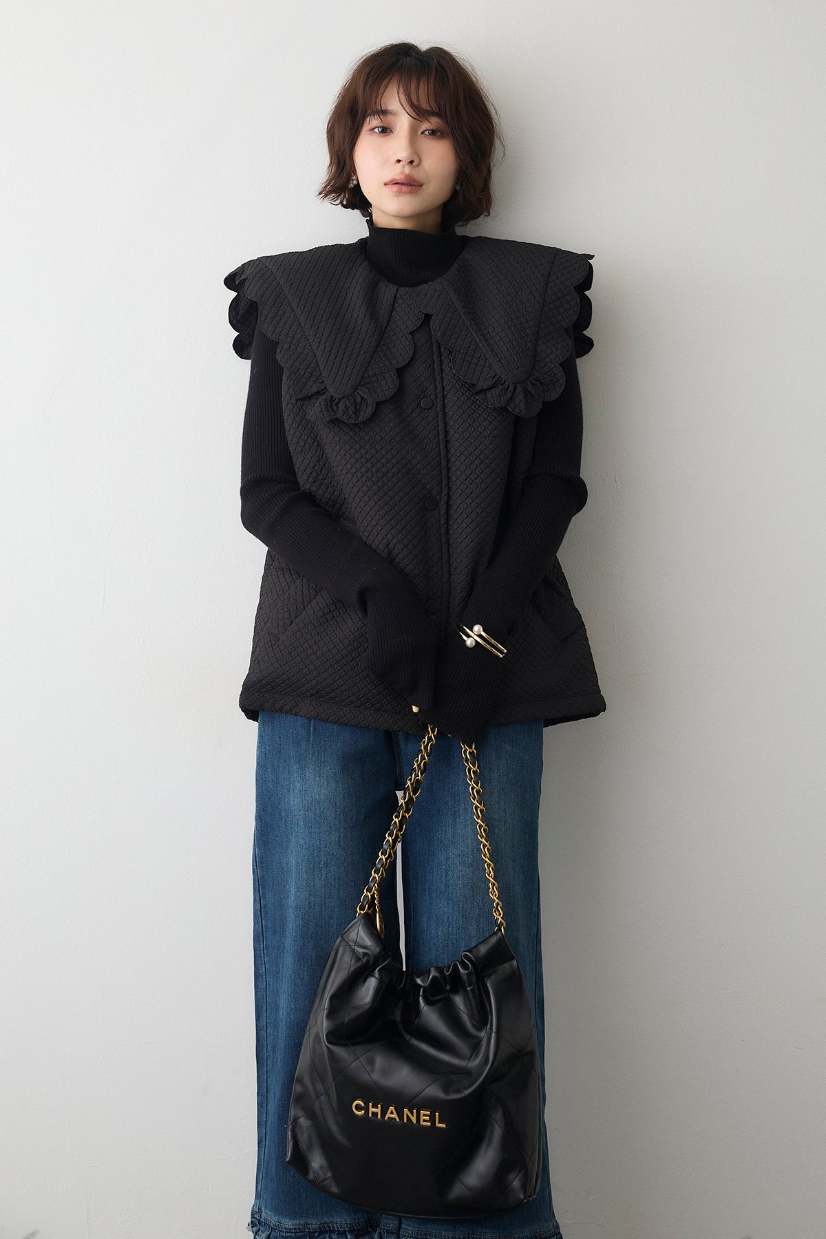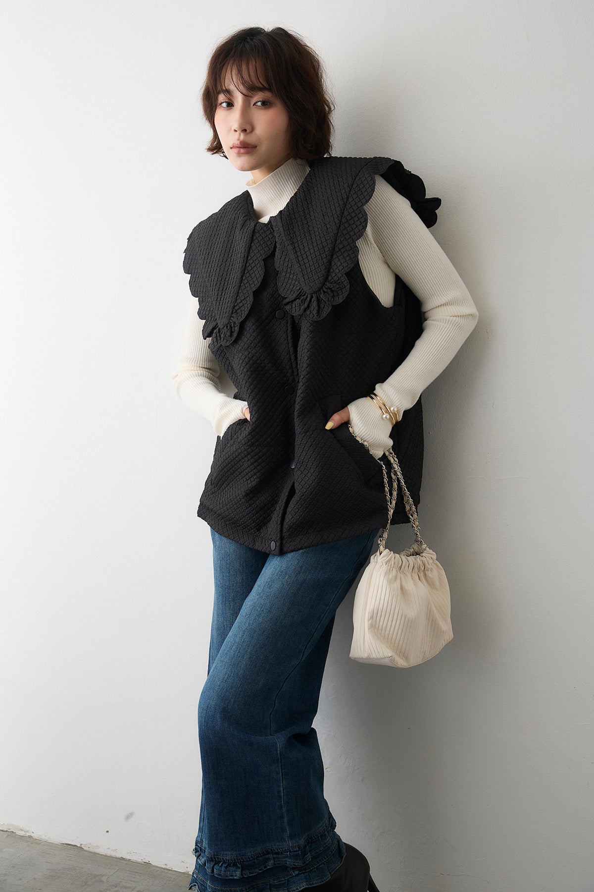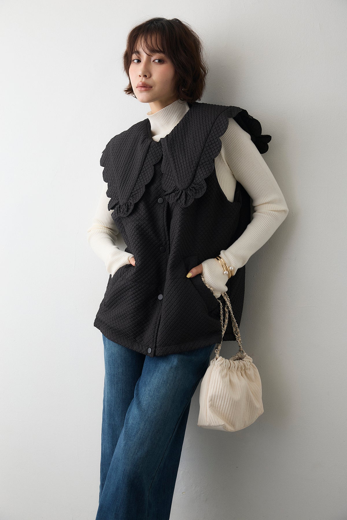 [予約/SET]ベーシックフィンガーホールリブニット+スカラップBIGカラーベスト(2set)